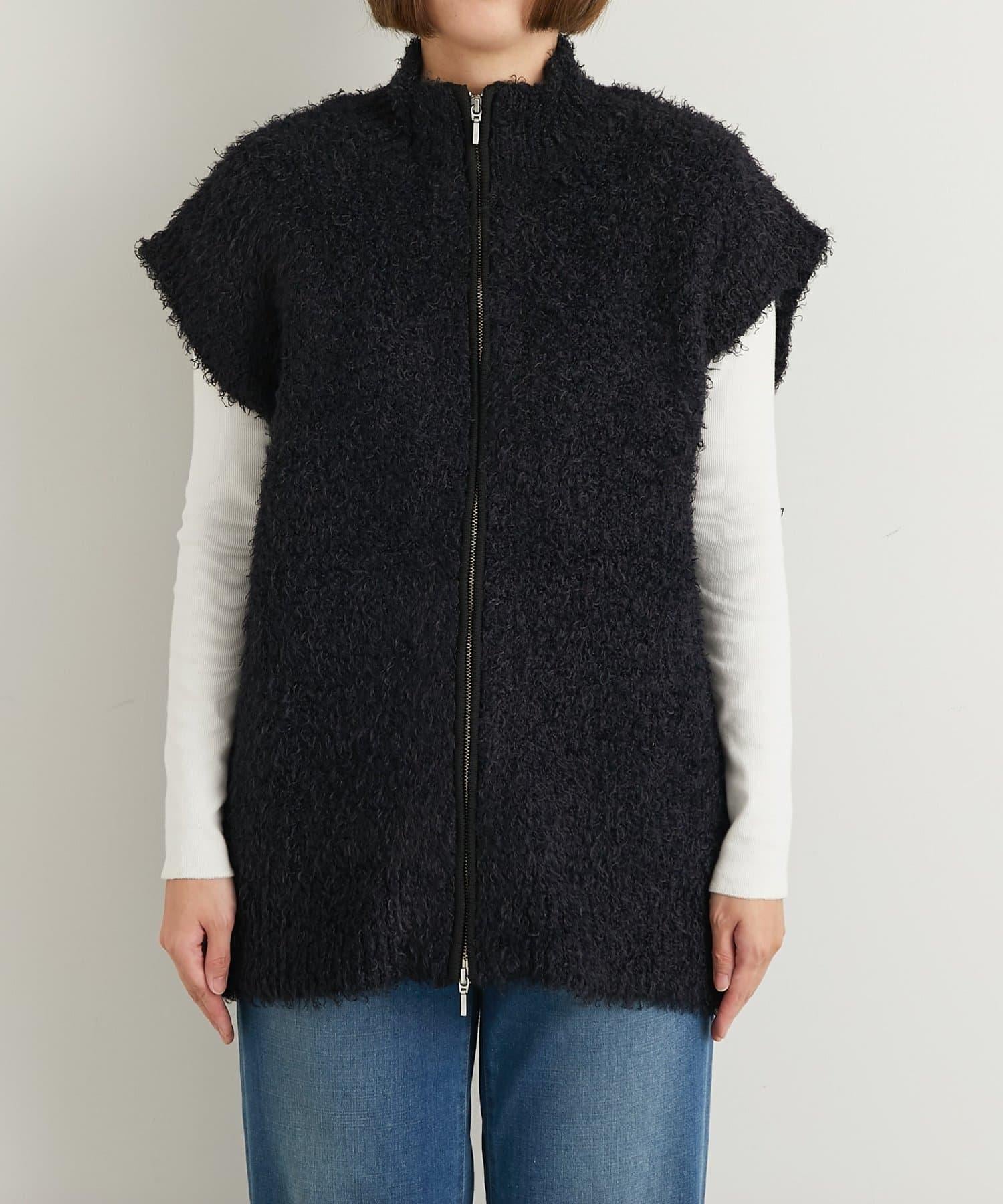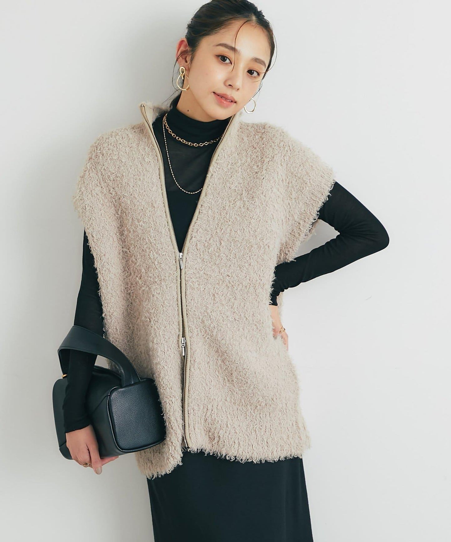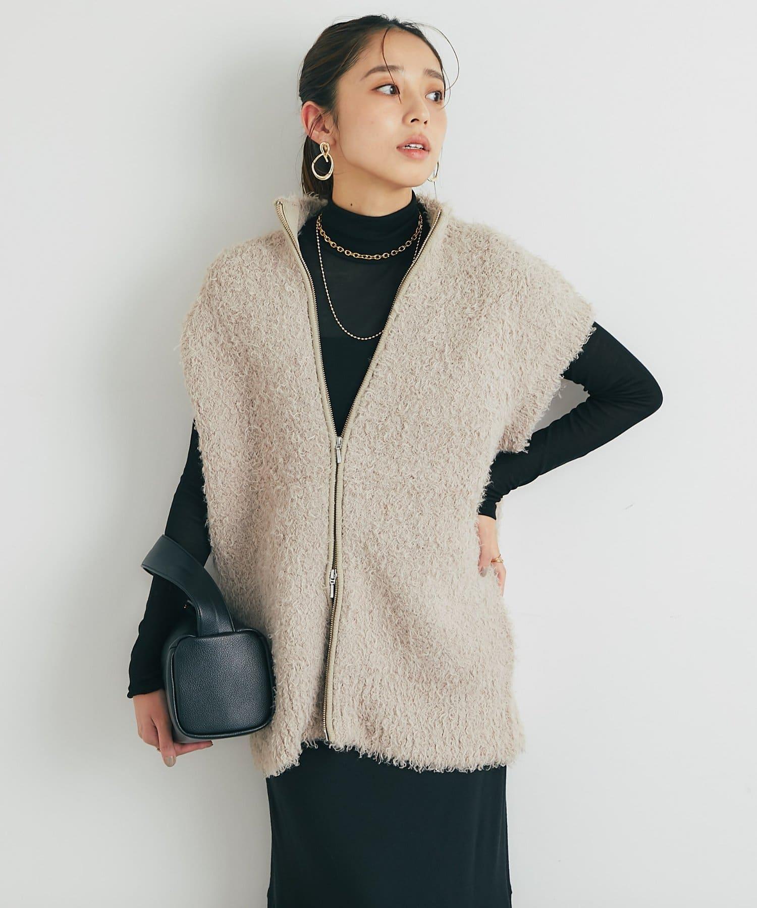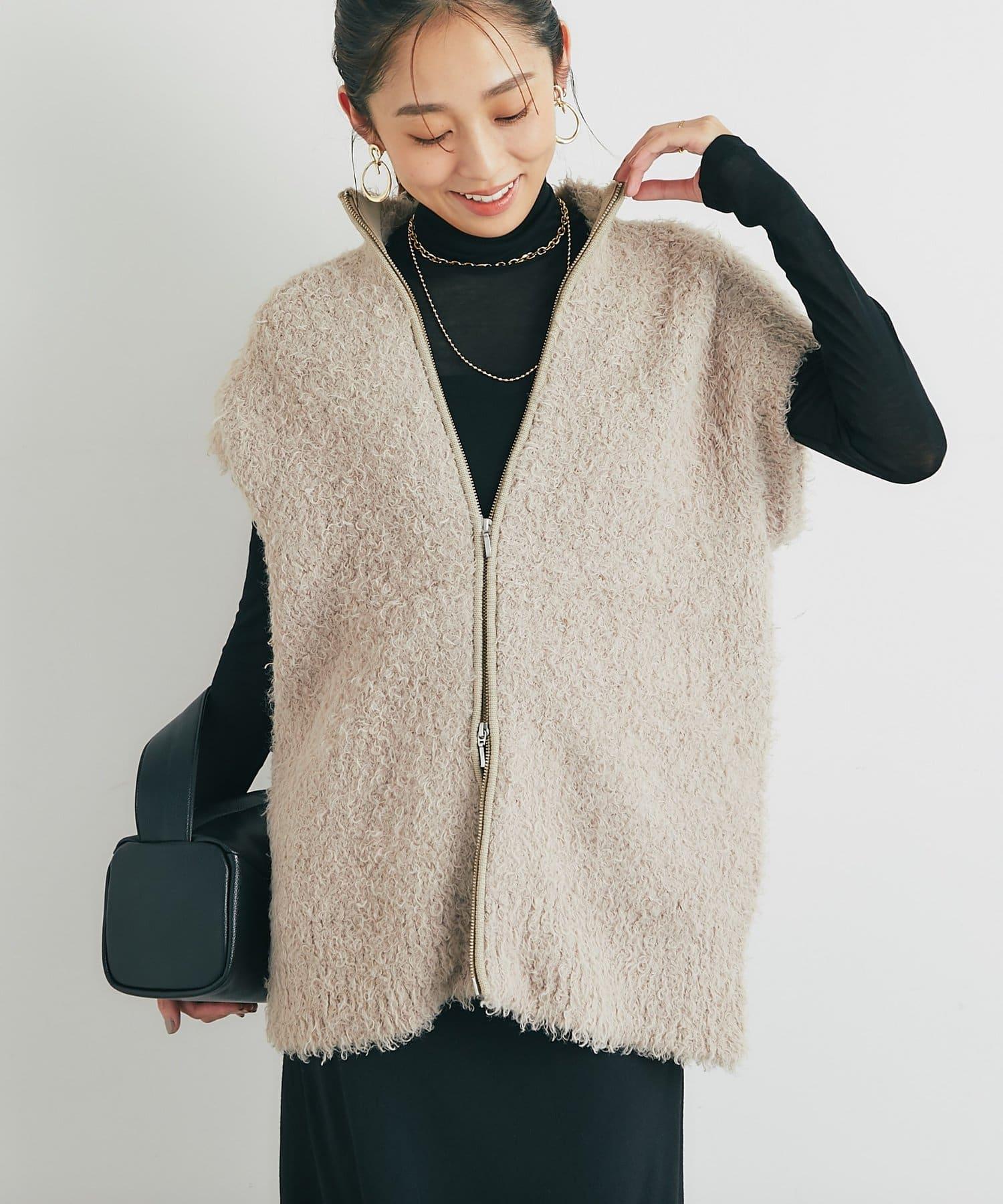 休閒風格仿羊羔絨針織拉鍊馬甲