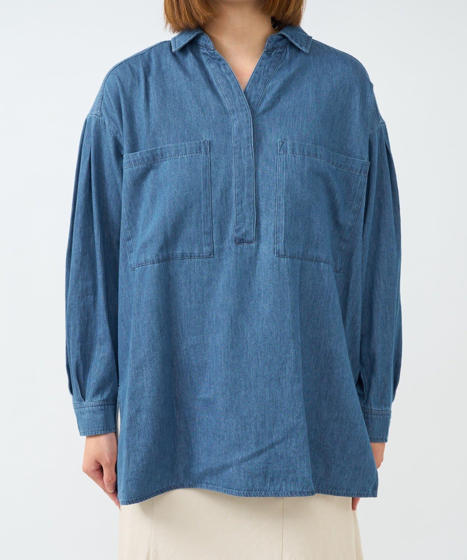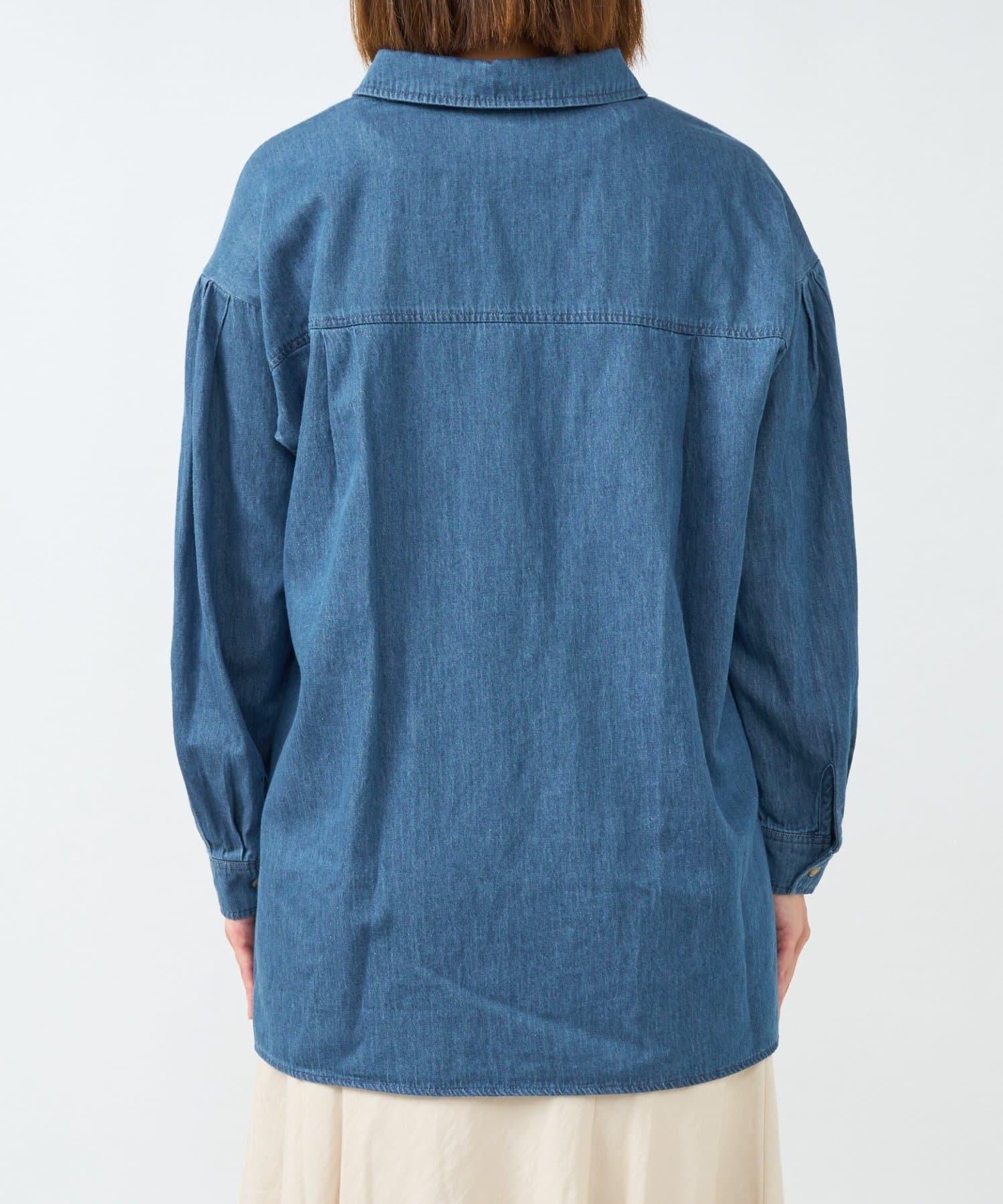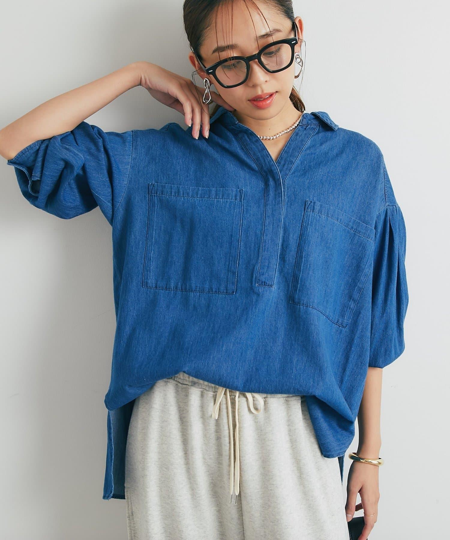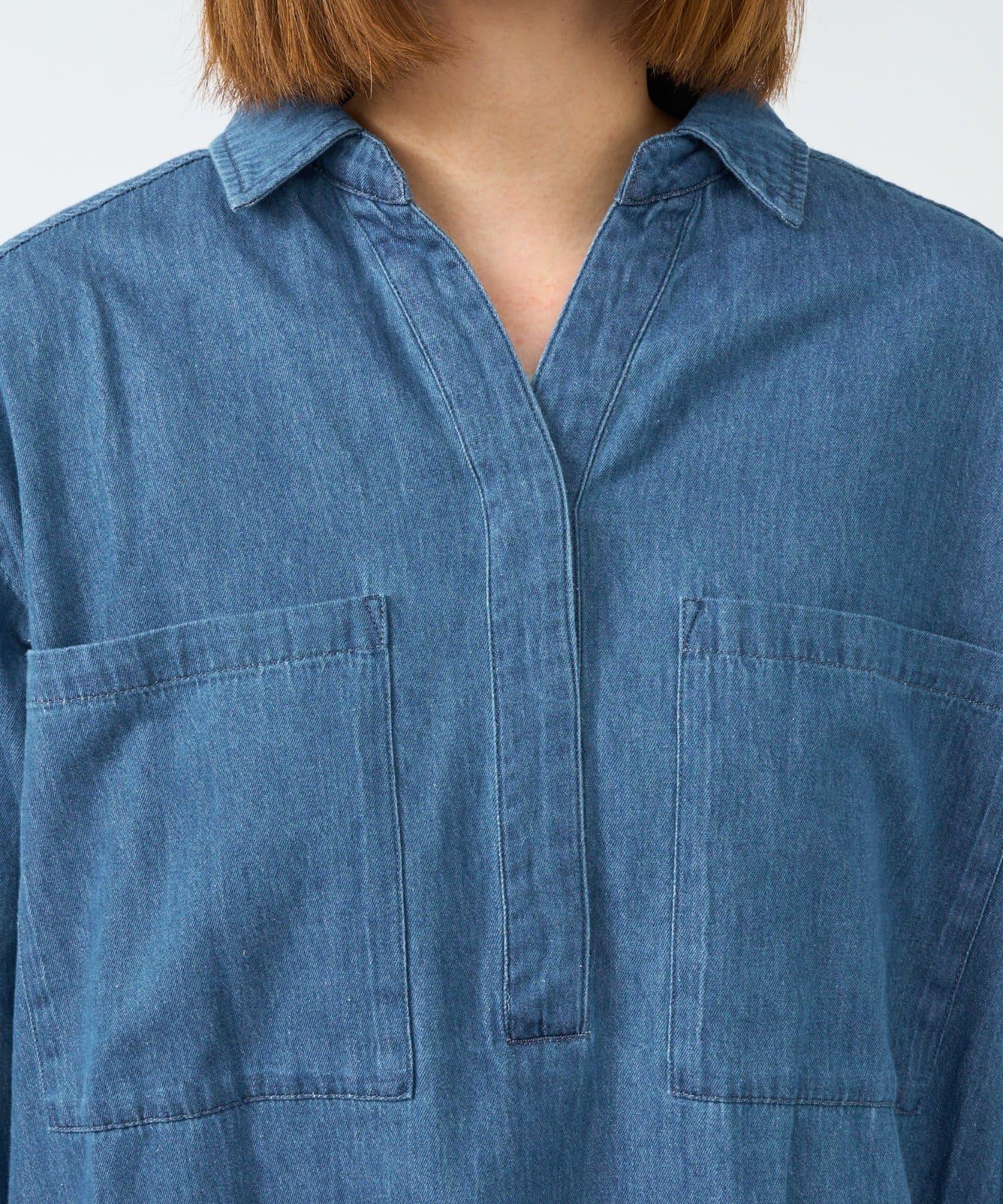 休閒風格輕薄牛仔開領襯衫