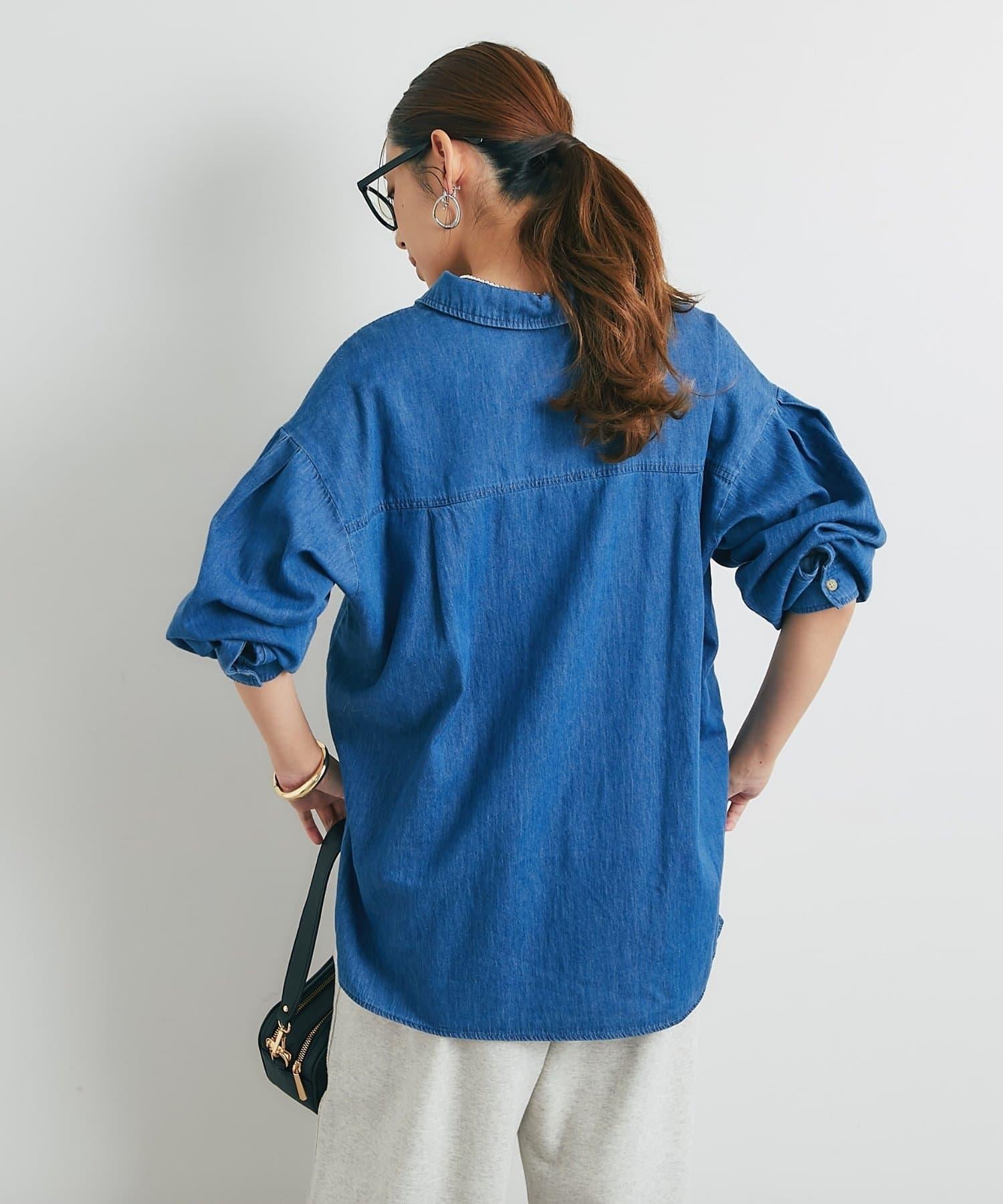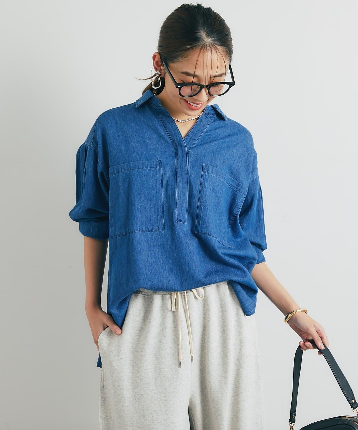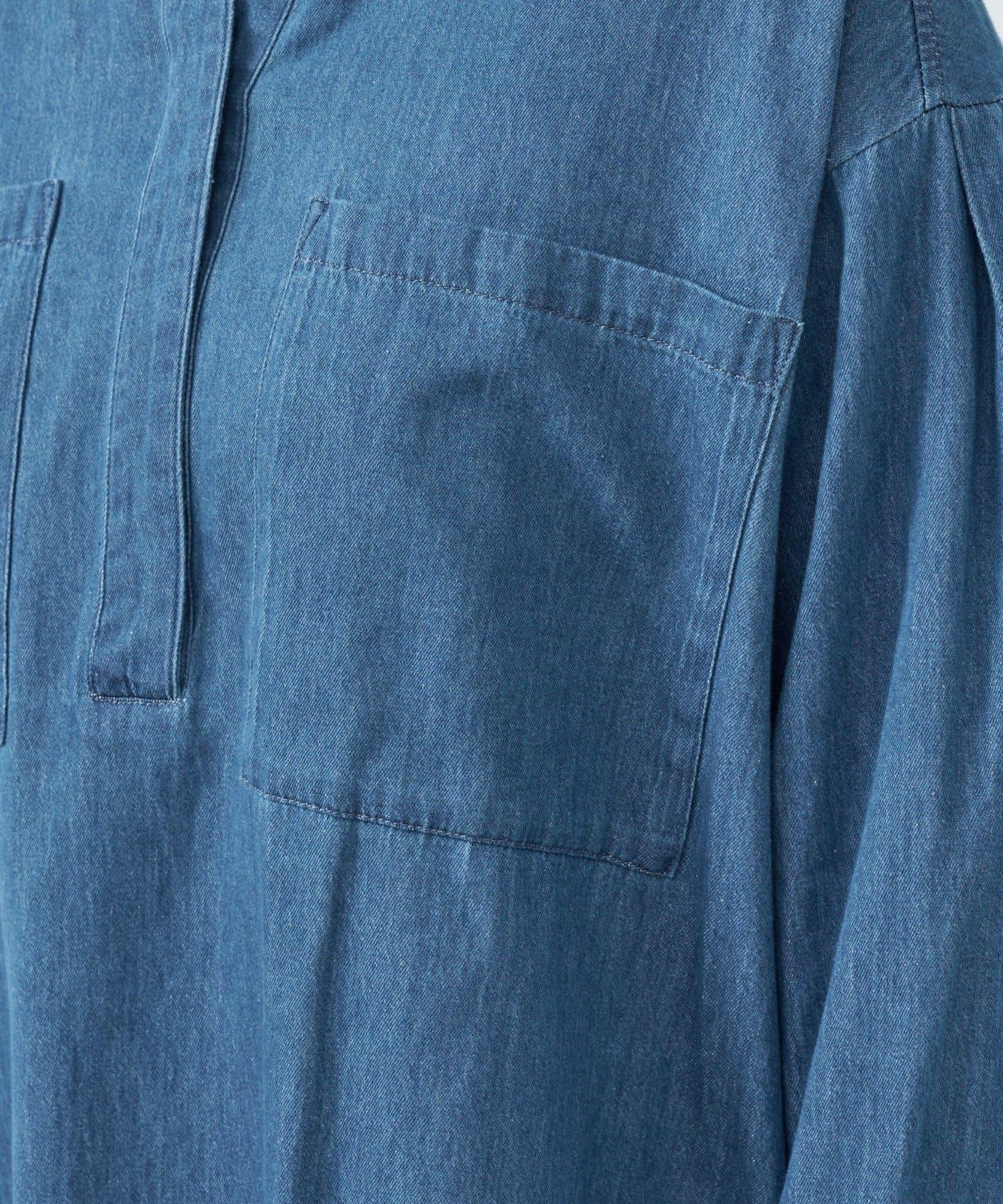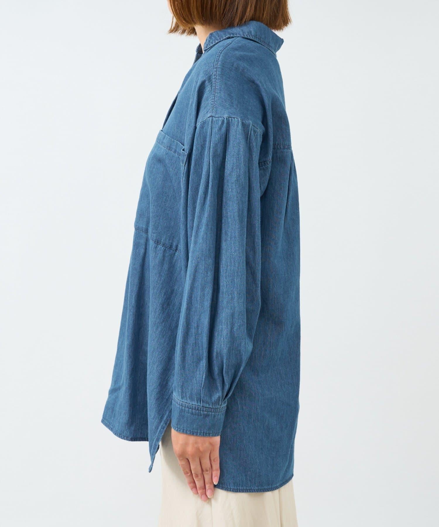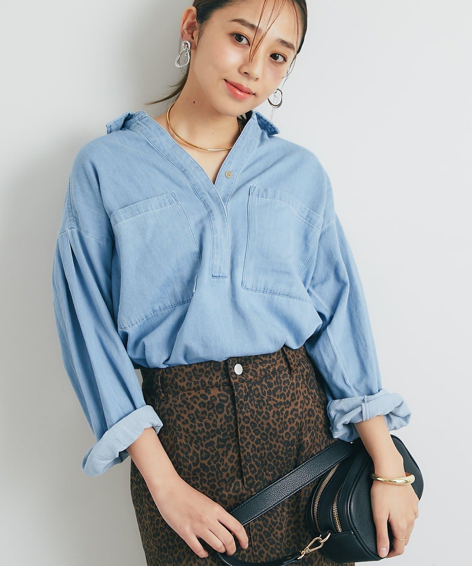 休閒風格輕薄牛仔開領襯衫