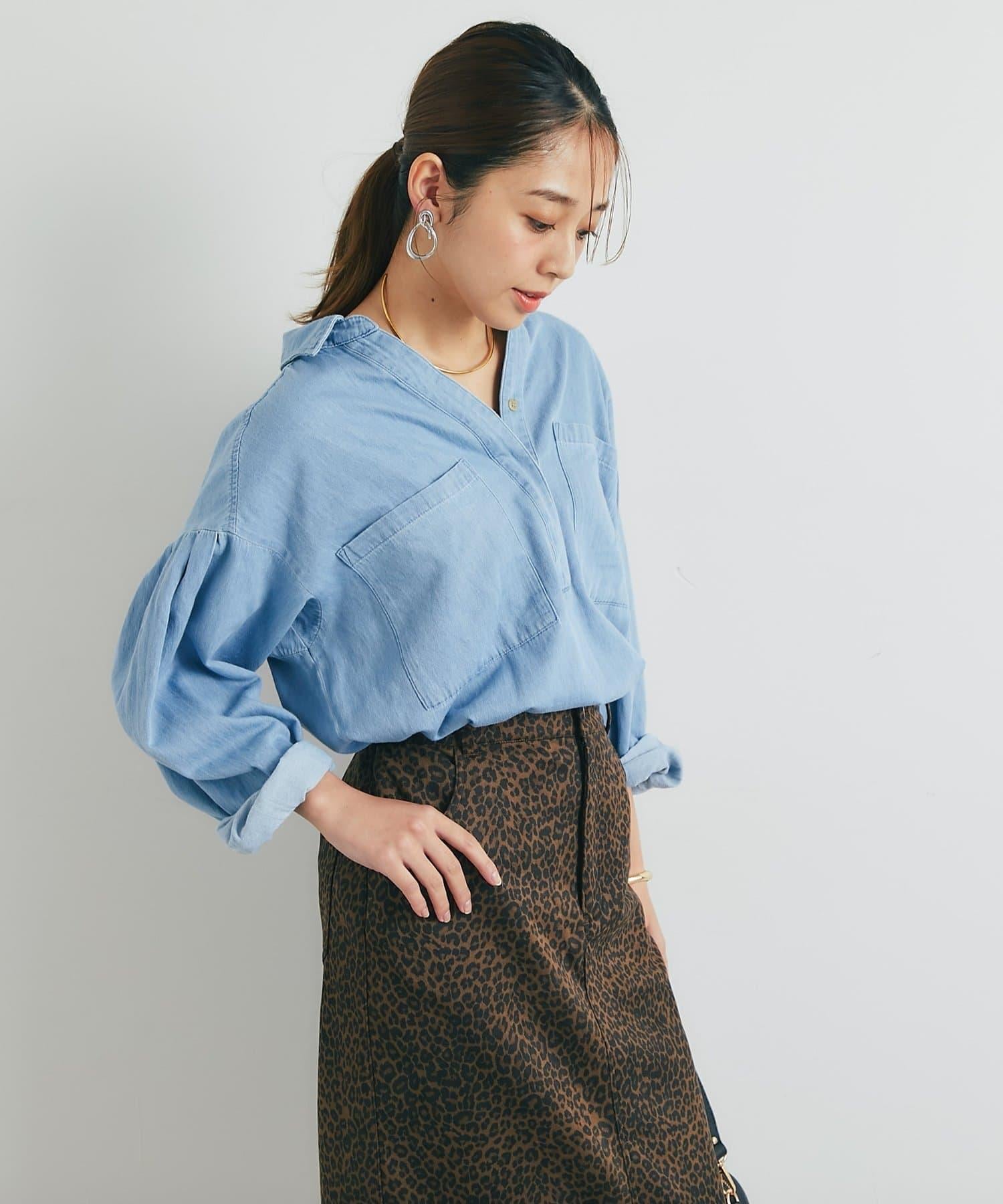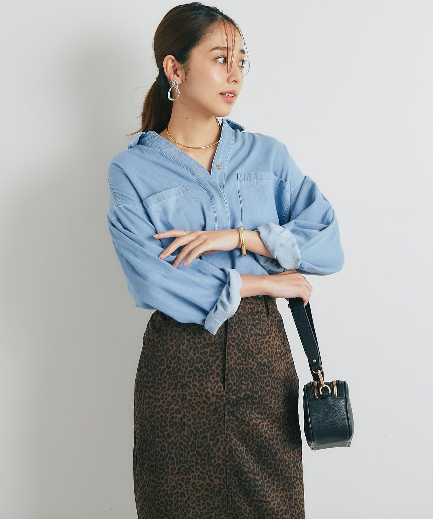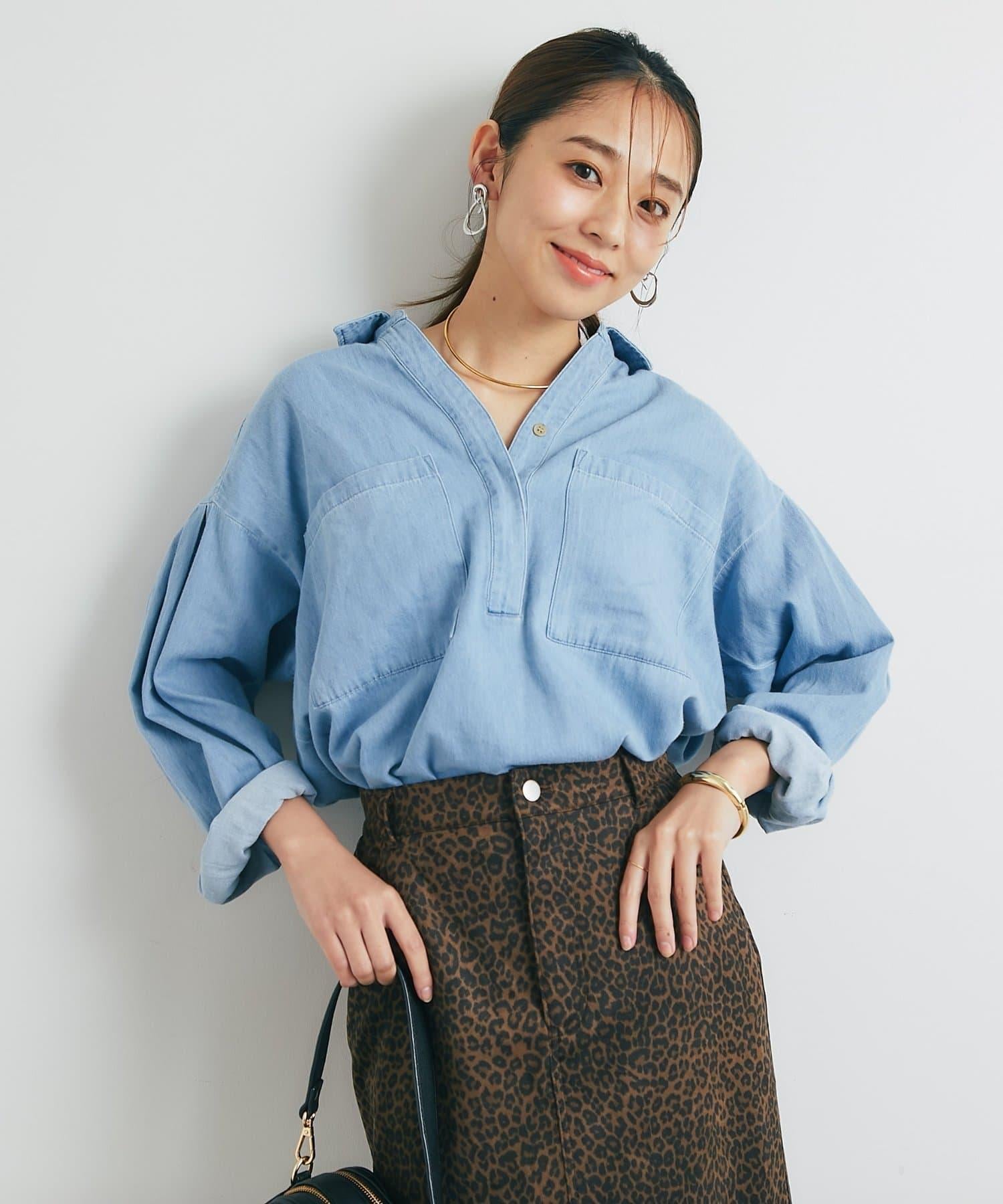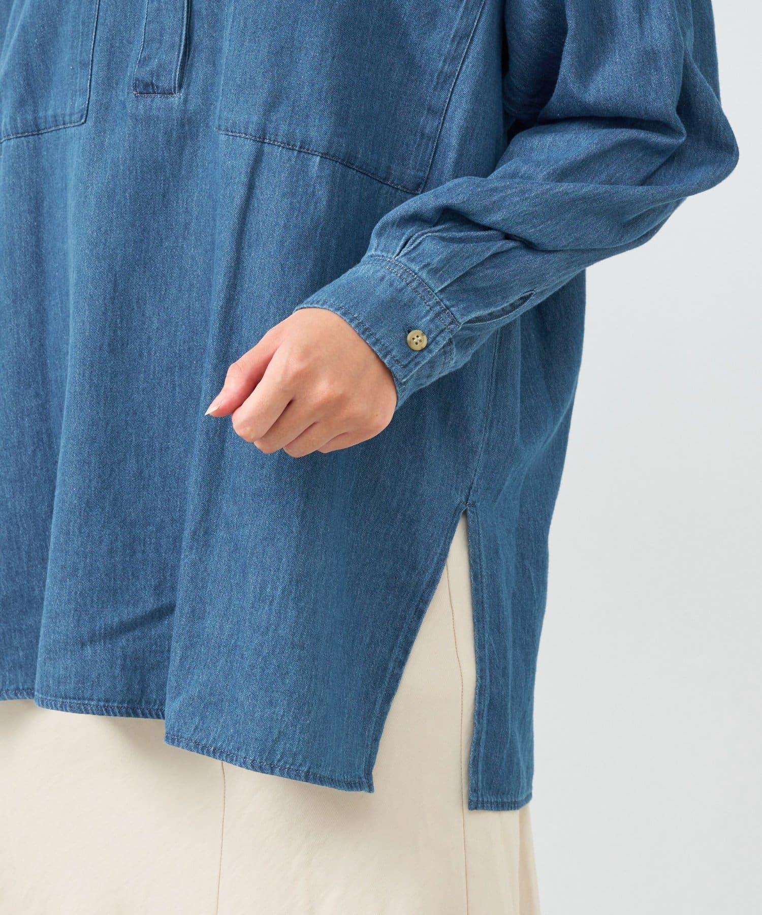 休閒風格輕薄牛仔開領襯衫