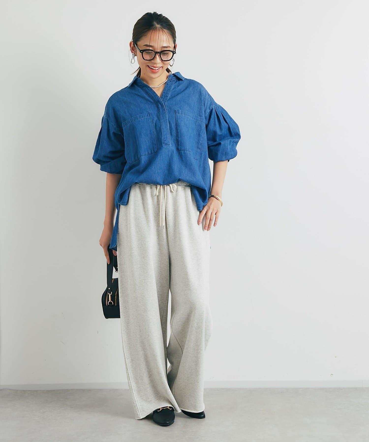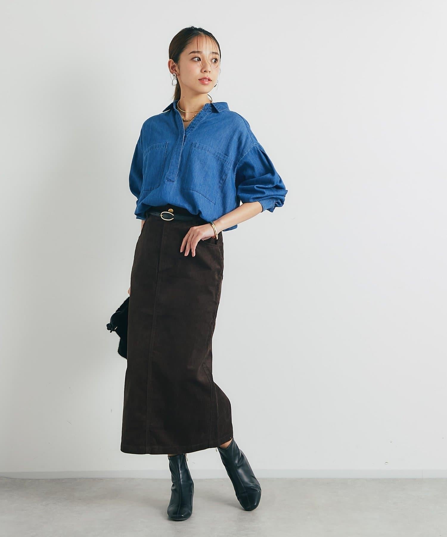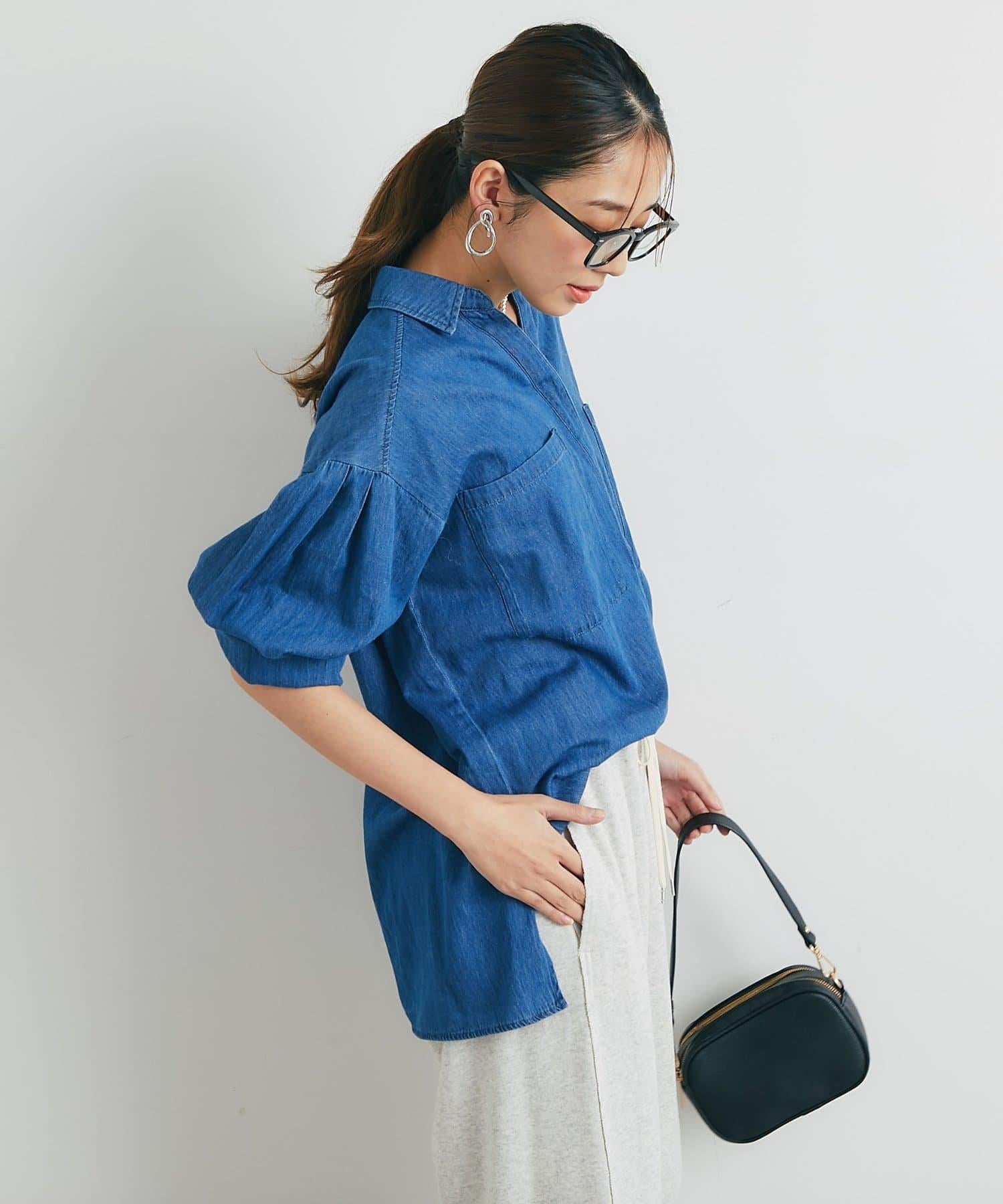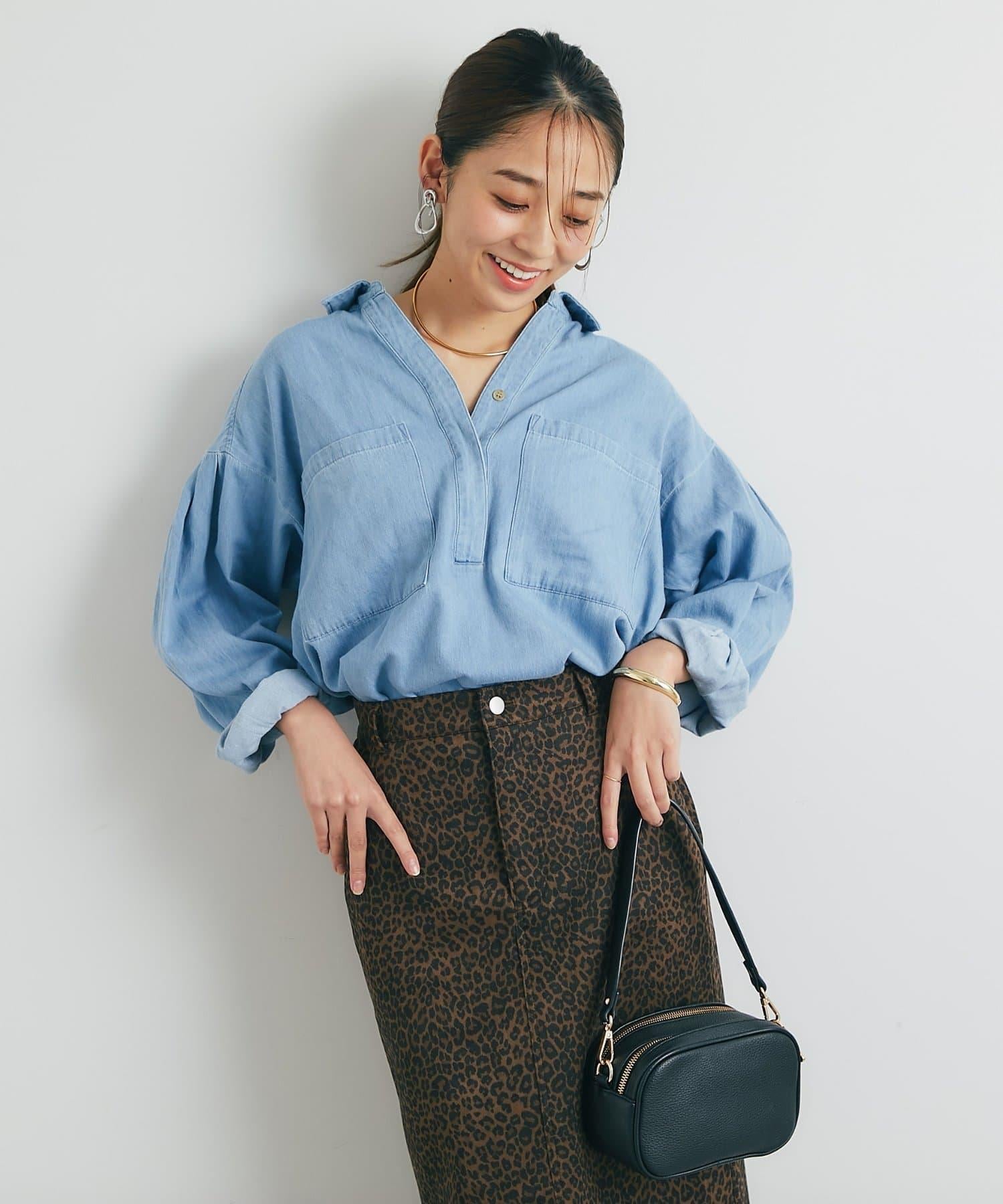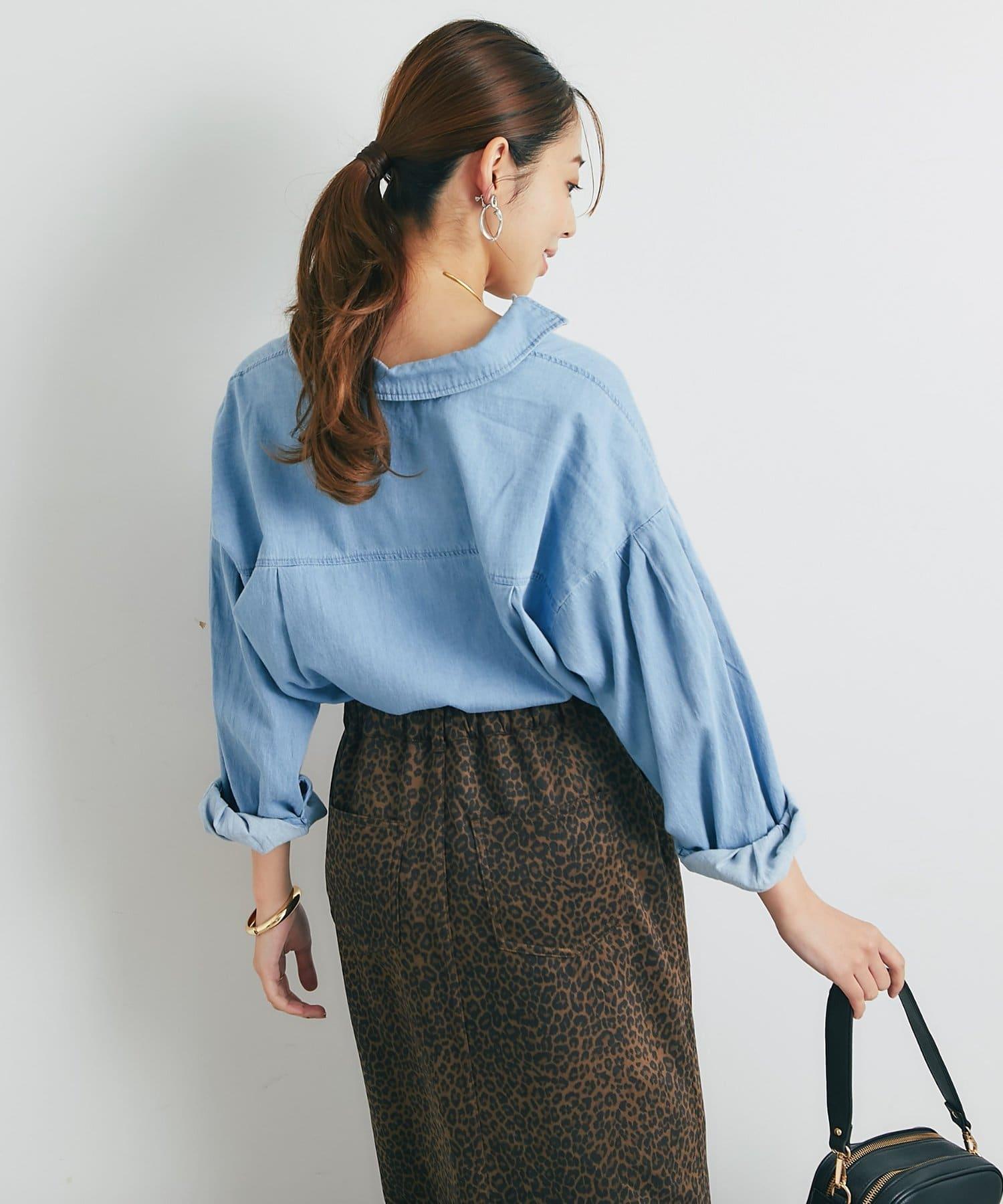 休閒風格輕薄牛仔開領襯衫