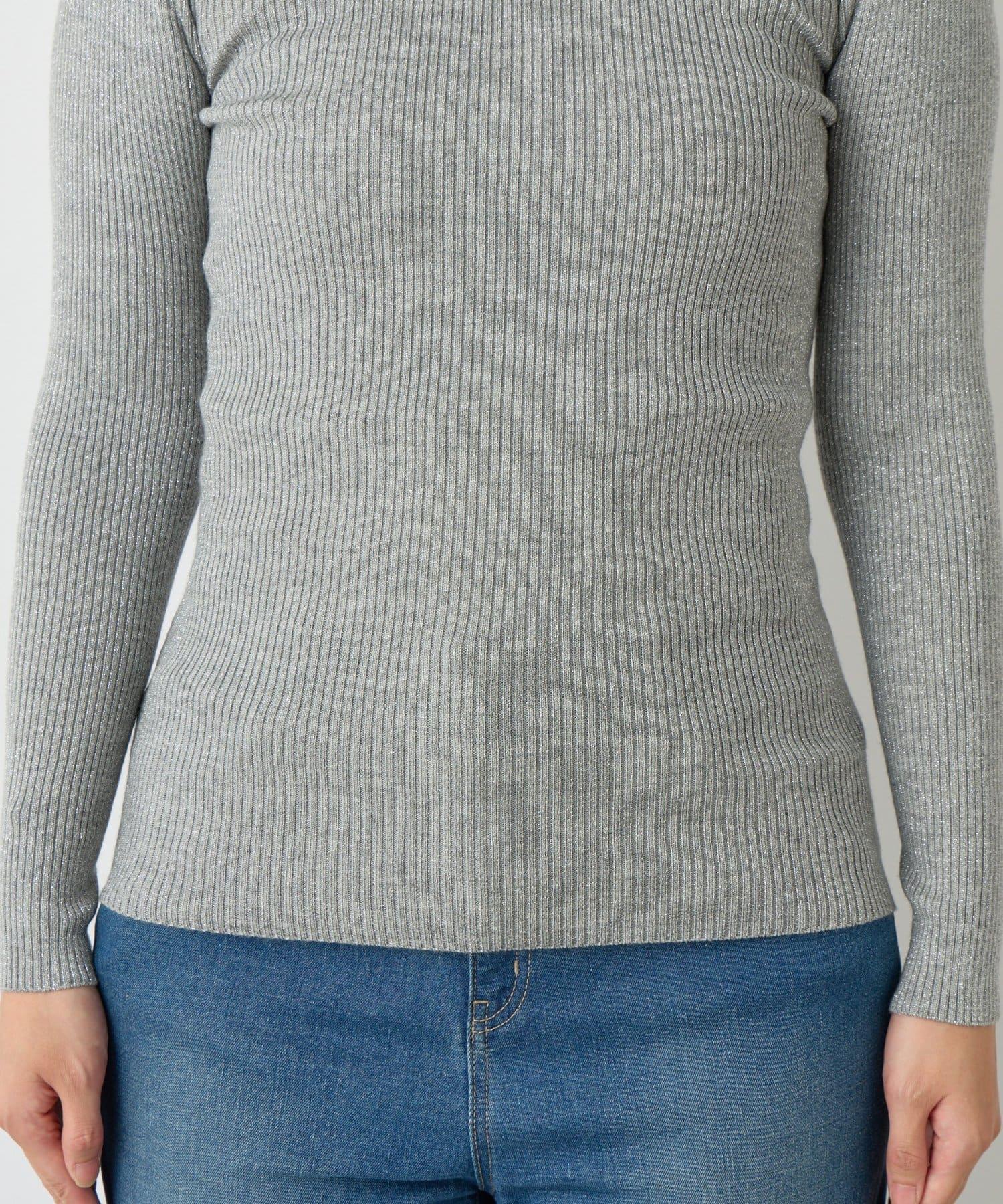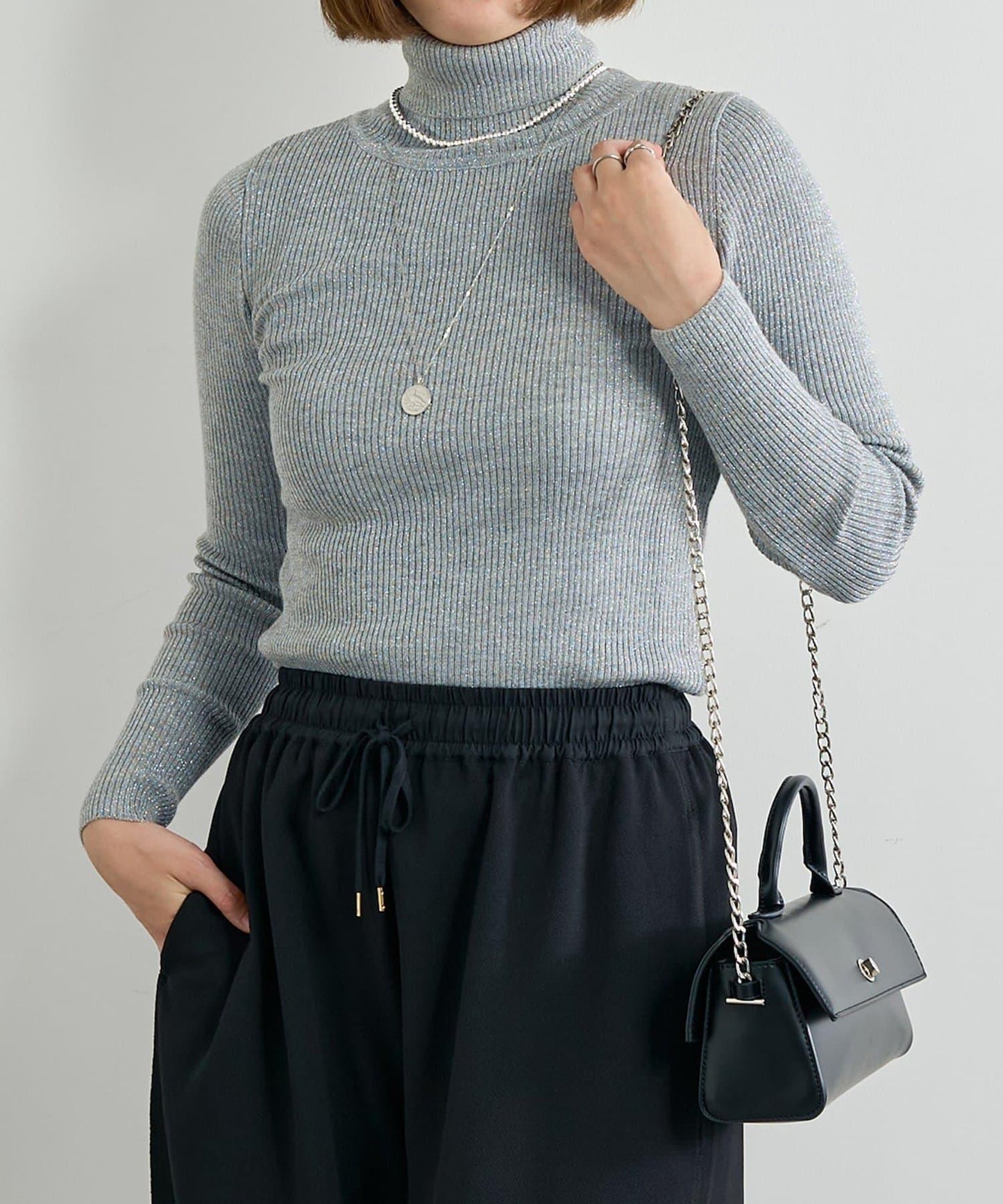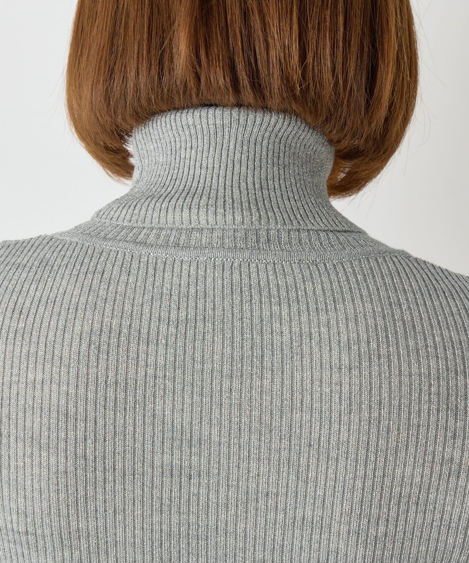 這是一款日常必備的高領針織衫,採用微微閃光的薄片面料剪裁而成。