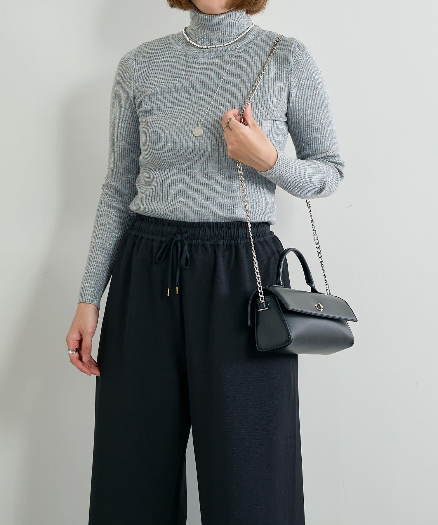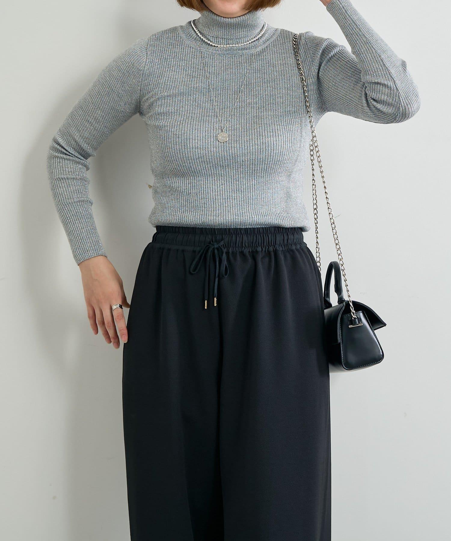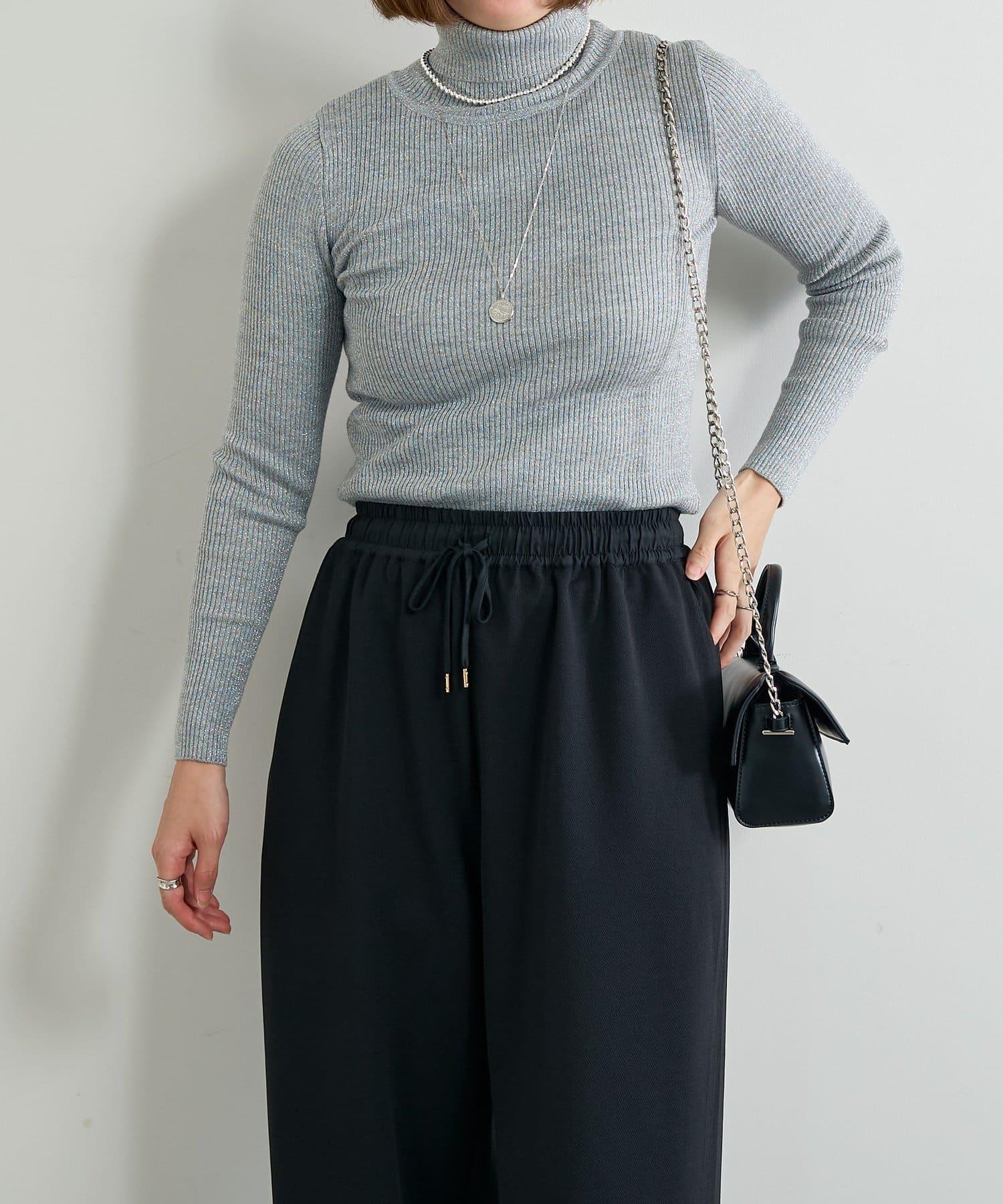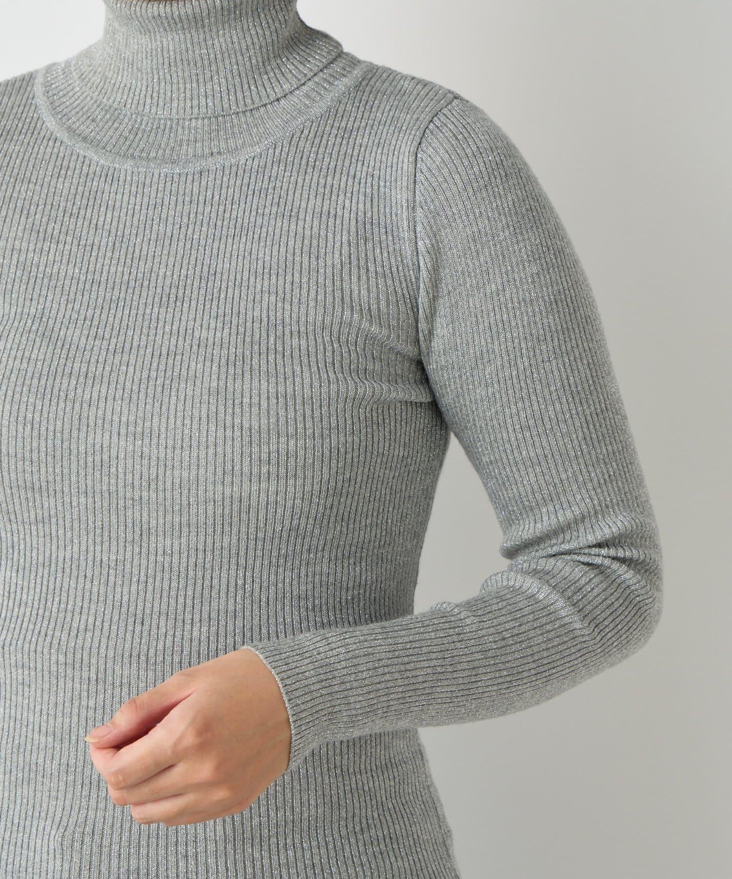 這是一款日常必備的高領針織衫,採用微微閃光的薄片面料剪裁而成。