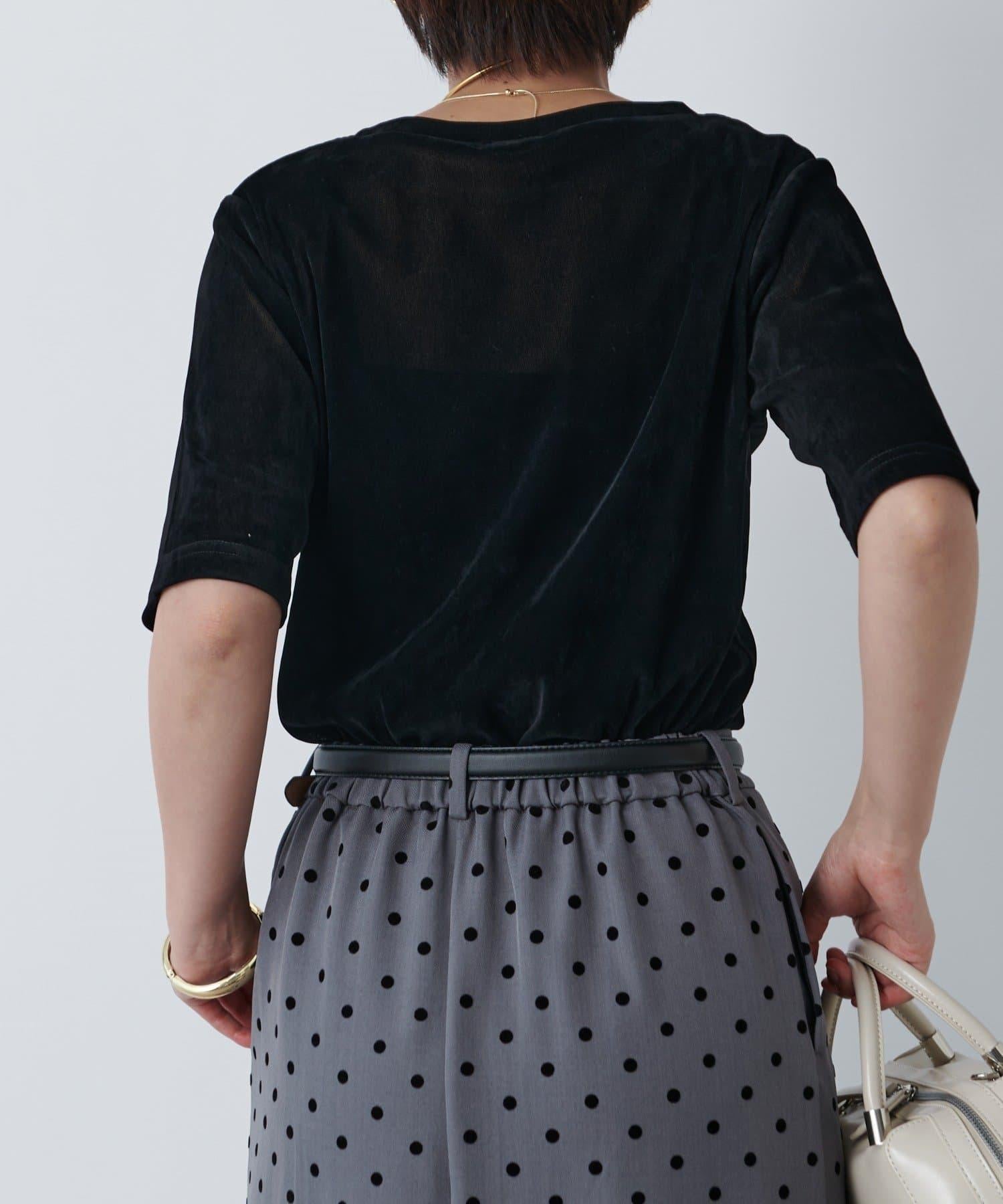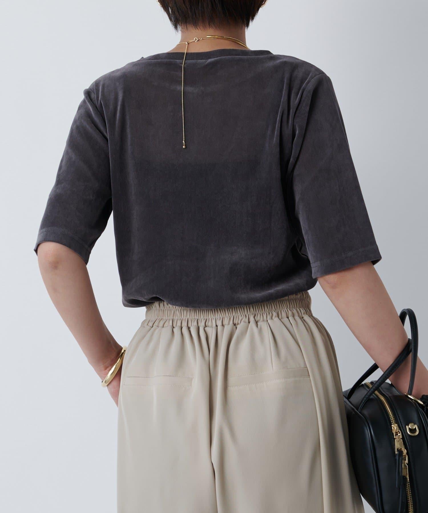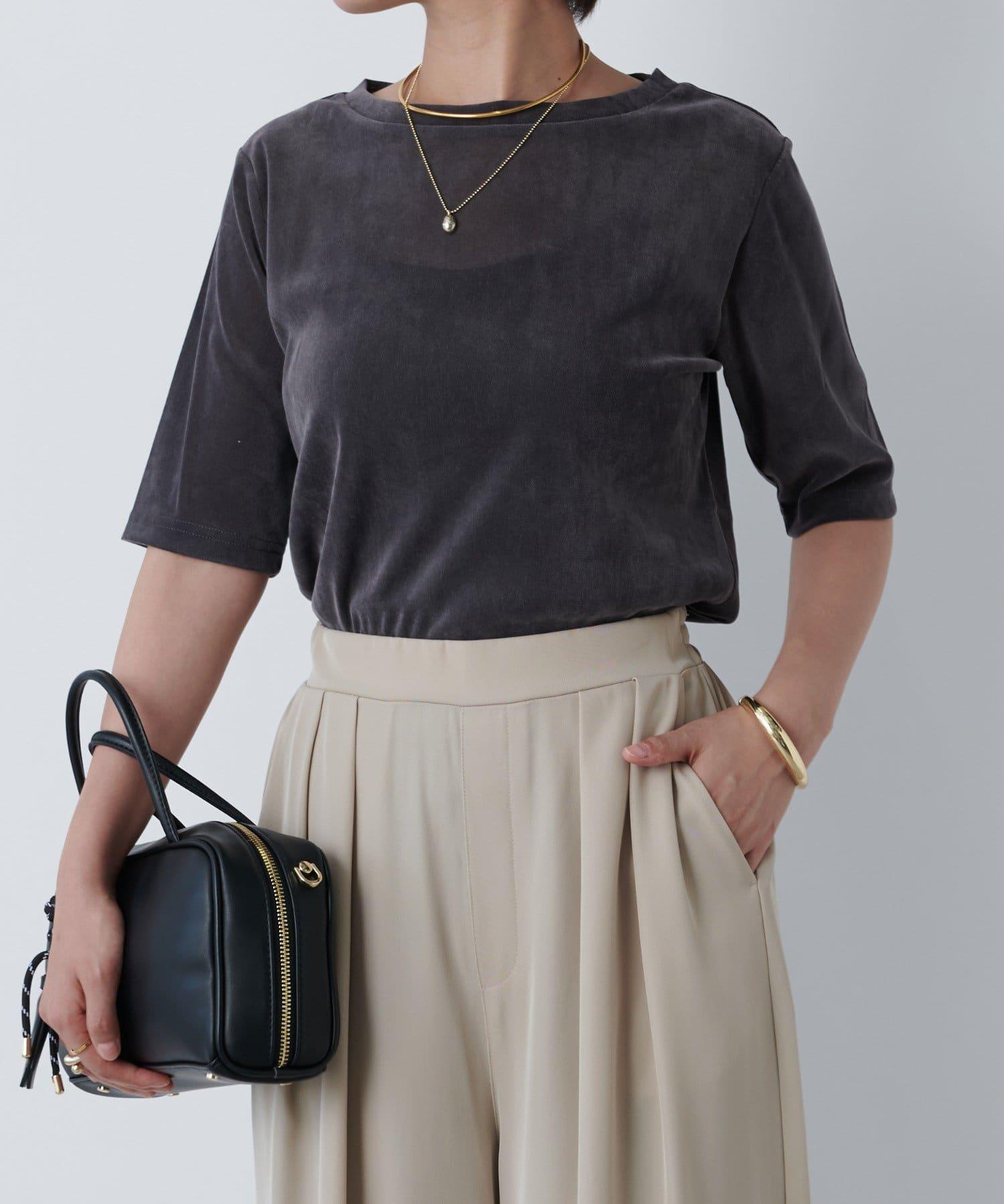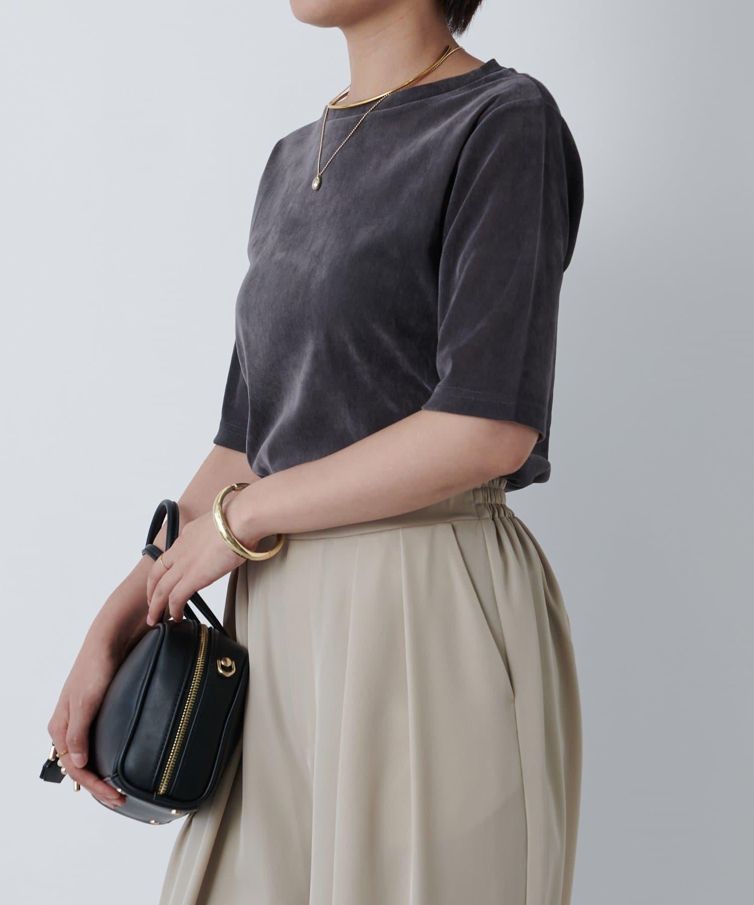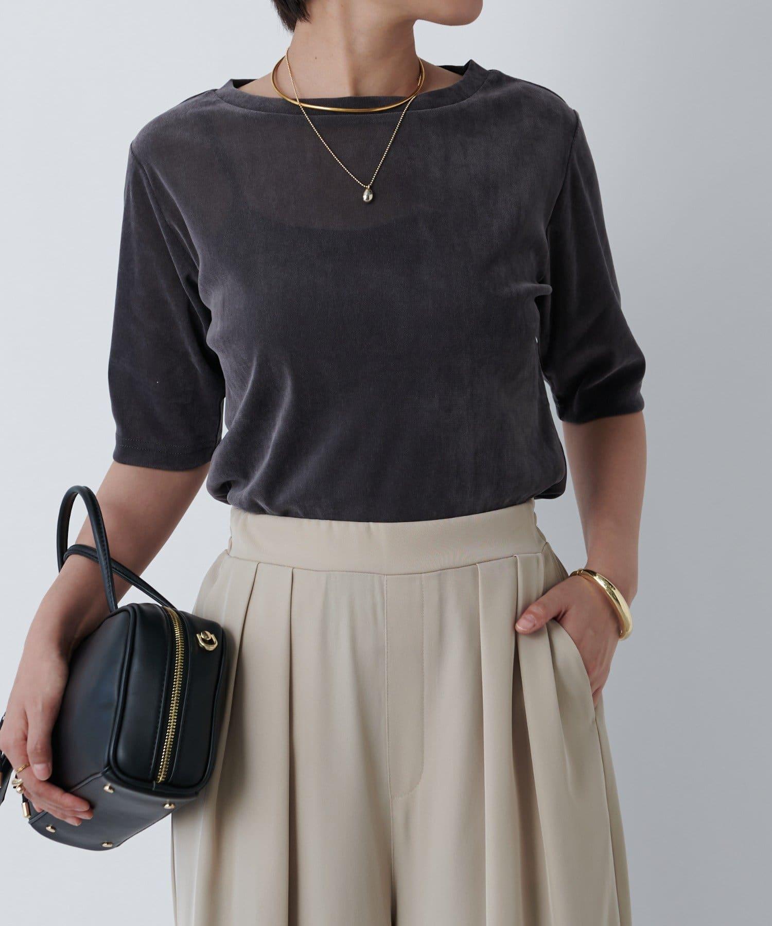 "低調透明感·百搭" 薄絨面料五分袖套頭衫
