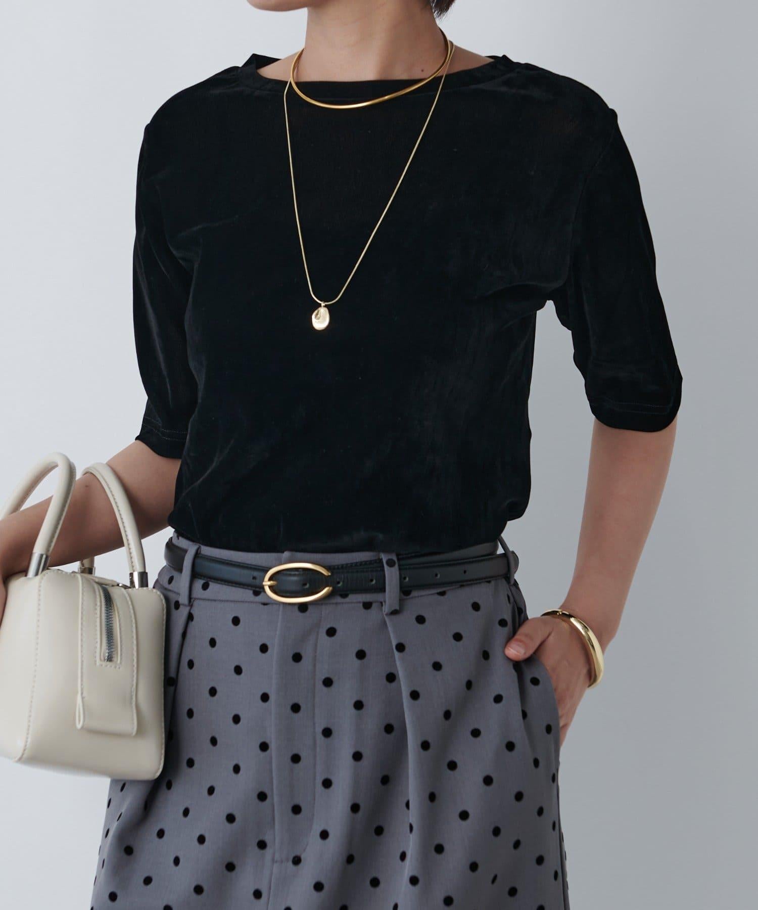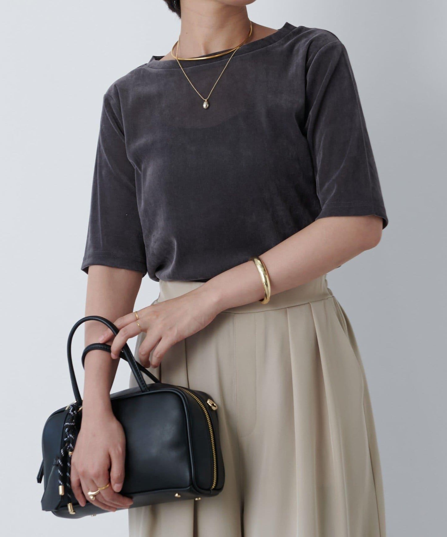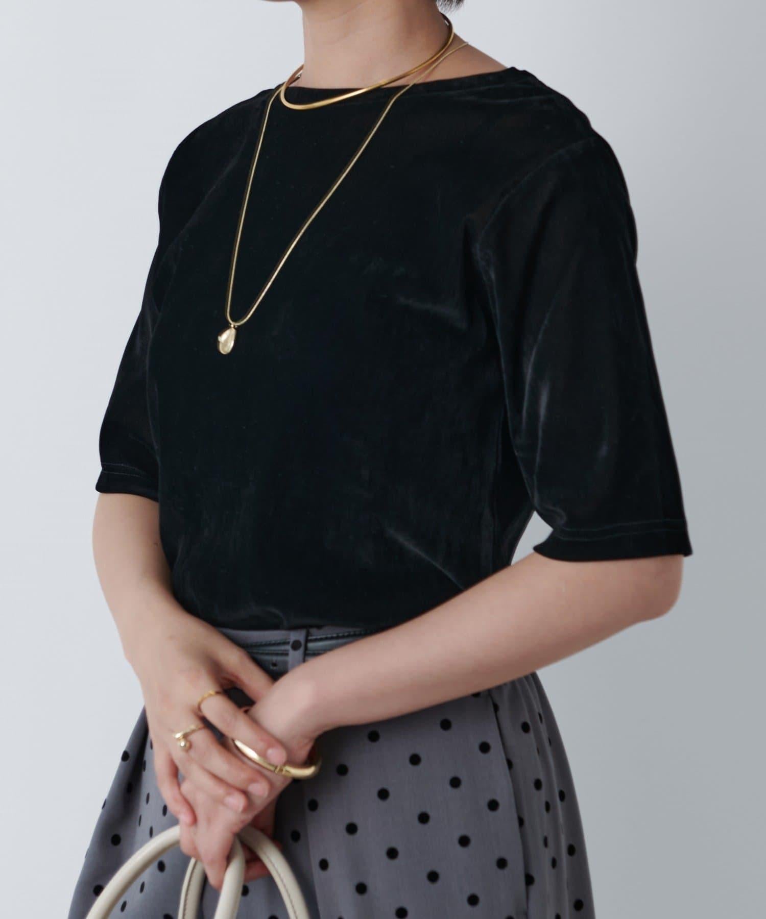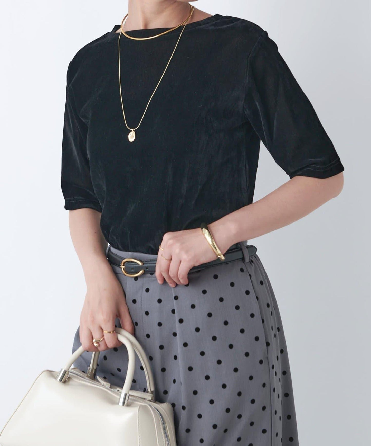 "低調透明感·百搭" 薄絨面料五分袖套頭衫