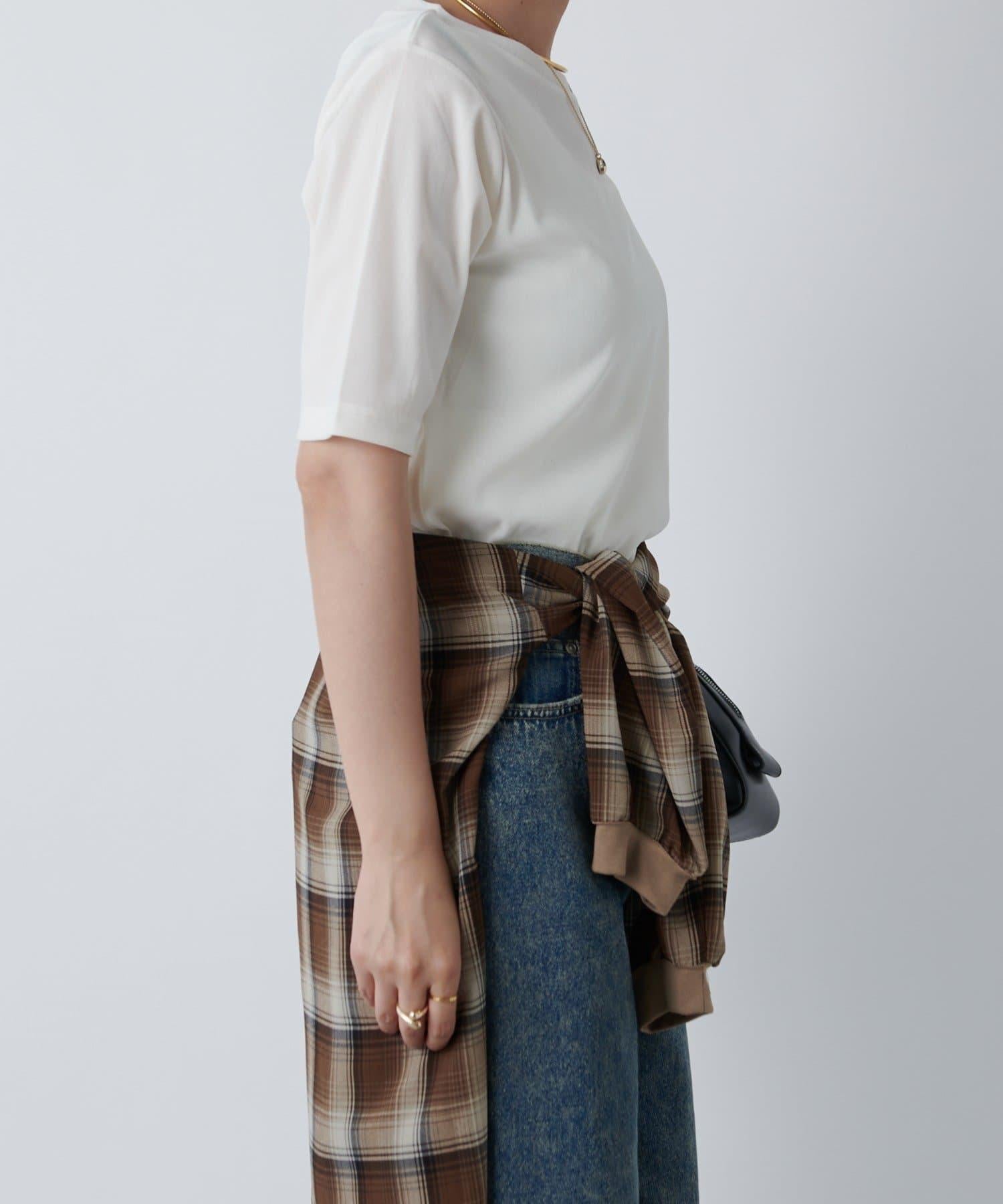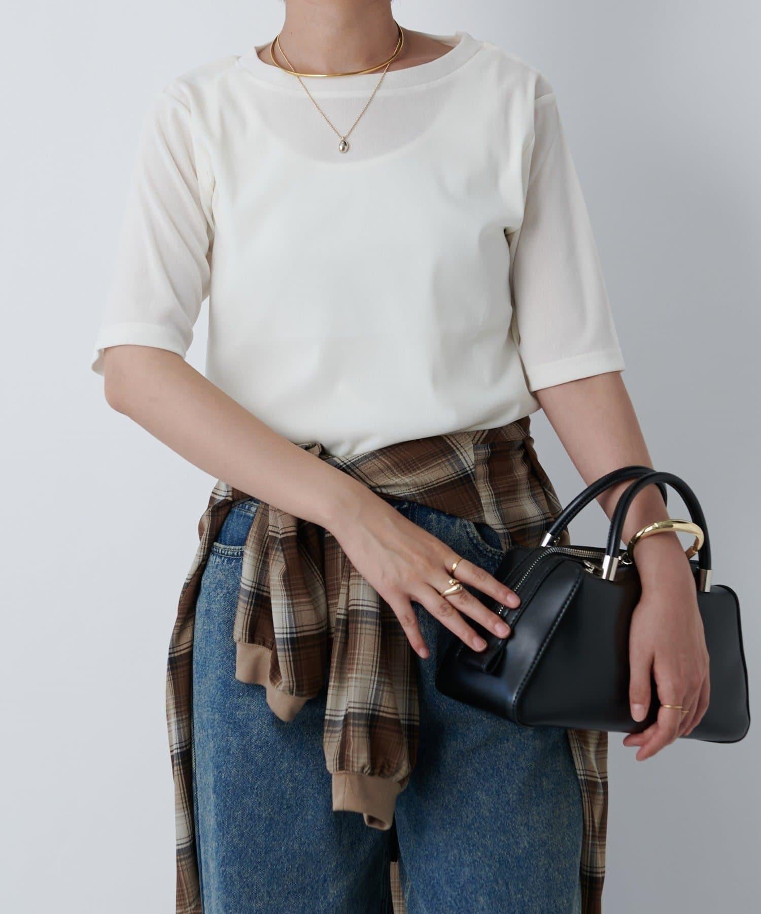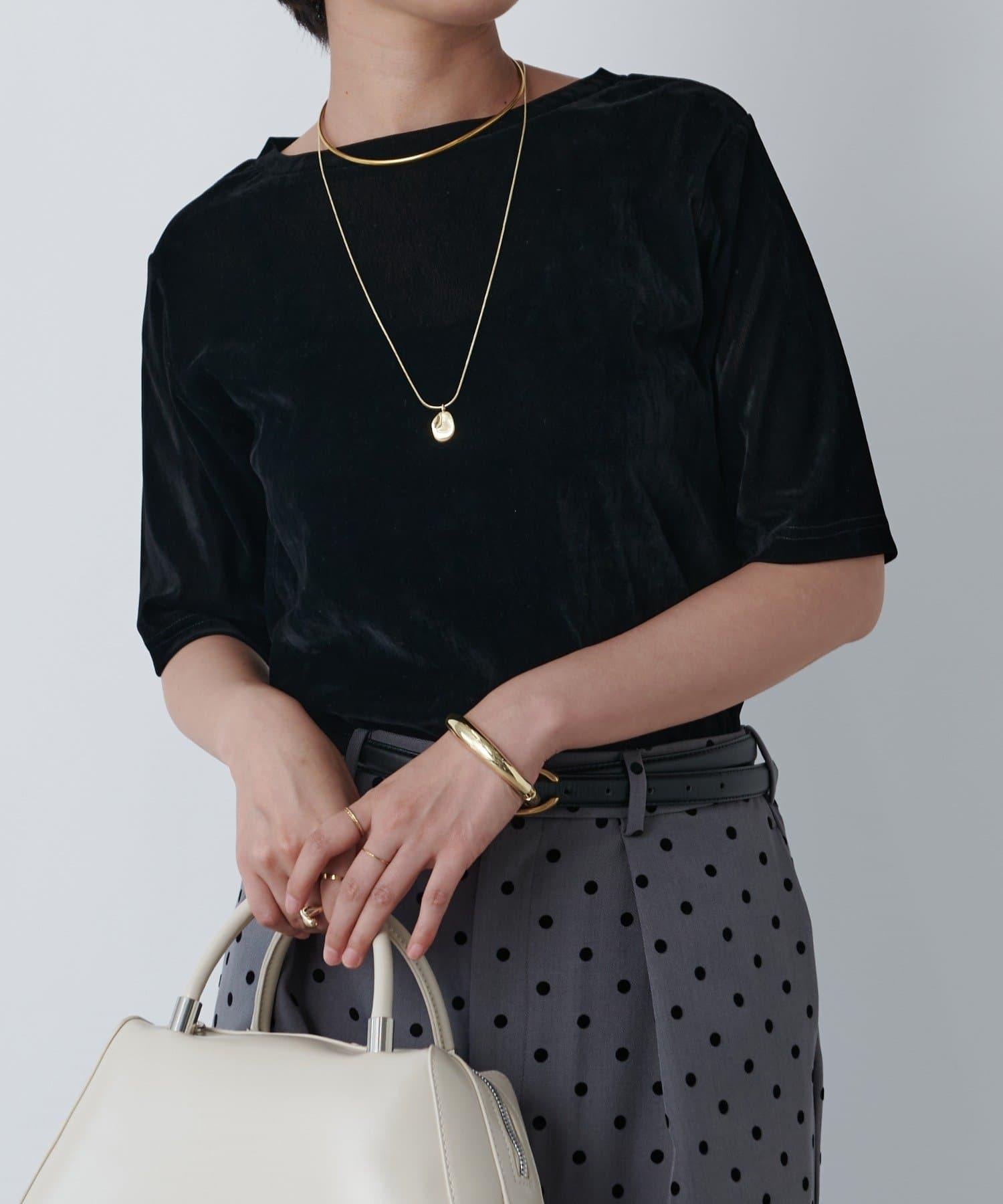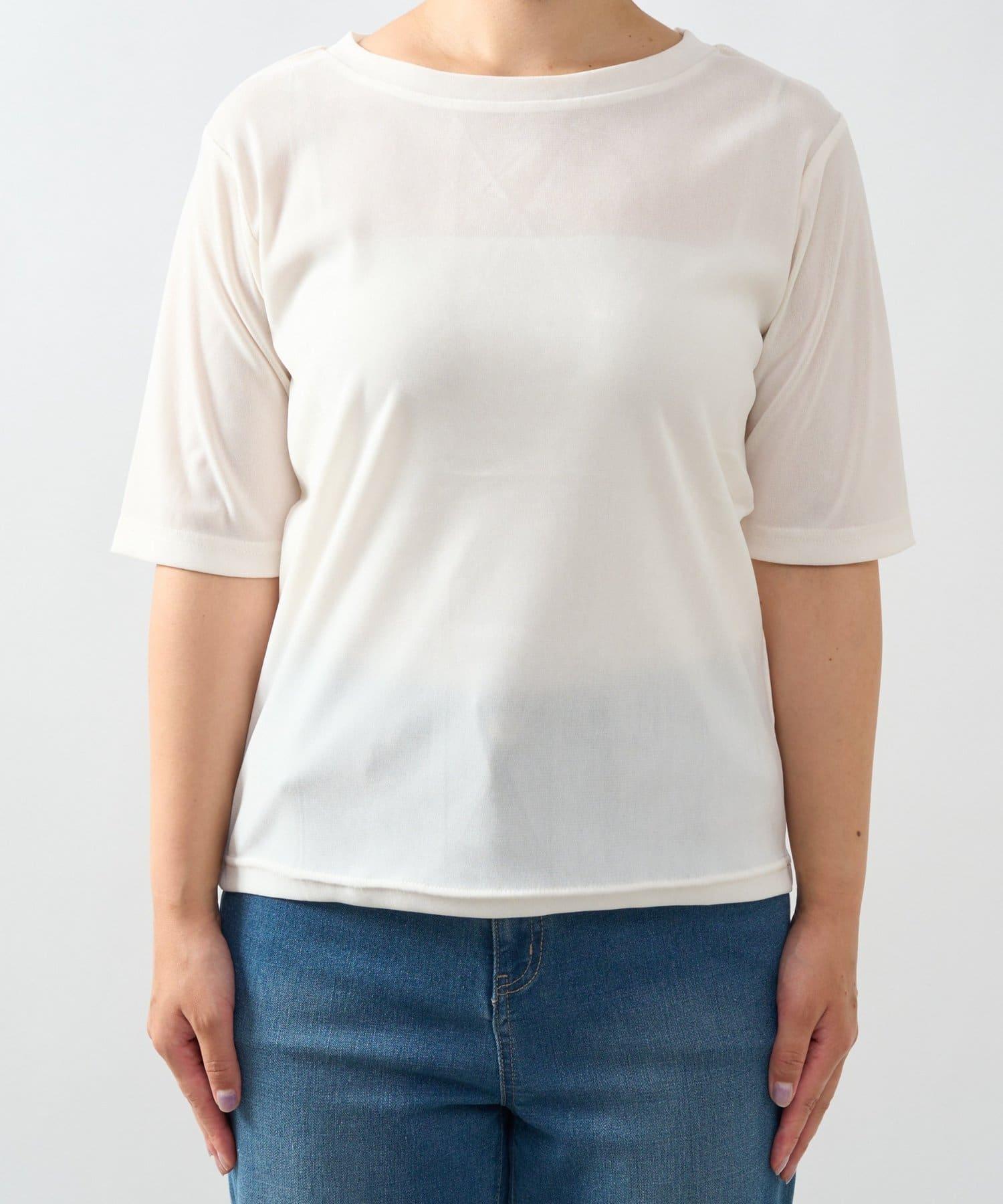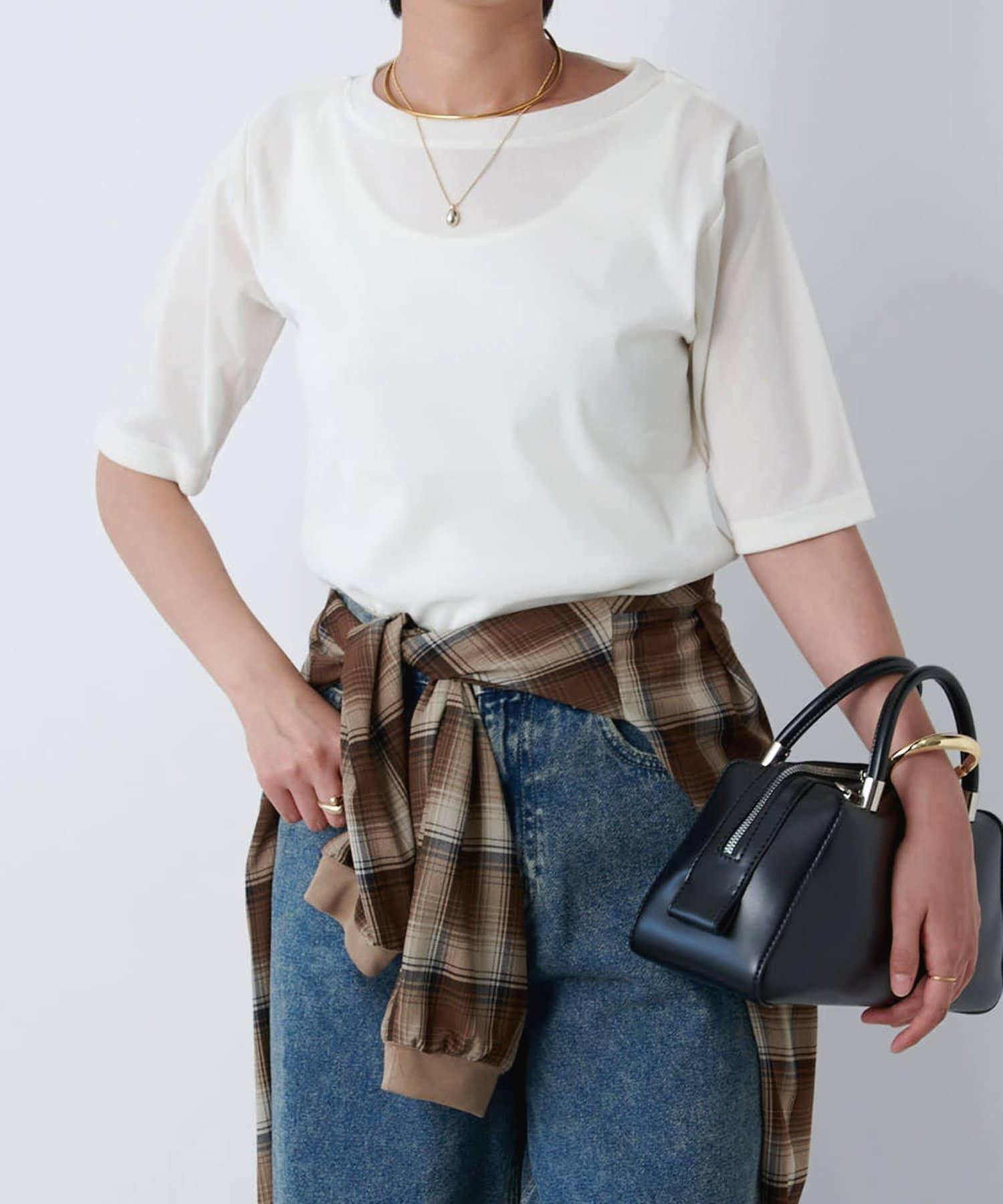 "低調透明感·百搭" 薄絨面料五分袖套頭衫