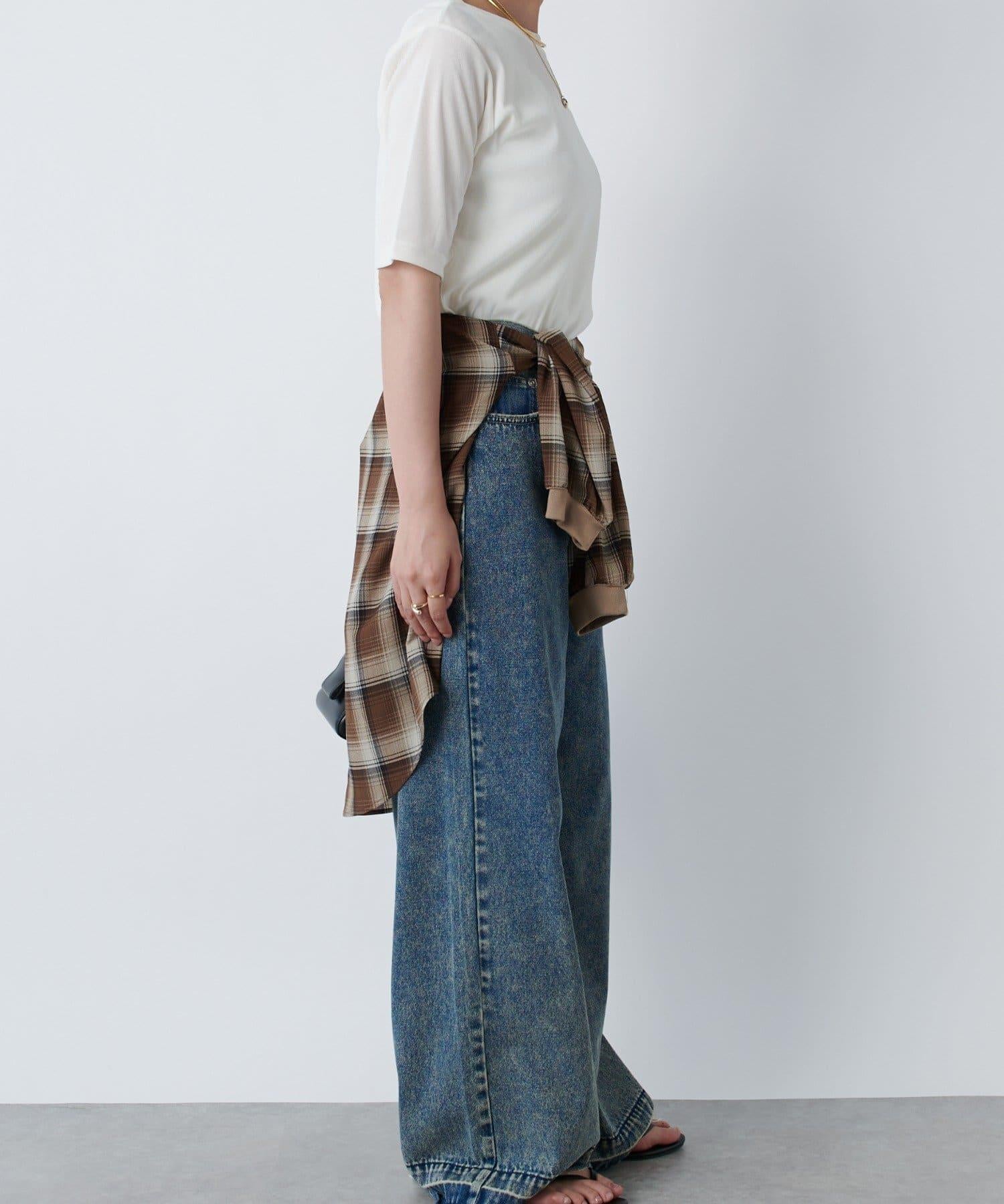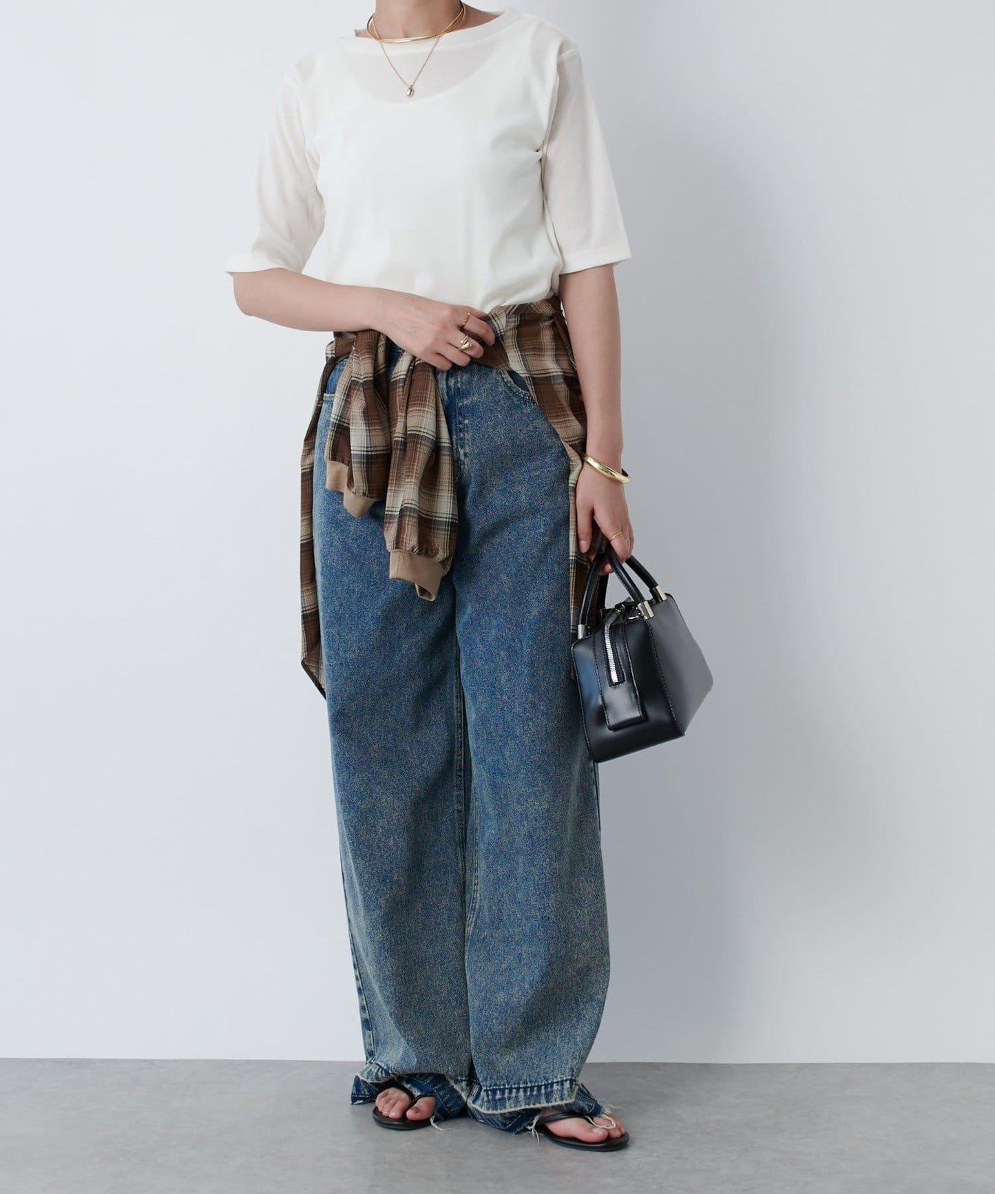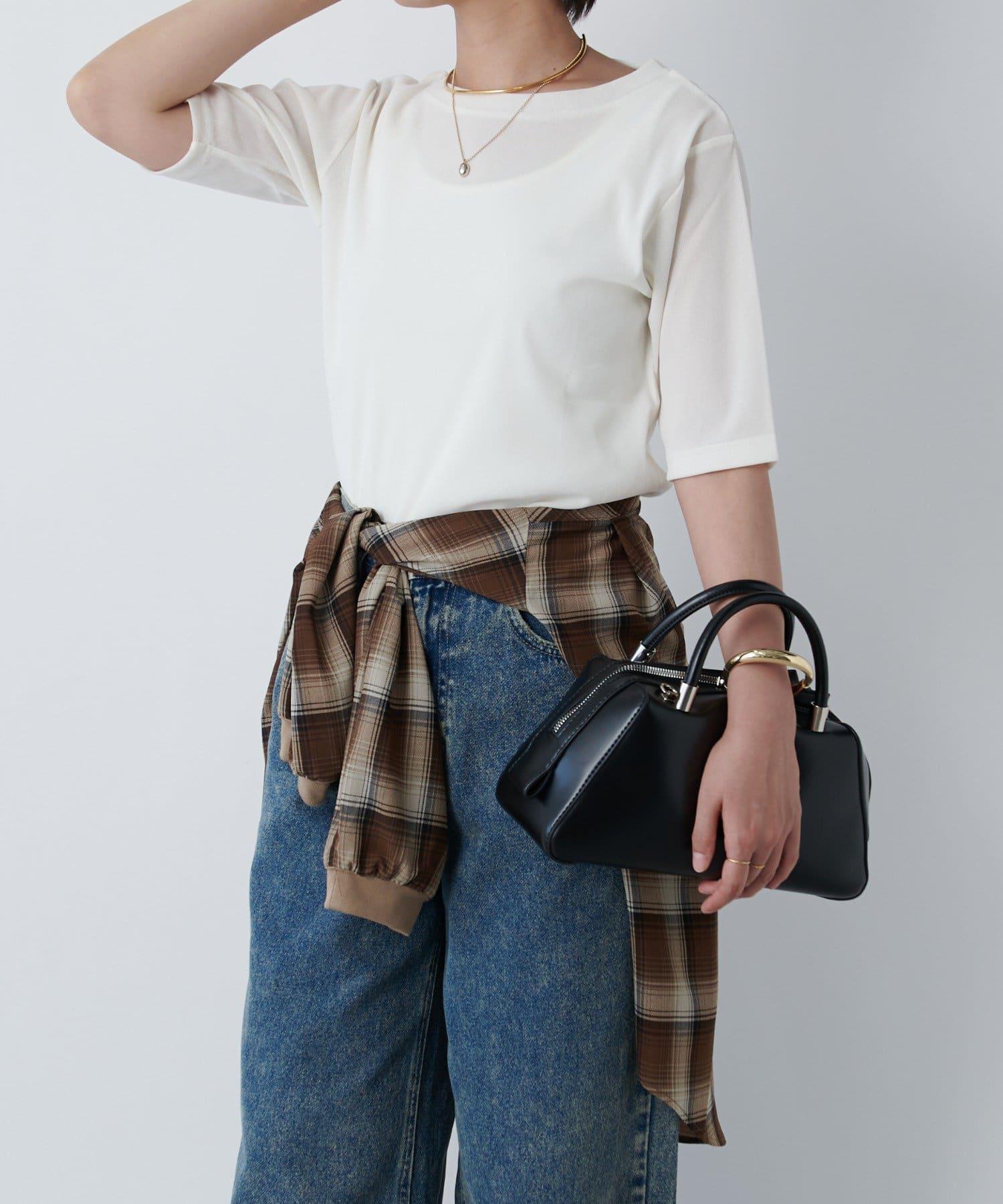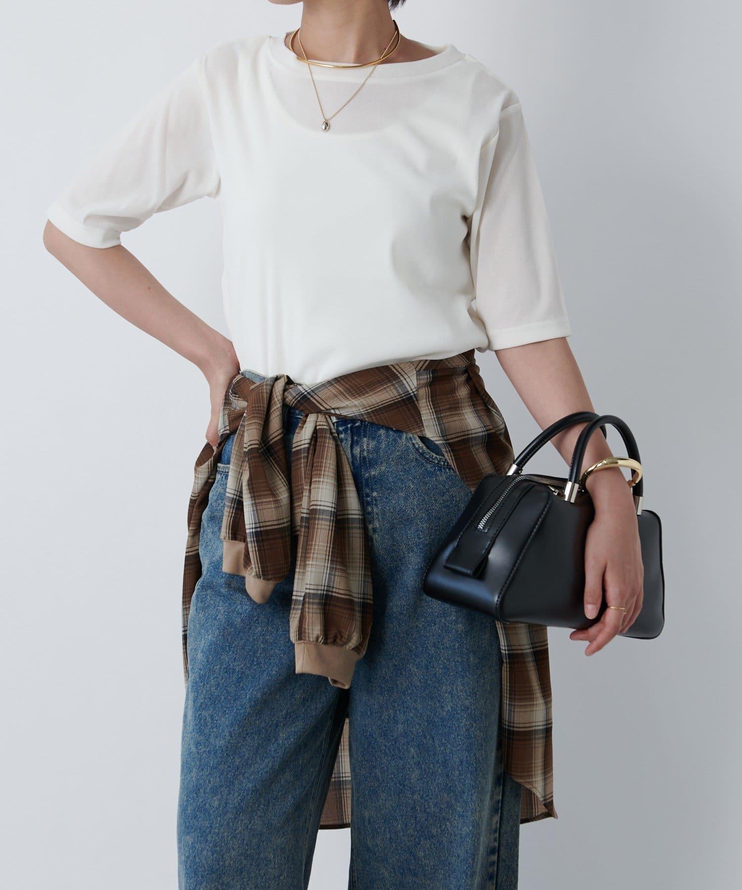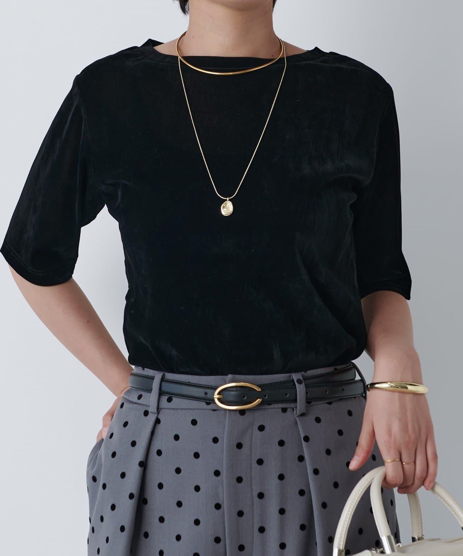 "低調透明感·百搭" 薄絨面料五分袖套頭衫