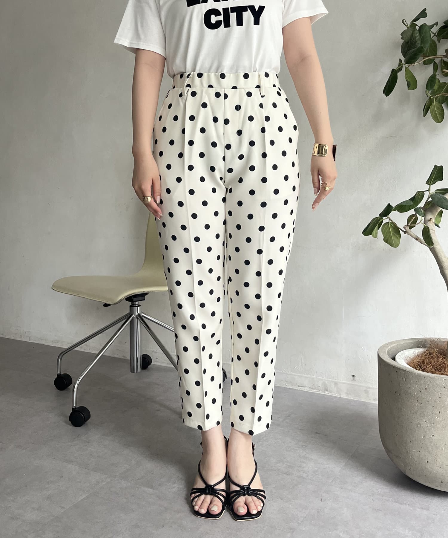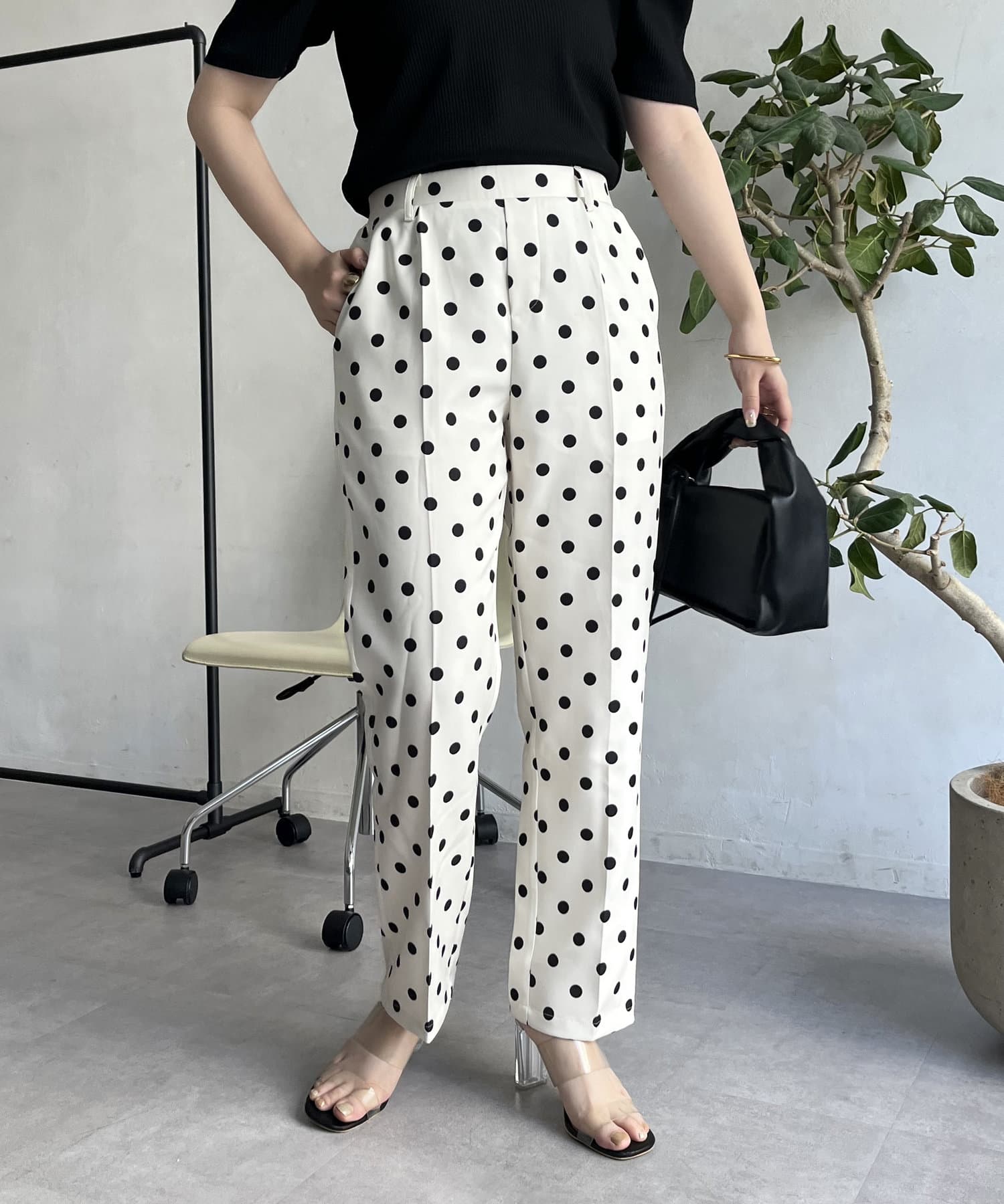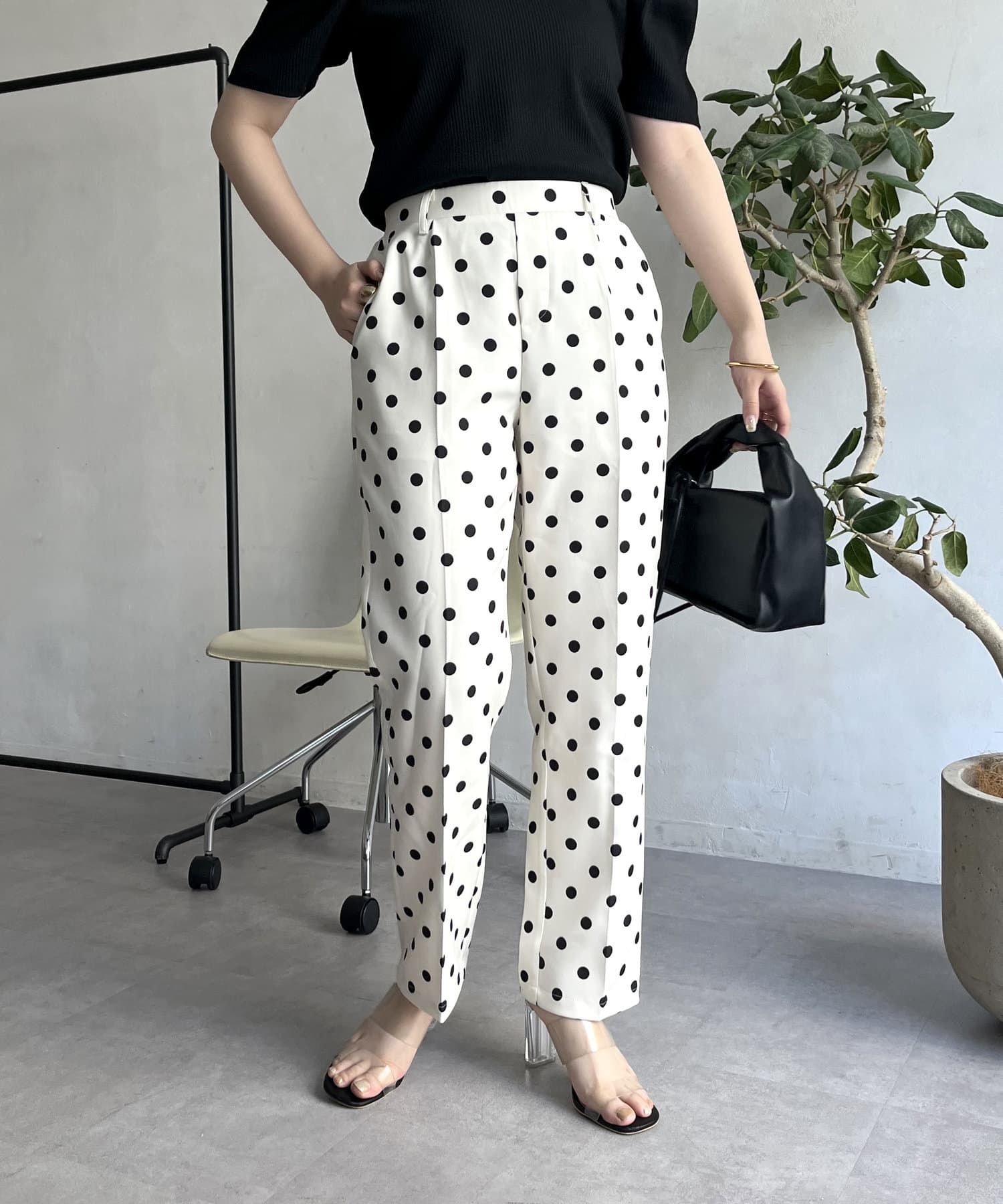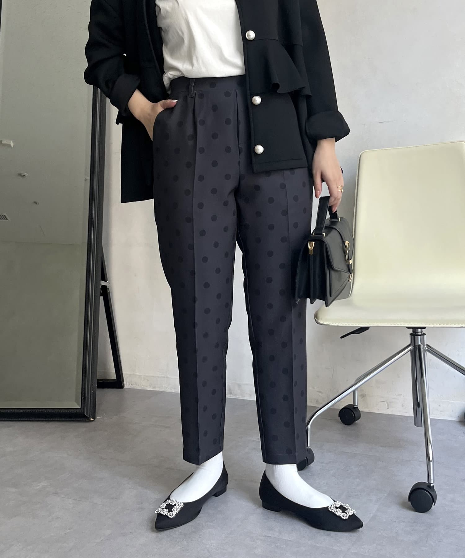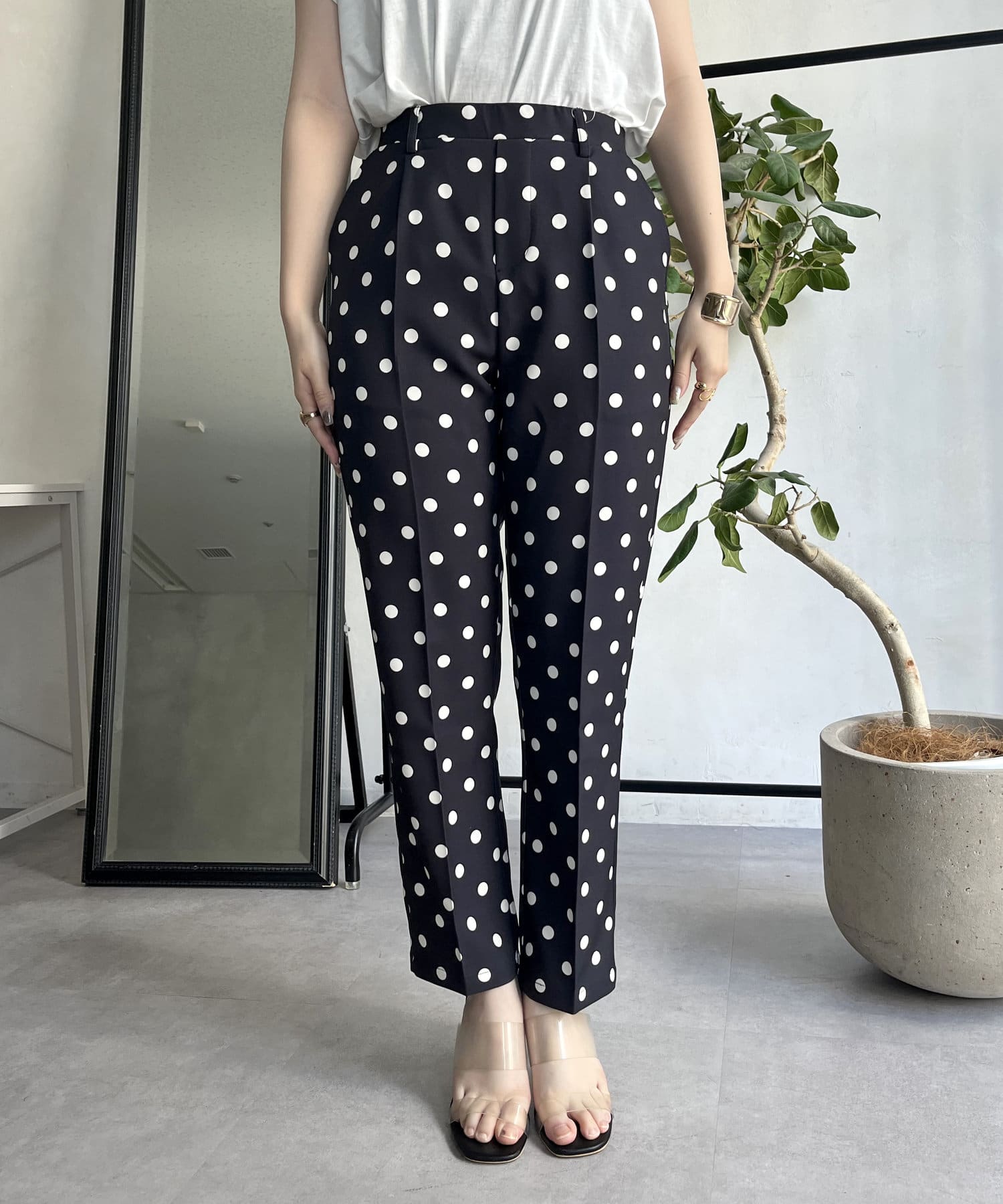 【低身高尺碼有】圓點中心壓腿錐形褲