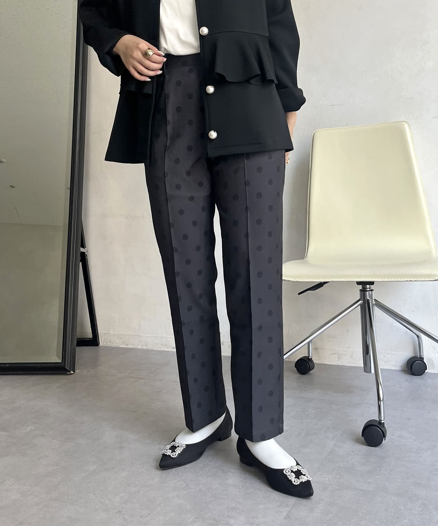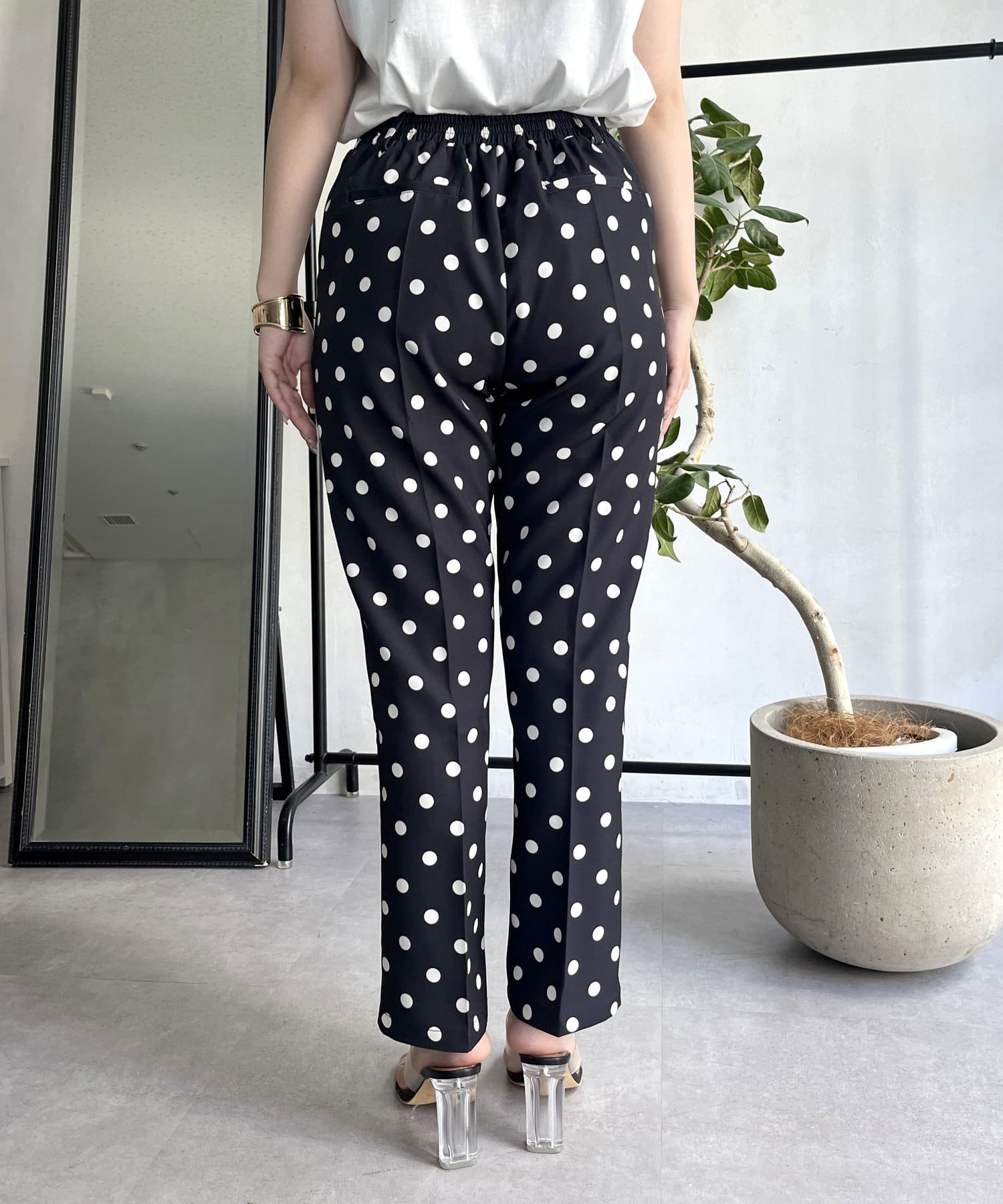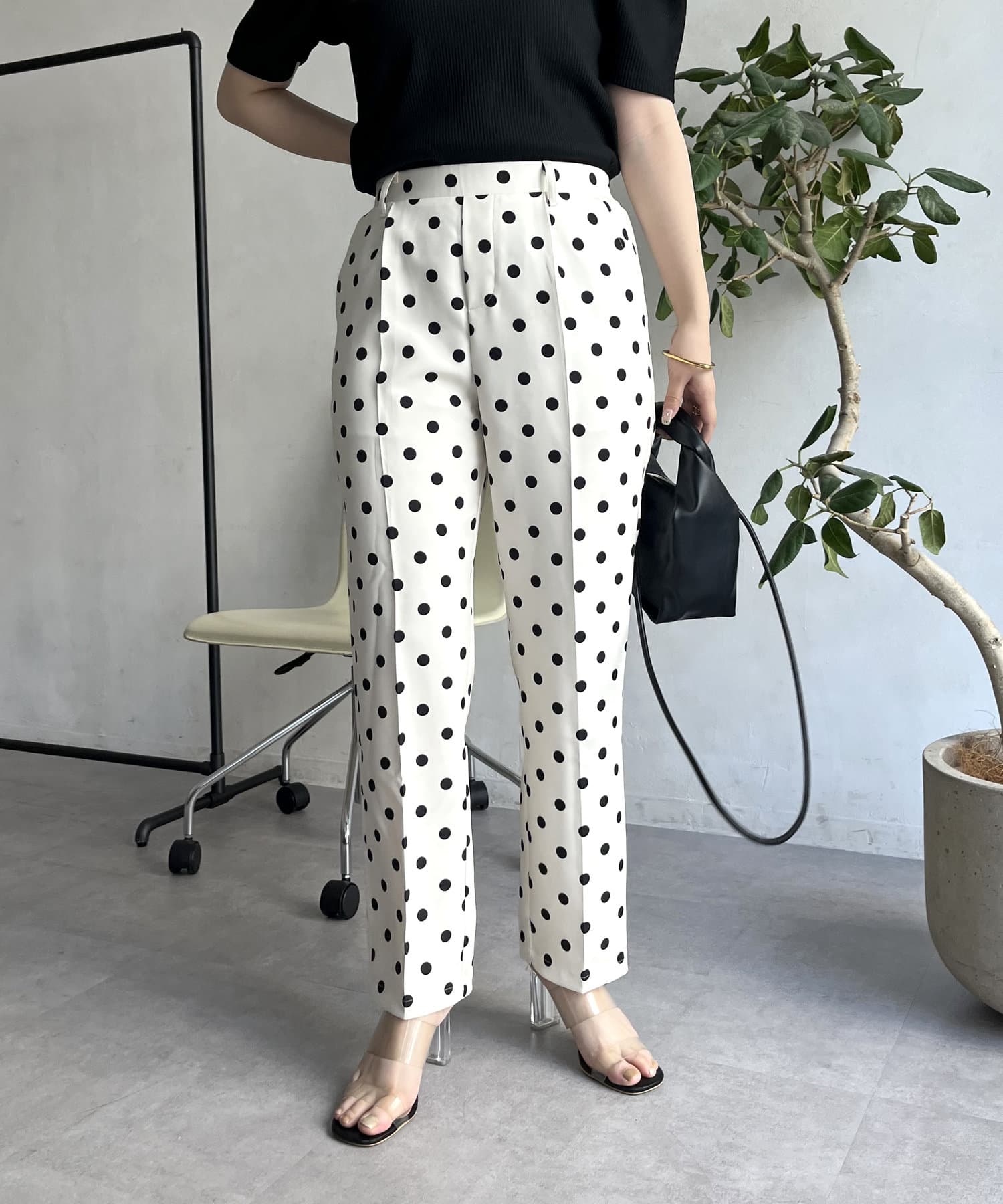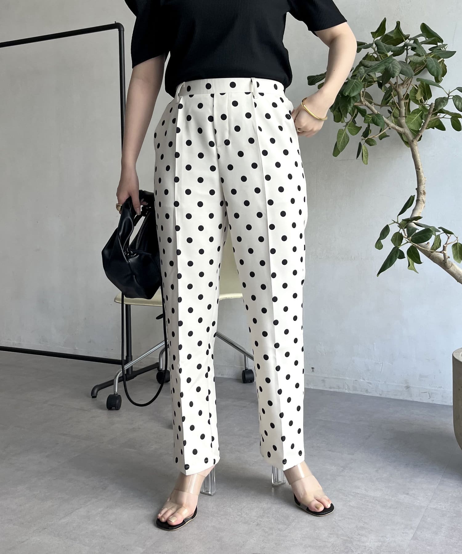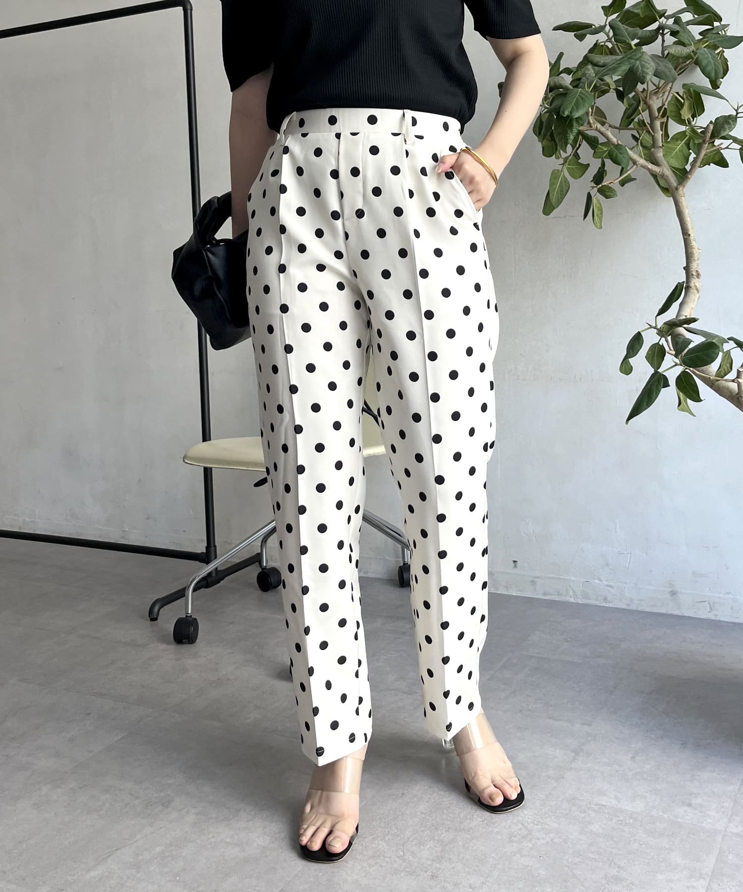 【低身高尺碼有】圓點中心壓腿錐形褲