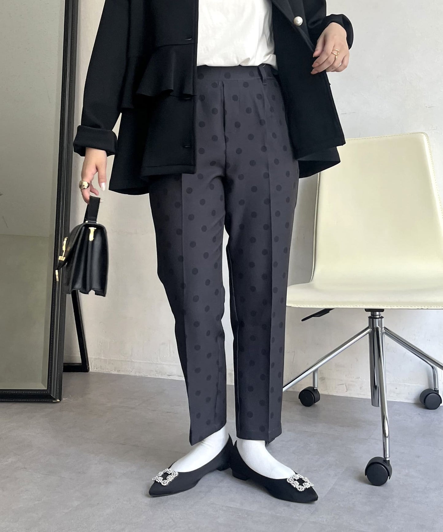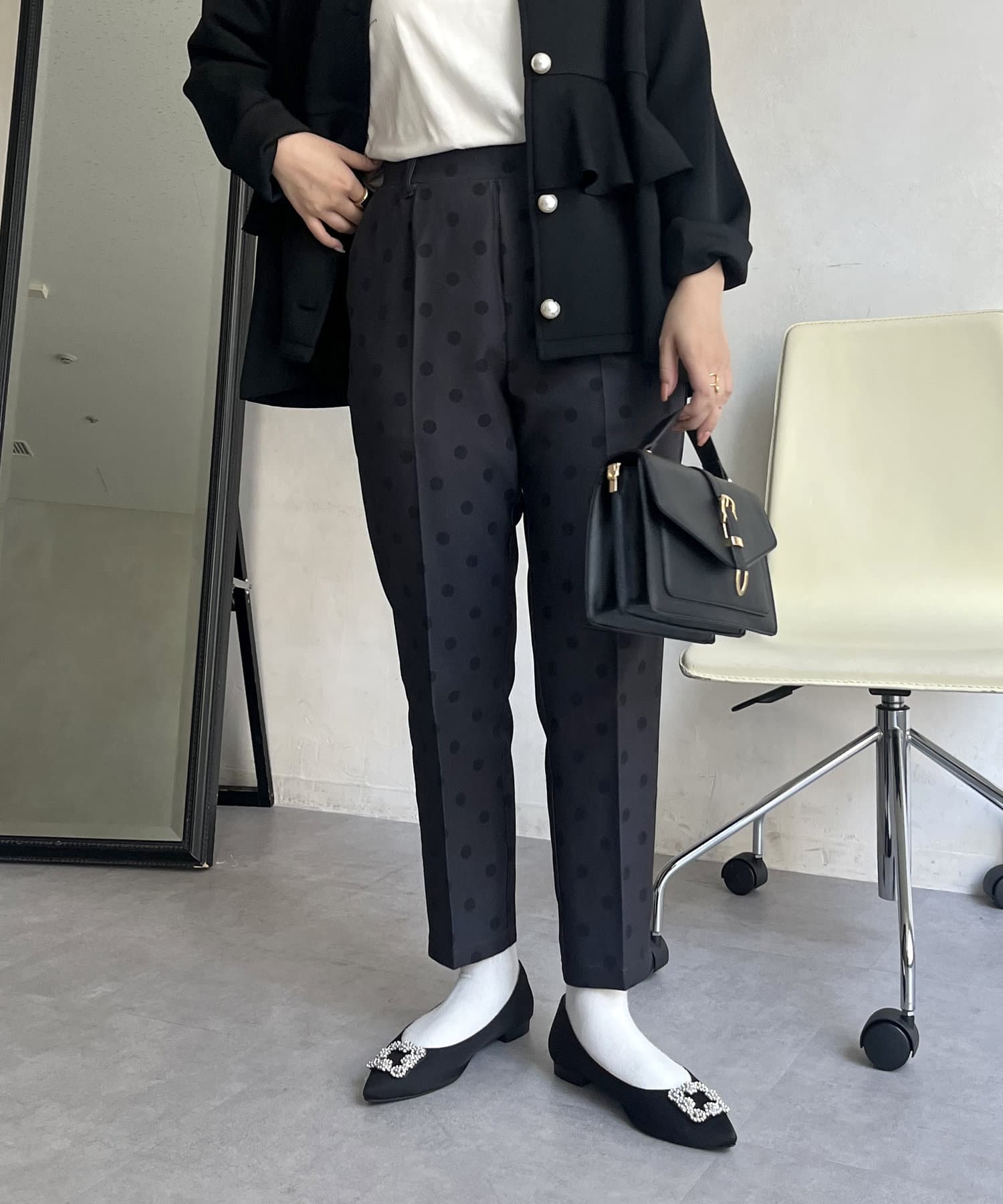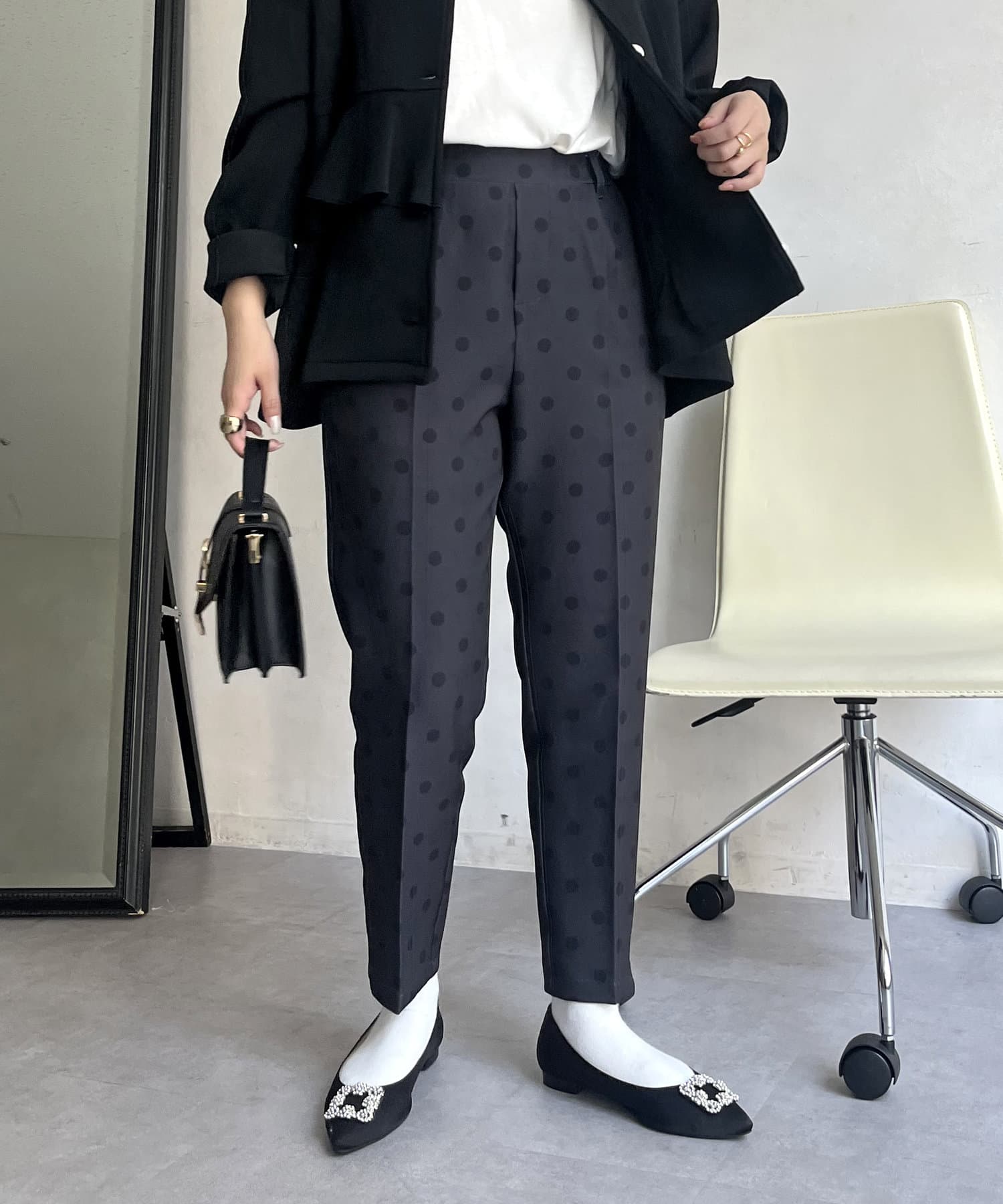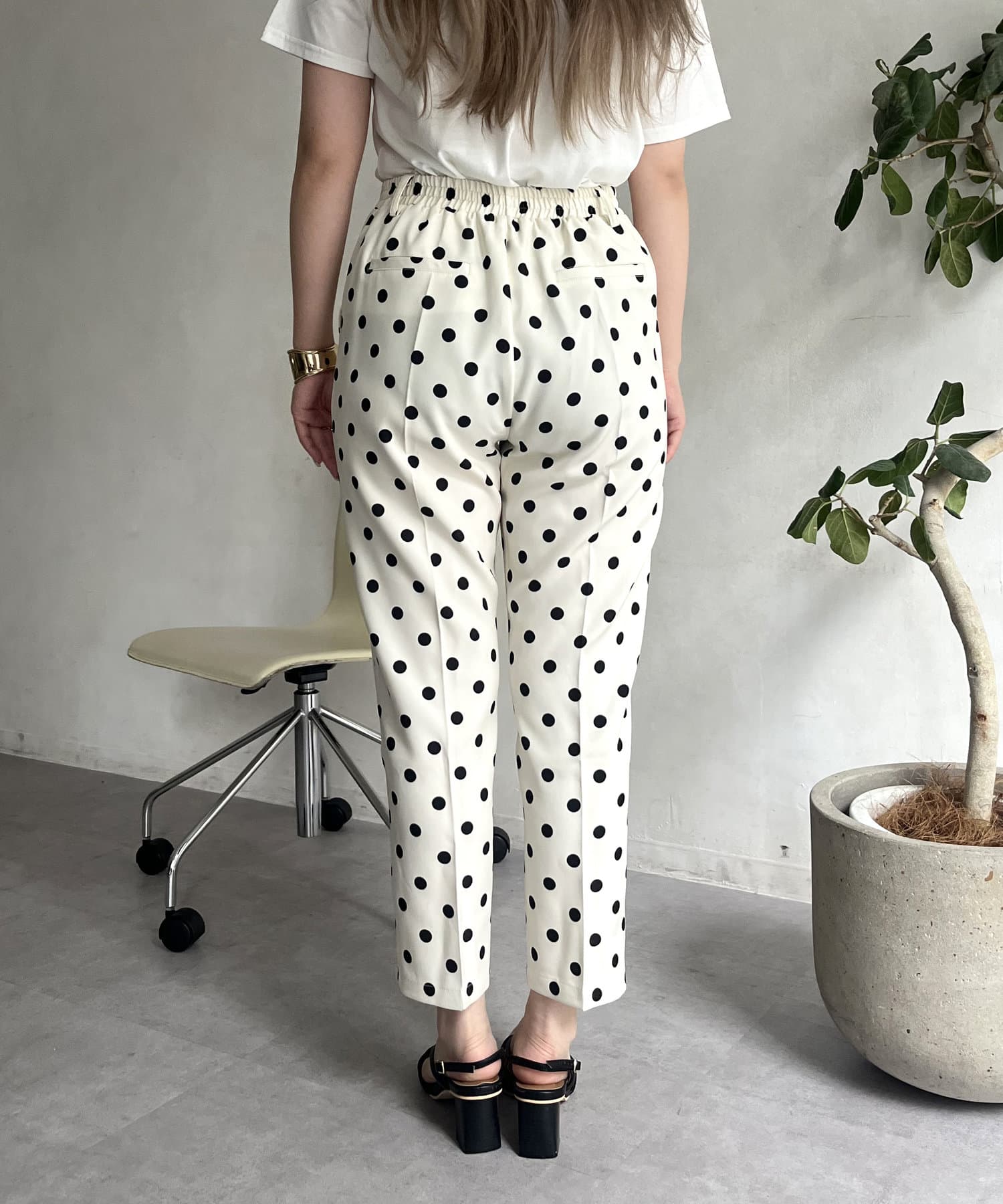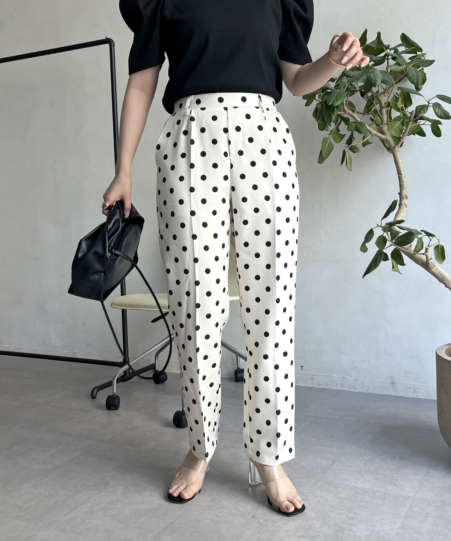 【低身高尺碼有】圓點中心壓腿錐形褲