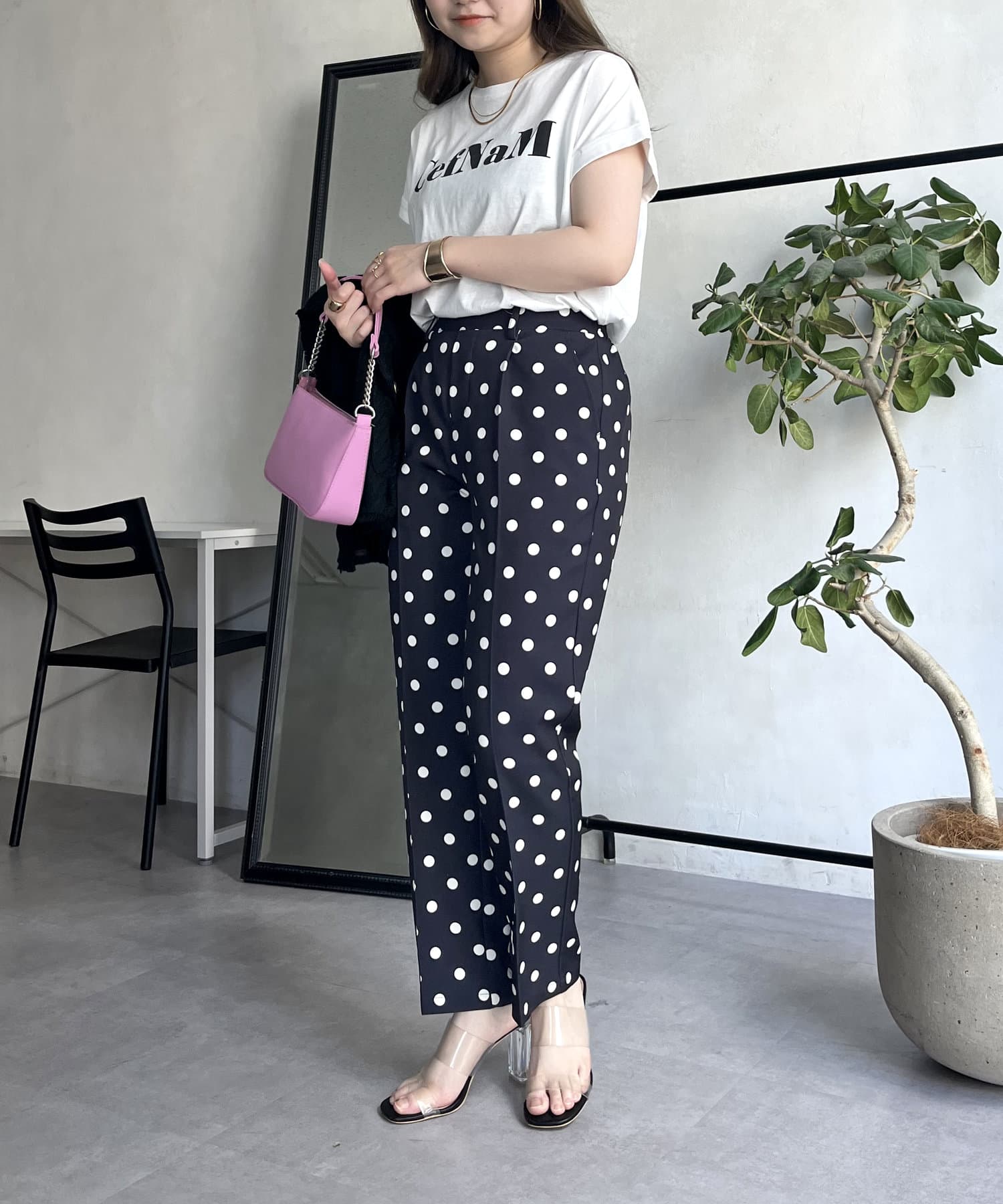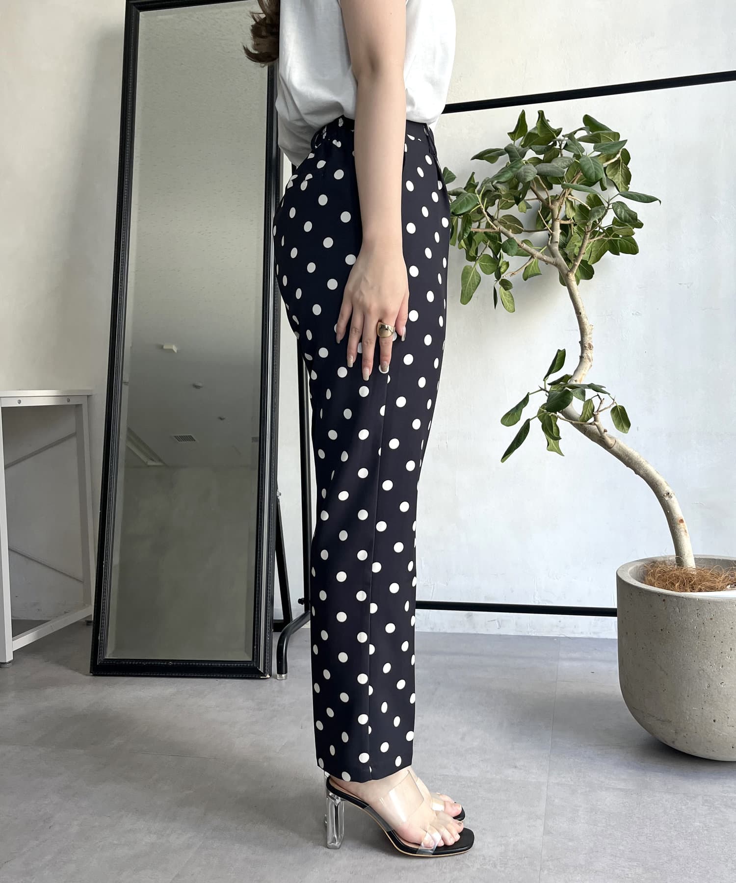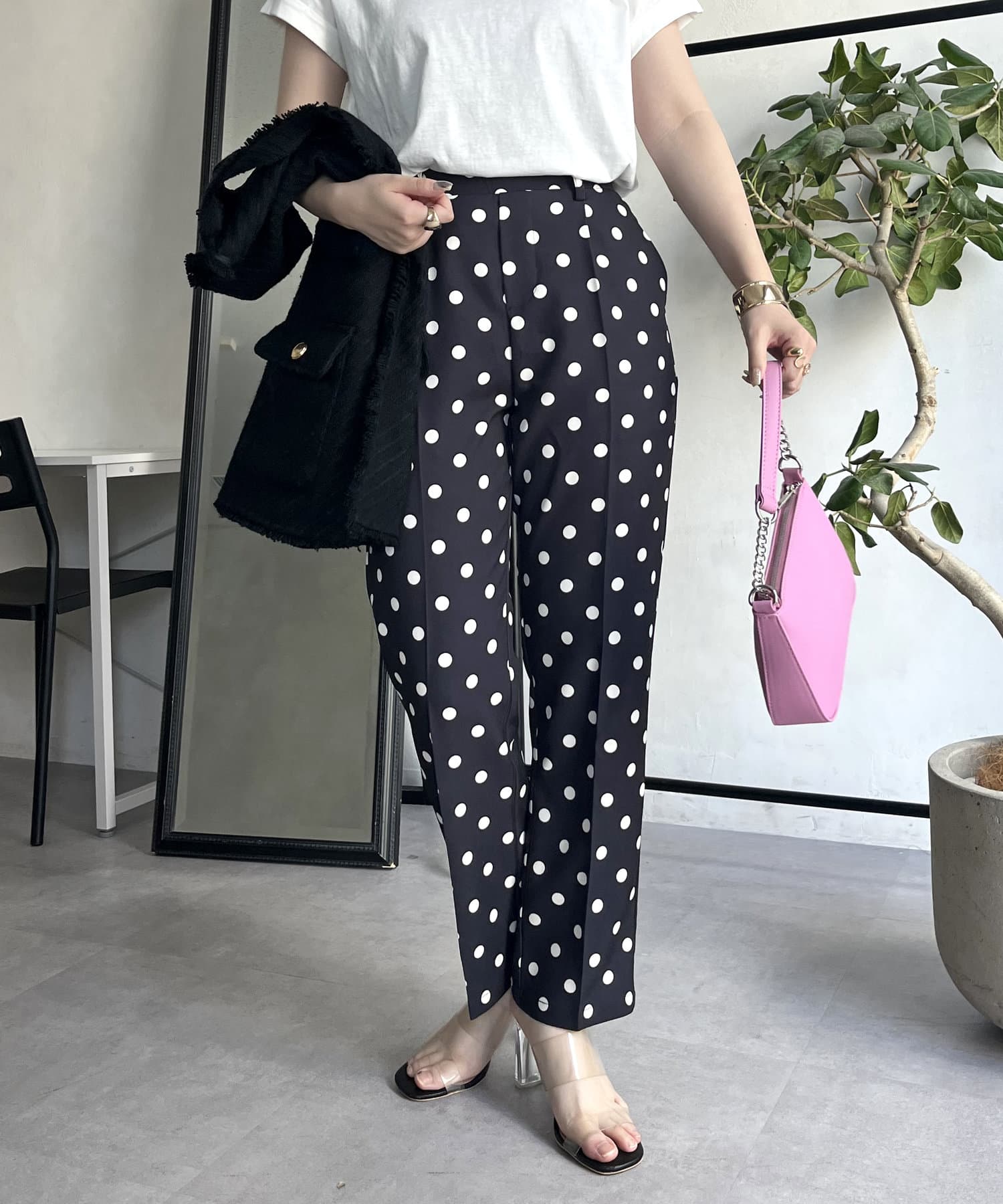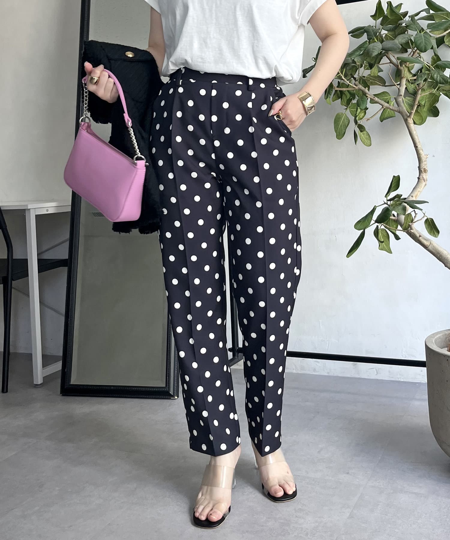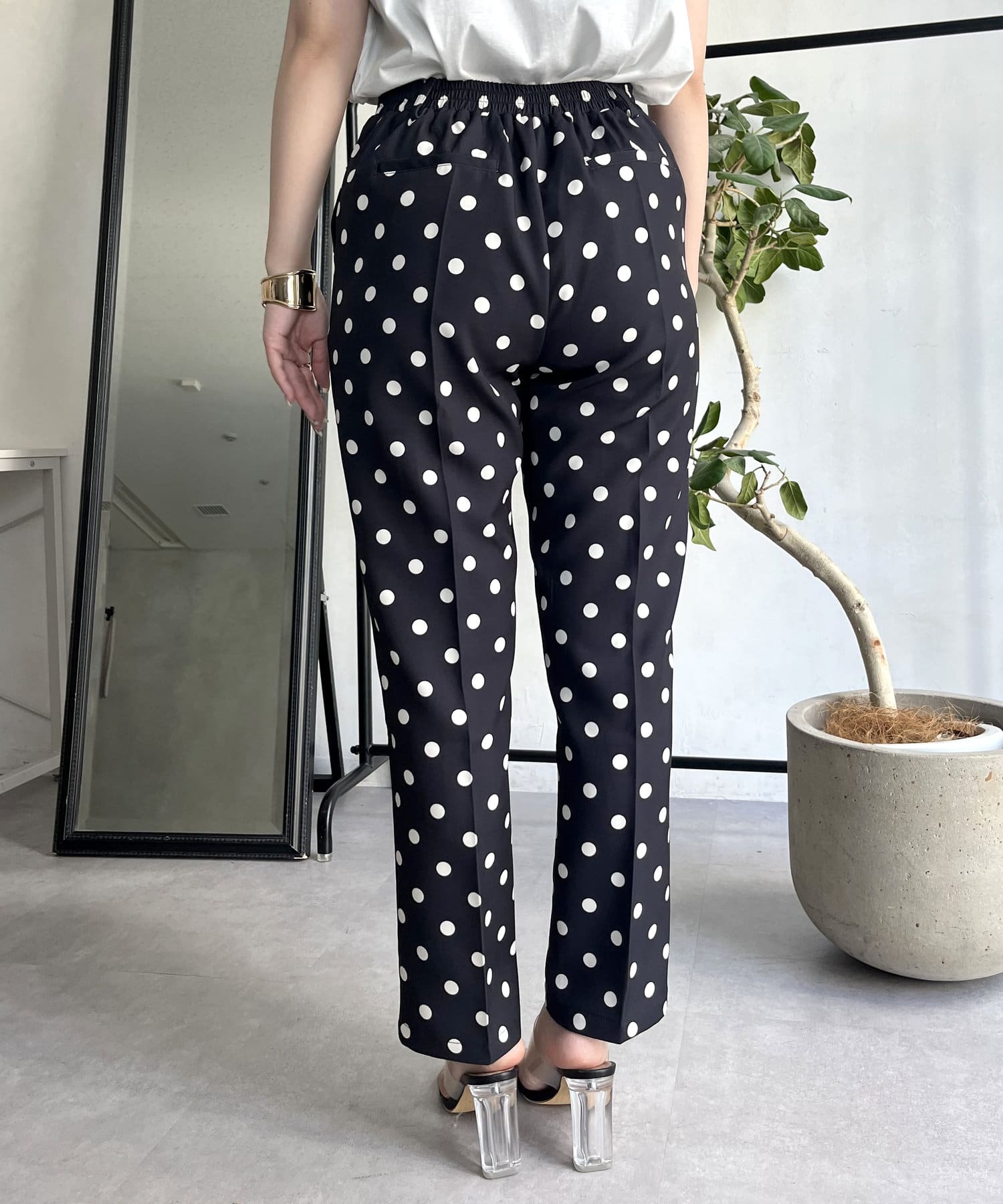 【低身高尺碼有】圓點中心壓腿錐形褲