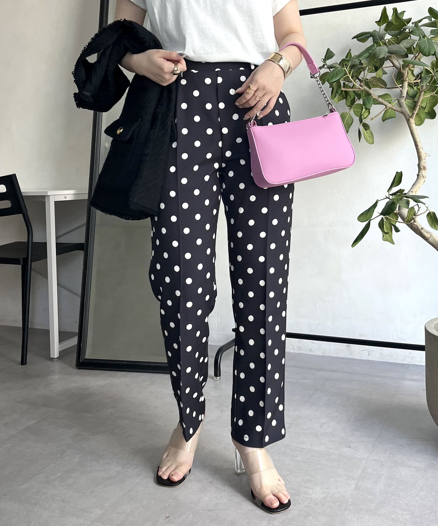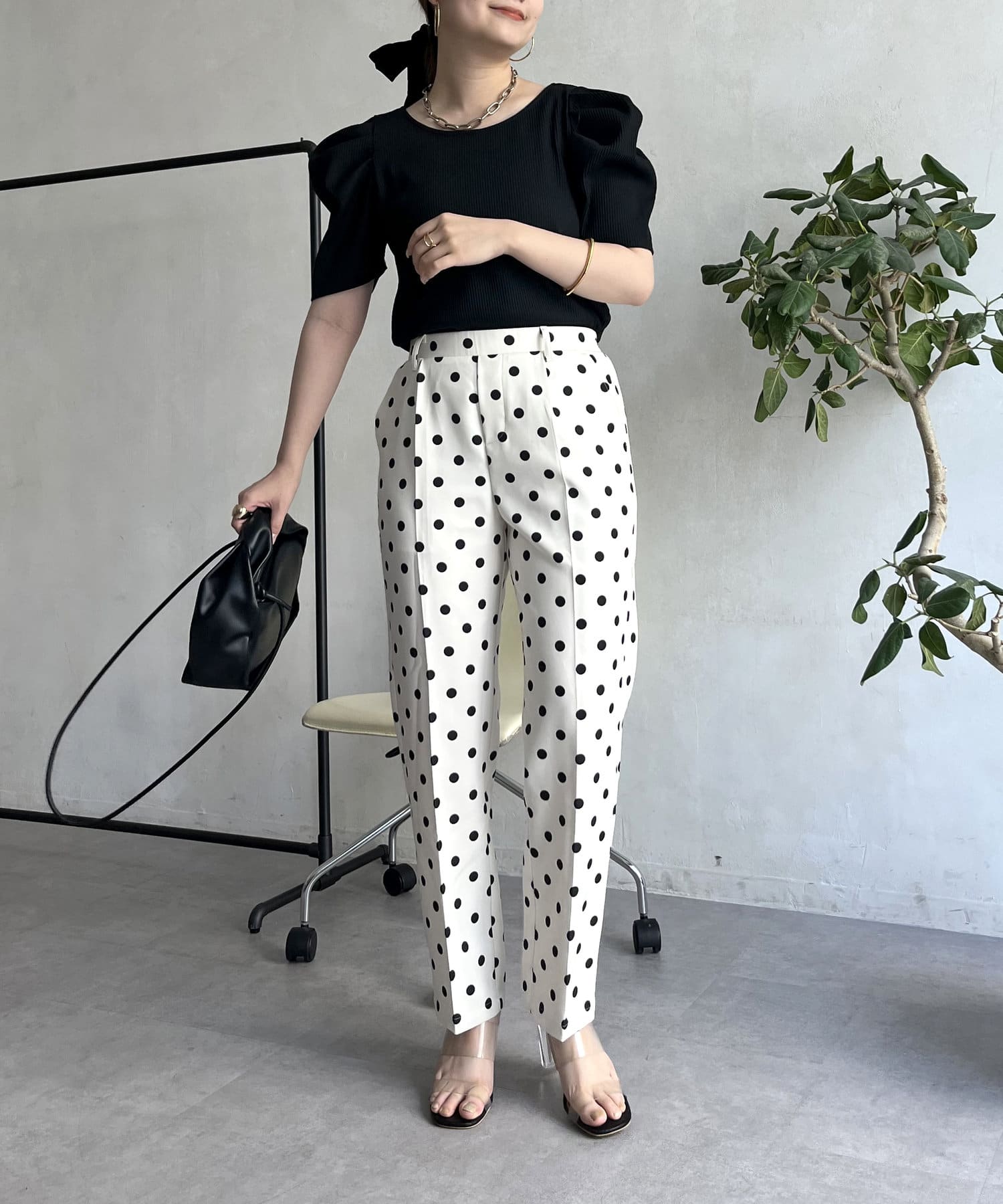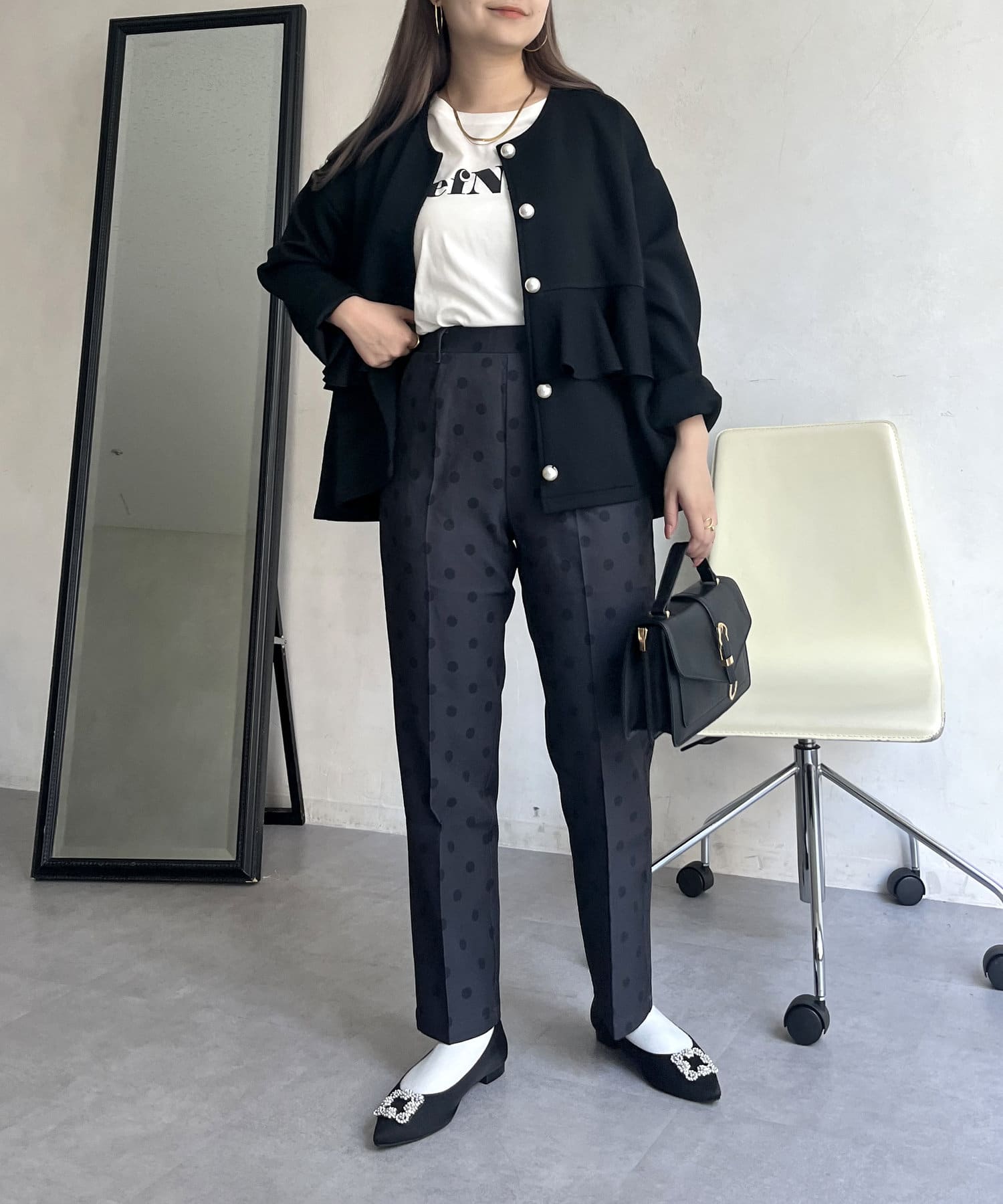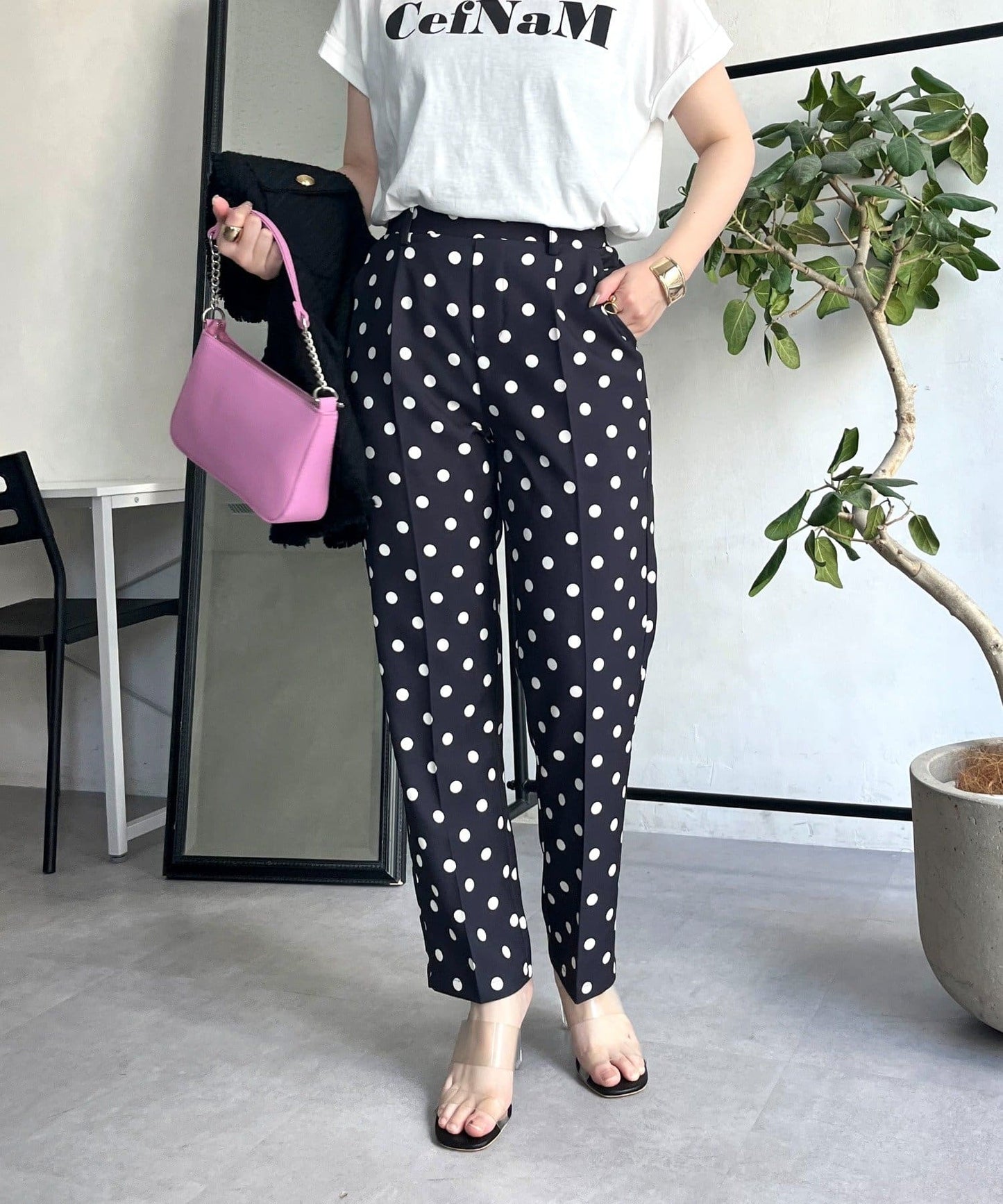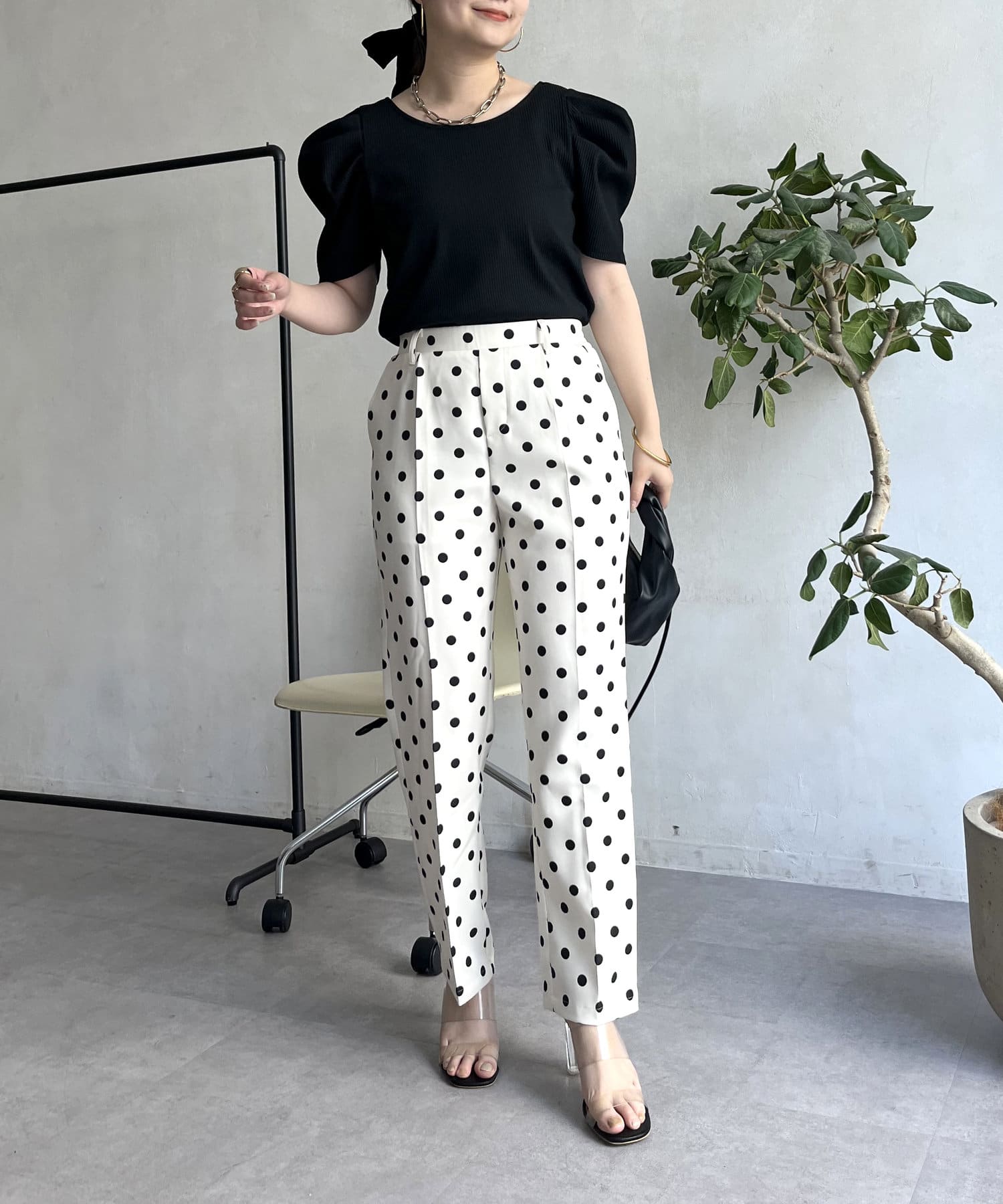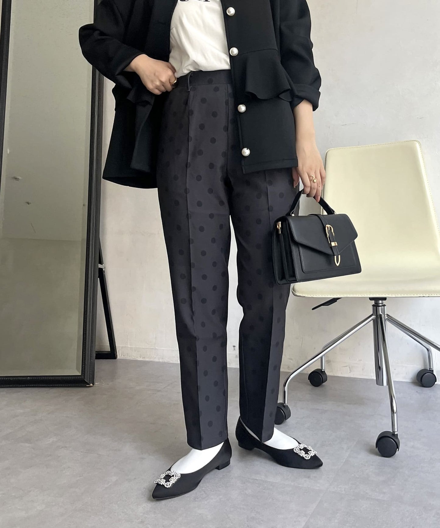 【低身高尺碼有】圓點中心壓腿錐形褲