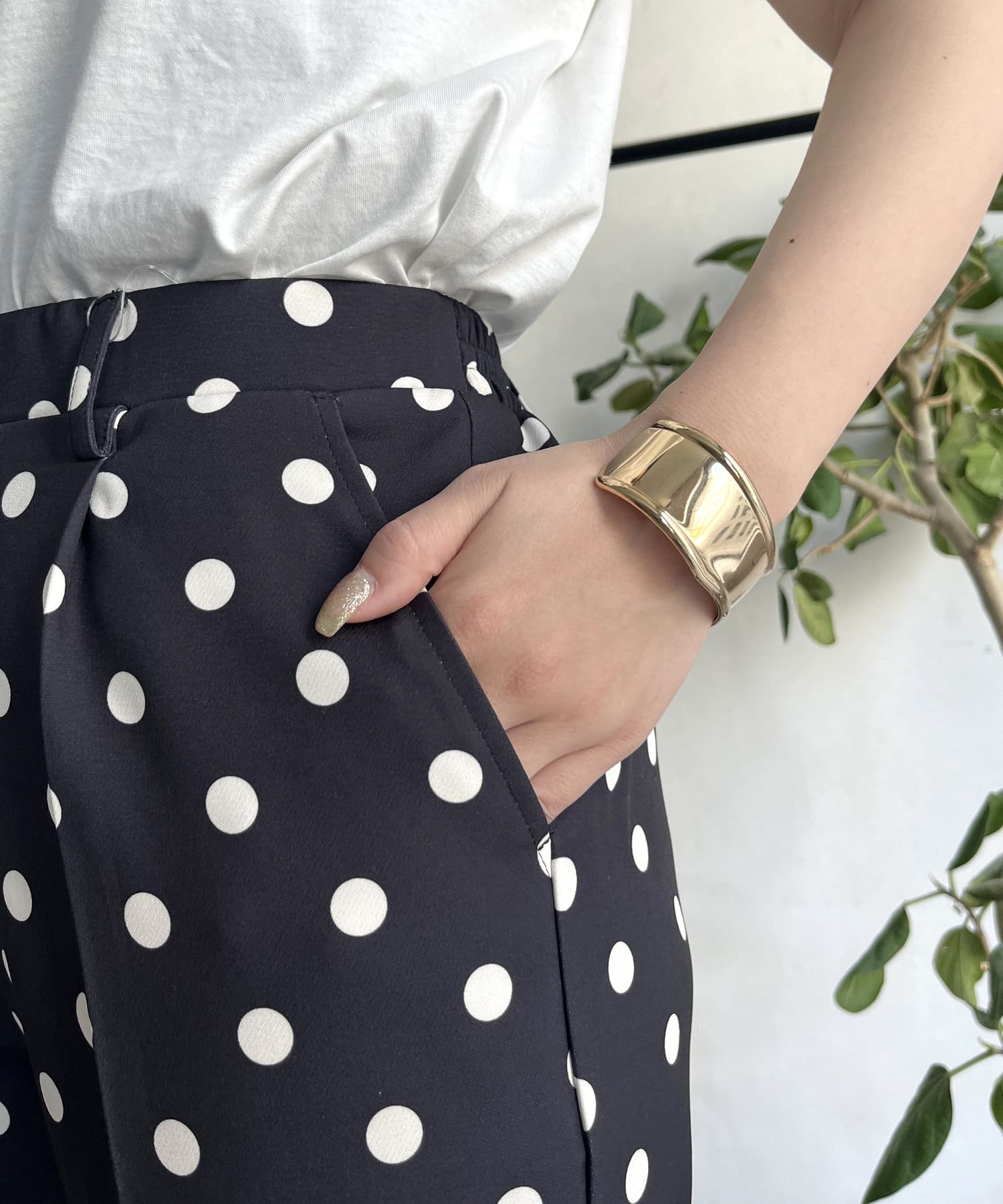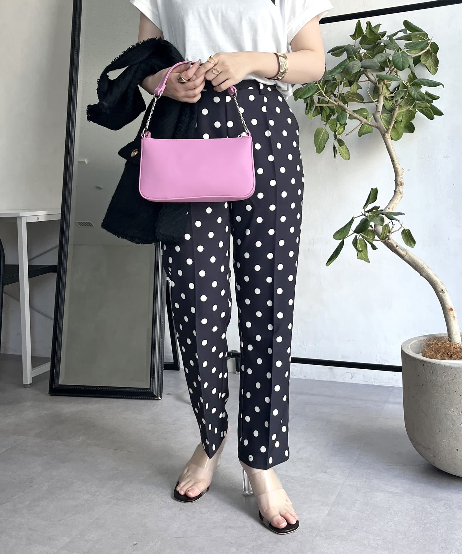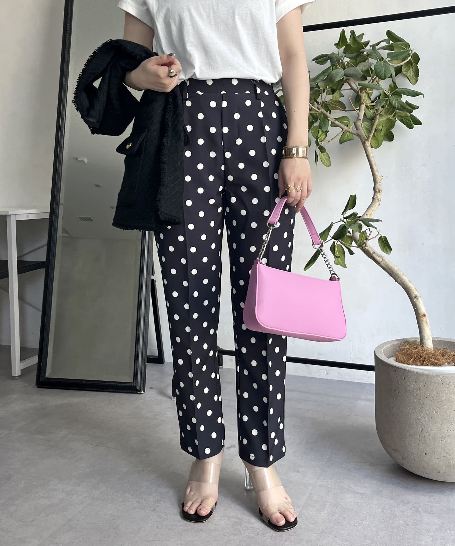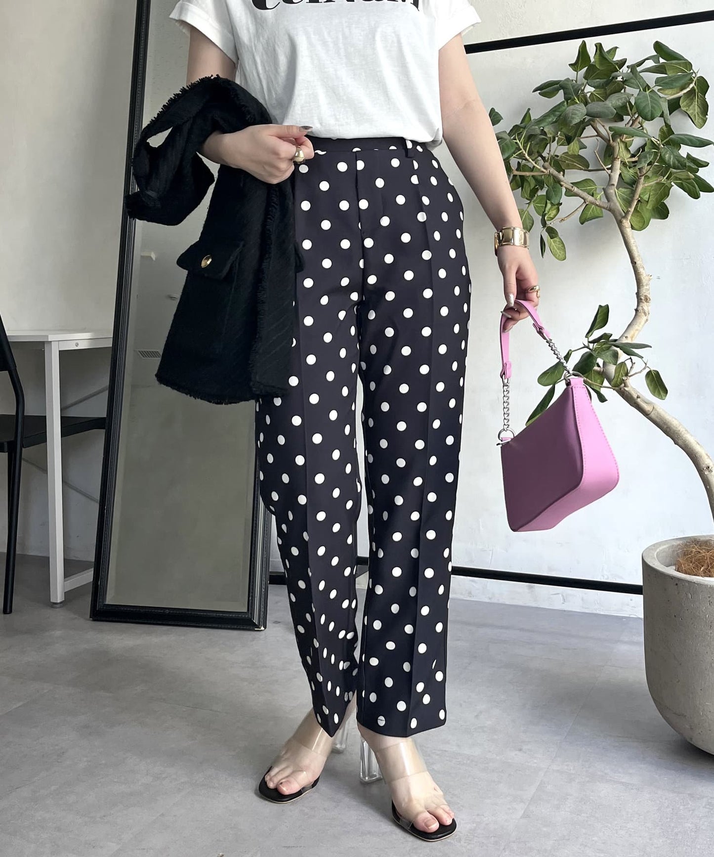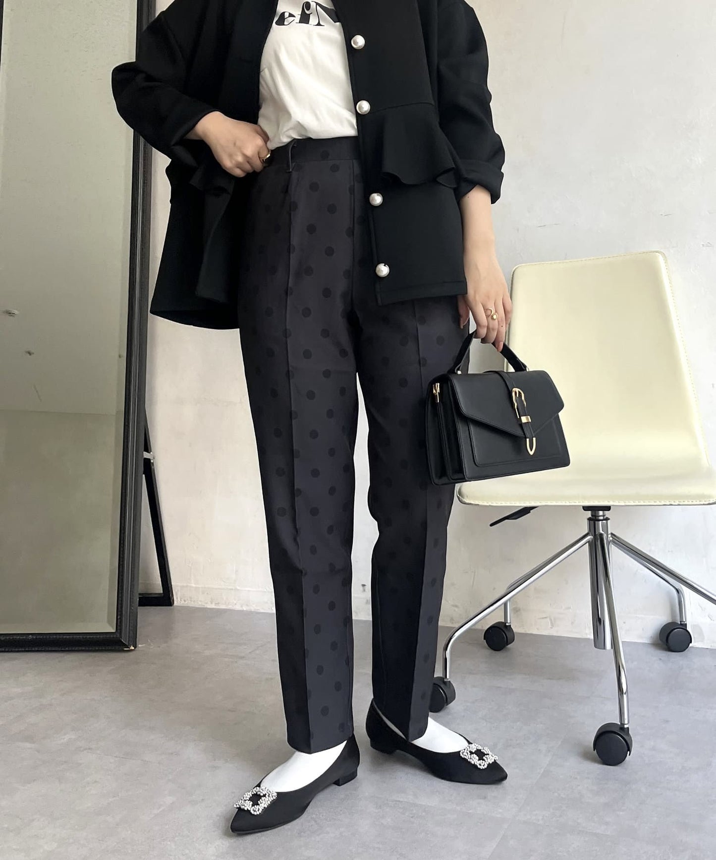 【低身高尺碼有】圓點中心壓腿錐形褲