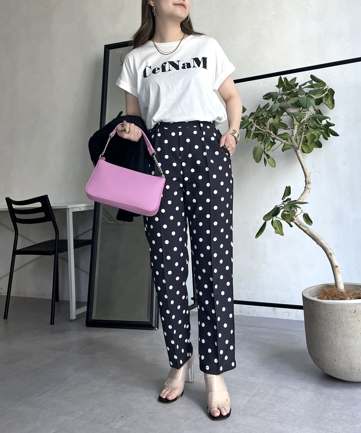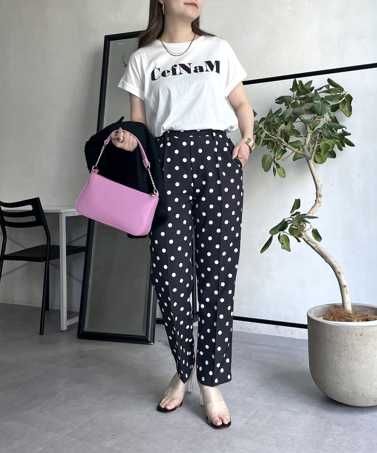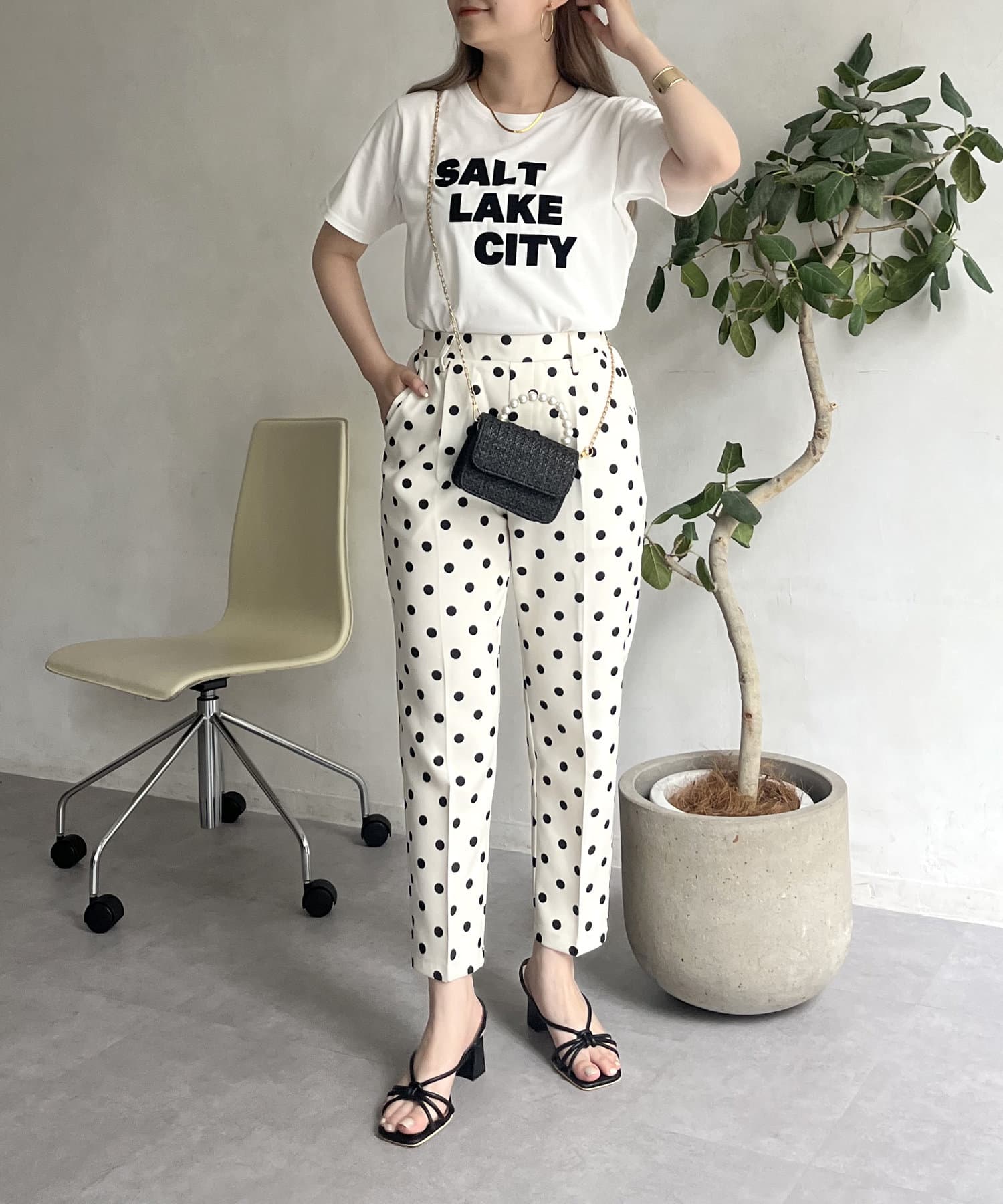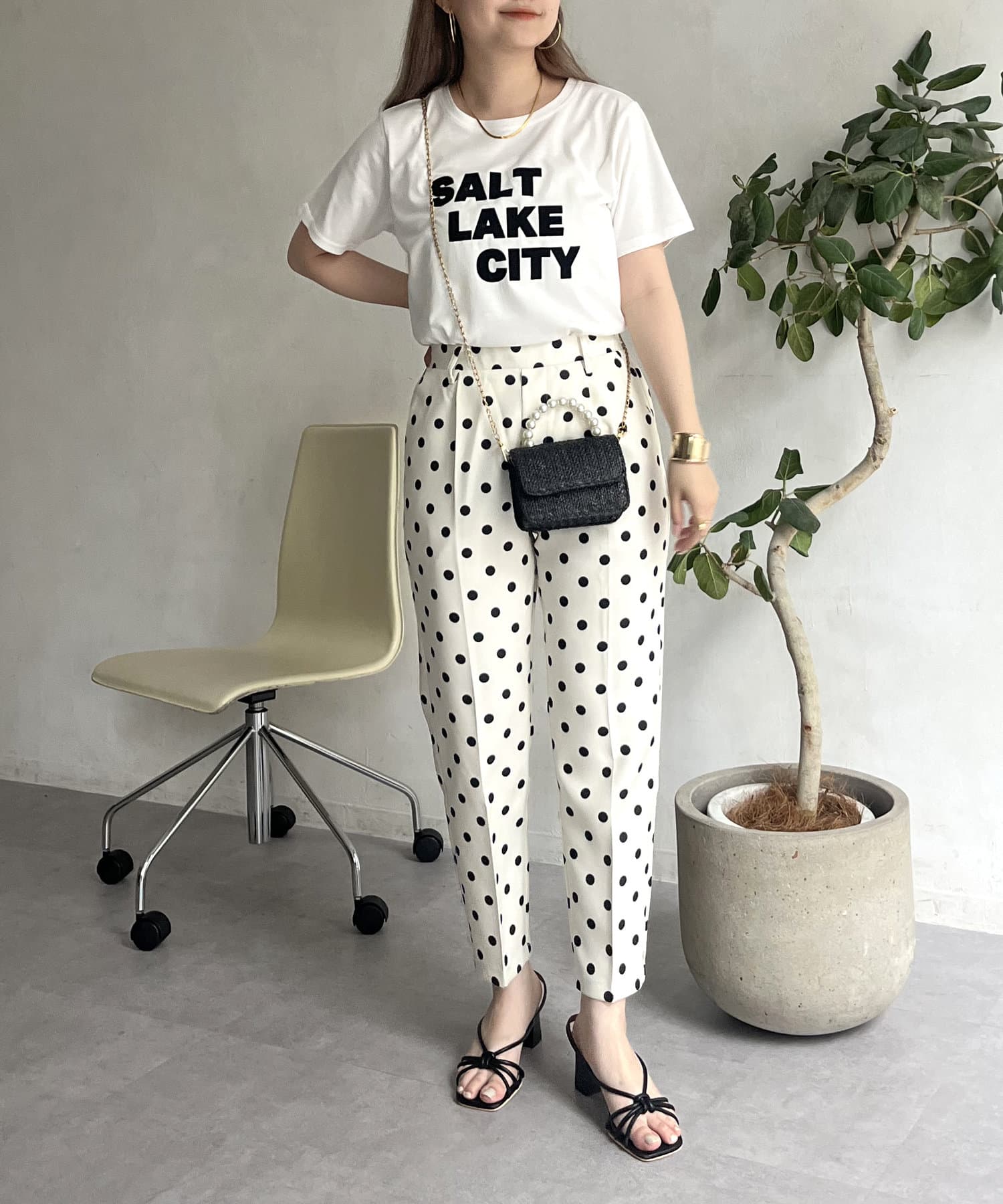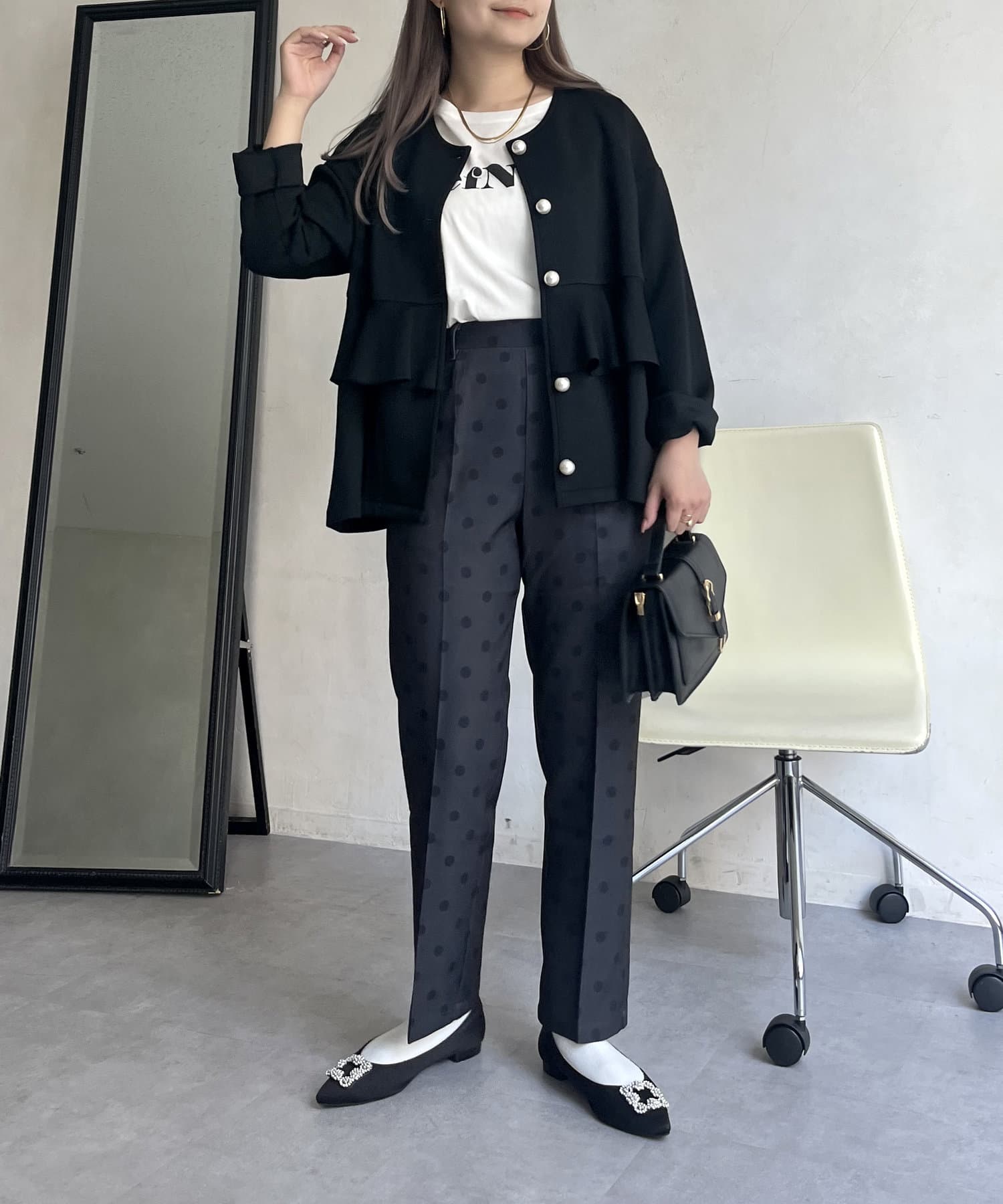 【低身高尺碼有】圓點中心壓腿錐形褲