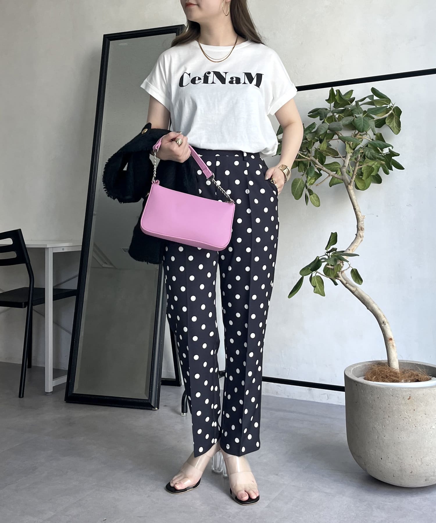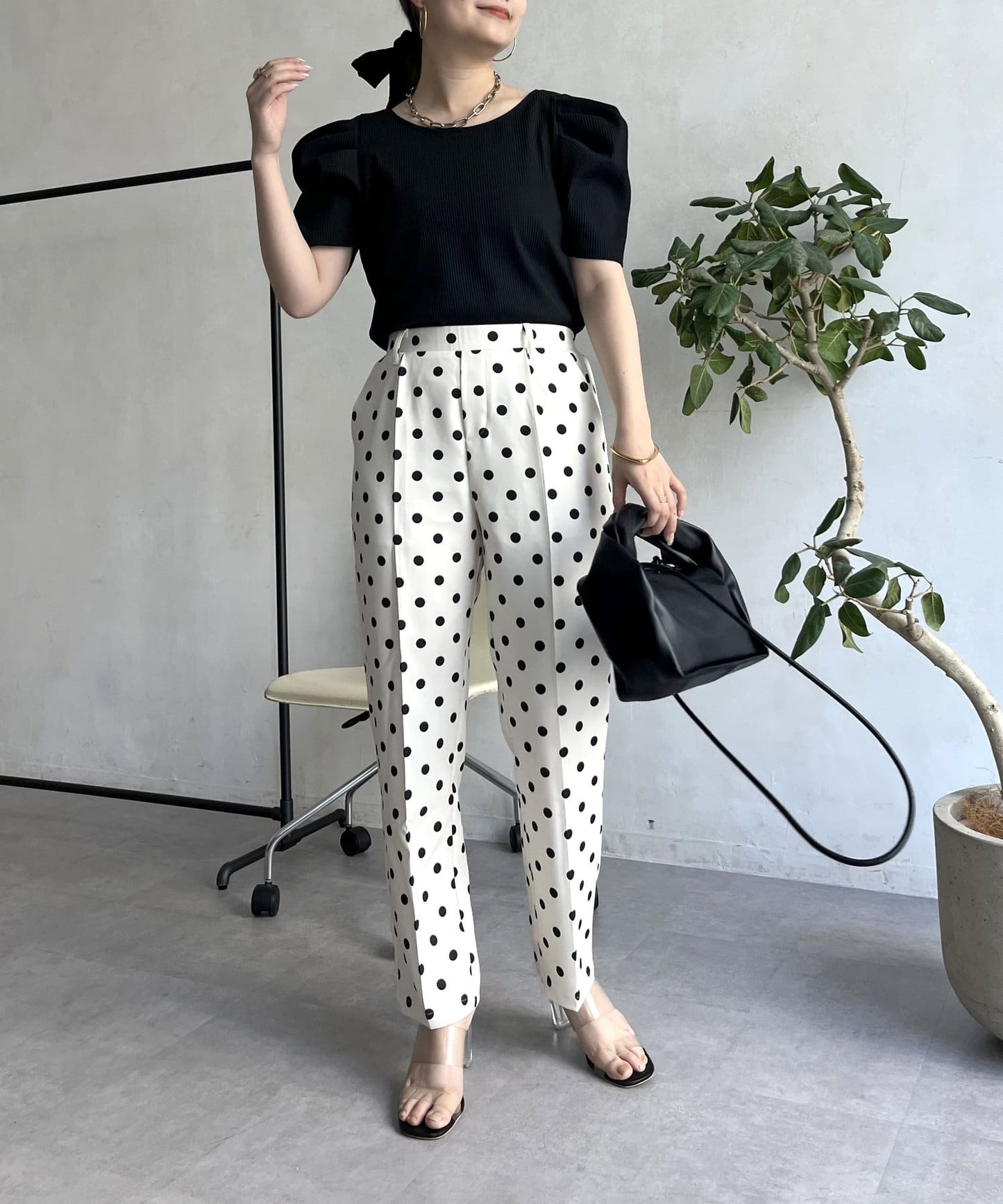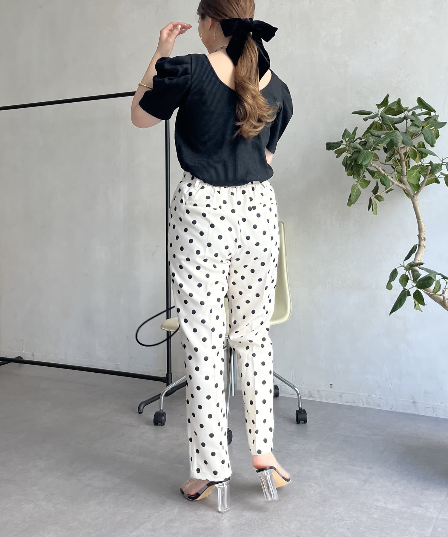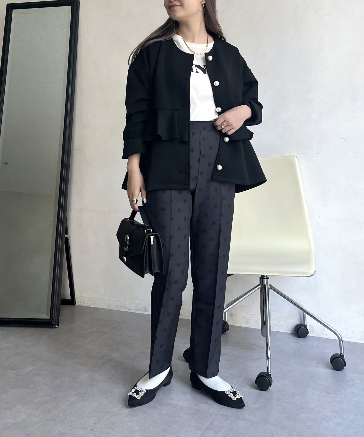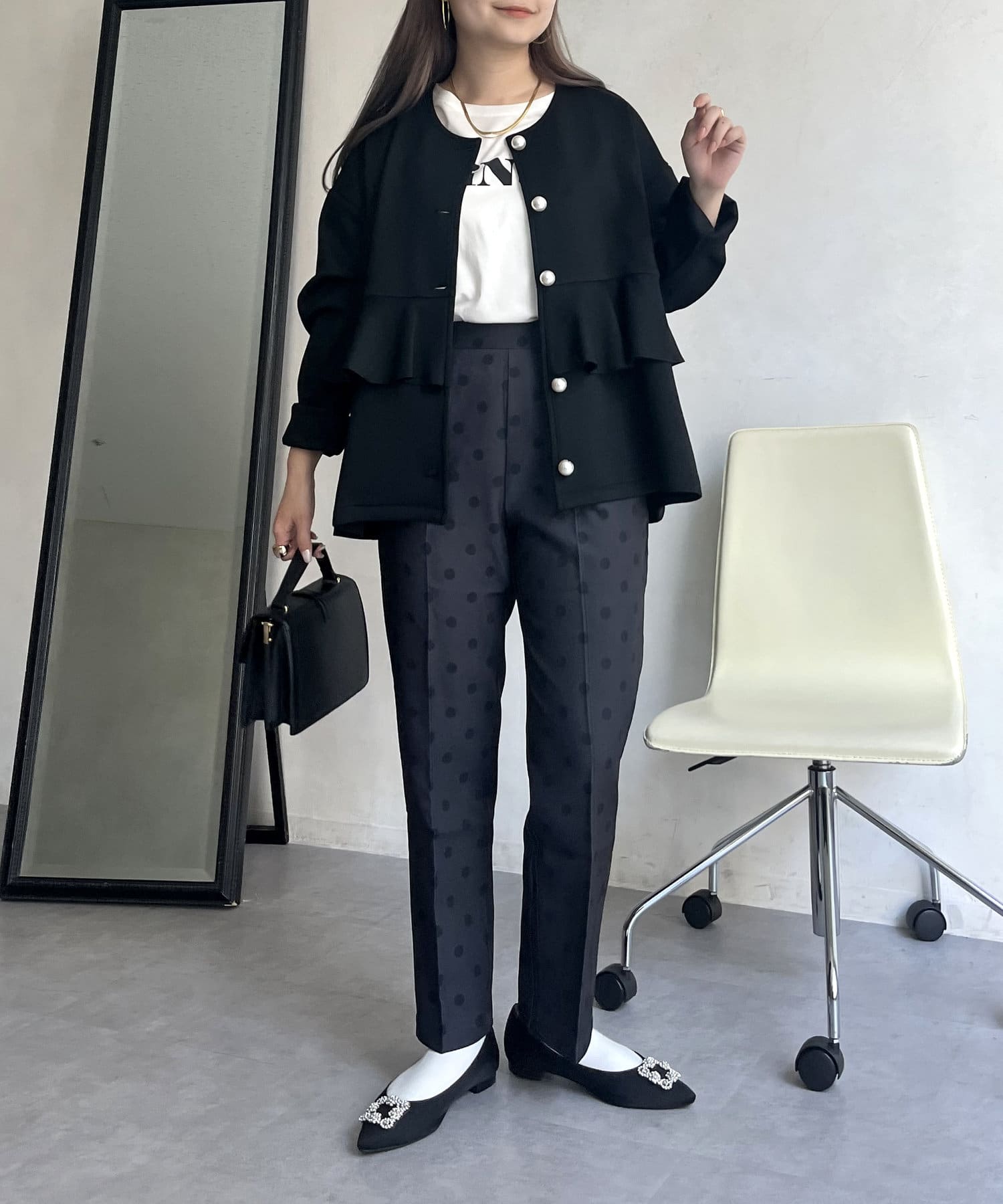 【低身高尺碼有】圓點中心壓腿錐形褲