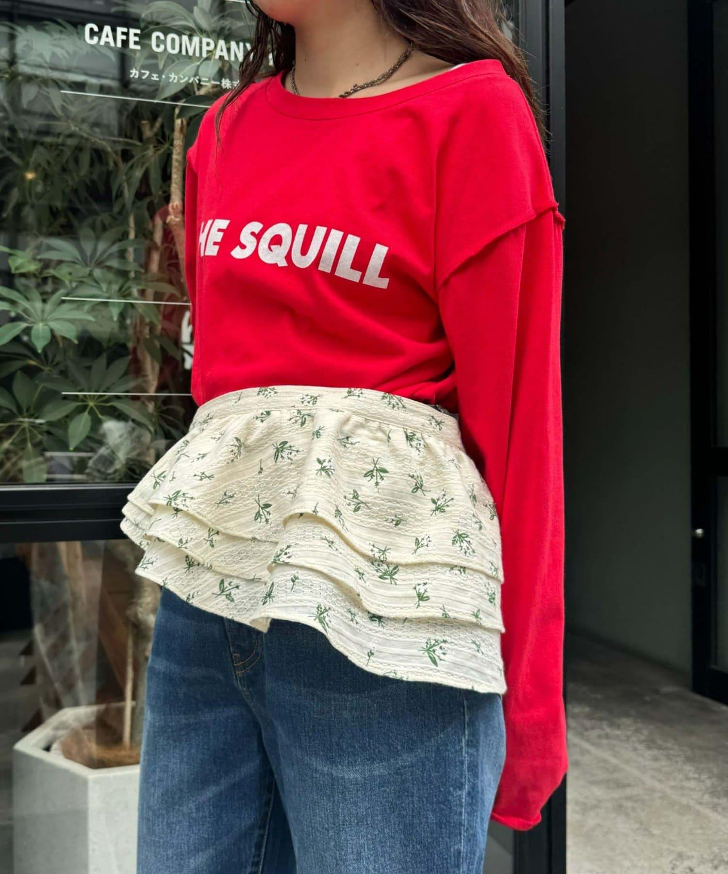 在容易陷入固定搭配的連體衣中加入它,非常可愛。