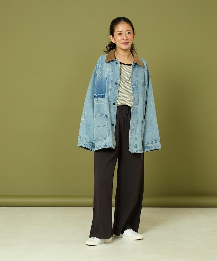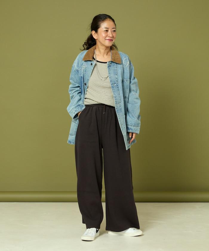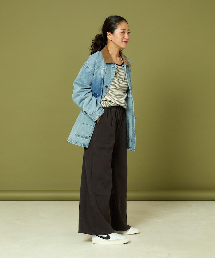 面料採用蜂窩狀成分,從頭開始製作,厚度達到 410 克。面料的厚度決定了褲子的寬大輪廓,使褲子更加修身。