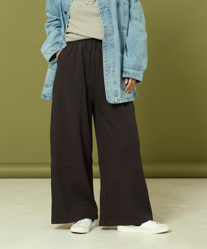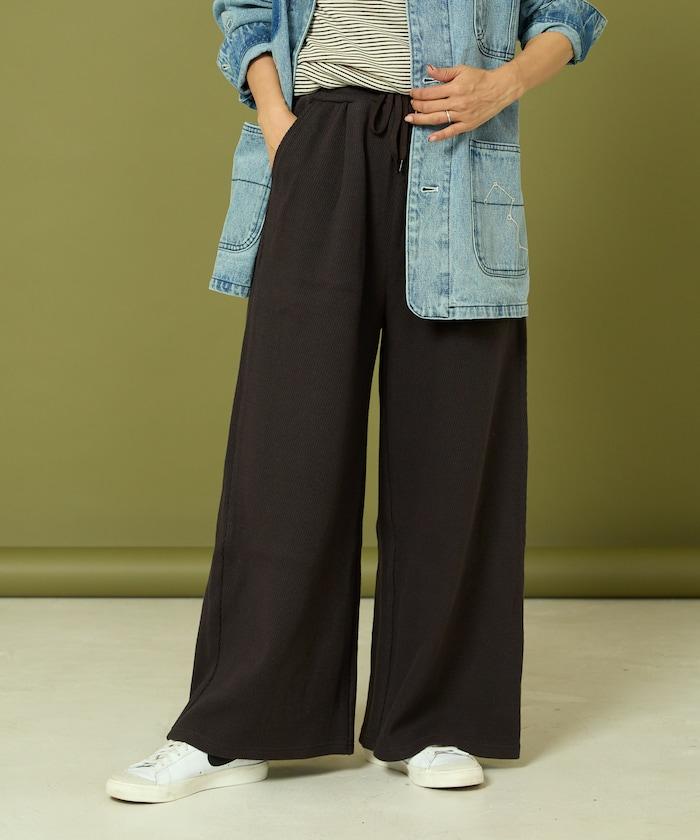 寬鬆長褲採用純正的保暖面料製作而成,面料採用精心編織而成。