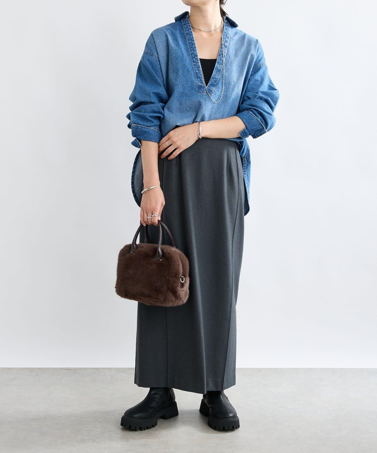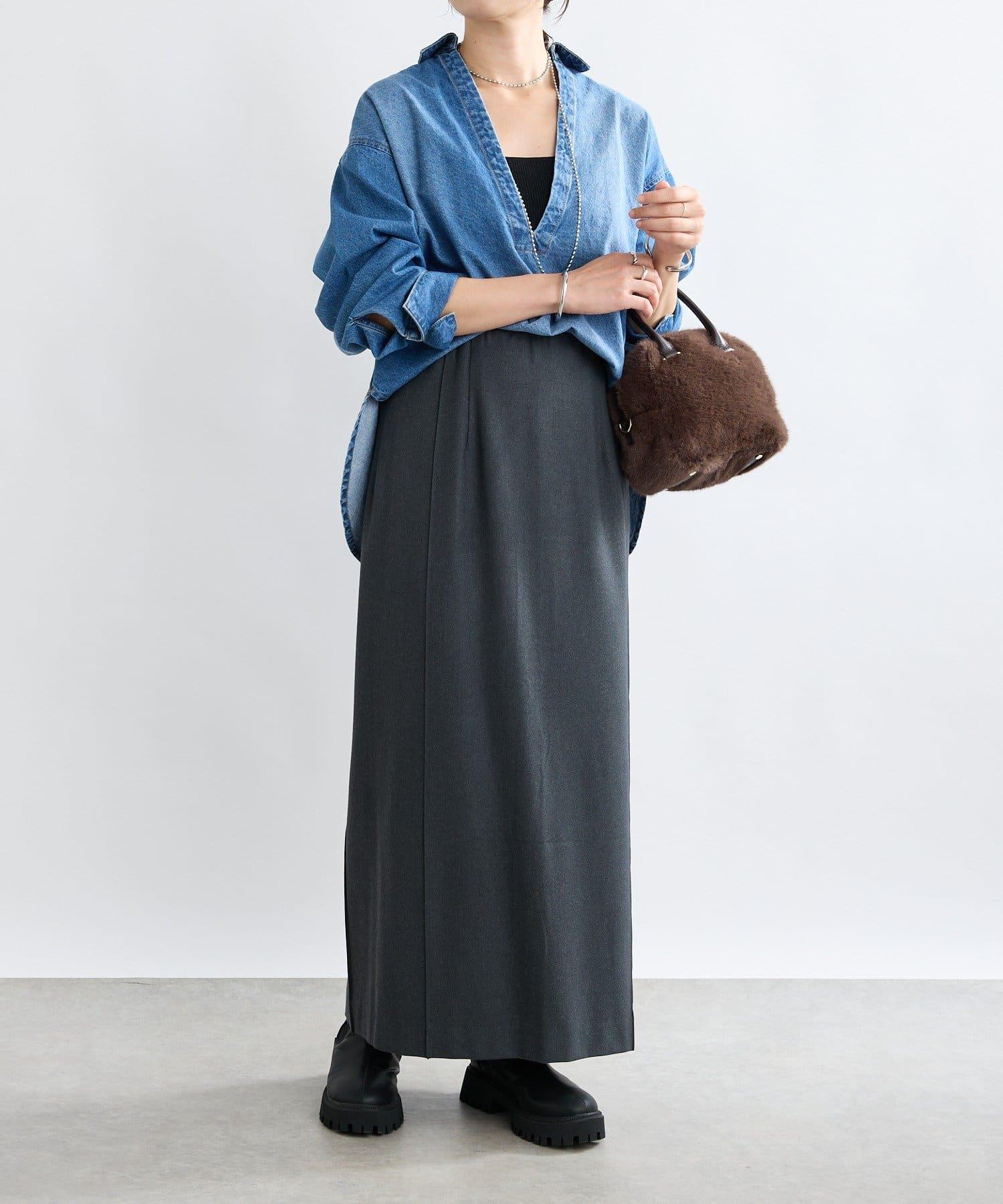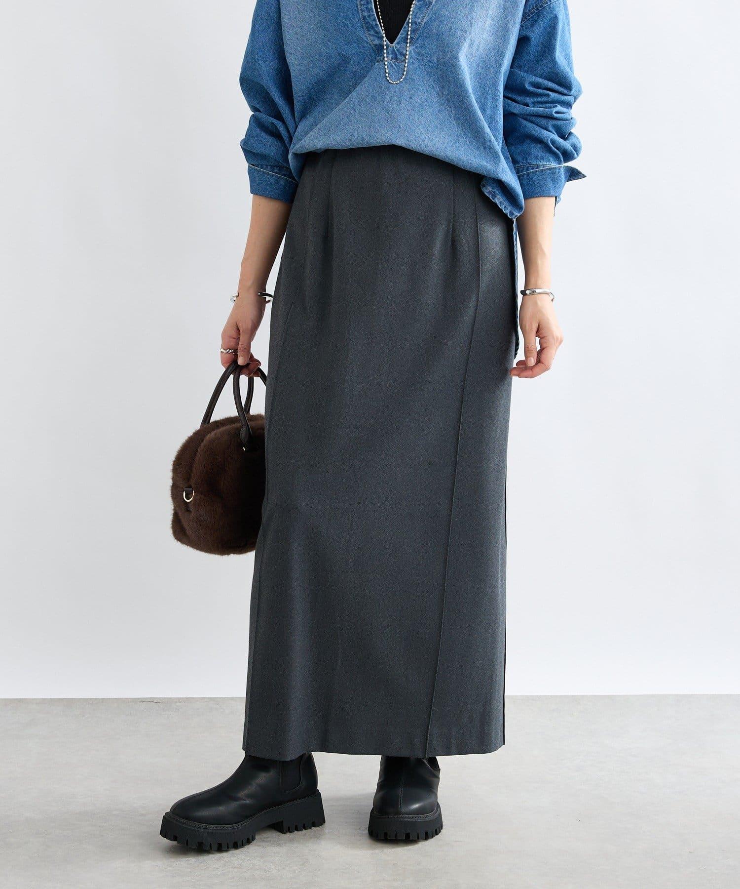 【保暖穿著】雙面磨毛壓褶修身半身裙