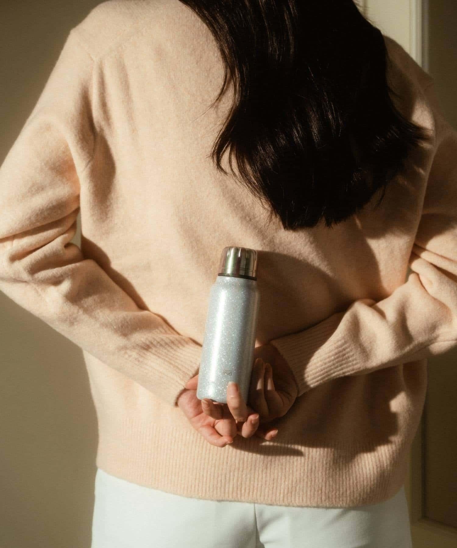 帶有閃粉的 Thermomug 在燈光下閃閃發光。