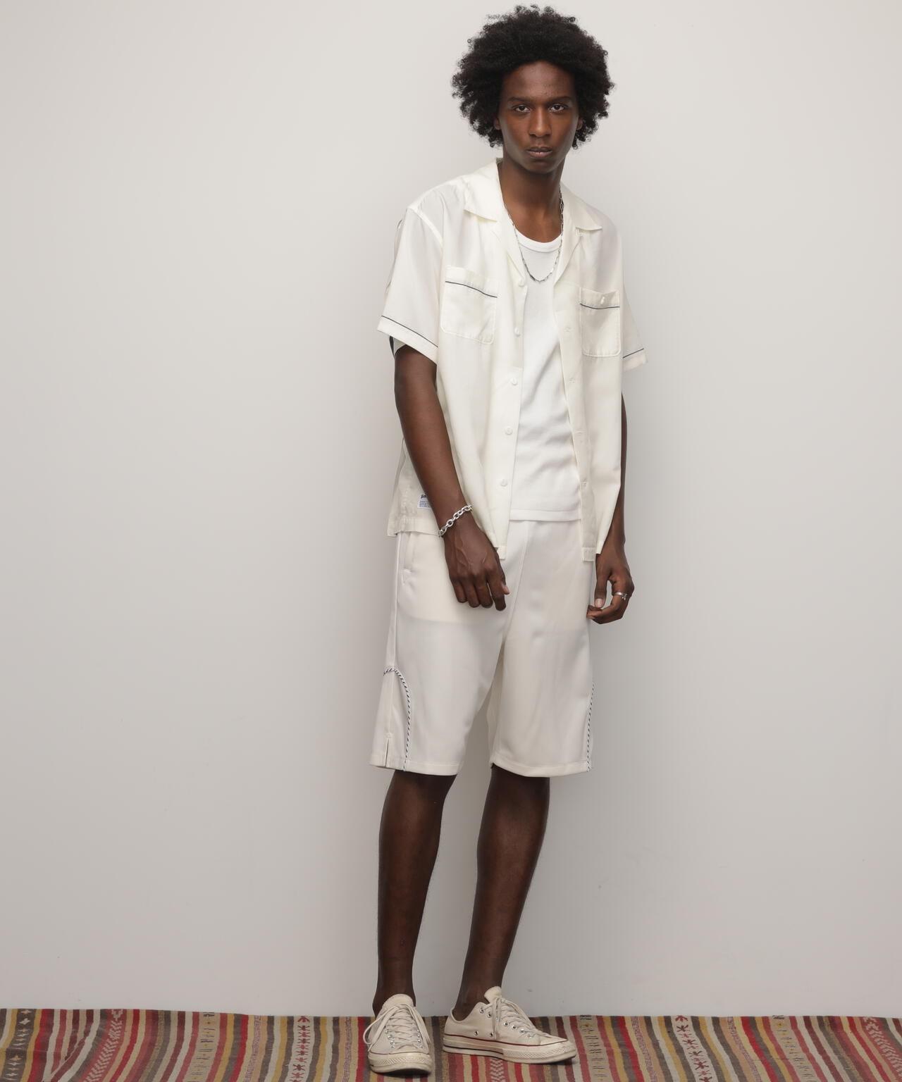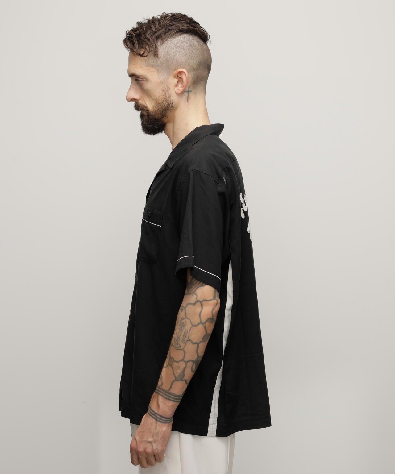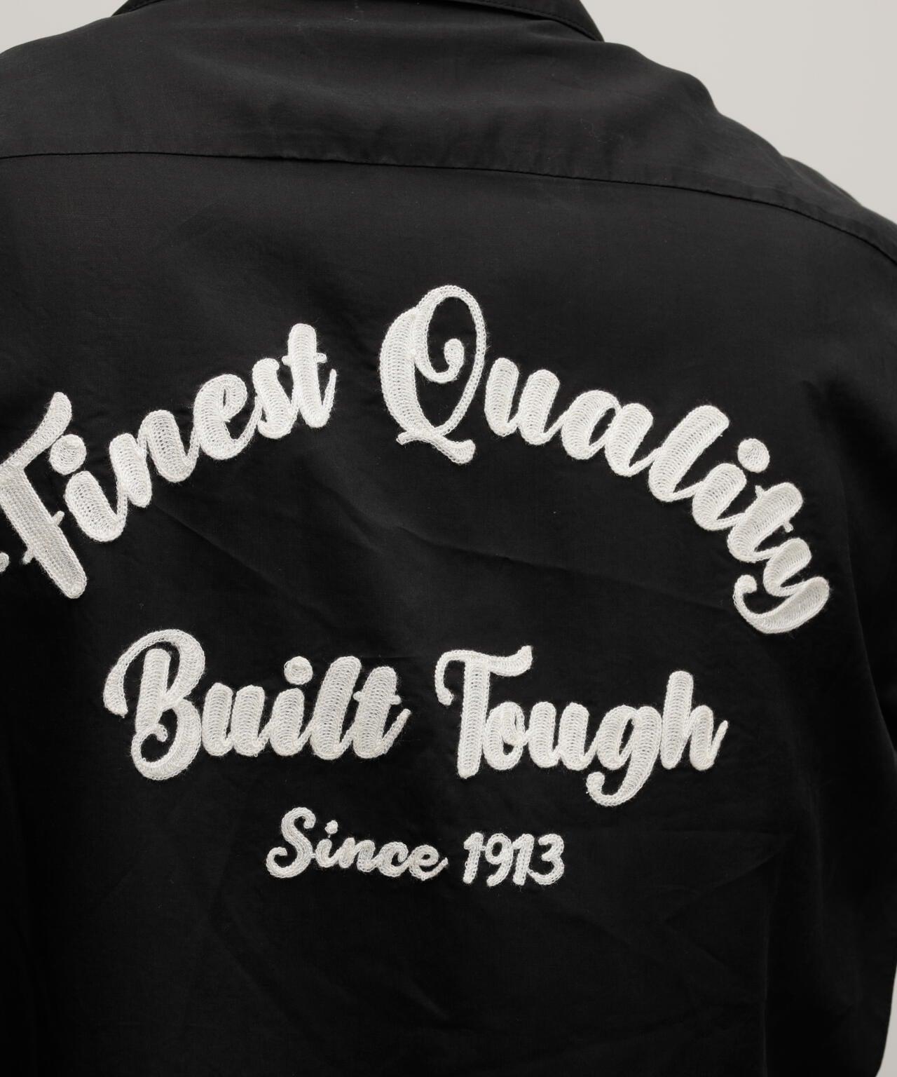 斜紋織物由植物提取的可持續萊賽爾纖維製成。平紋織物堅固耐用,耐摩擦。 平整的表面觸感光滑。這種面料具有絲綢般的光澤,外觀高貴。襯衫的合身性和舒適性是 Lyocell 的一大特點,穿著極為舒適。它原本是打保齡球時穿的制服,後來被引入當時的搖滾樂熱潮中,成為一種時尚單品。它的刺繡工藝如復古一般,線量經過調整,堪稱👍。[肖特/Schott]它是騎手夾克的代名詞。