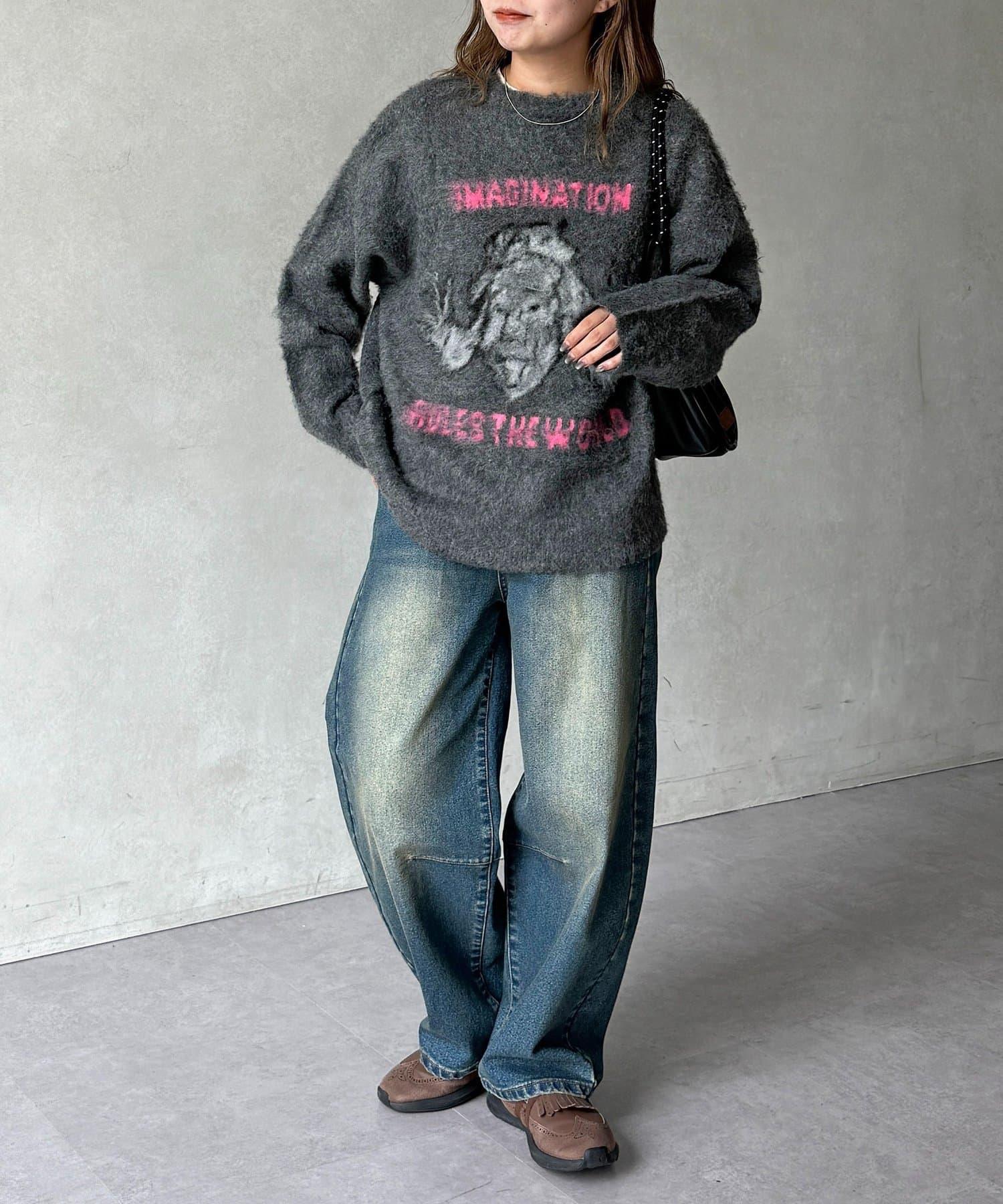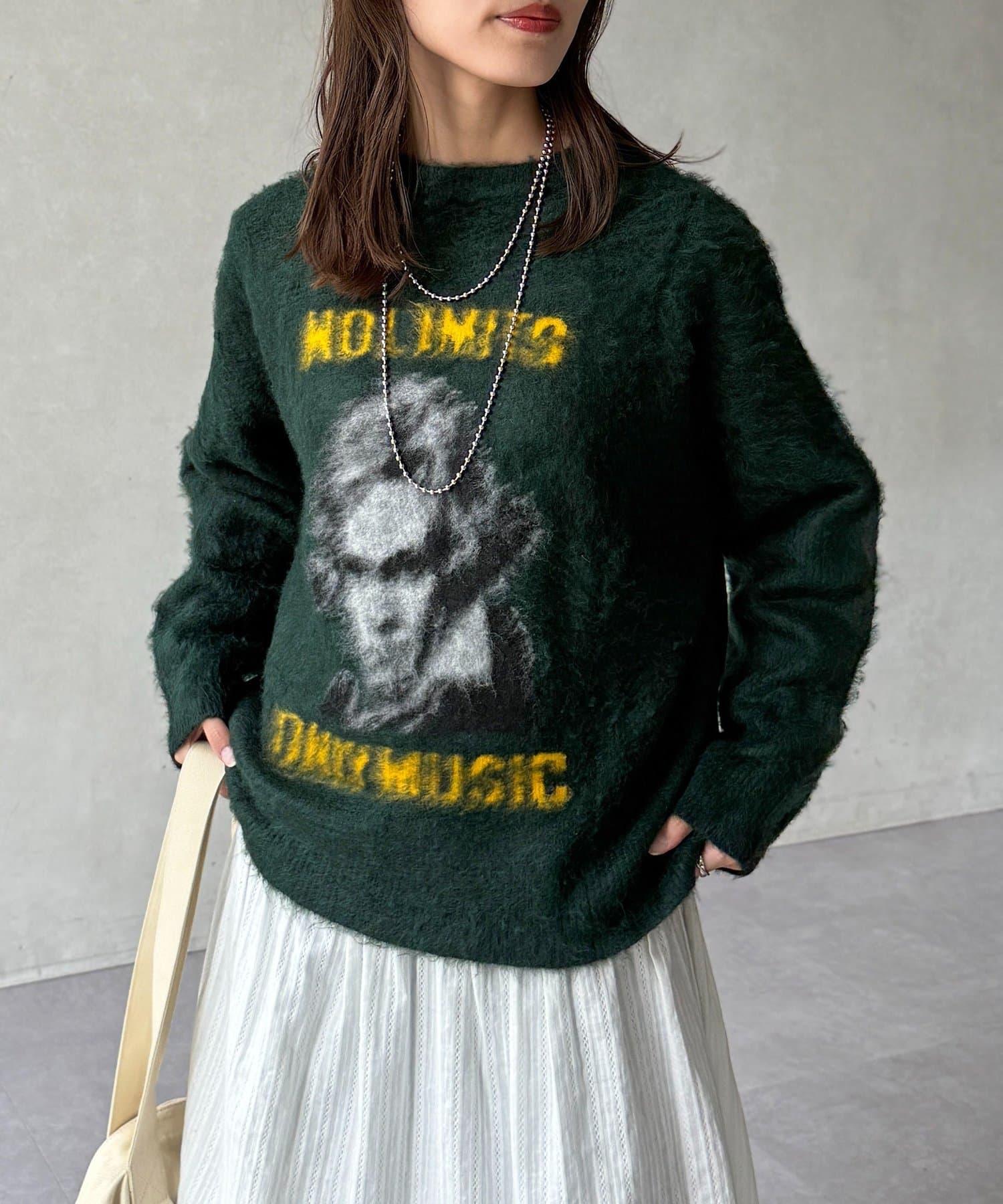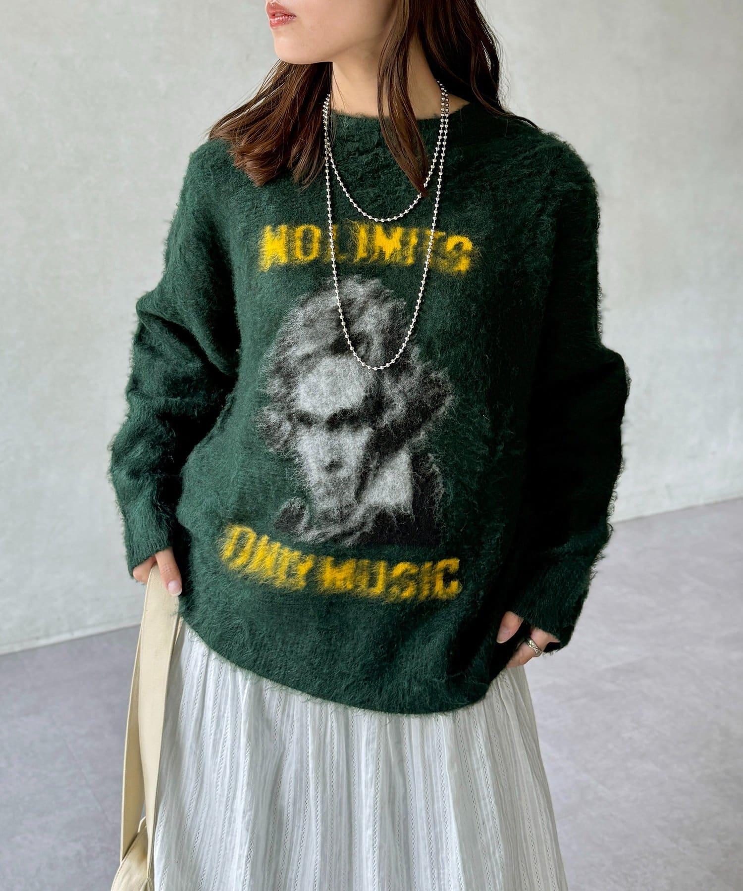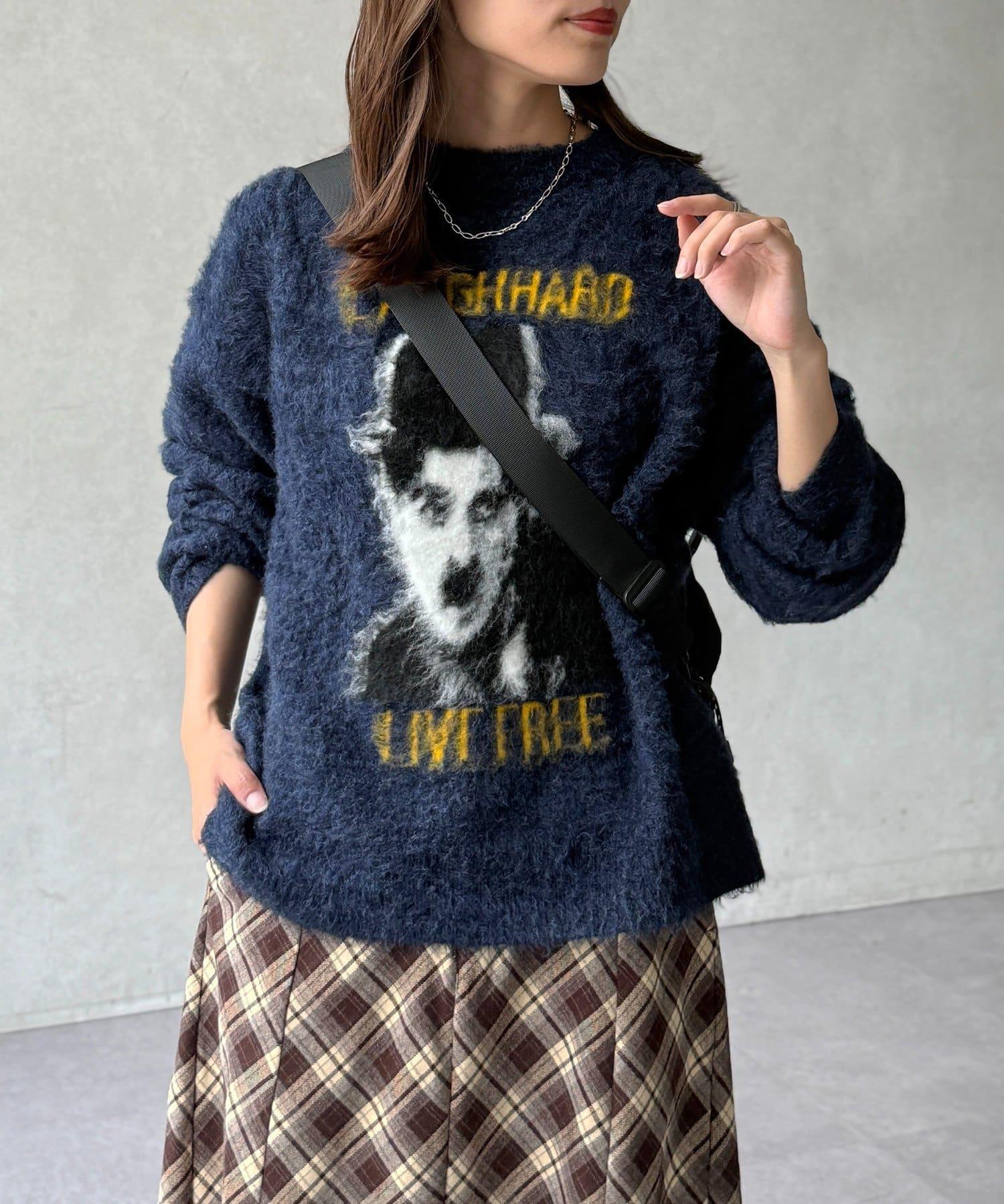 仿馬海毛針織衫上印有偉人圖案,氣場十足!
