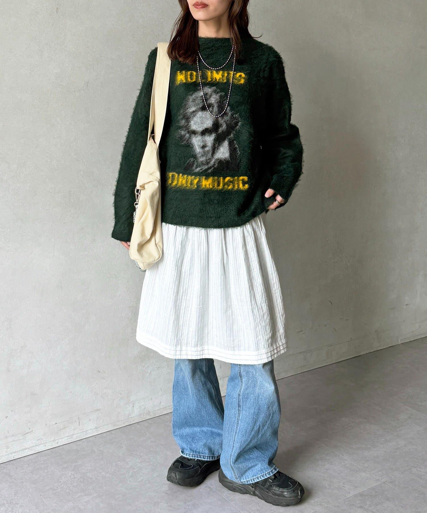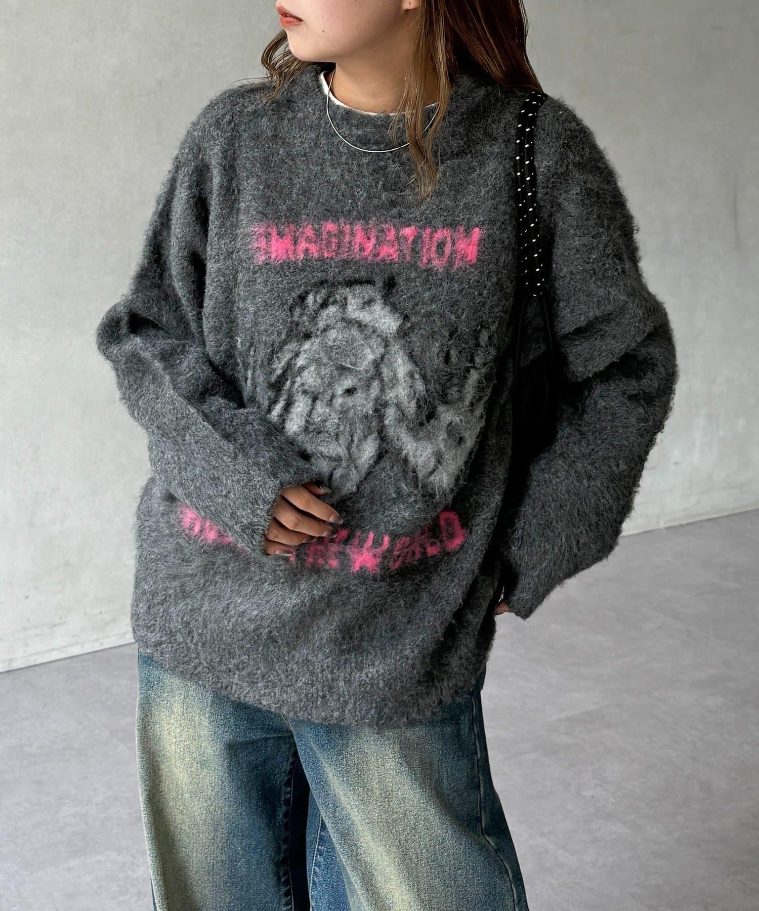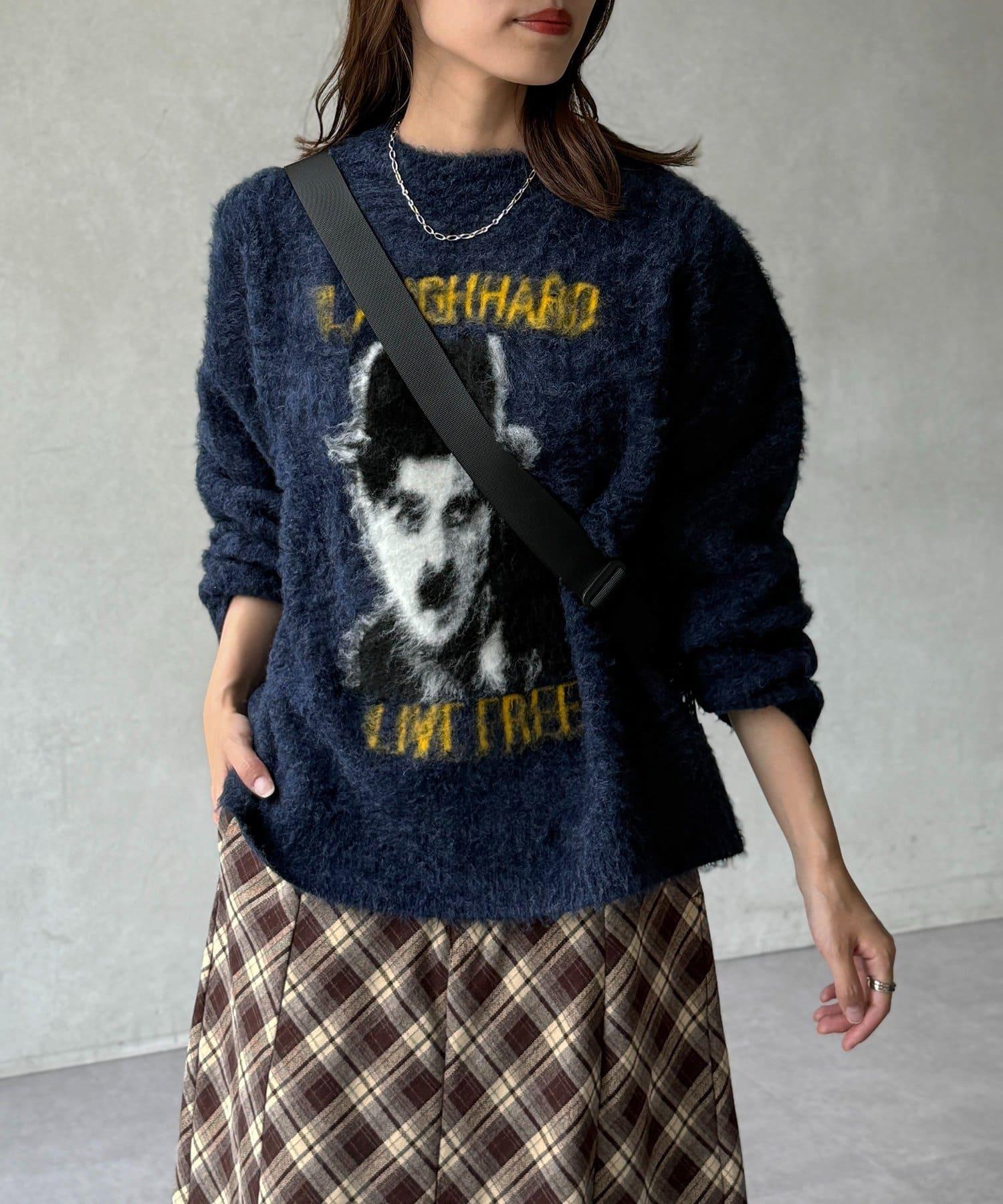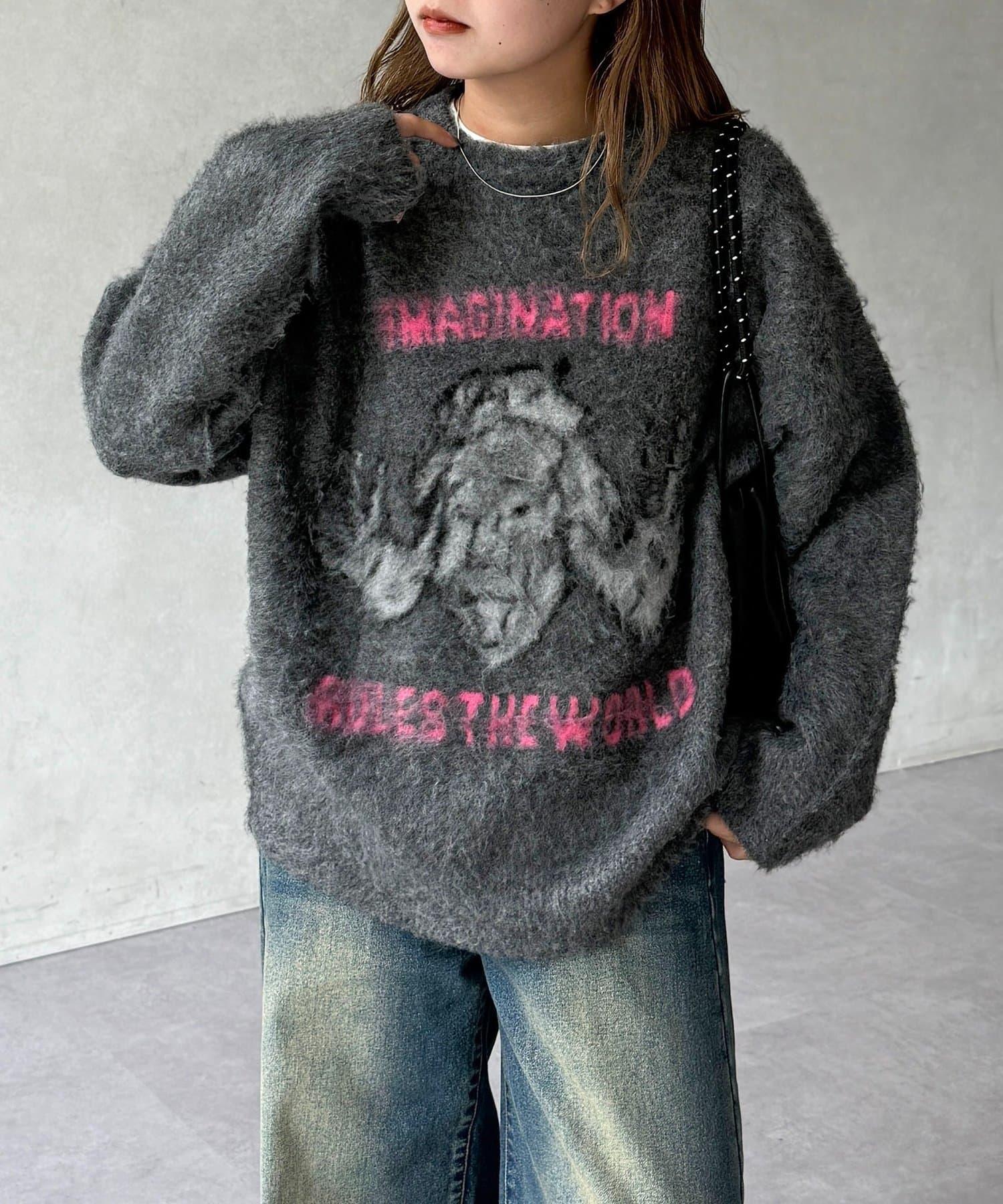 仿馬海毛針織衫上印有偉人圖案,氣場十足!