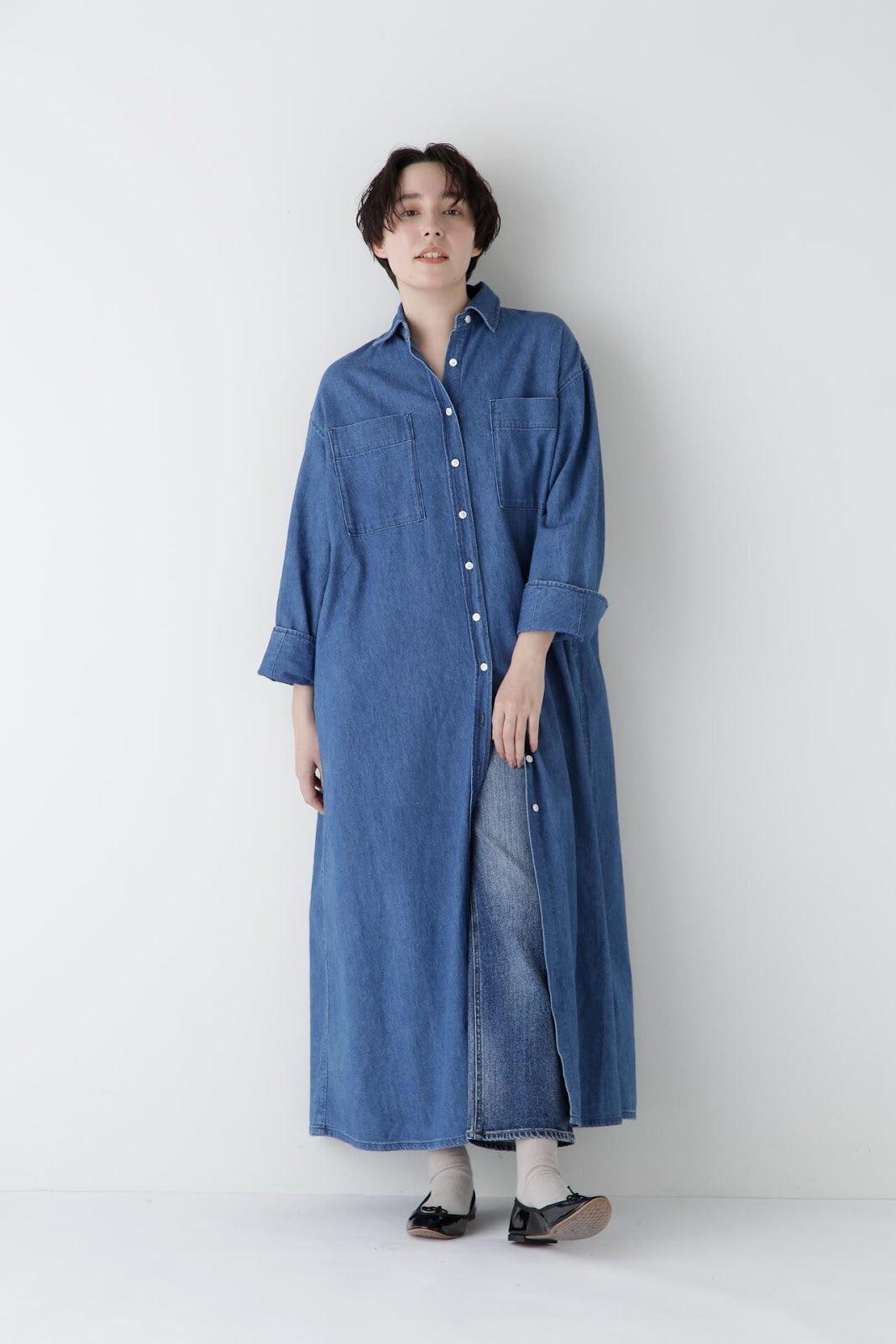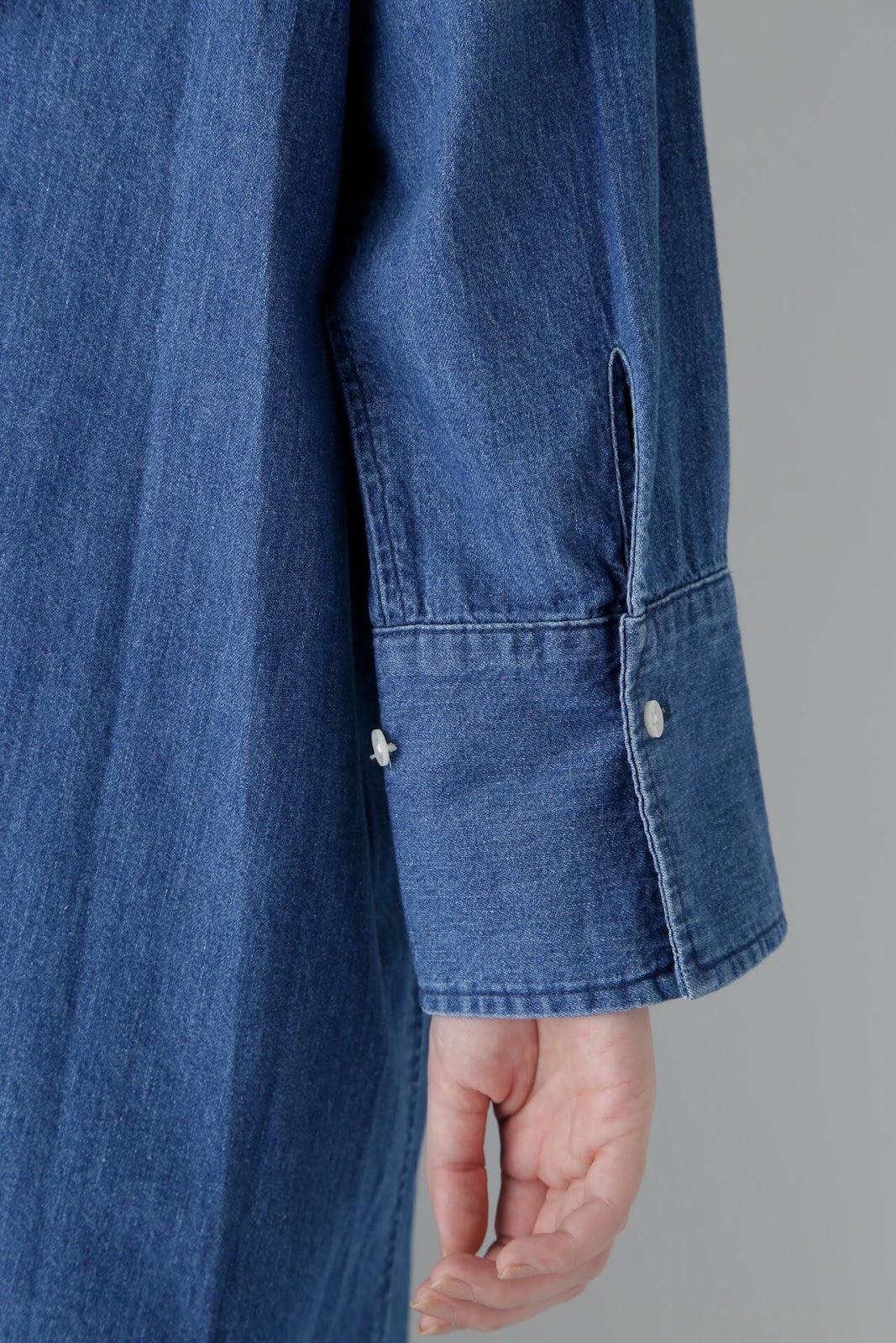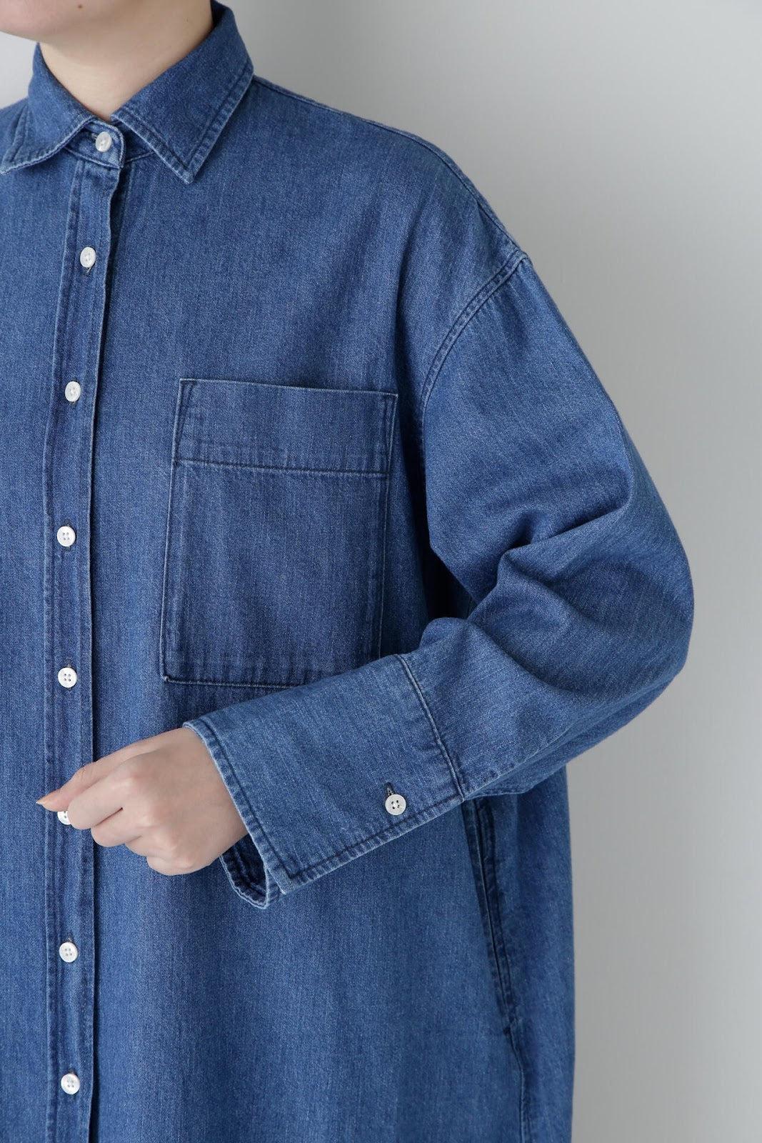 大襯衫設計的長裙。袖口很寬,可以用兩個紐扣調節袖口的寬度。面料:7.25 盎司輕質 100% 全棉牛仔布。只有 Indigo 採用繩染工藝,是一種帶有美麗藍色調的中紡色。休閒的外觀在洗滌後會產生皺褶效果。推薦搭配:寒冷天氣時可疊加一件高領內衣,炎熱天氣時可將其深度打開並捲起袖子。