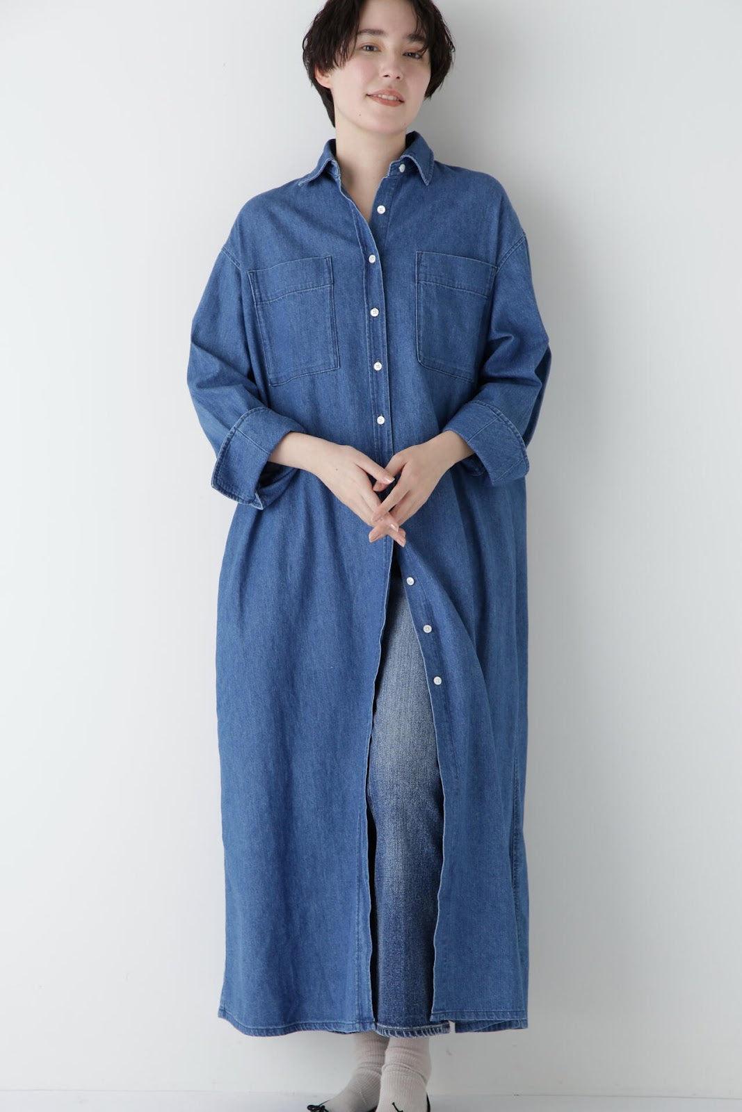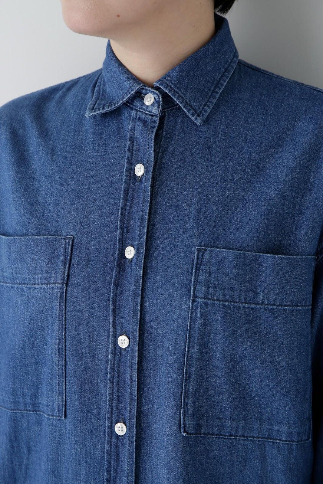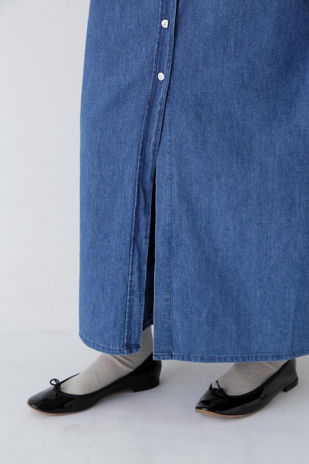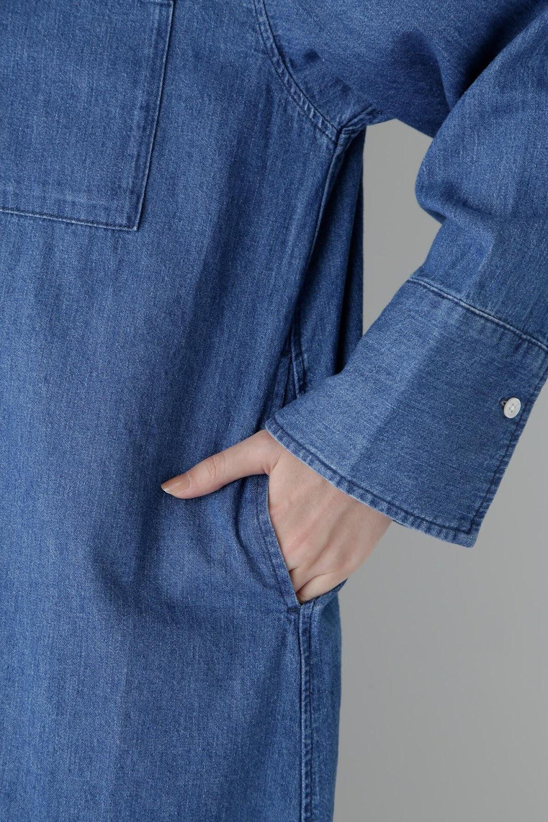 大襯衫設計的長裙。袖口很寬,可以用兩個紐扣調節袖口的寬度。面料:7.25 盎司輕質 100% 全棉牛仔布。只有 Indigo 採用繩染工藝,是一種帶有美麗藍色調的中紡色。休閒的外觀在洗滌後會產生皺褶效果。推薦搭配:寒冷天氣時可疊加一件高領內衣,炎熱天氣時可將其深度打開並捲起袖子。