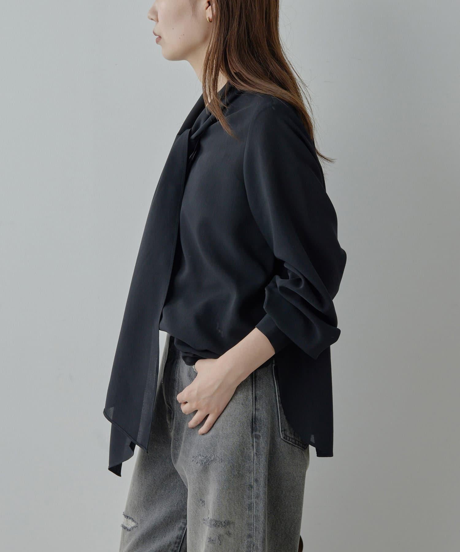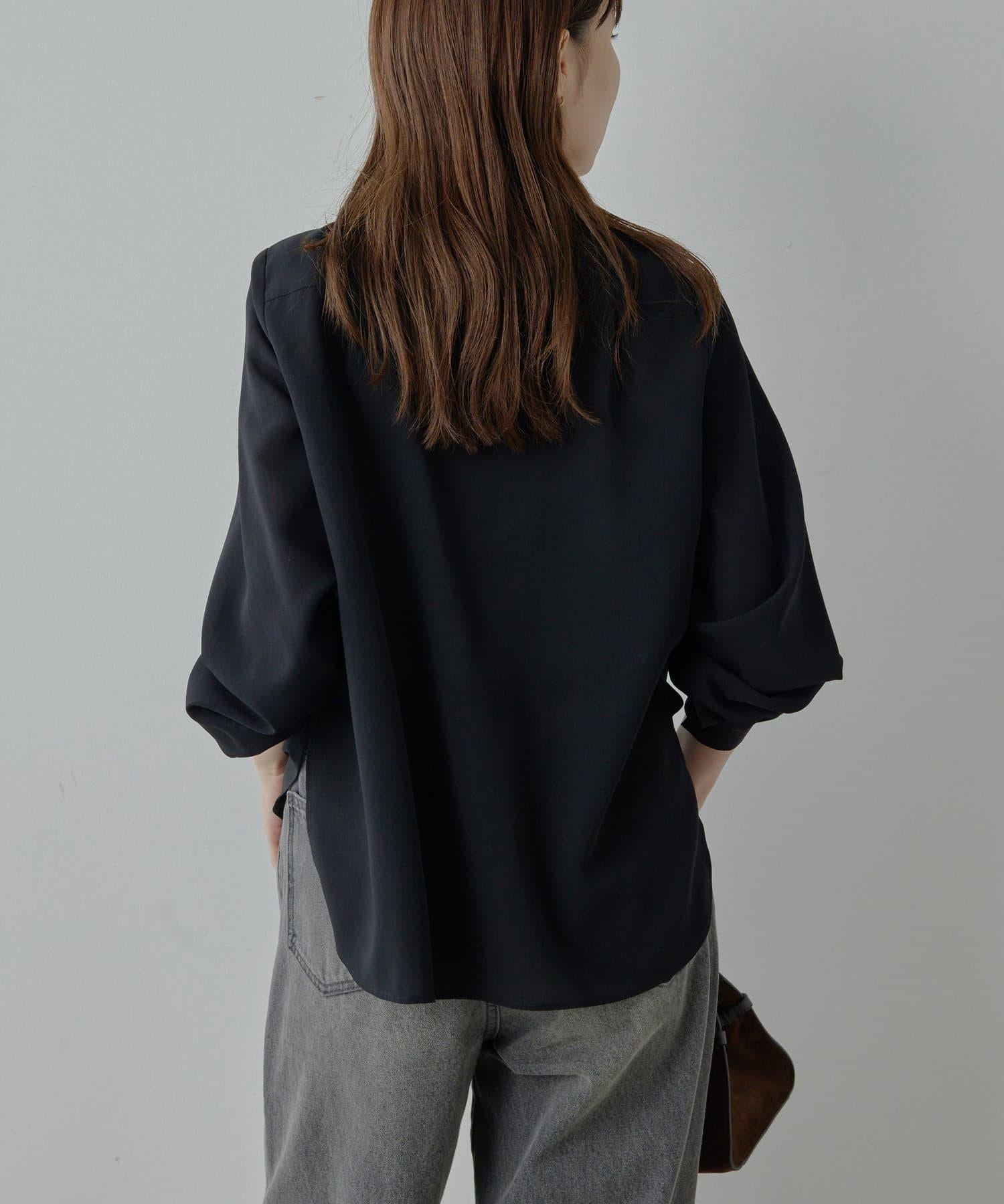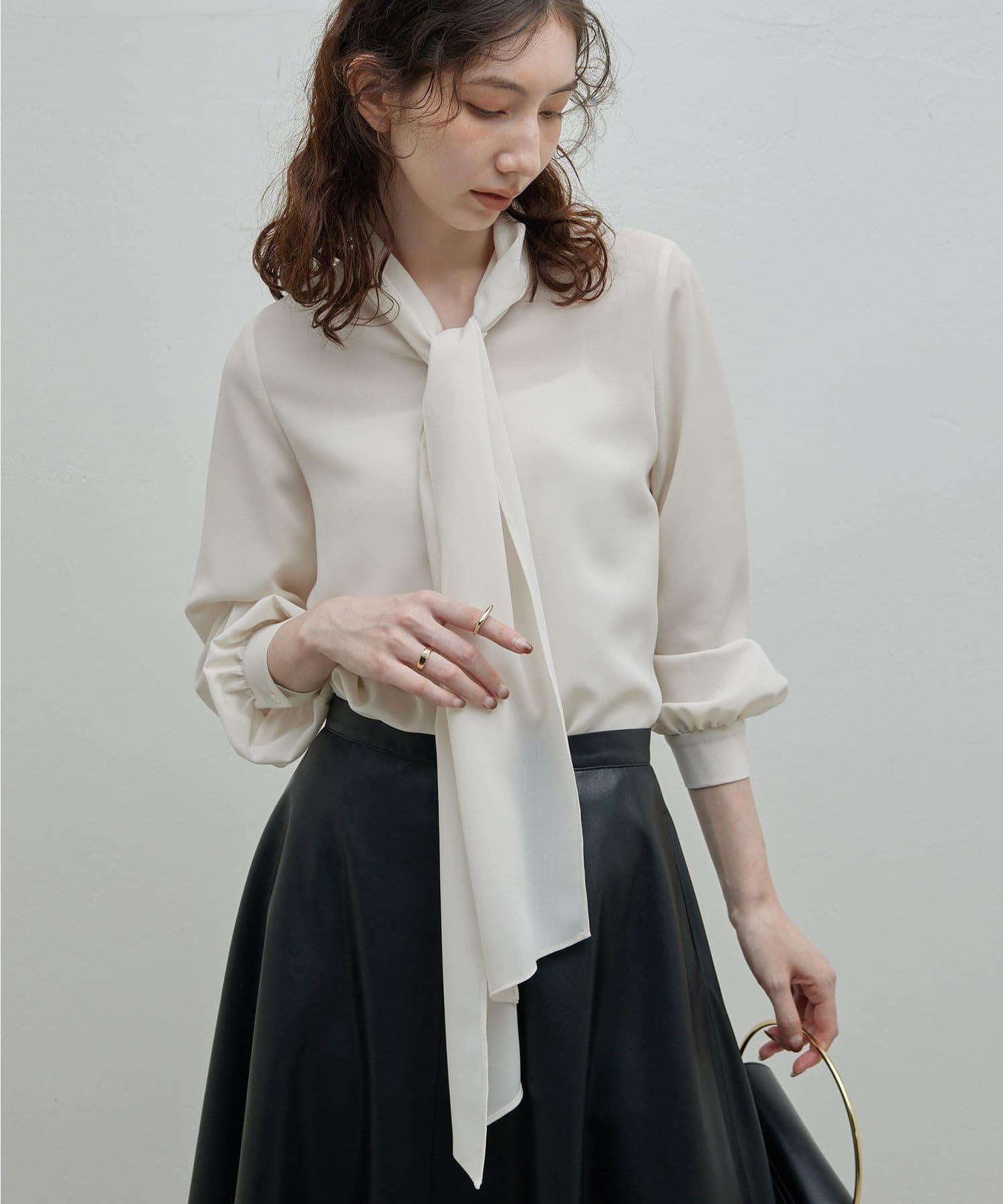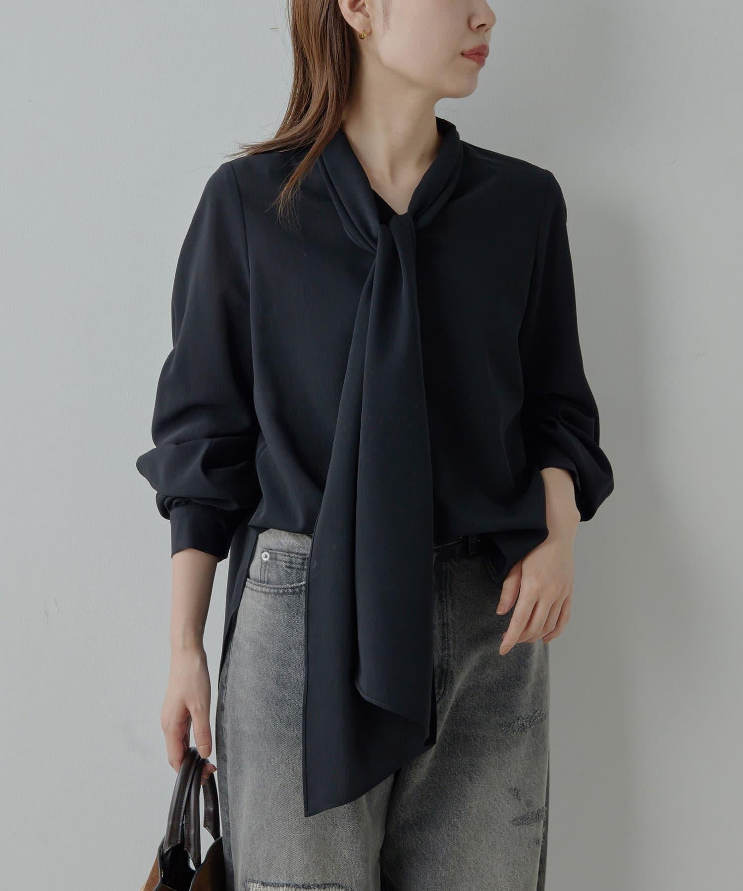 蝴蝶結領結上衣,V 領設計更顯寬鬆。