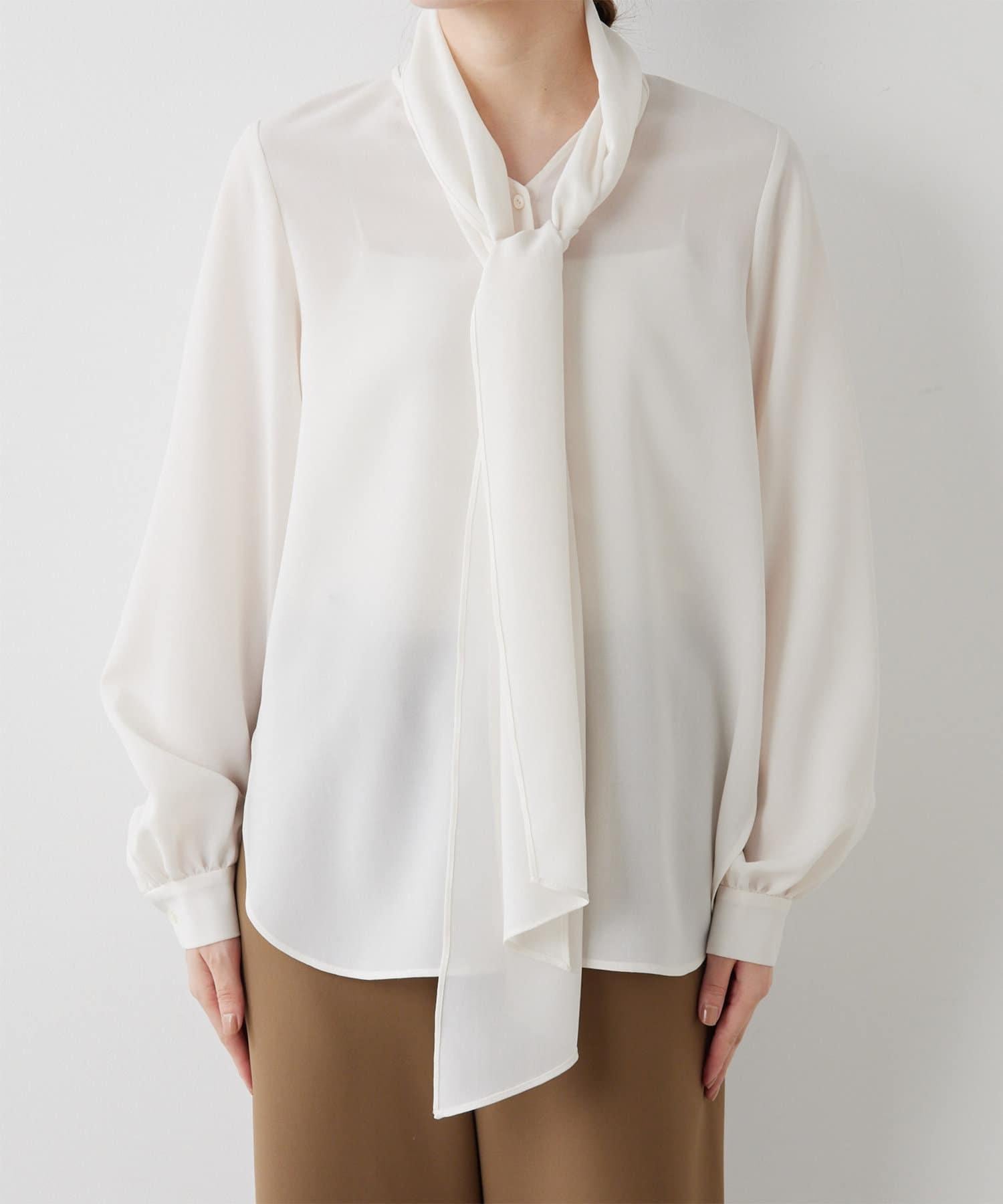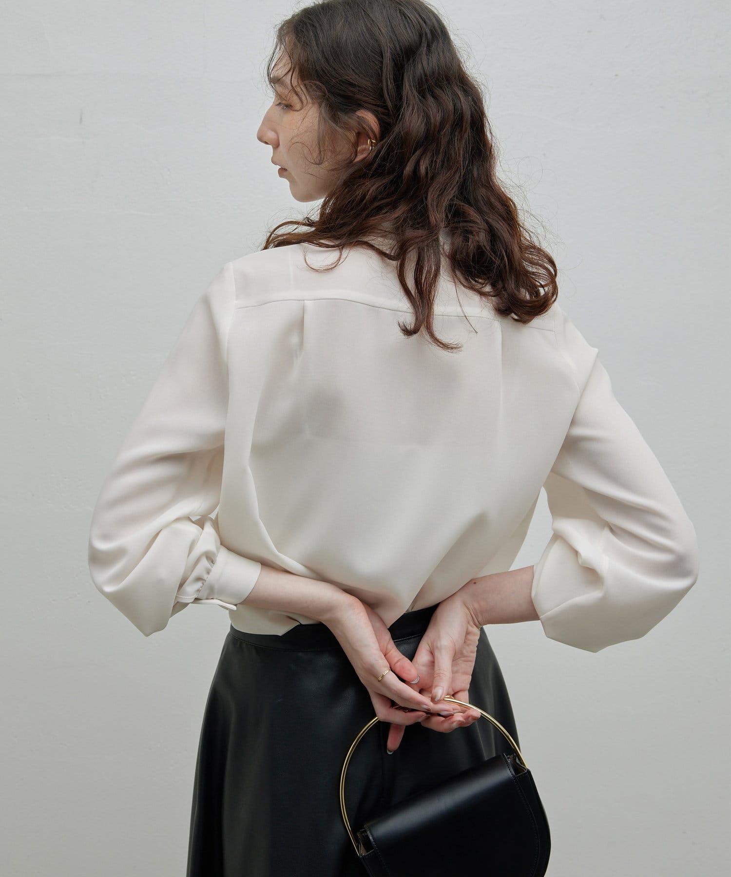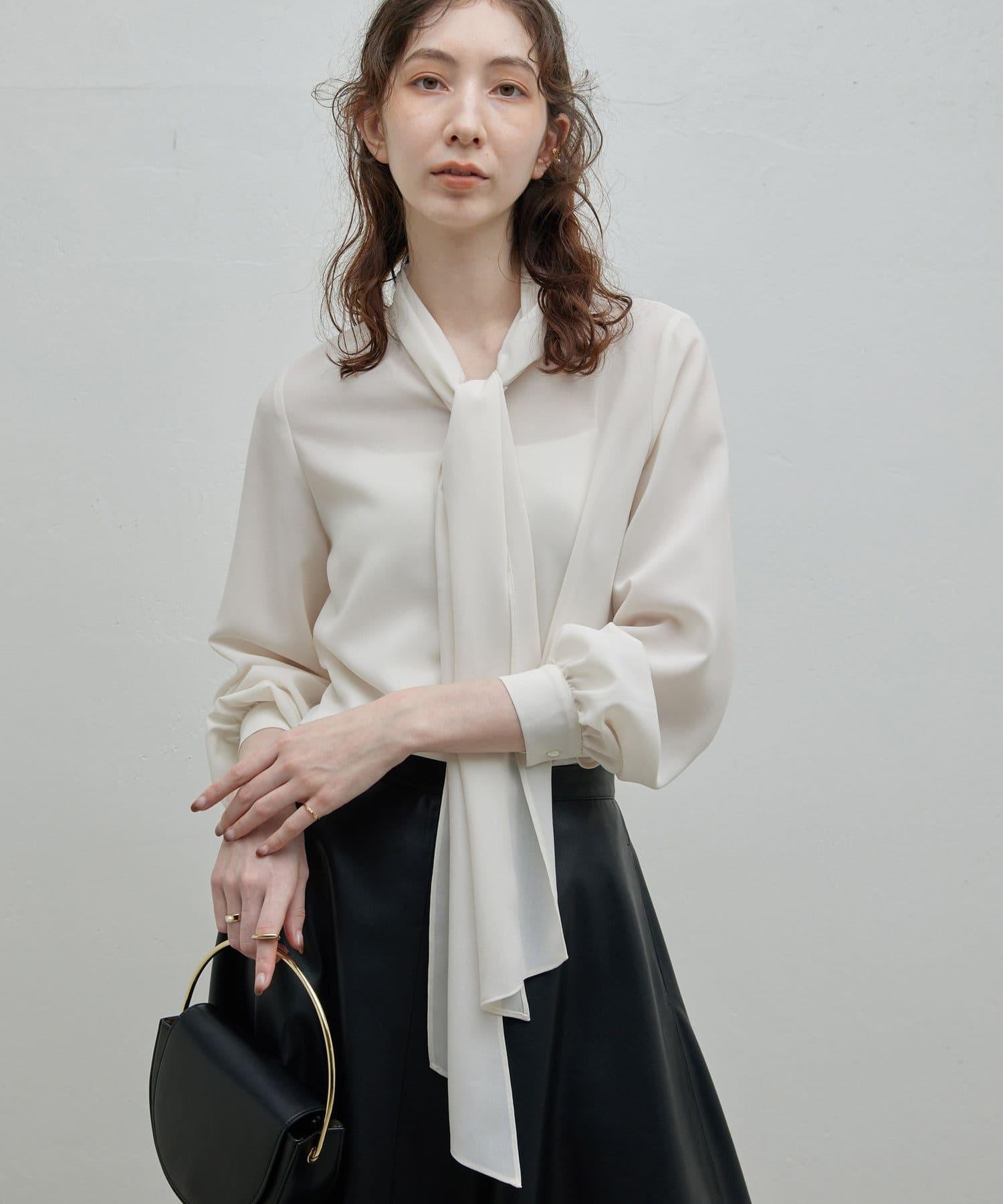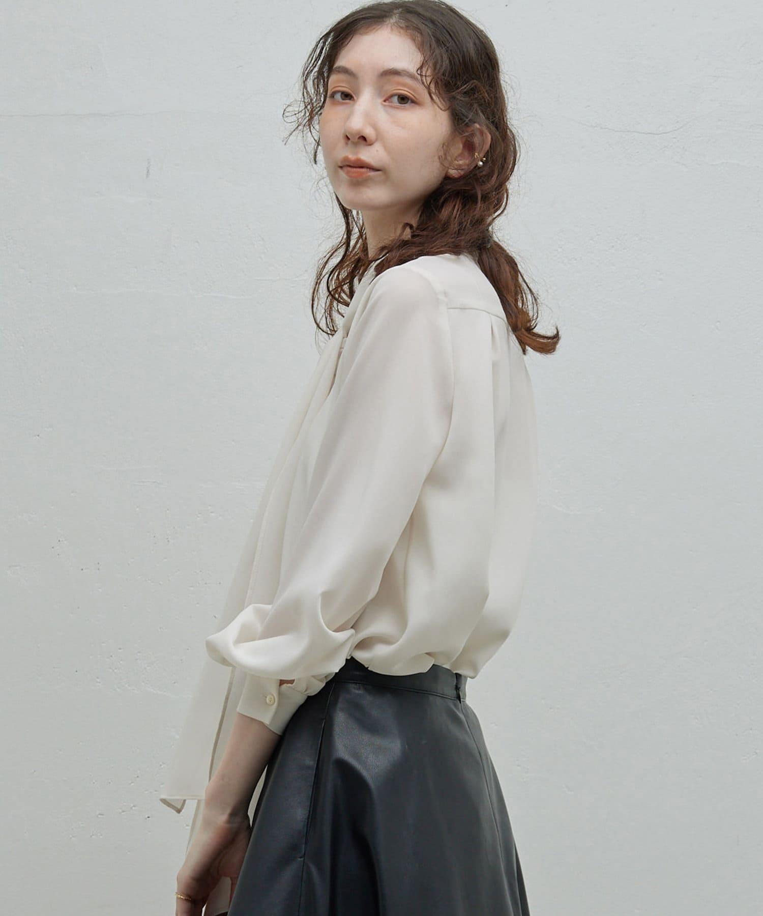 蝴蝶結領結上衣,V 領設計更顯寬鬆。