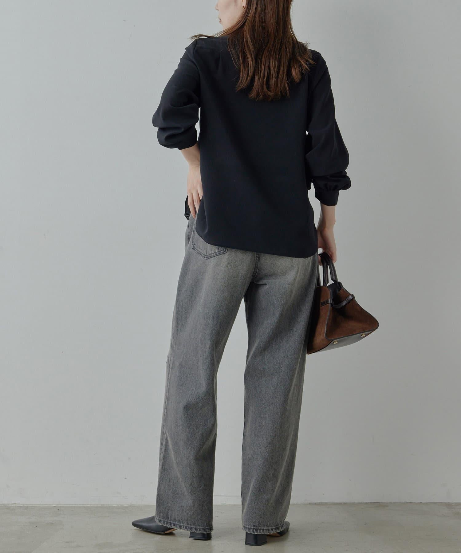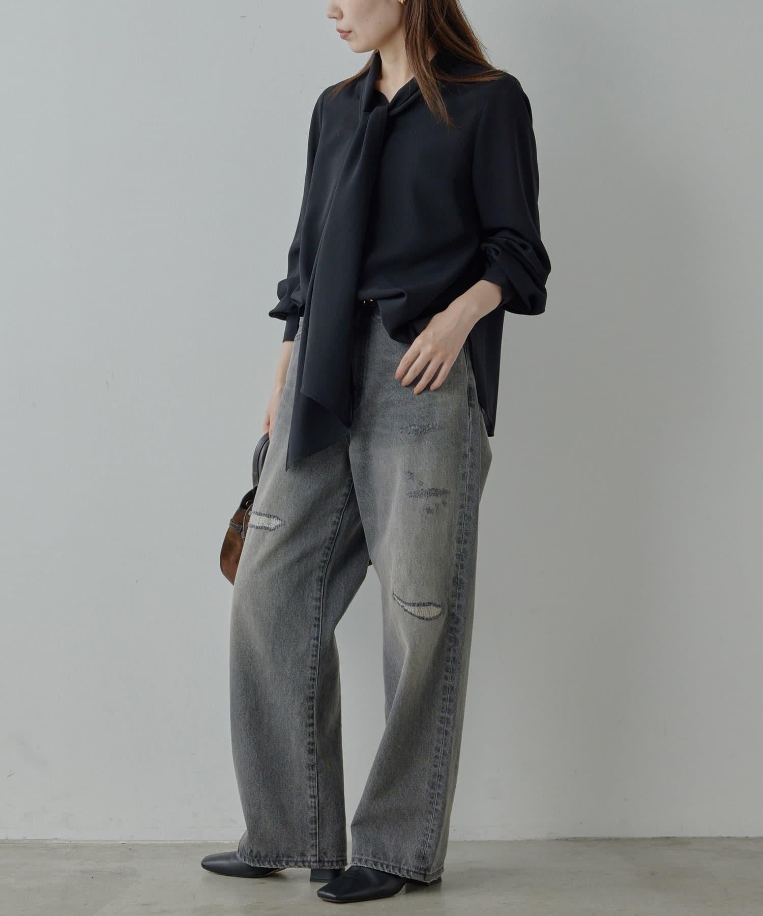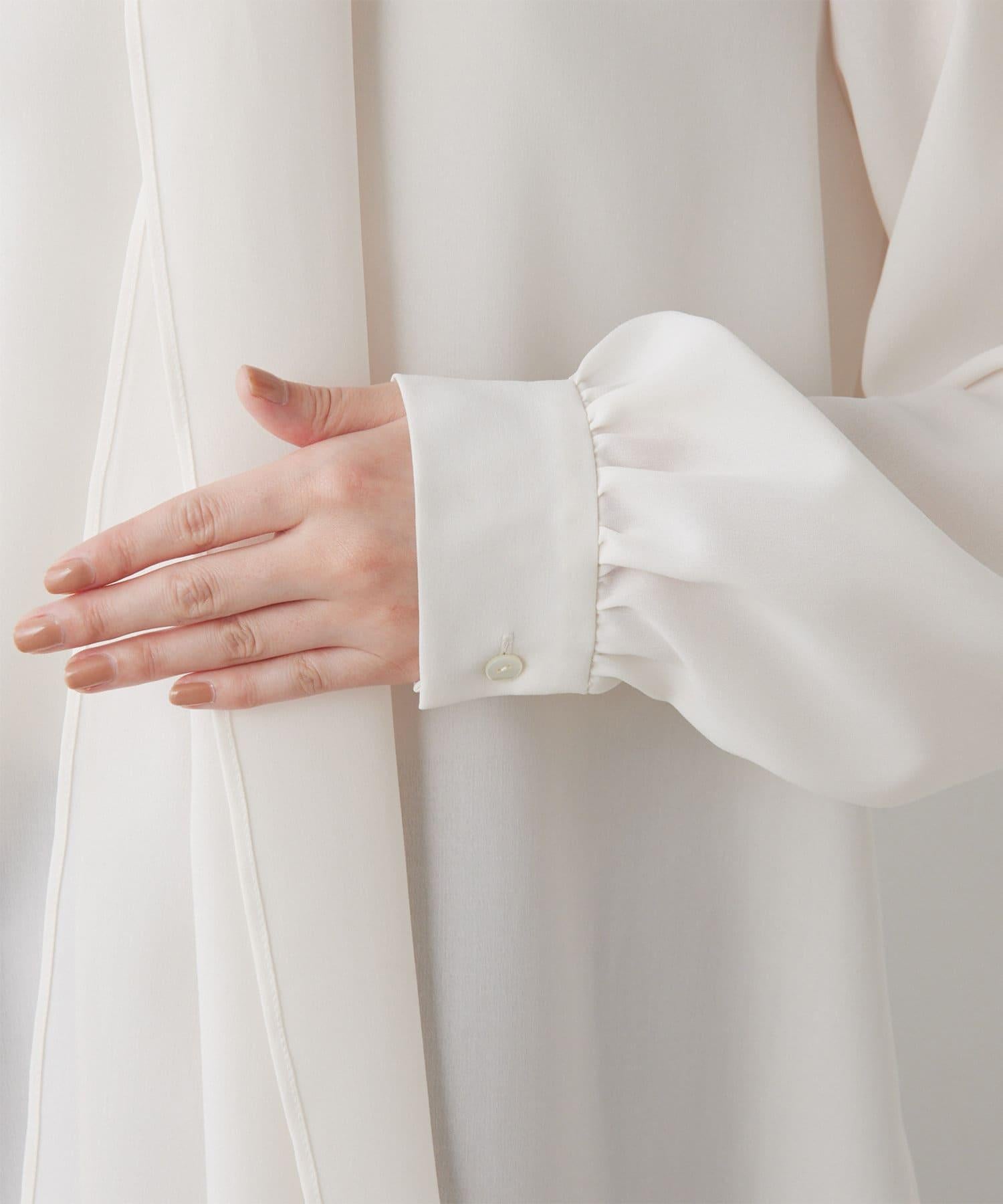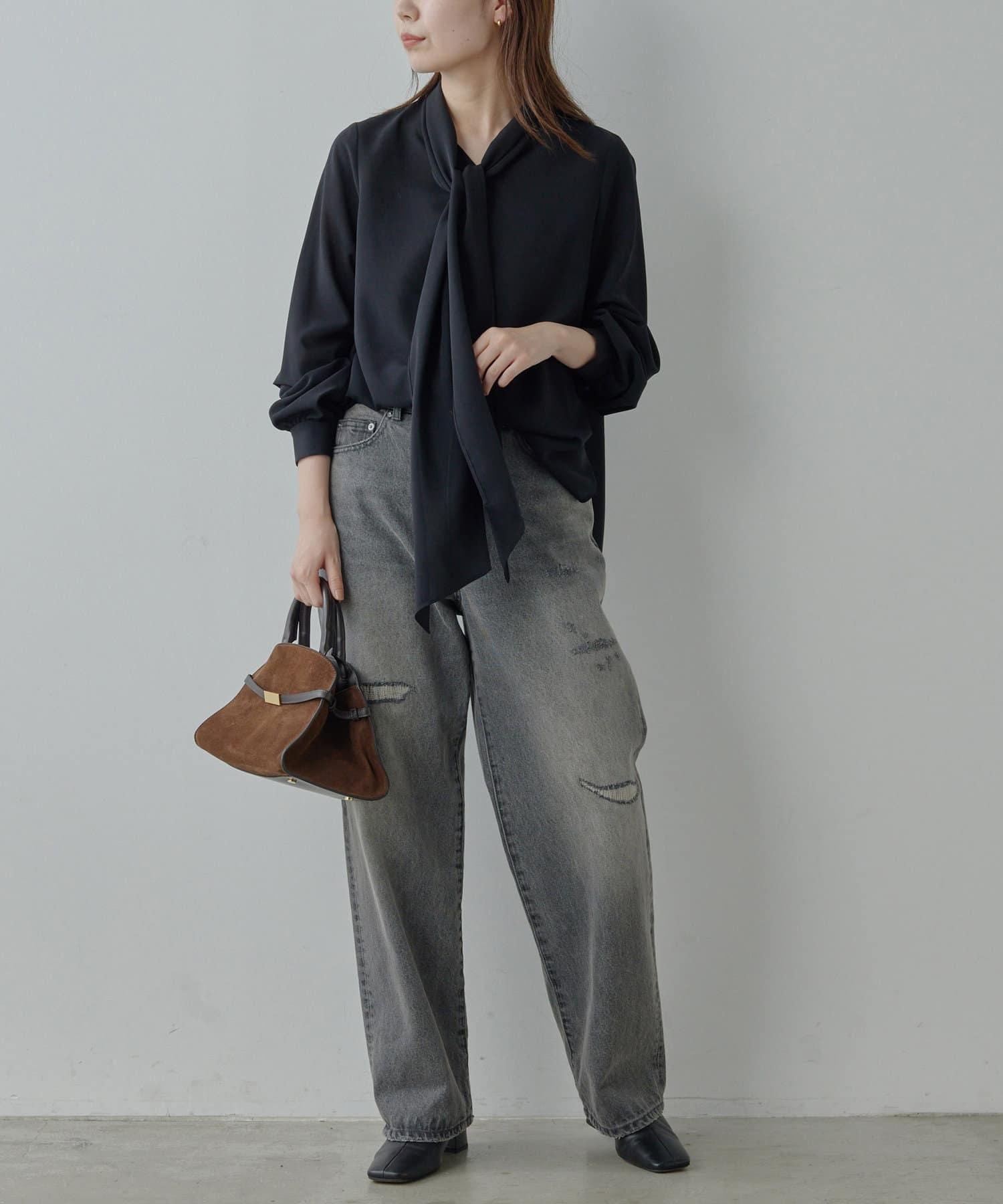 蝴蝶結領結上衣,V 領設計更顯寬鬆。