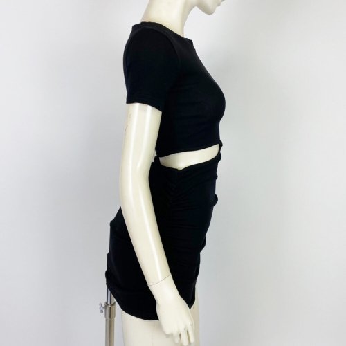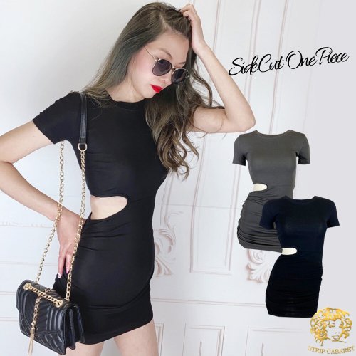 側切迷你款 短袖連衣裙 黑色[特價] (CD4279BK)