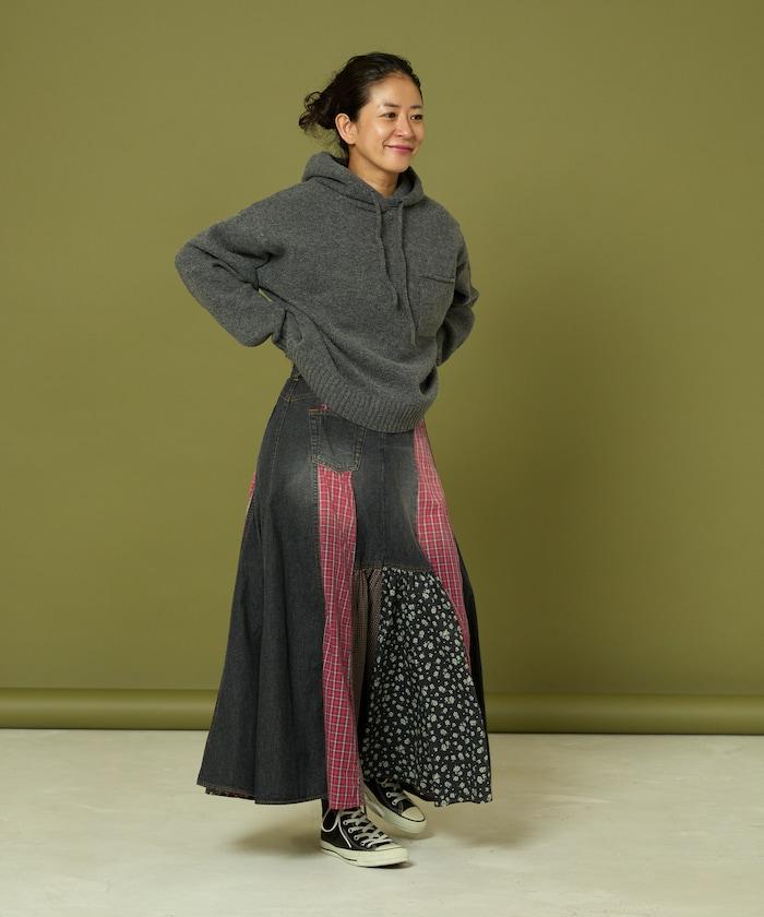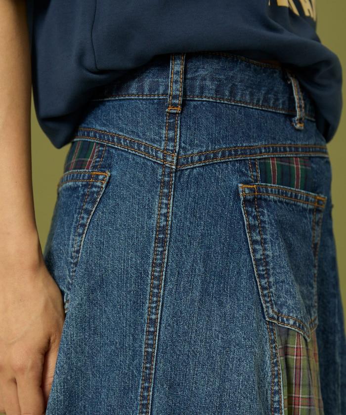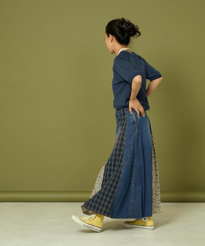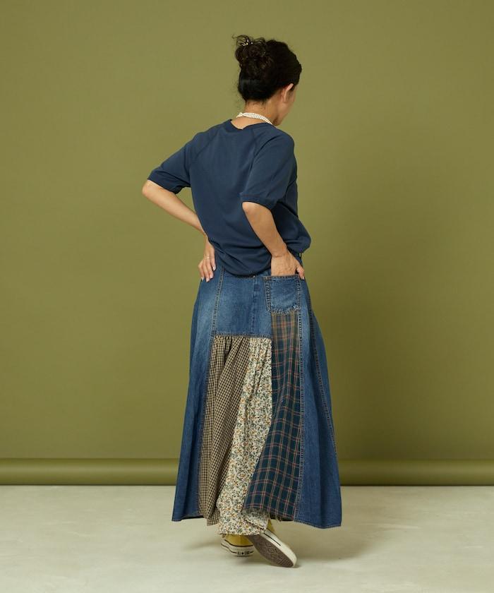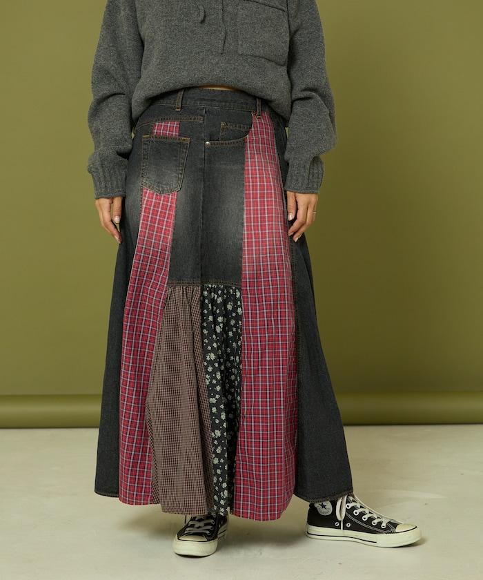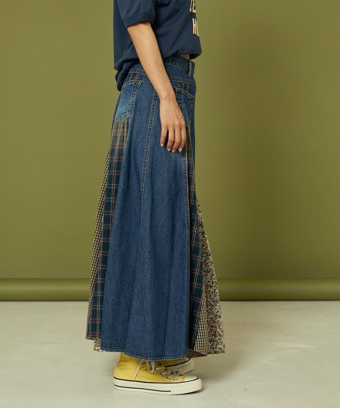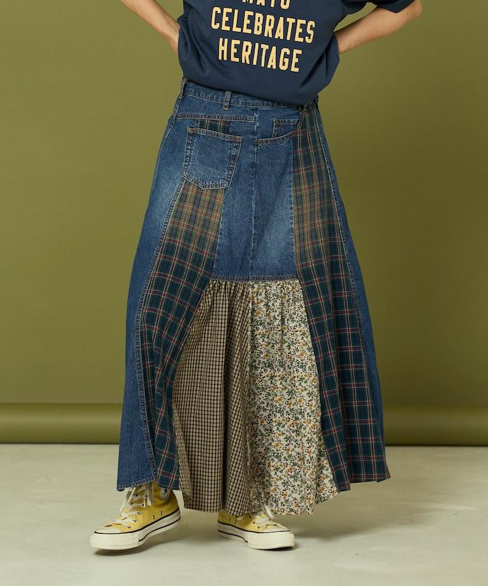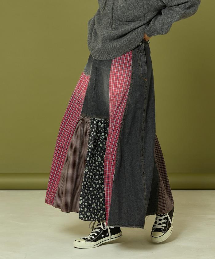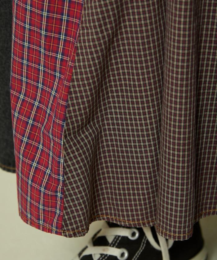 這款拼接裙融合了牛仔布料和圖案面料。本季採用了更為複雜的拼接,將牛仔布、格紋和花卉圖案混合在一起,營造出一種喚起季節情緒的外觀。