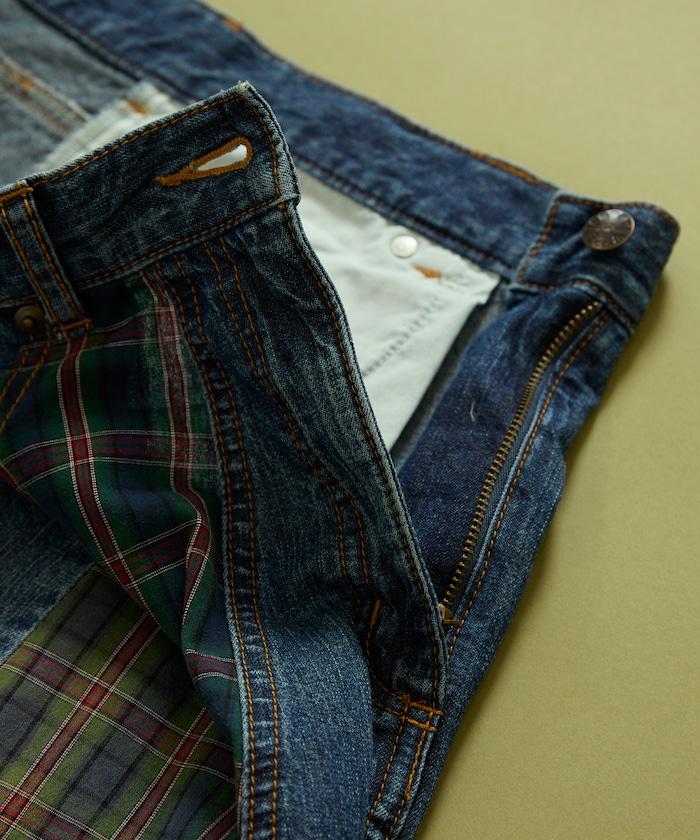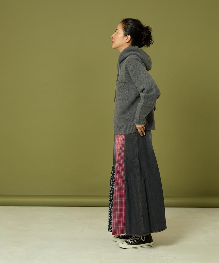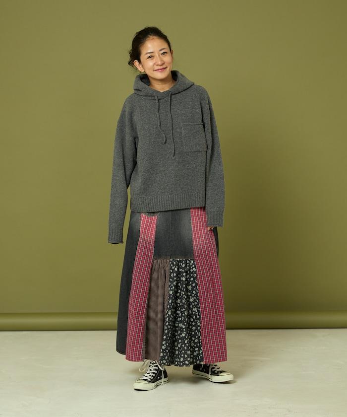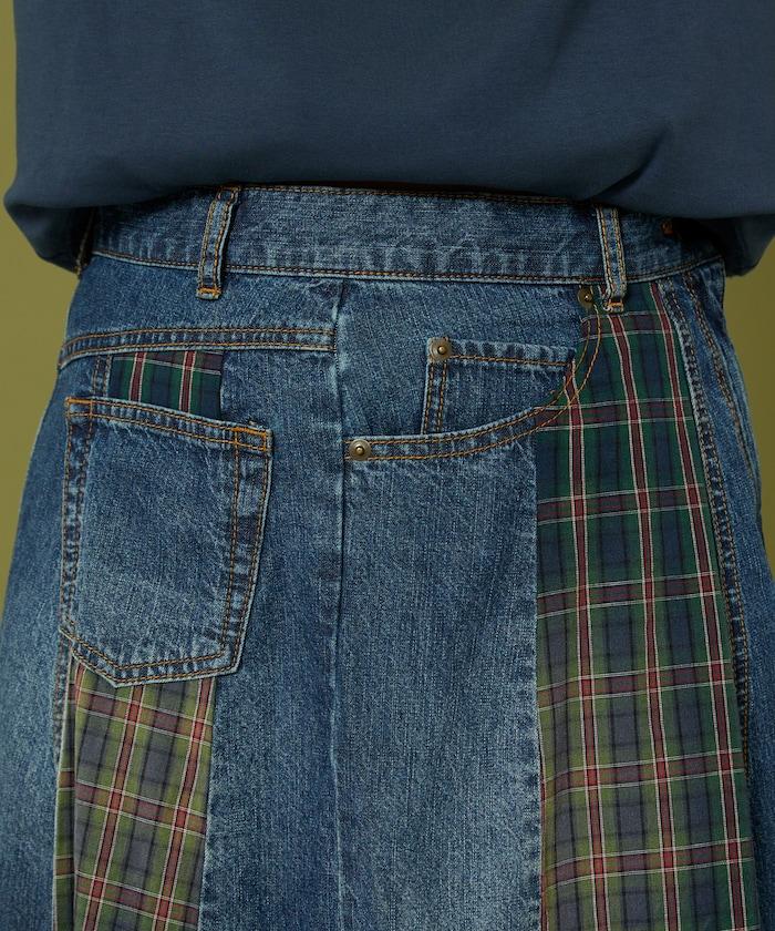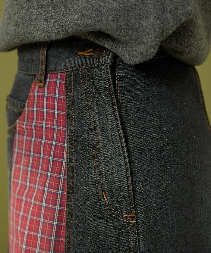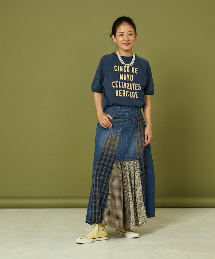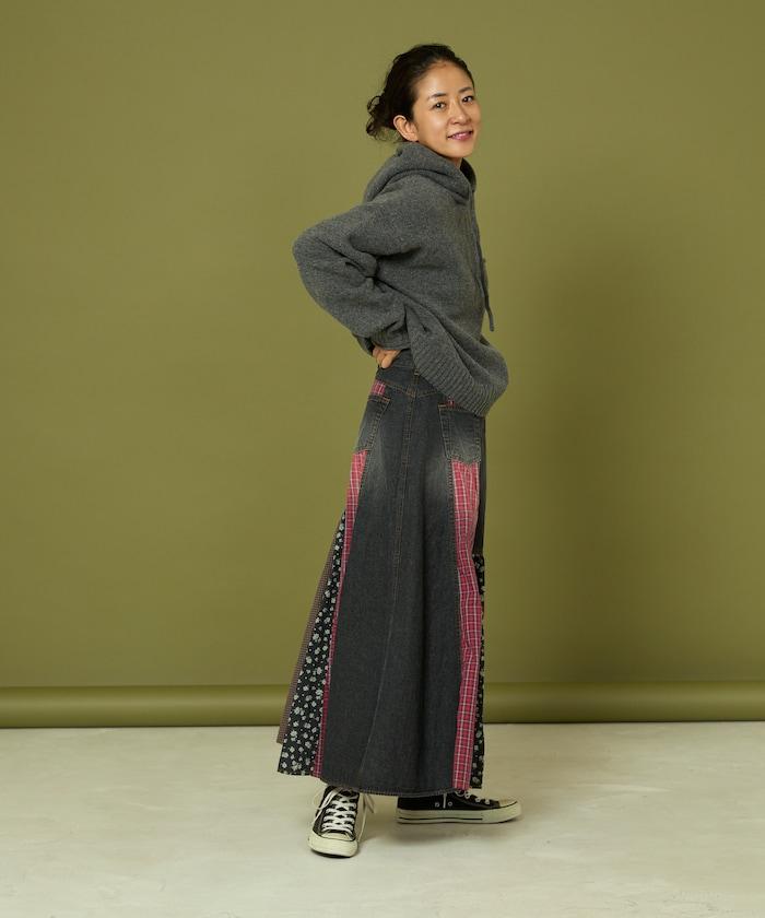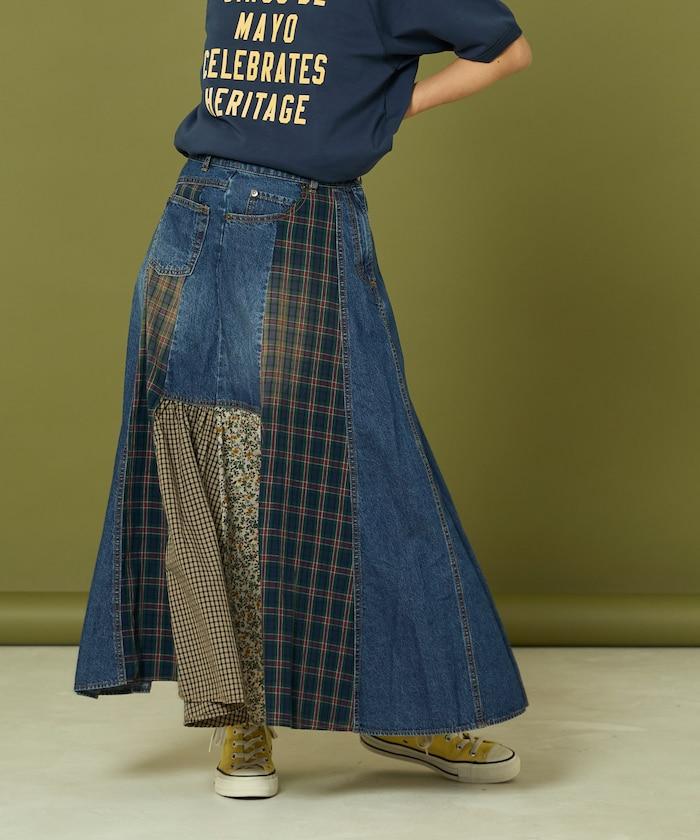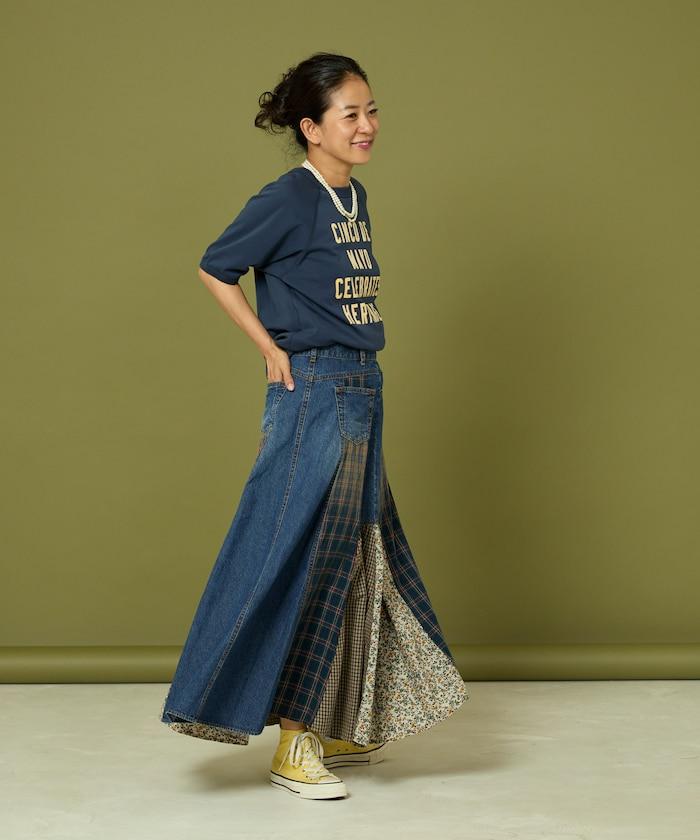這款拼接裙融合了牛仔布料和圖案面料。本季採用了更為複雜的拼接,將牛仔布、格紋和花卉圖案混合在一起,營造出一種喚起季節情緒的外觀。