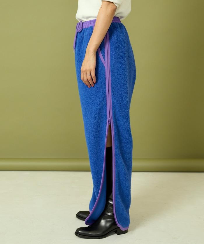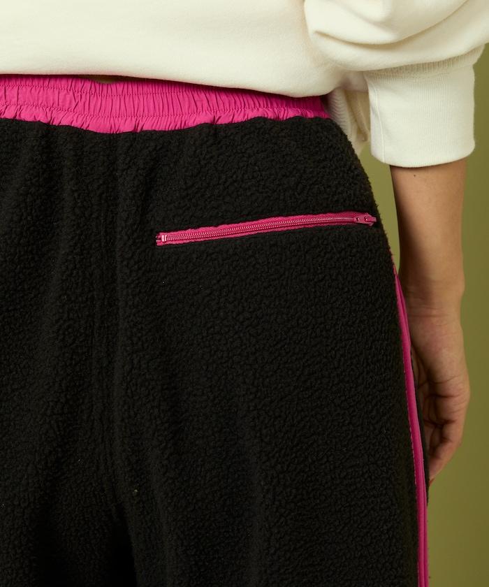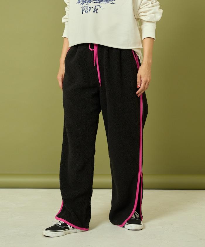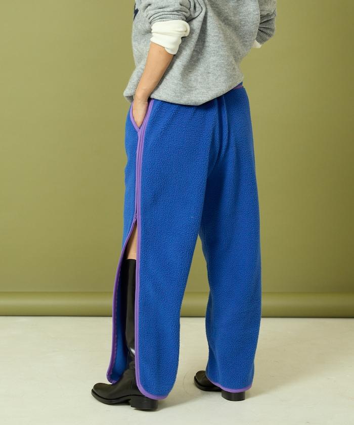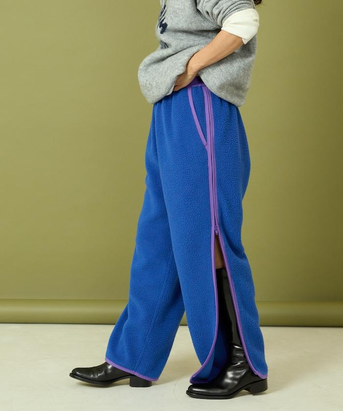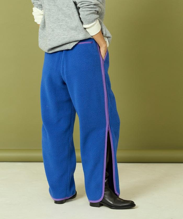 這款抓絨長褲的設計參考了戶外抓絨的細節,從兩側下襬到腰部都可以用拉鍊開合。