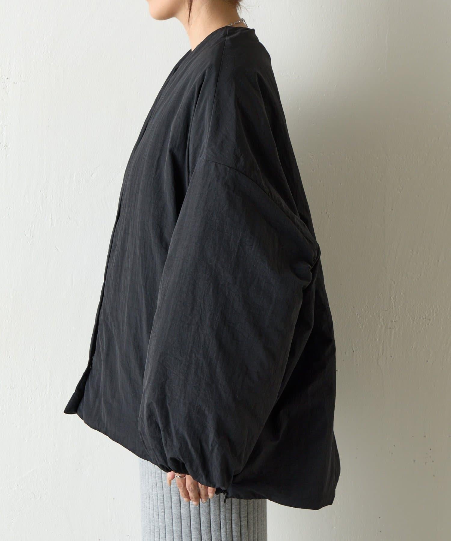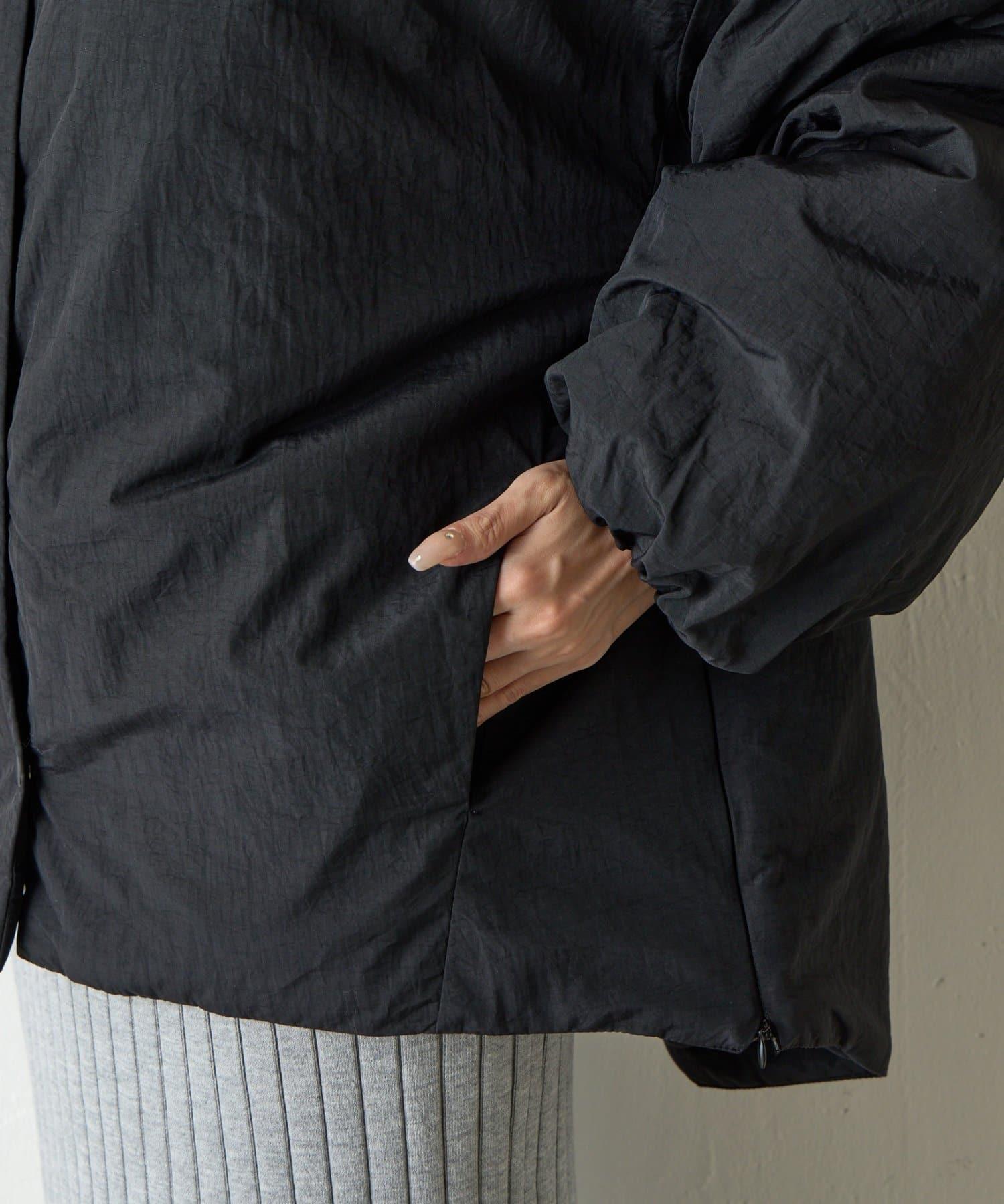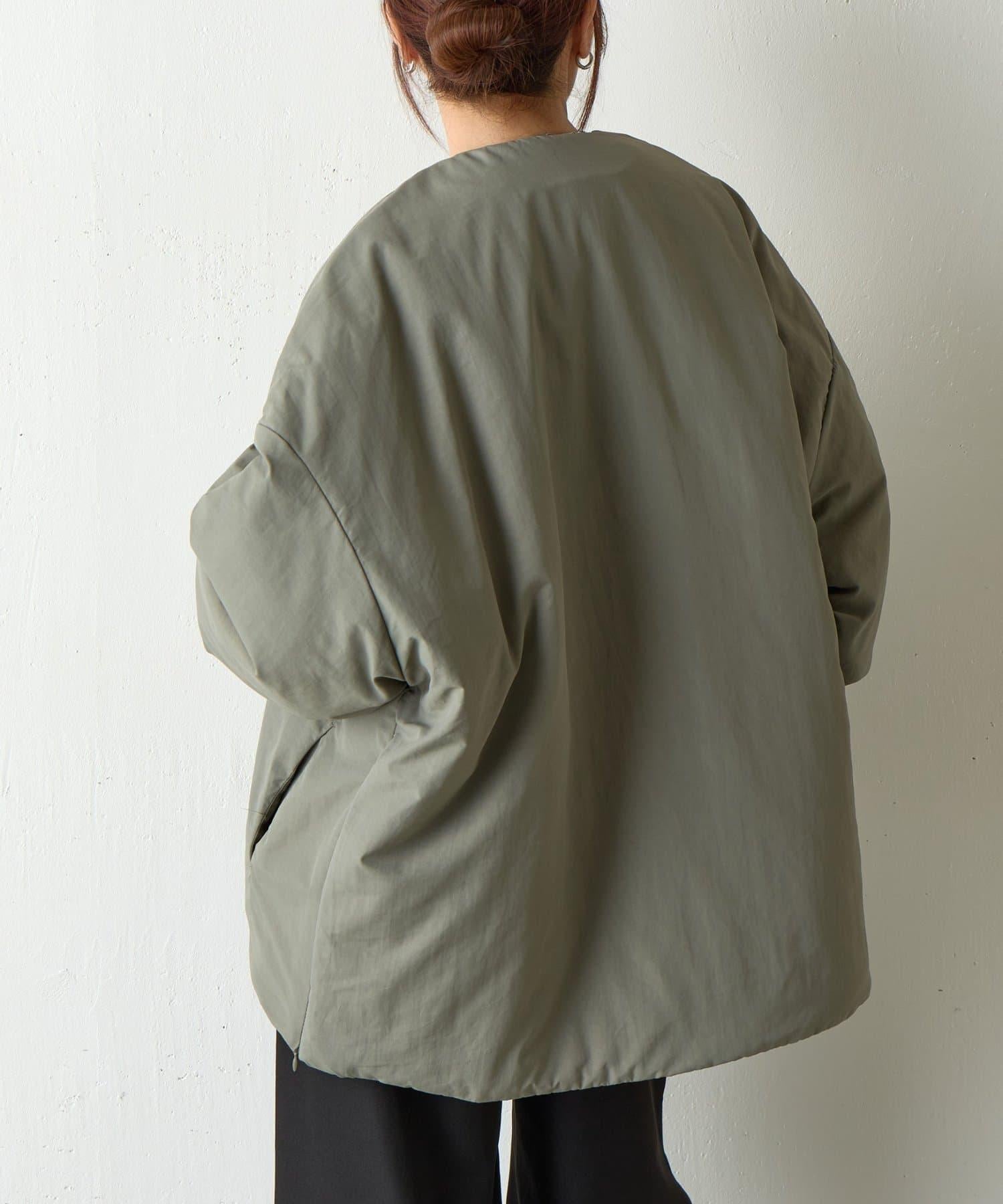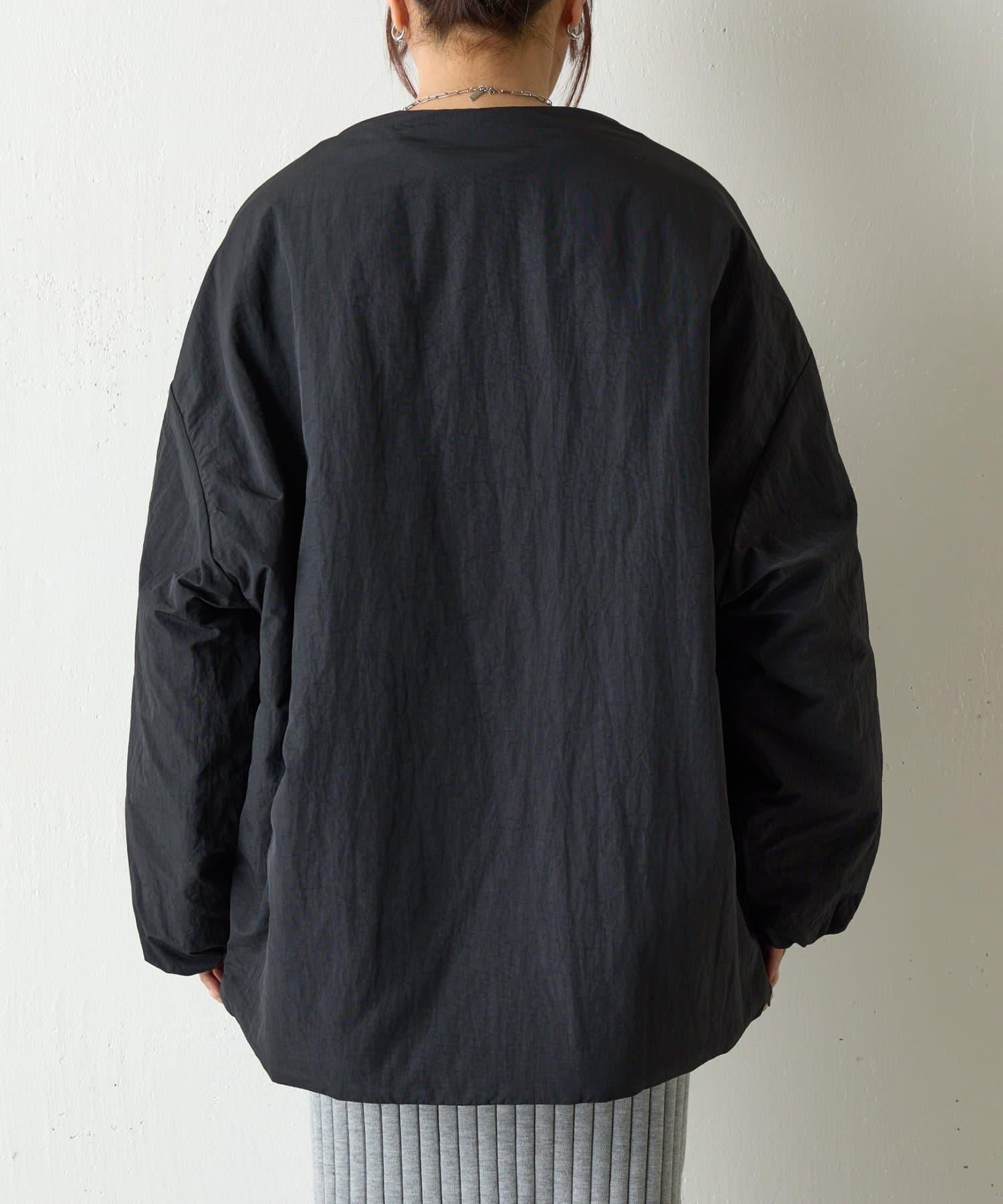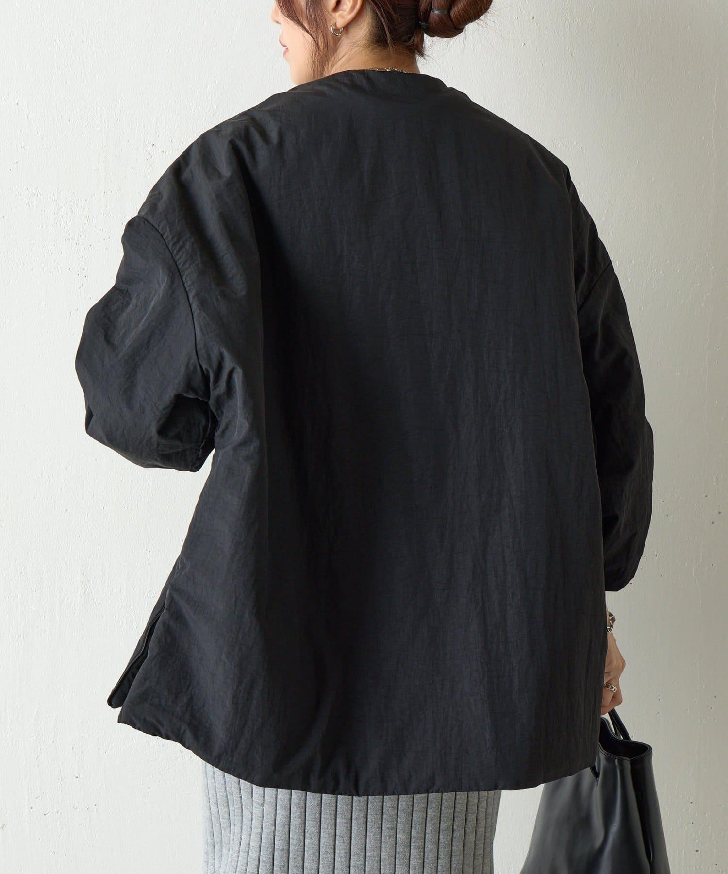 這款側拉鍊無領棉外套設計簡約,功能性更強。