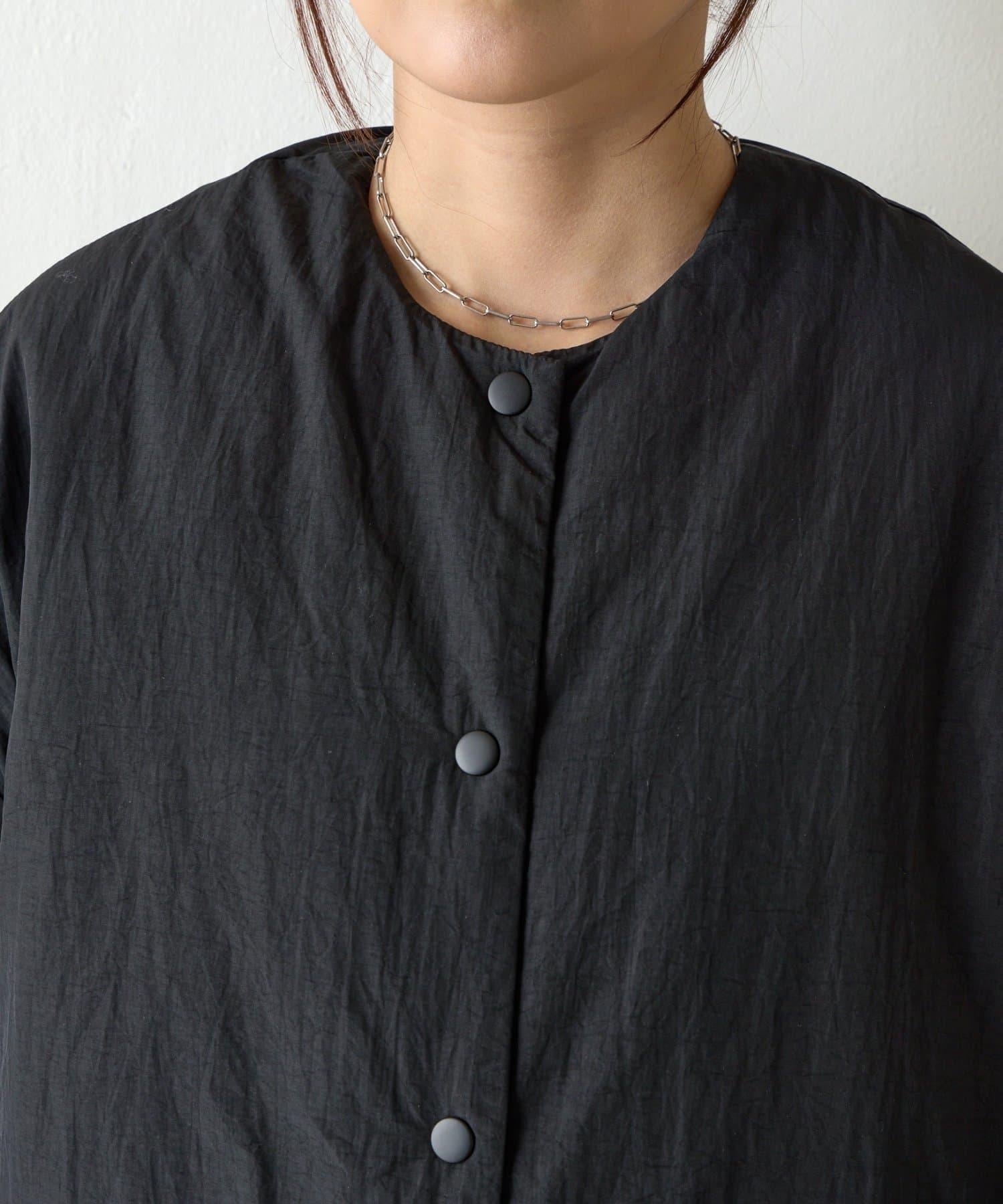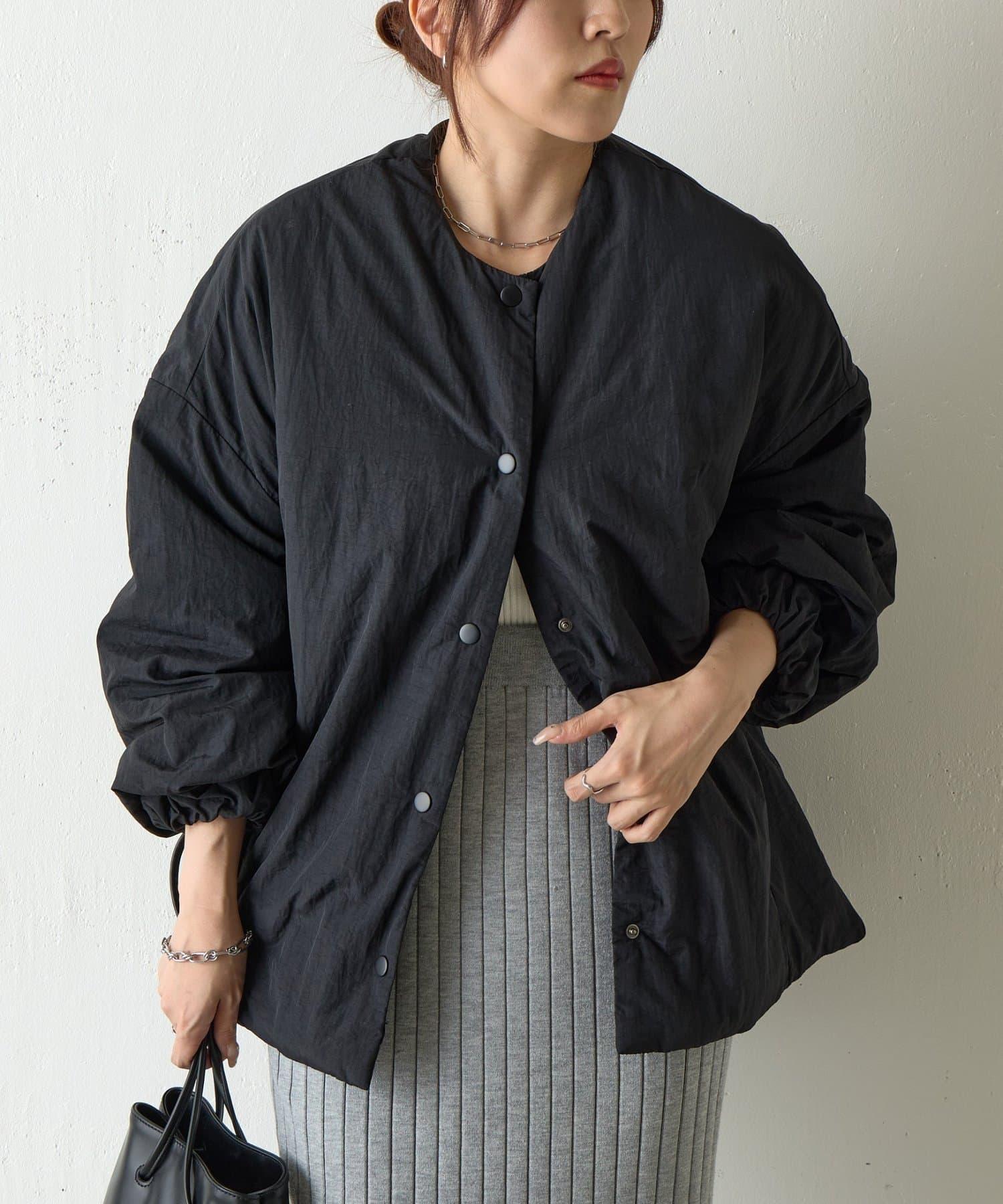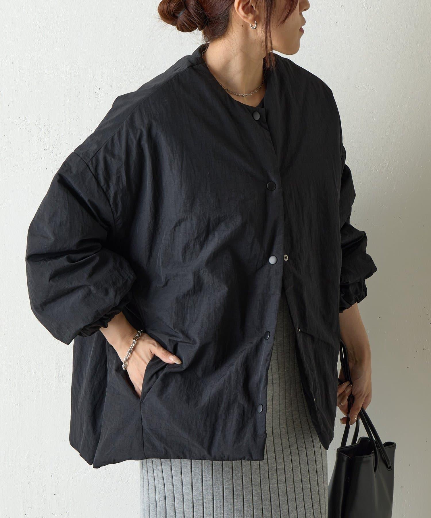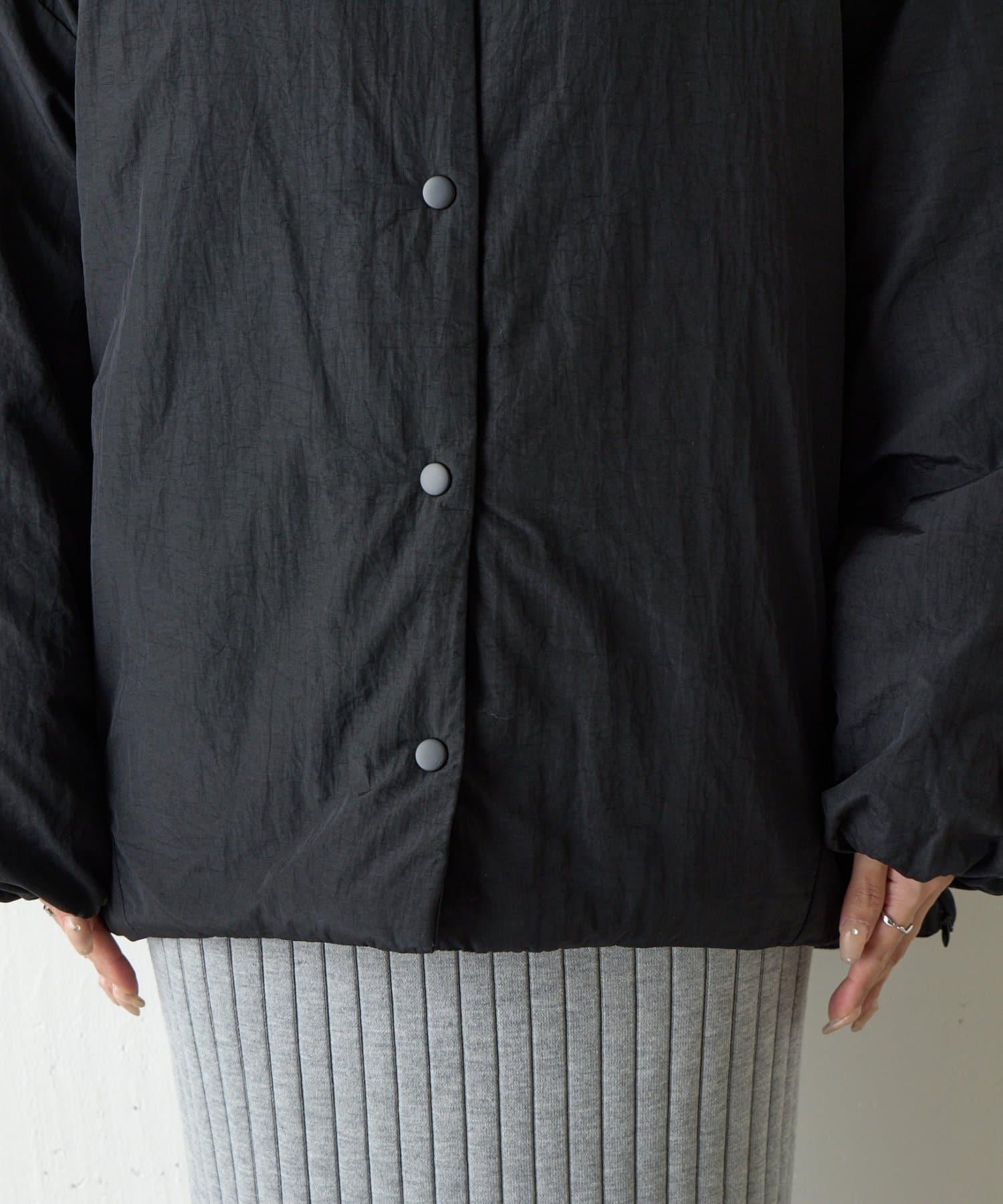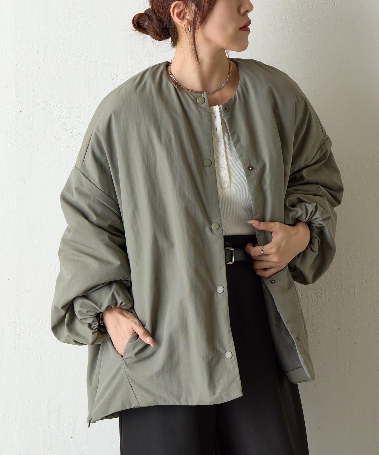 這款側拉鍊無領棉外套設計簡約,功能性更強。