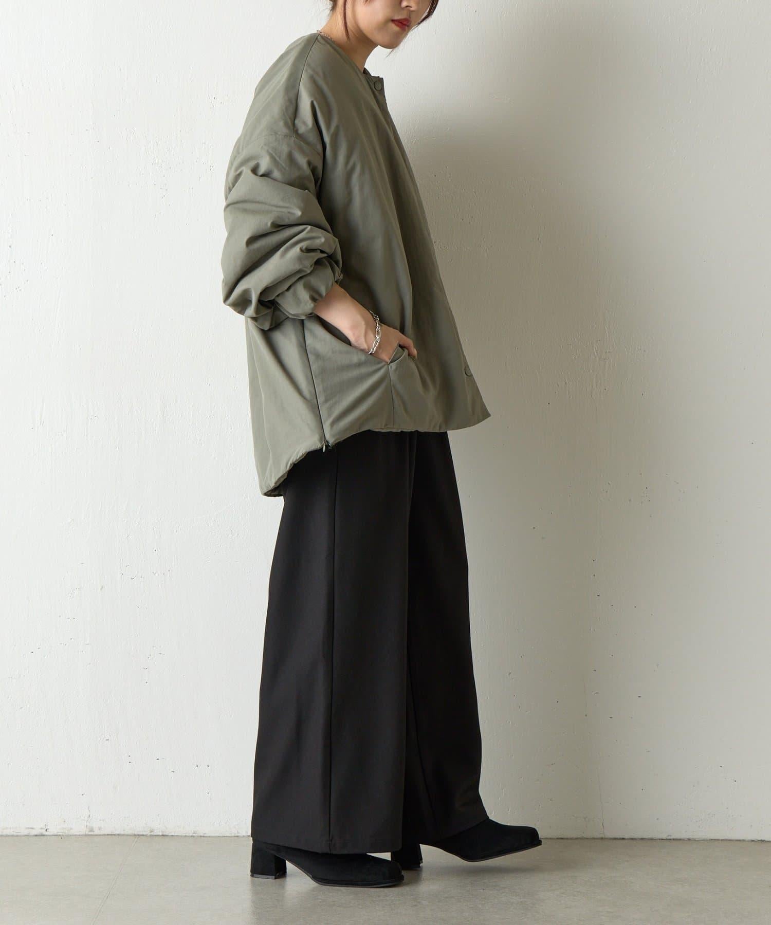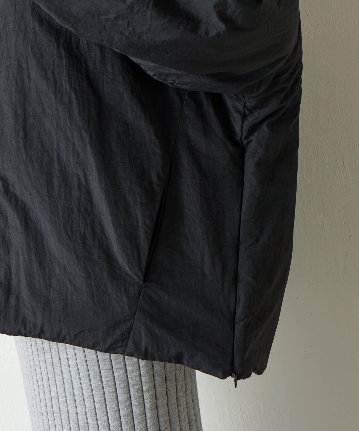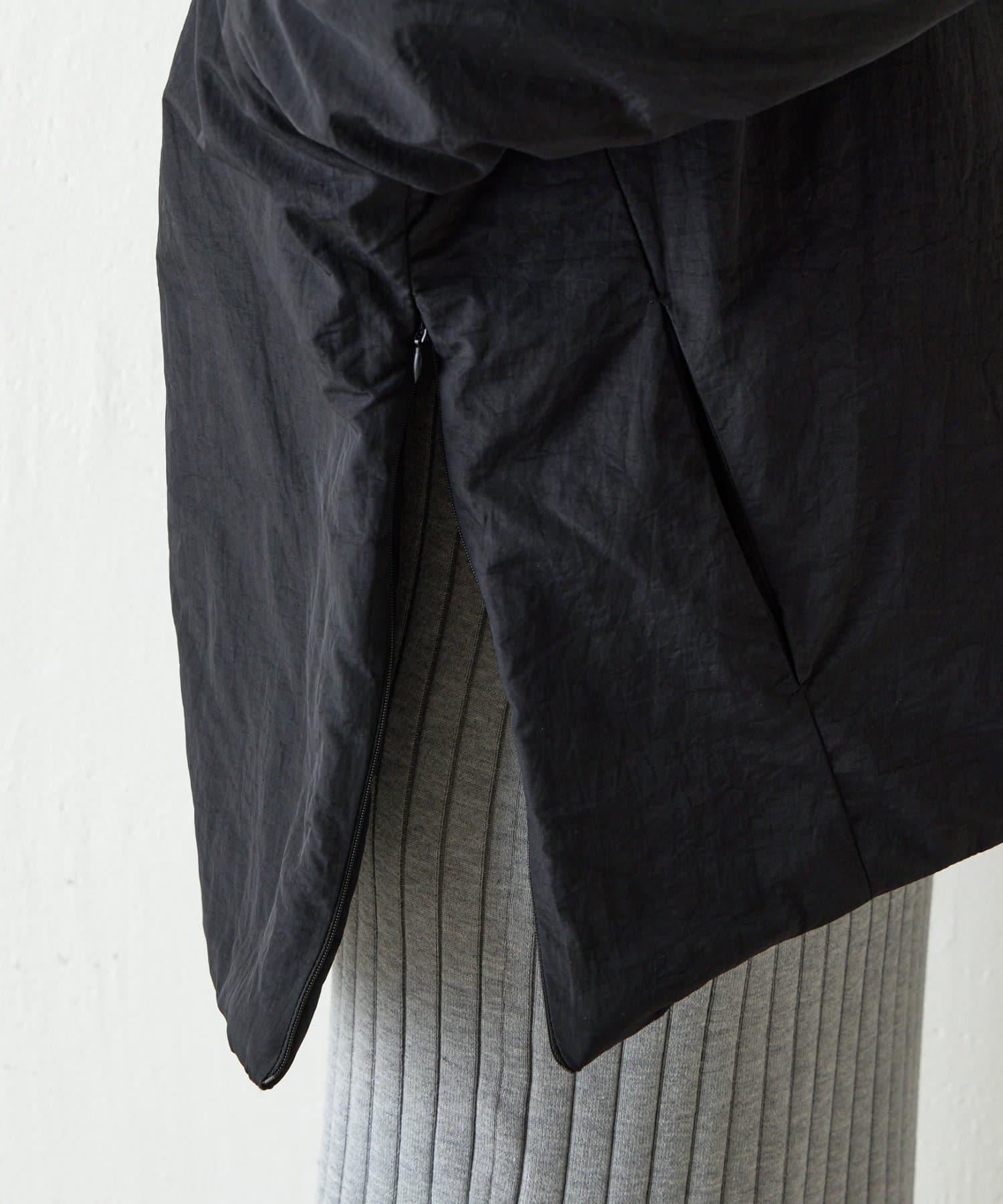 側面下襬的拉鍊可以開合,因此成為可以通過改變輪廓來享受的外衣。