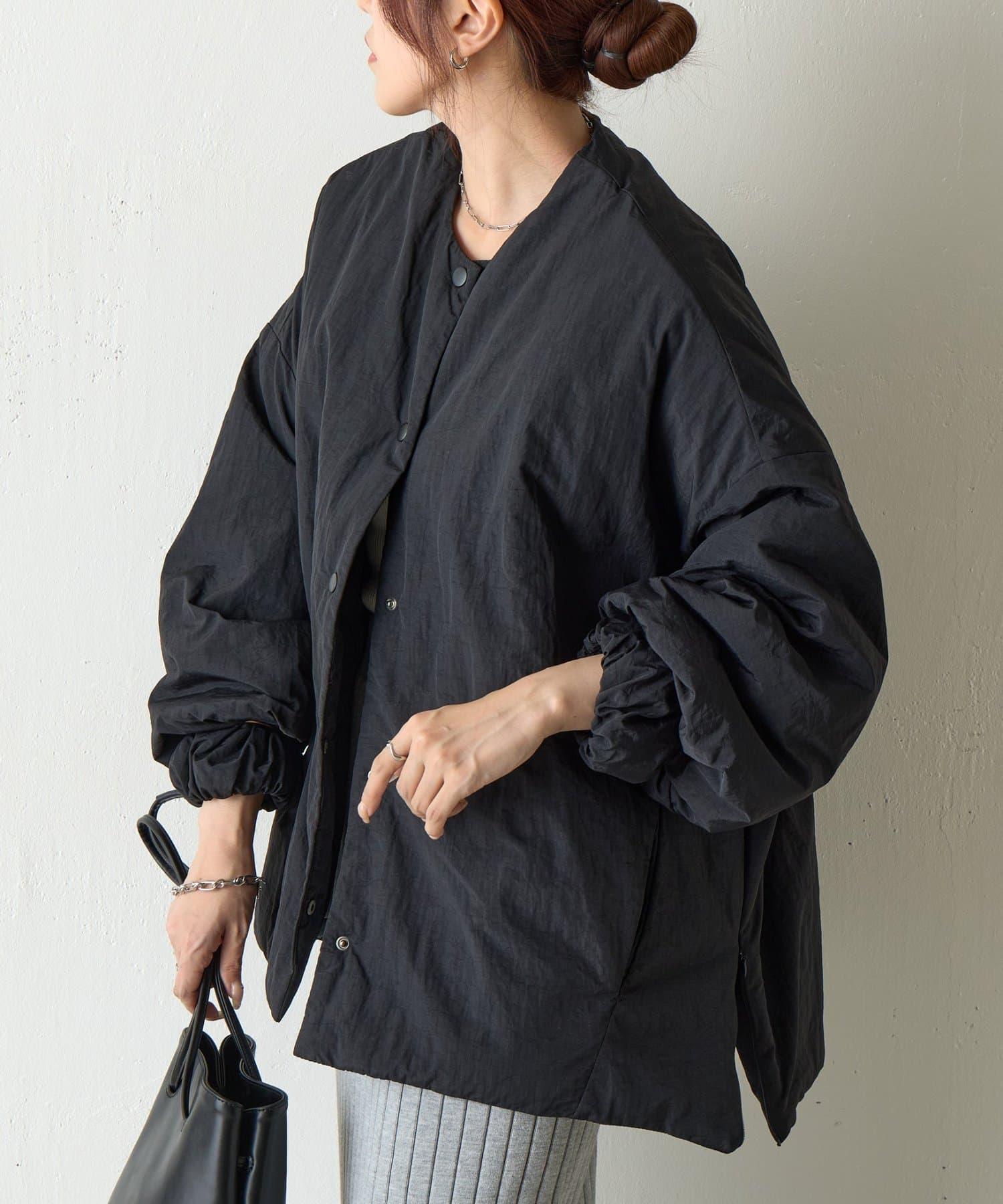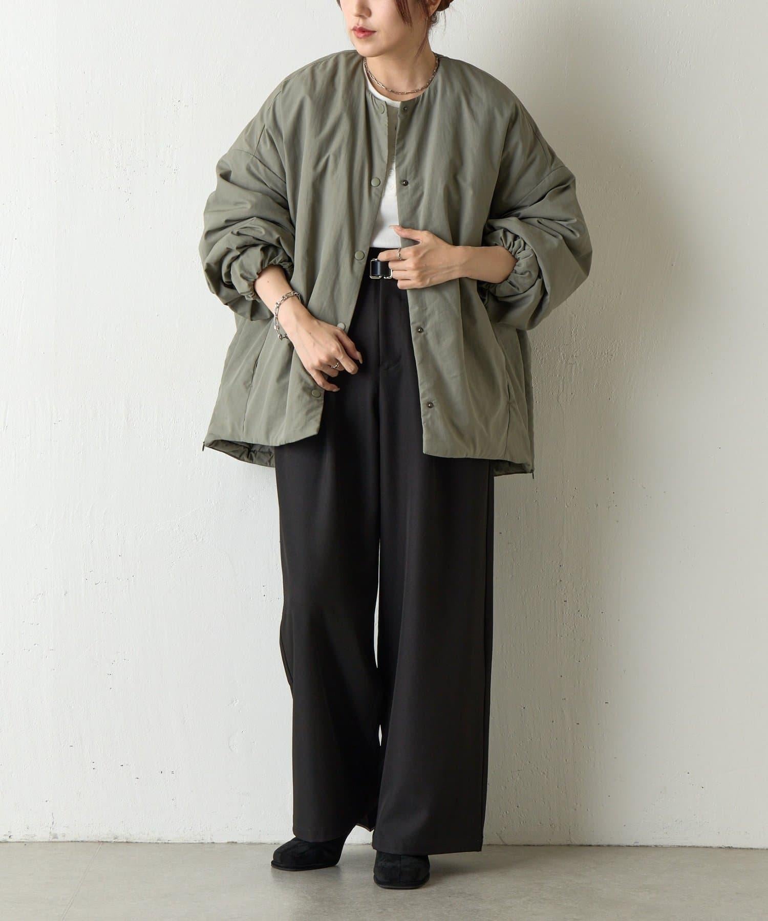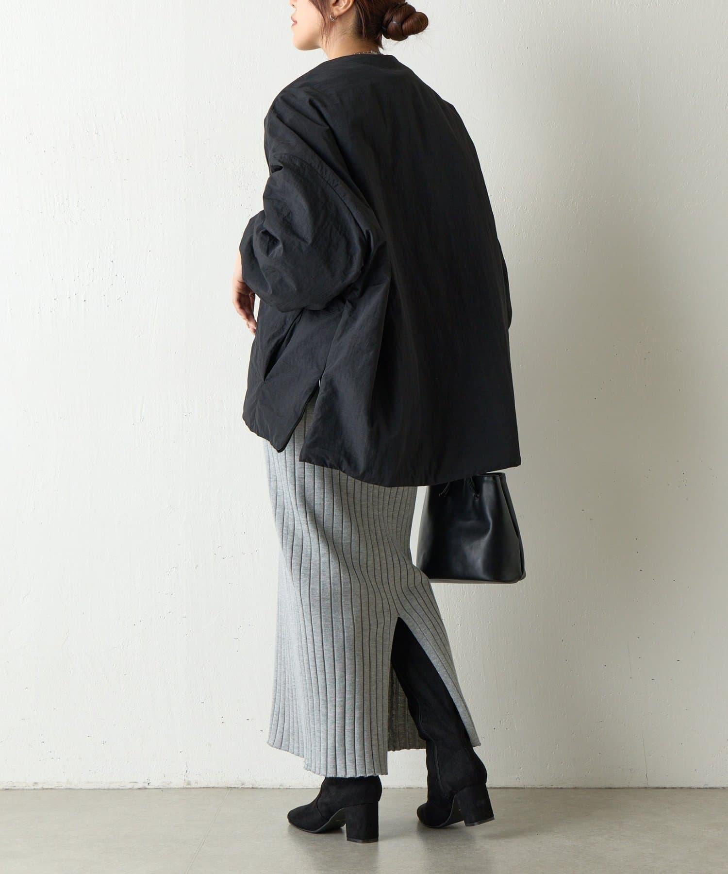 側面下襬的拉鍊可以開合,因此成為可以通過改變輪廓來享受的外衣。