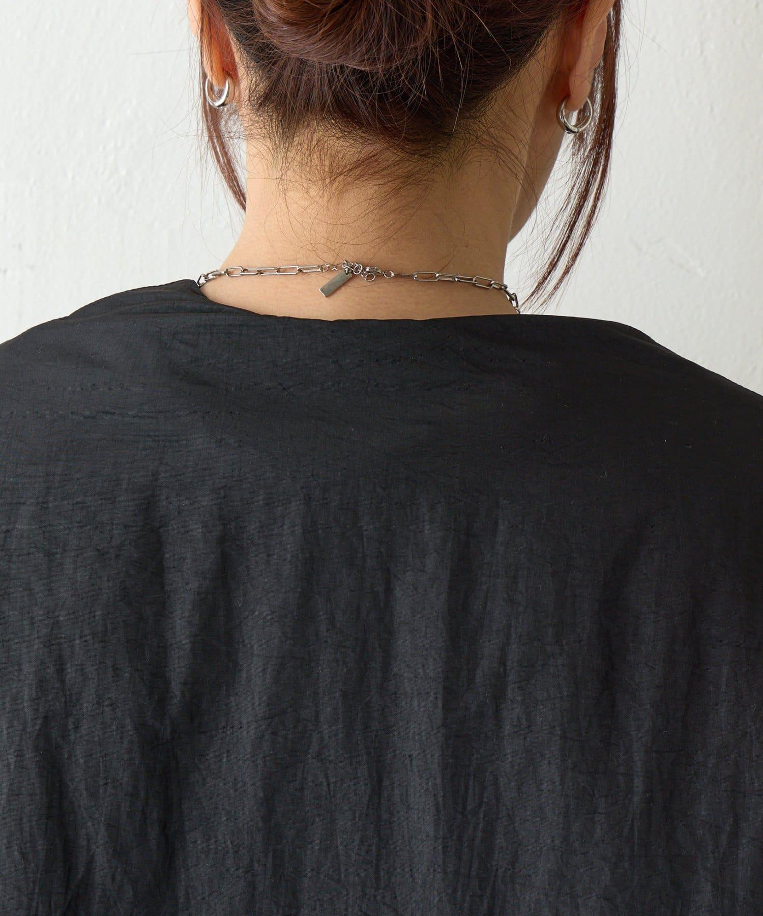 無領設計可保持頸部整潔,因此可搭配高領上衣等。