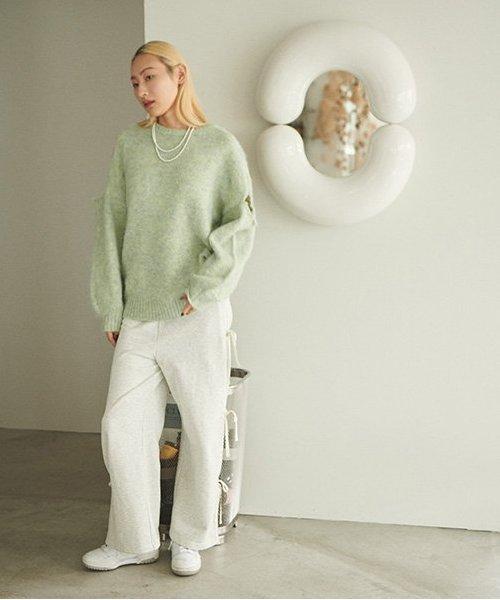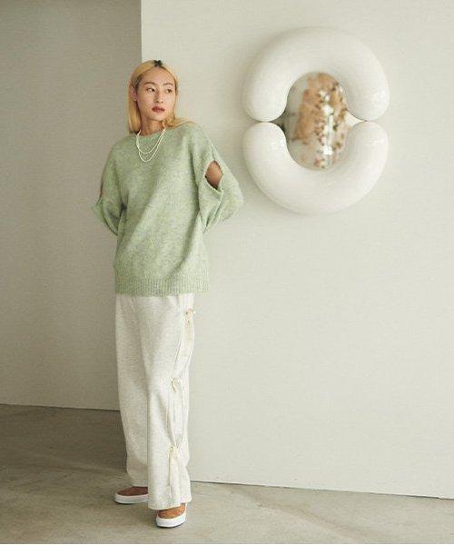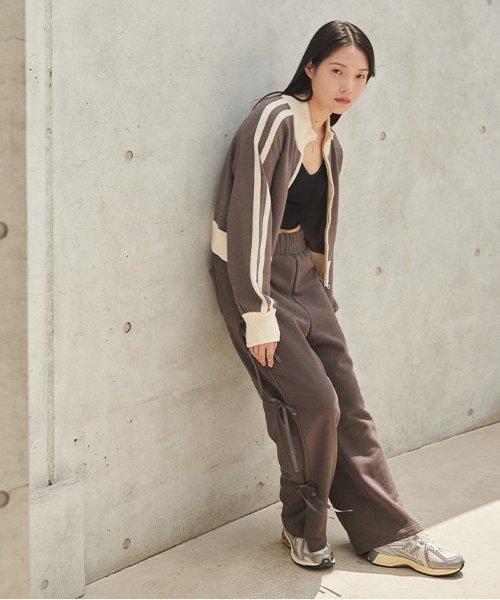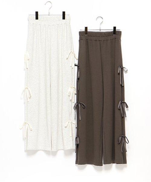側蝴蝶結褶皺長褲