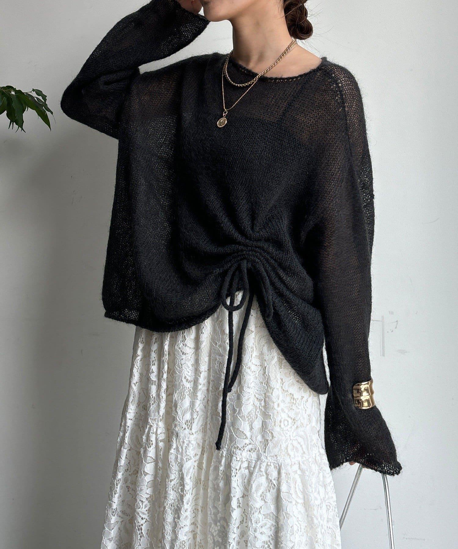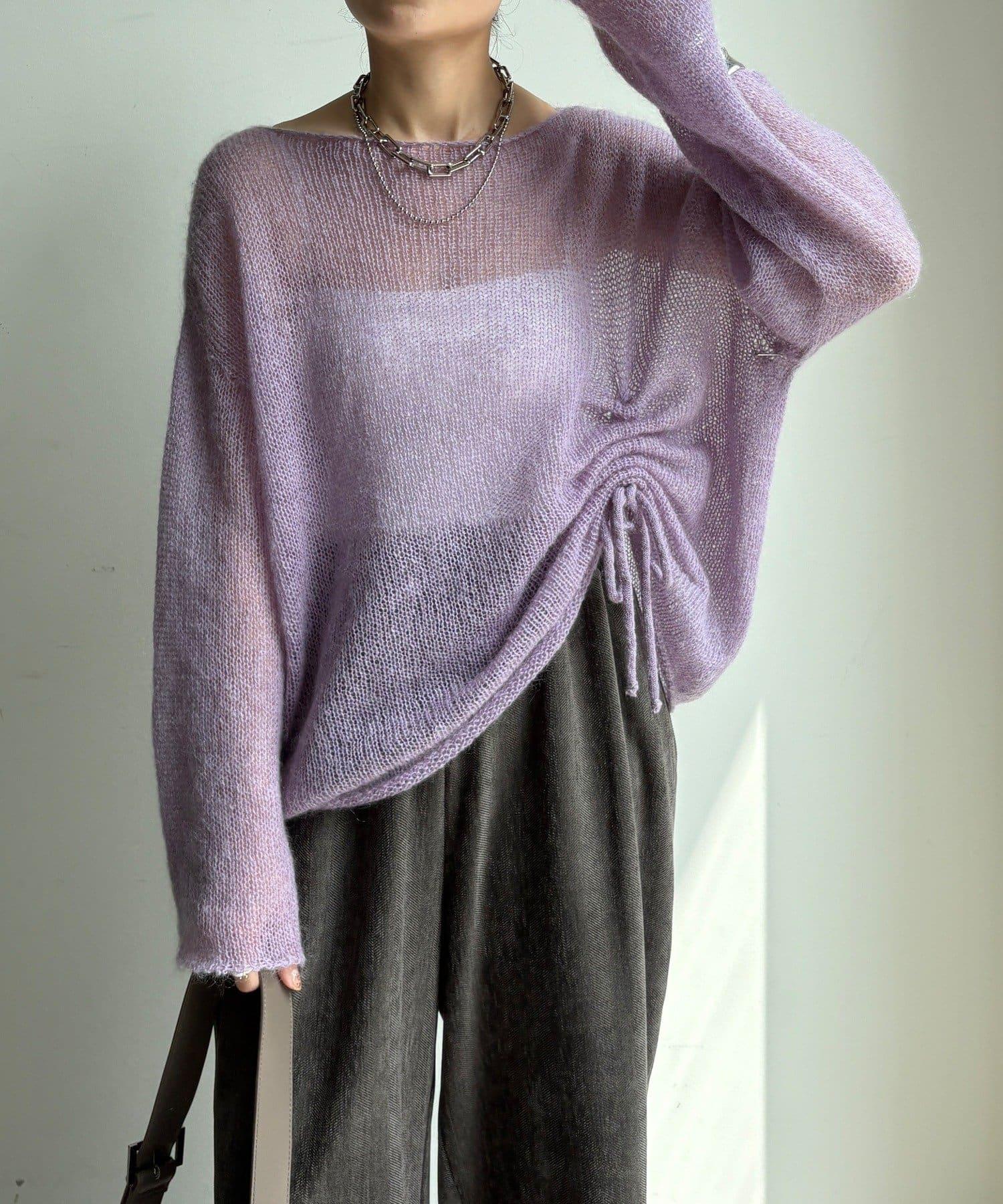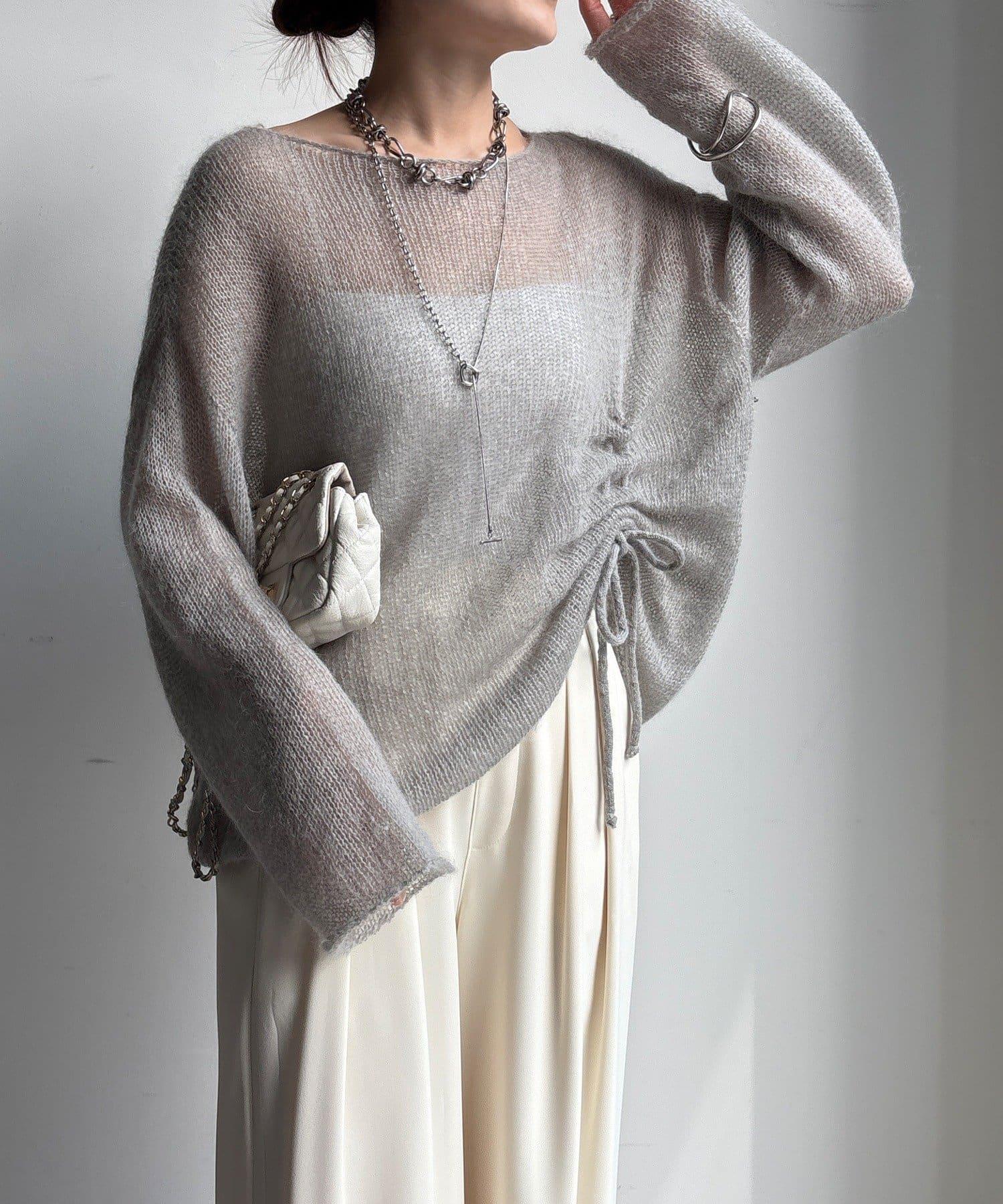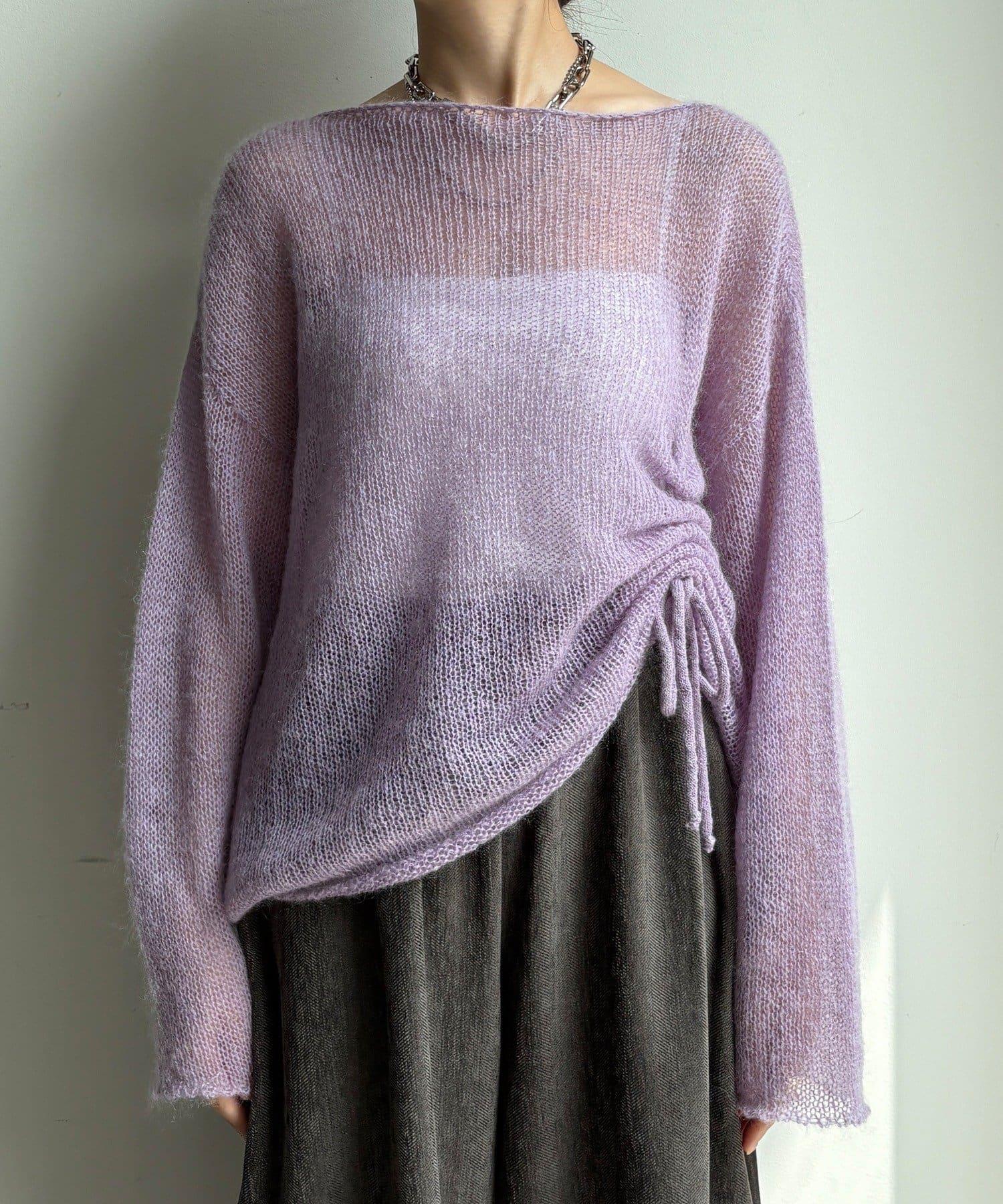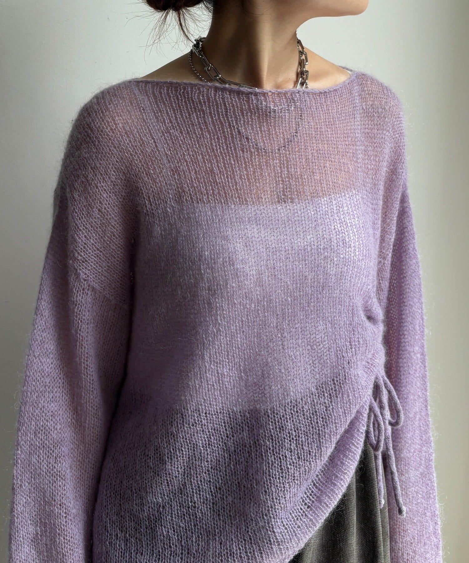 這款針織上衣採用透視面料,兩側飾有碎花!