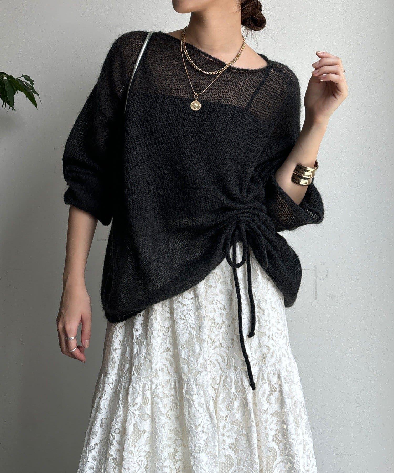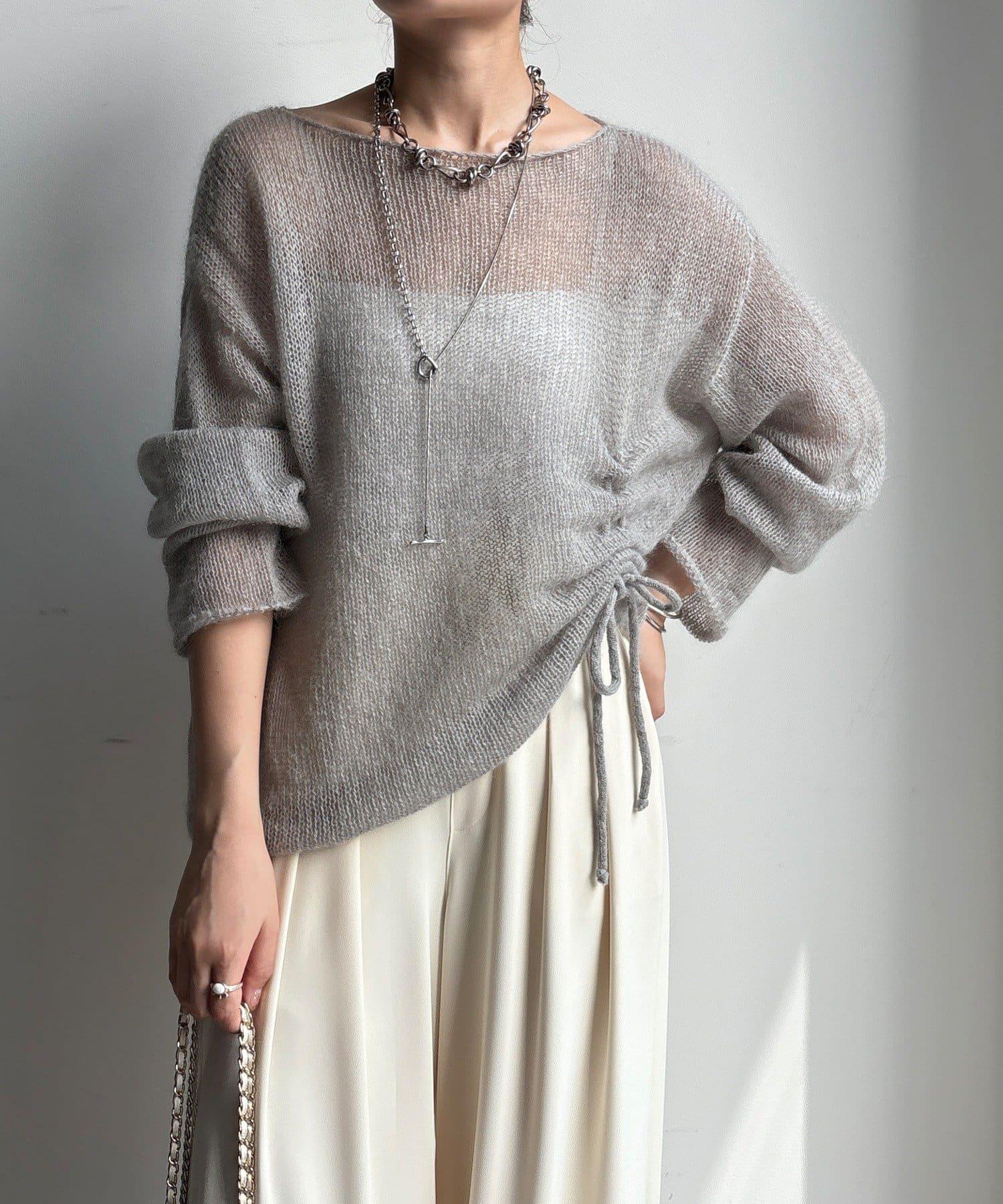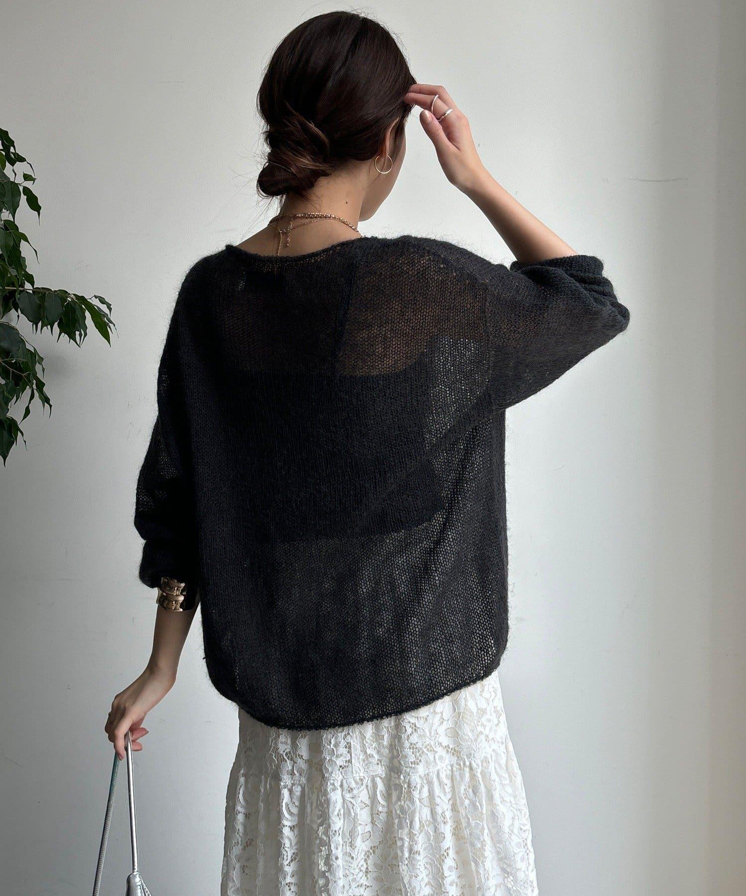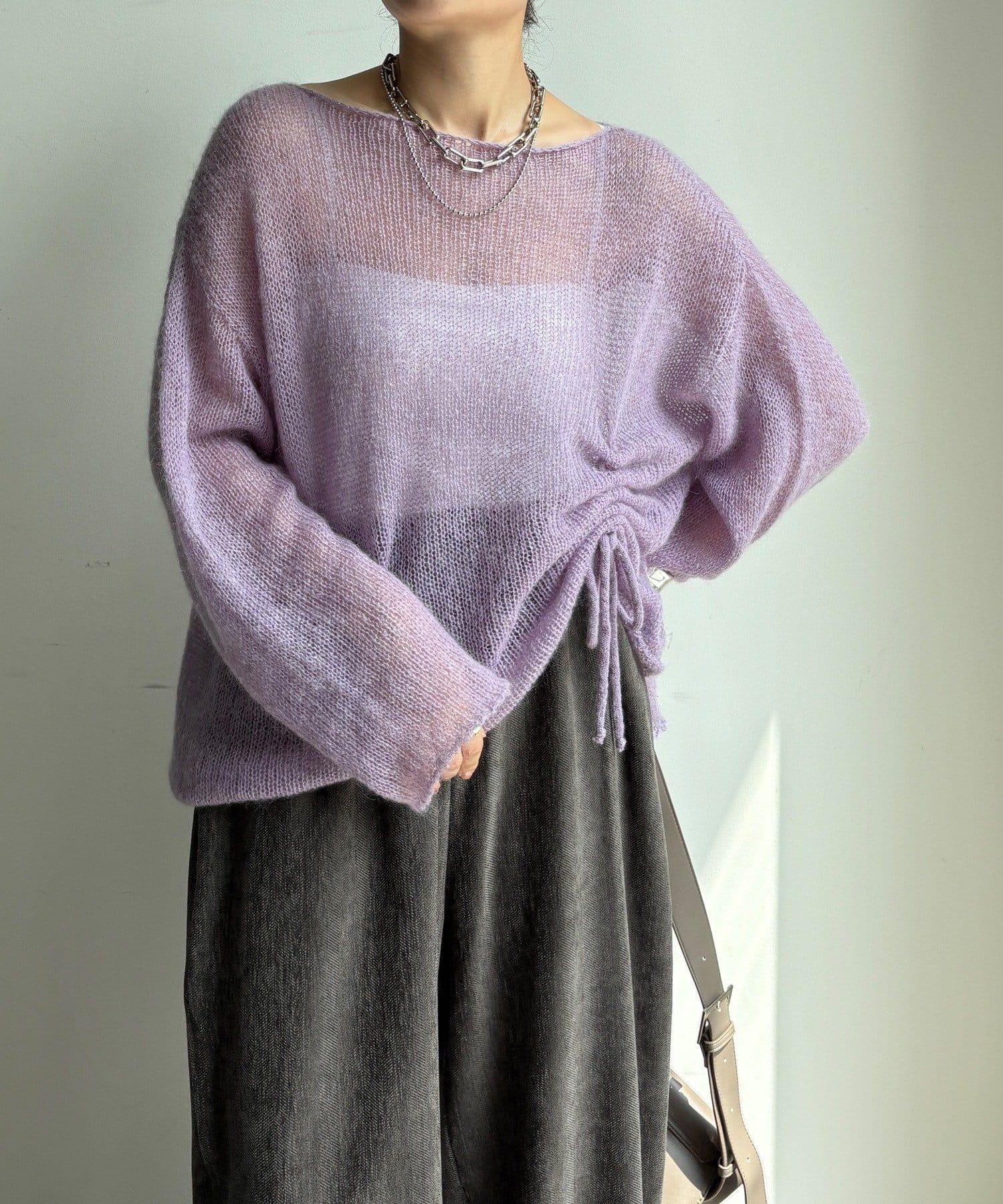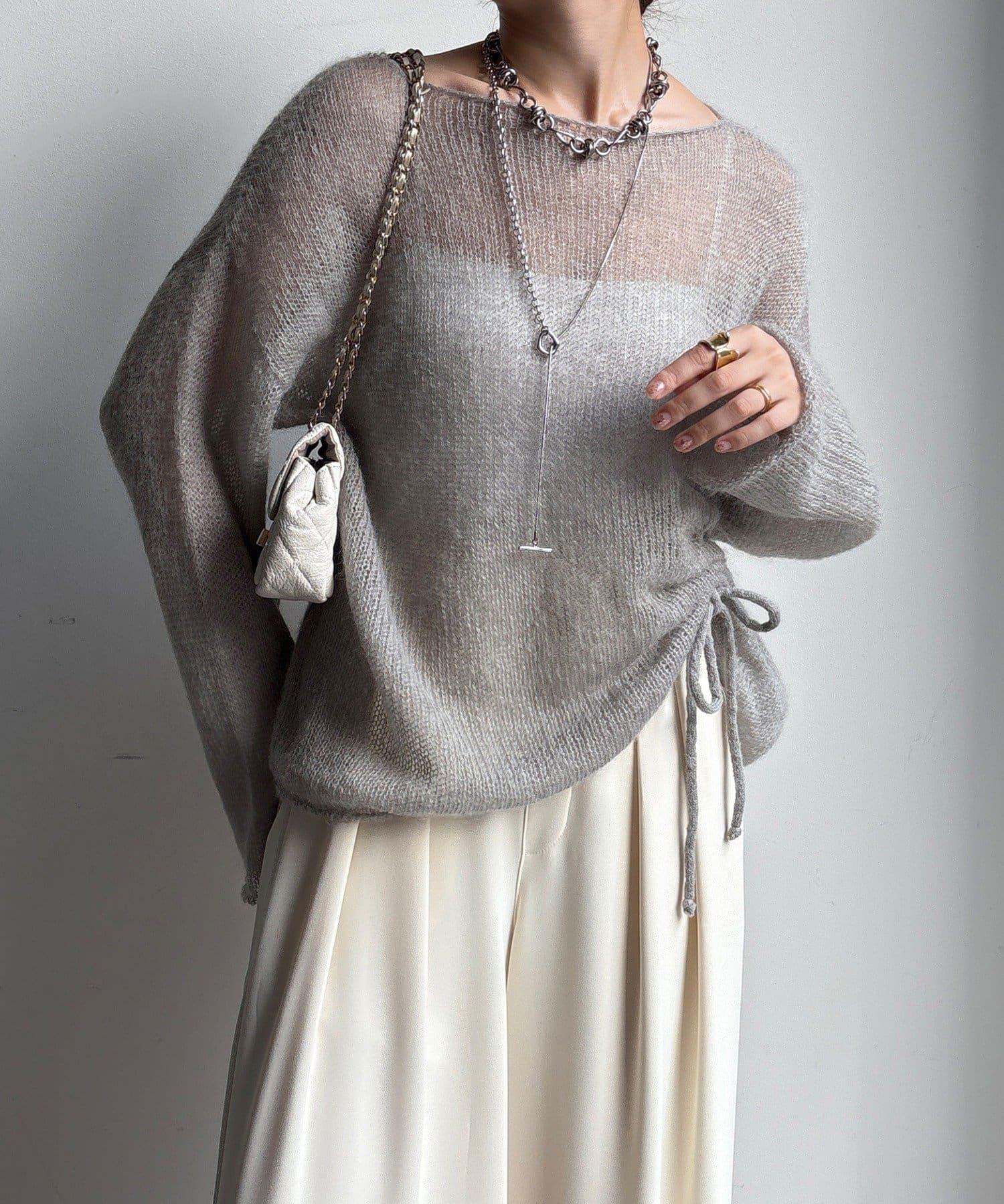 這款針織上衣採用透視面料,兩側飾有碎花!