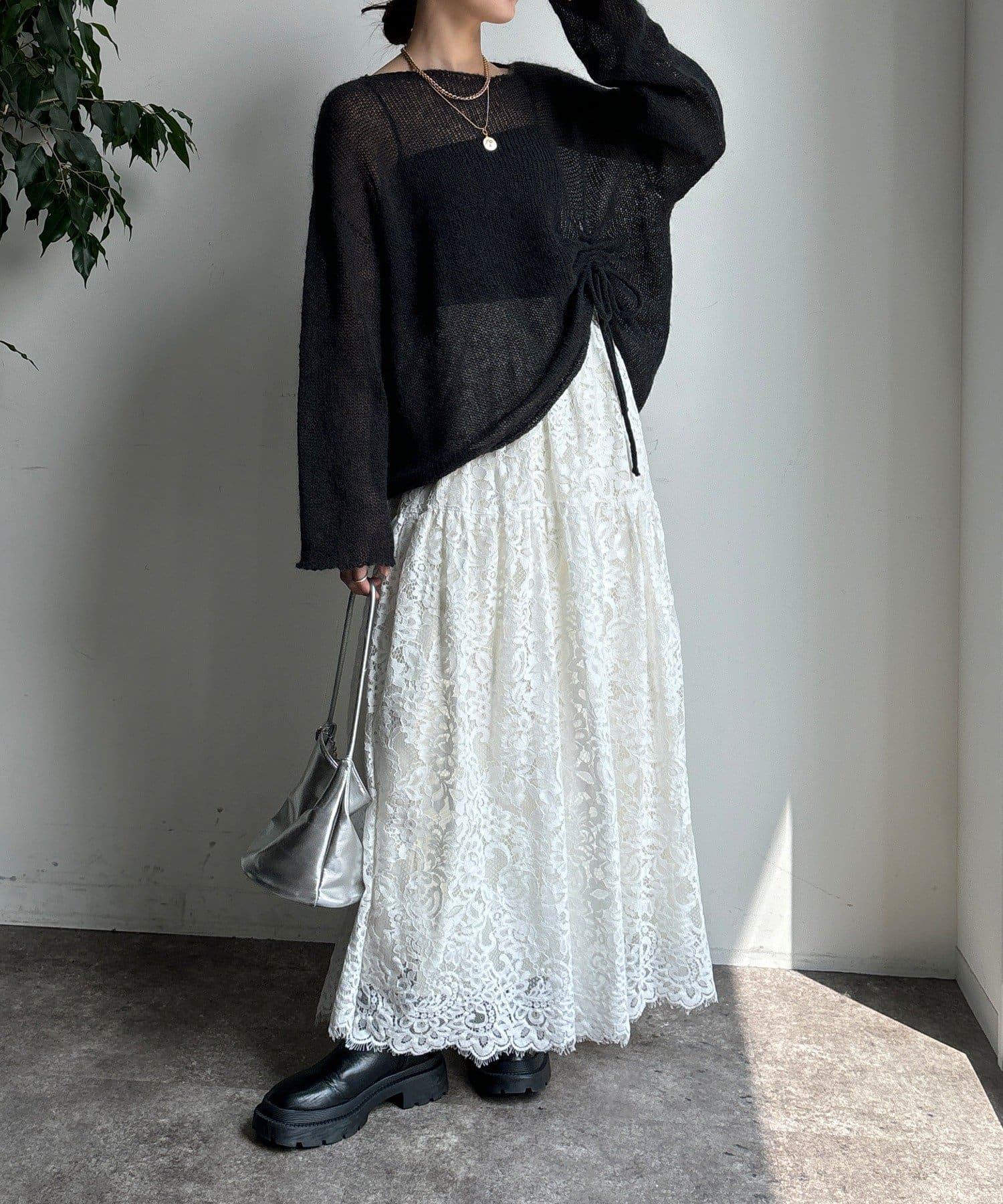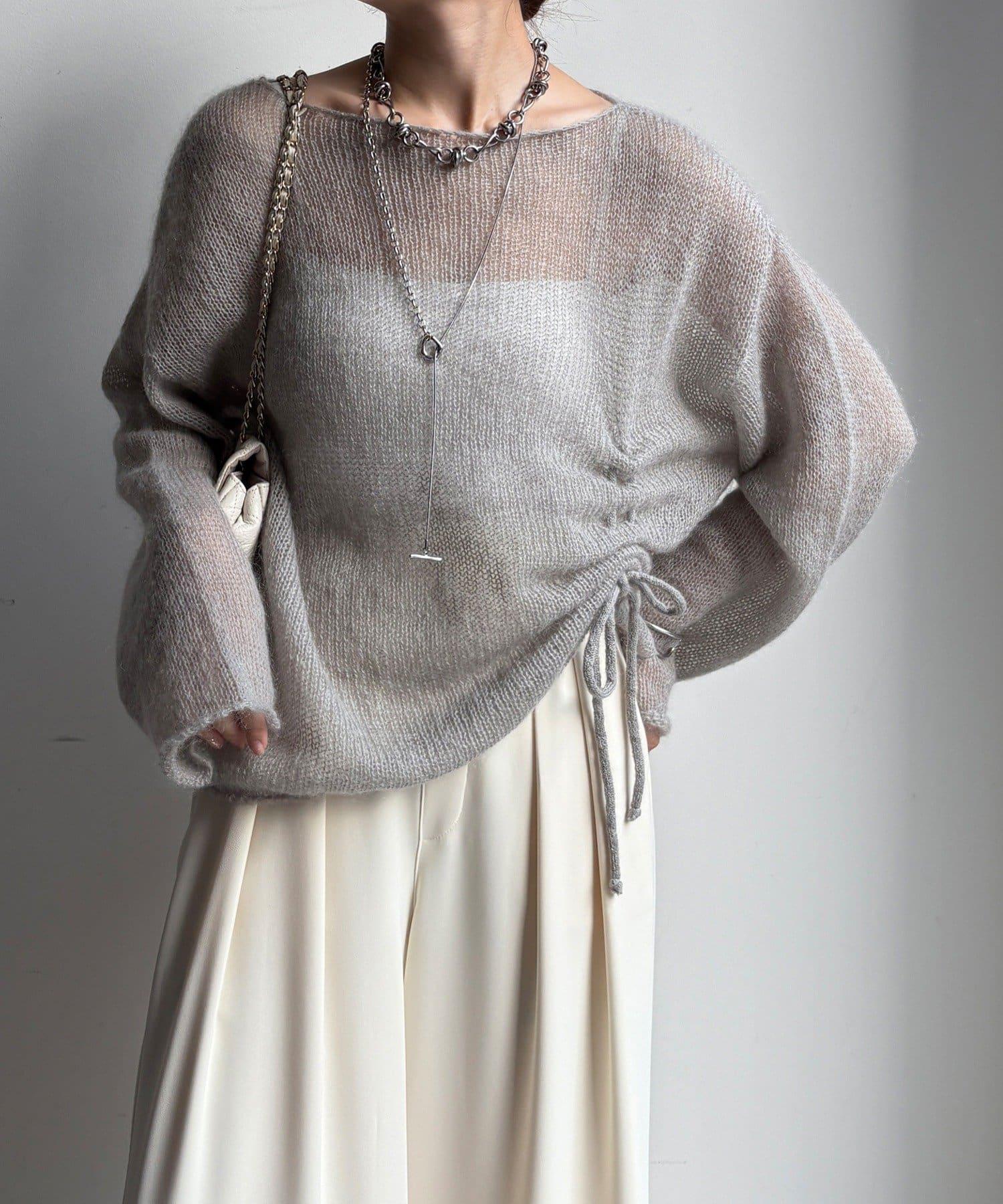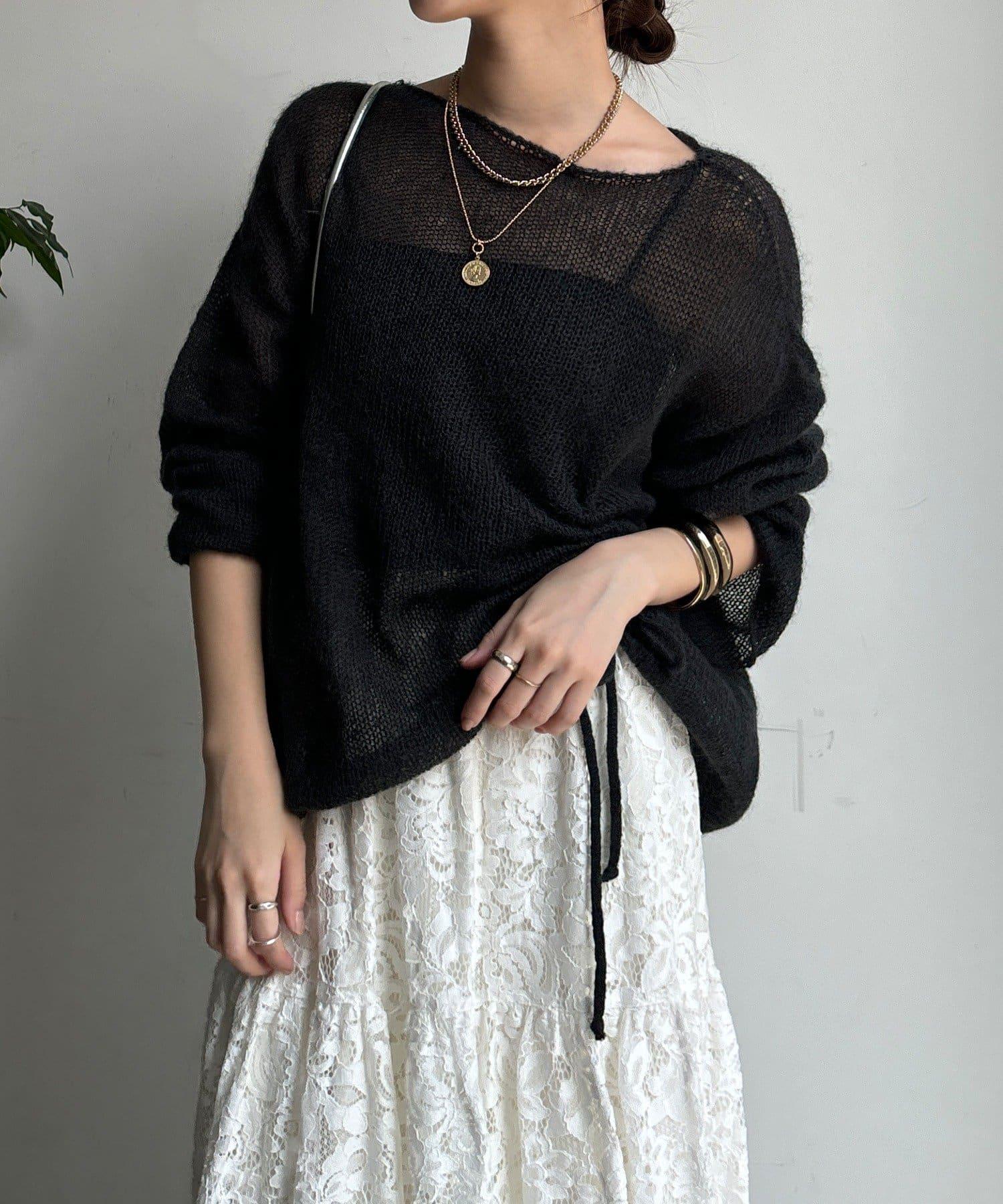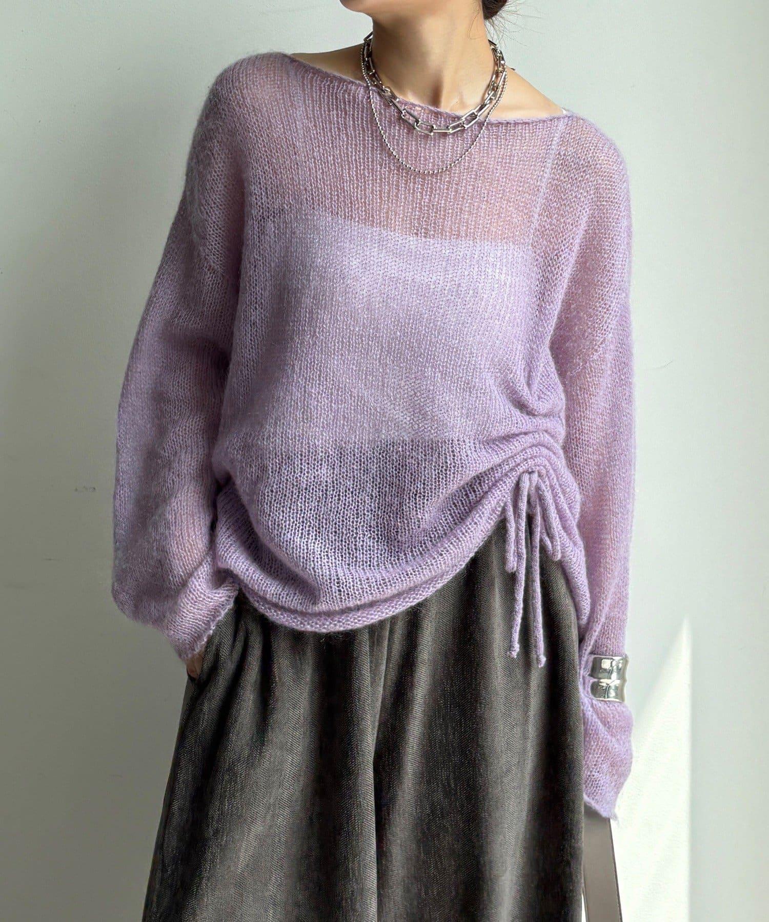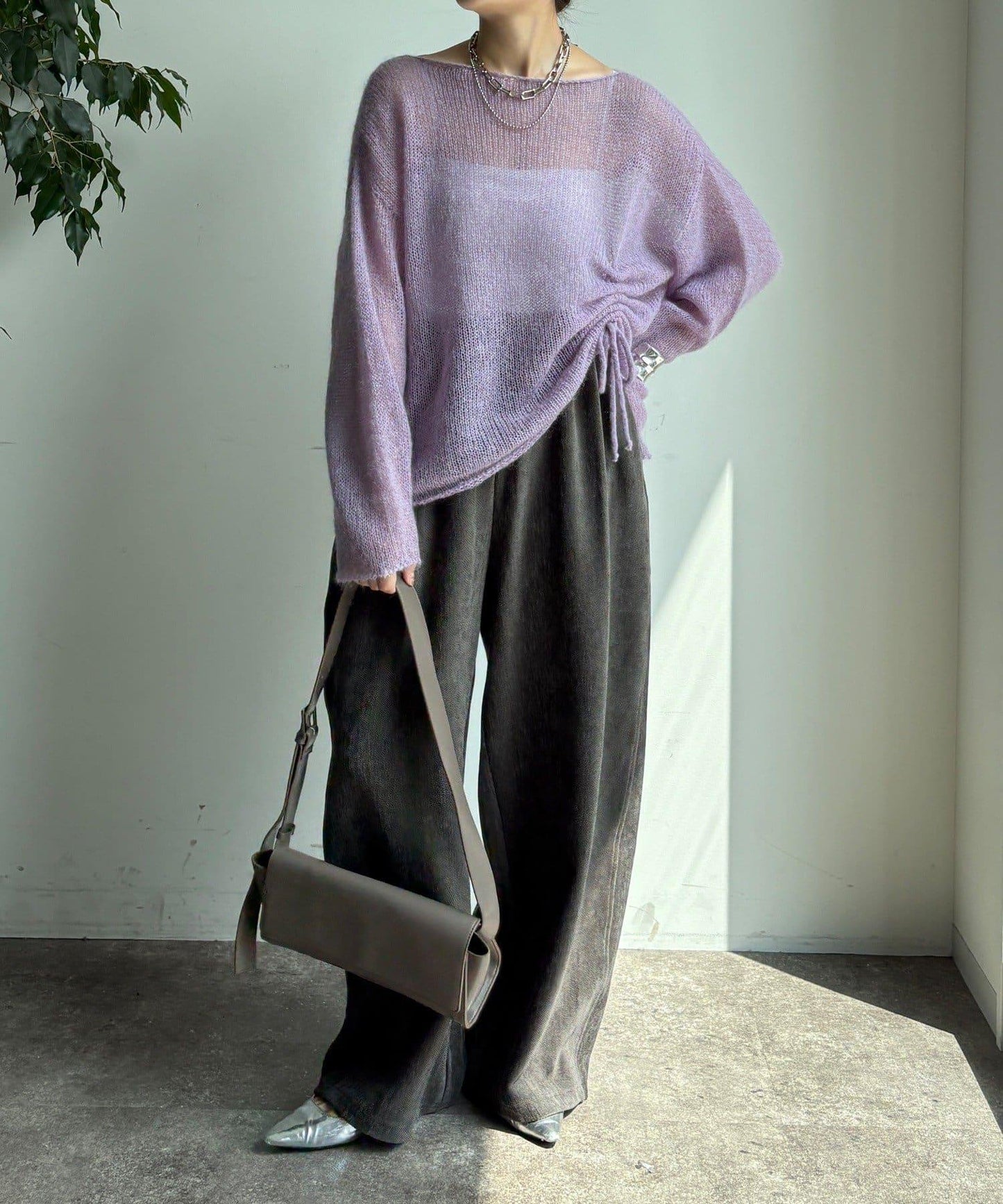 這款針織上衣採用透視面料,兩側飾有碎花!