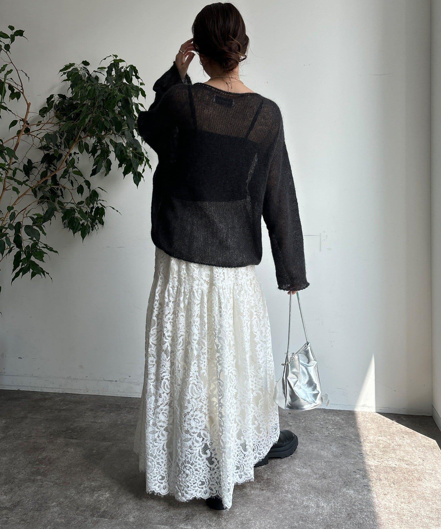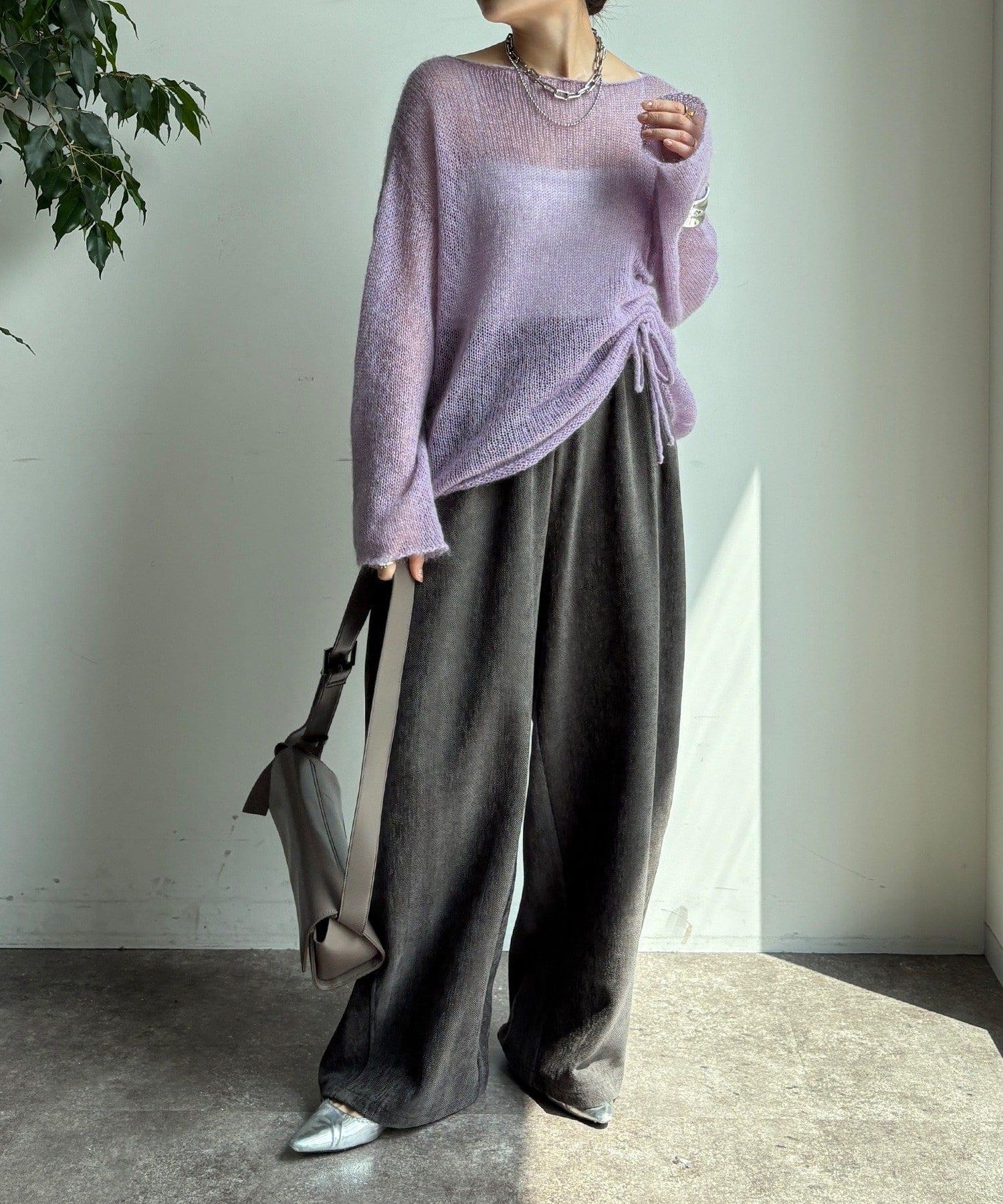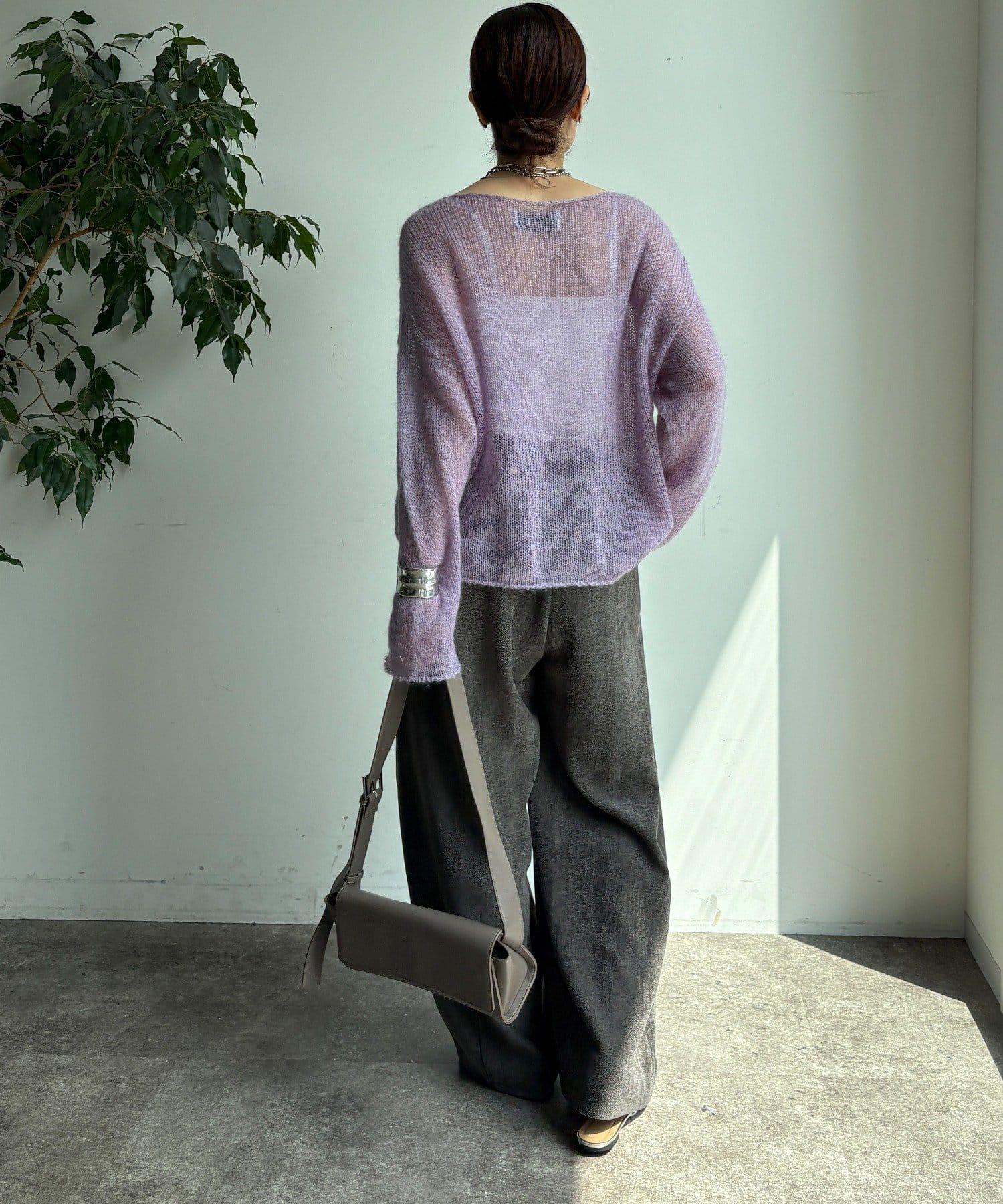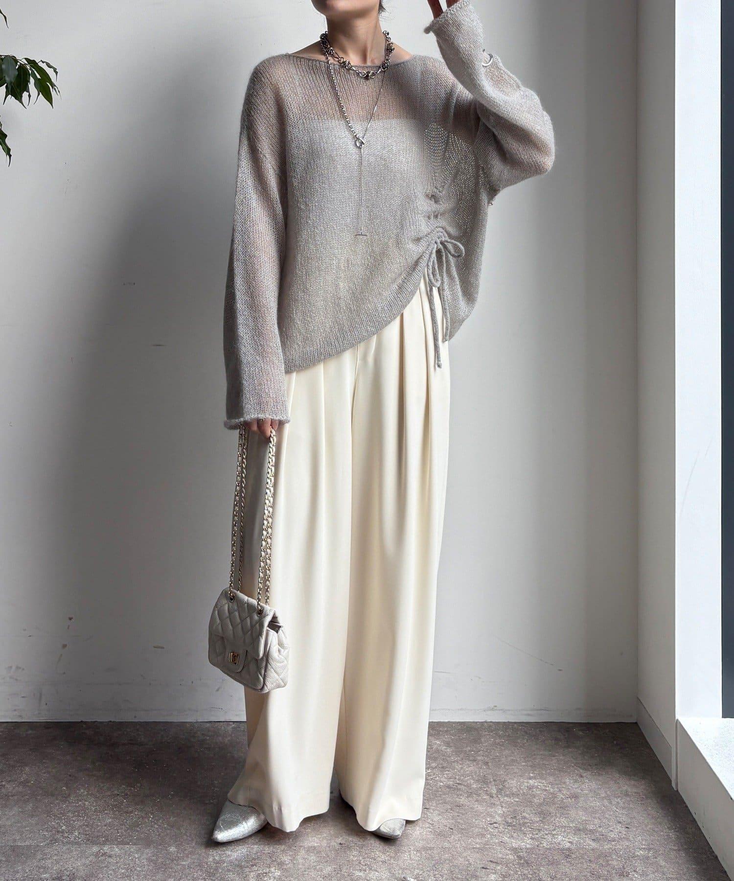 這款針織上衣採用透視面料,兩側飾有碎花!