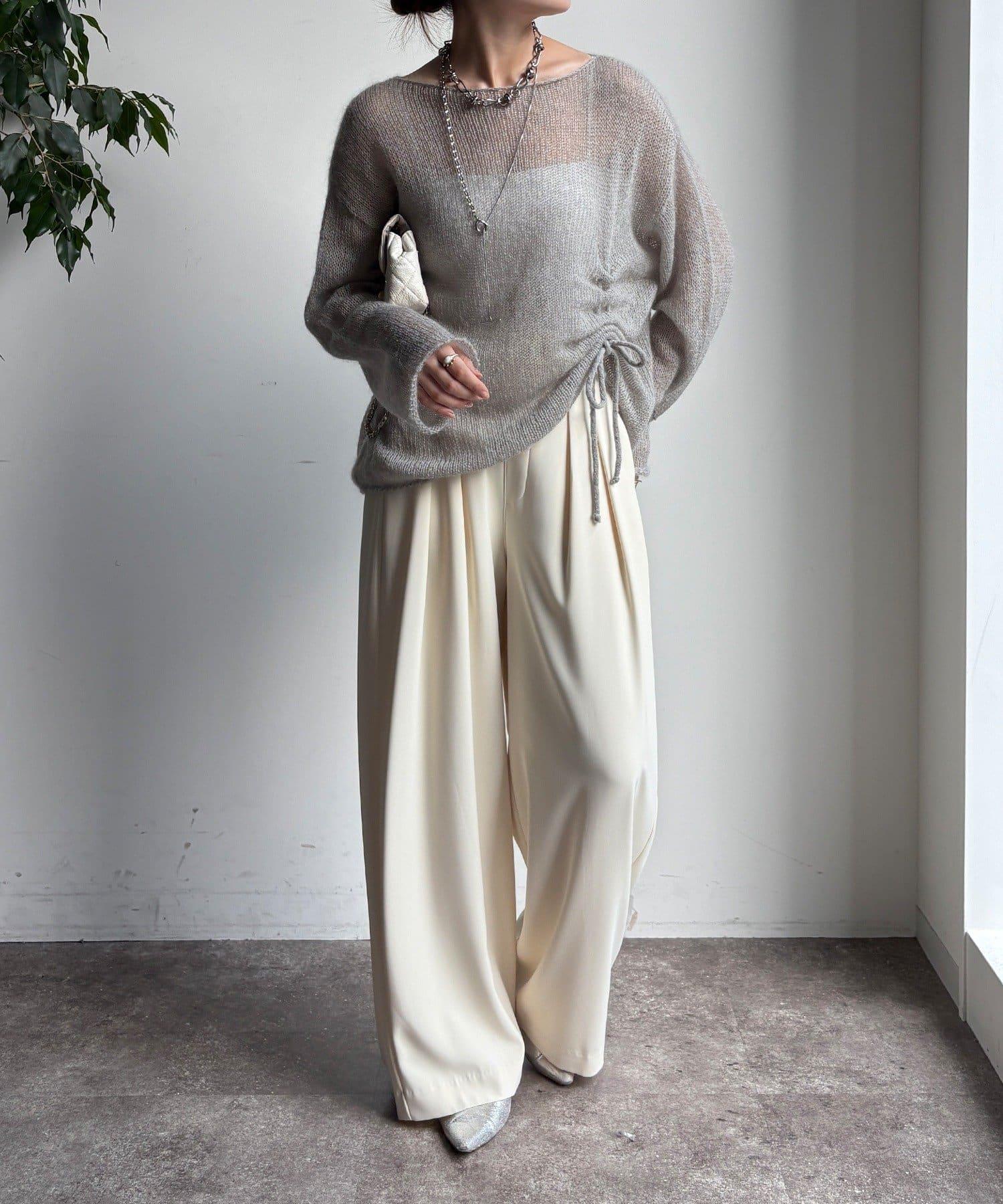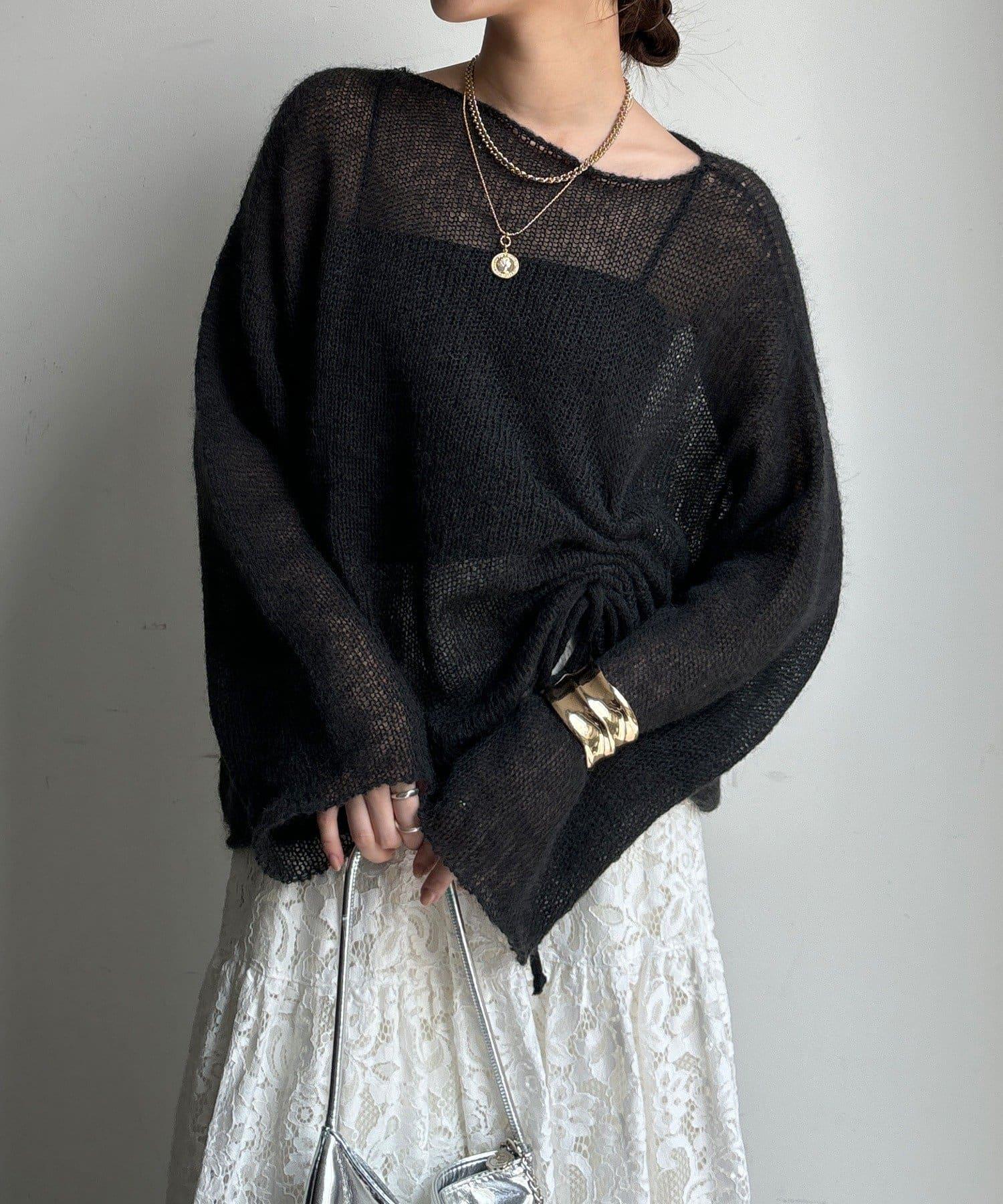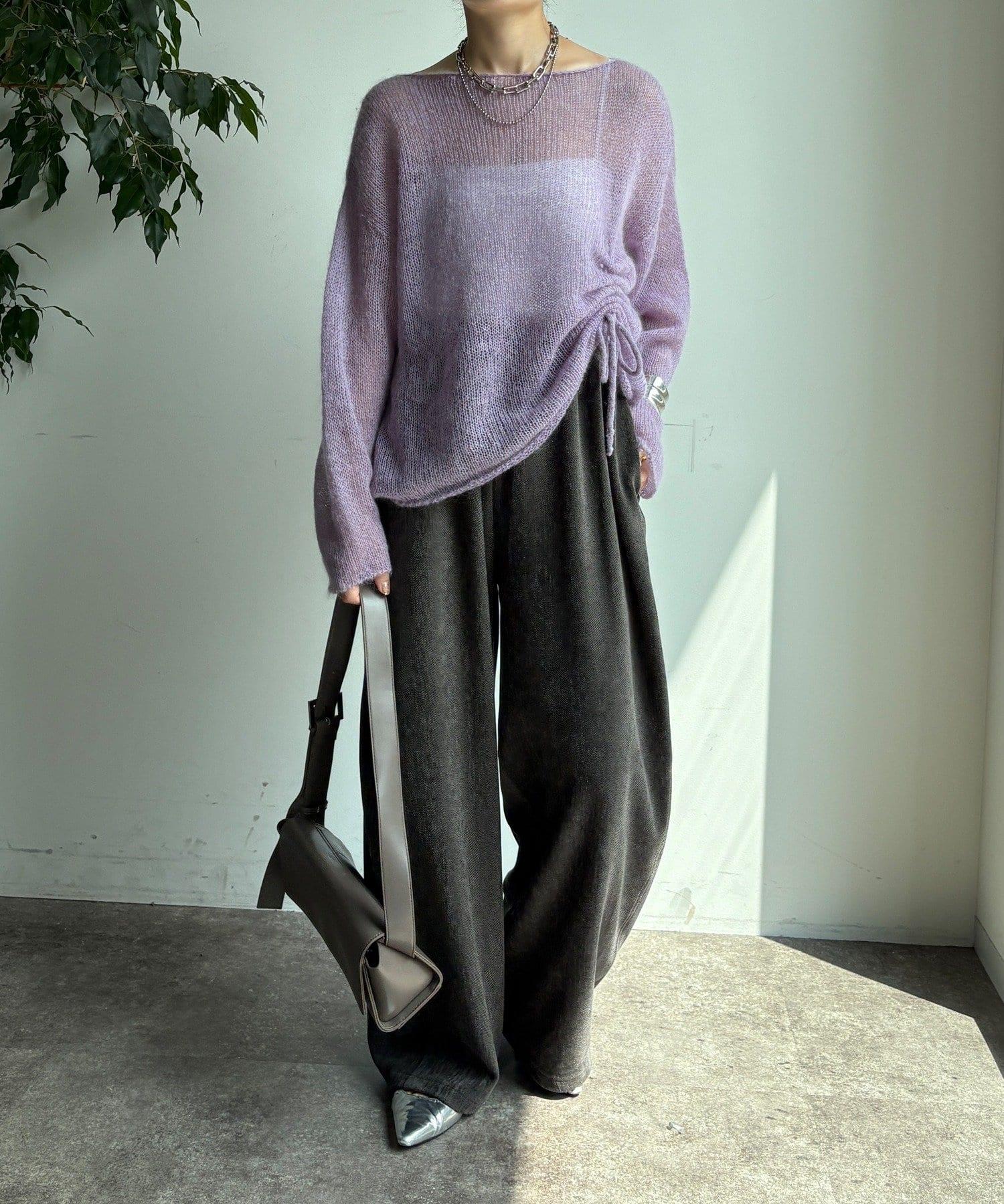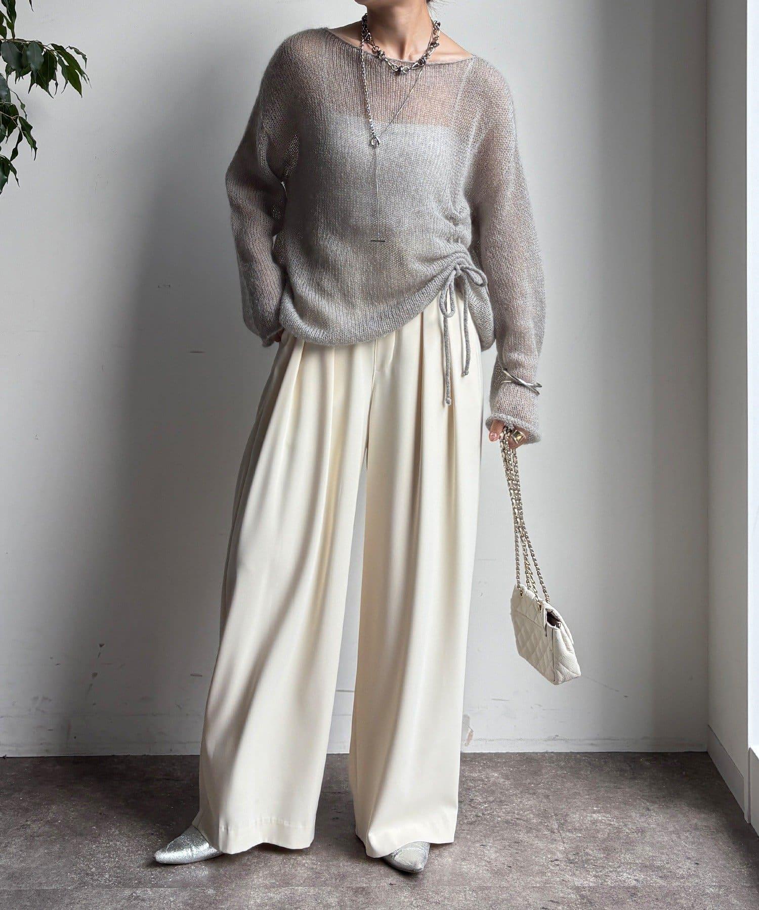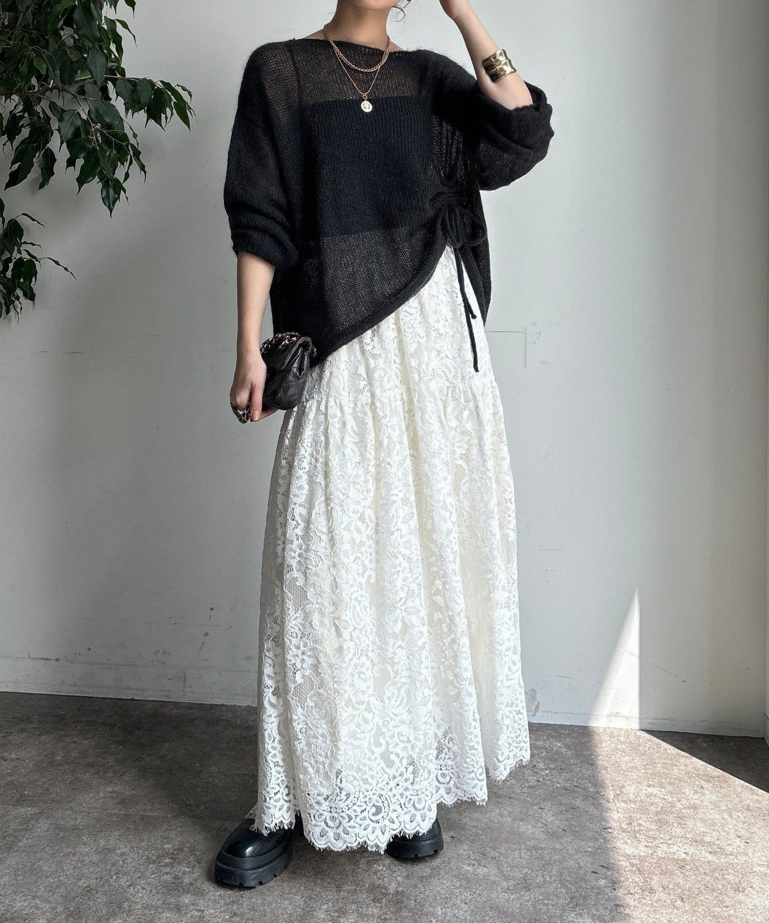 這款針織上衣採用透視面料,兩側飾有碎花!