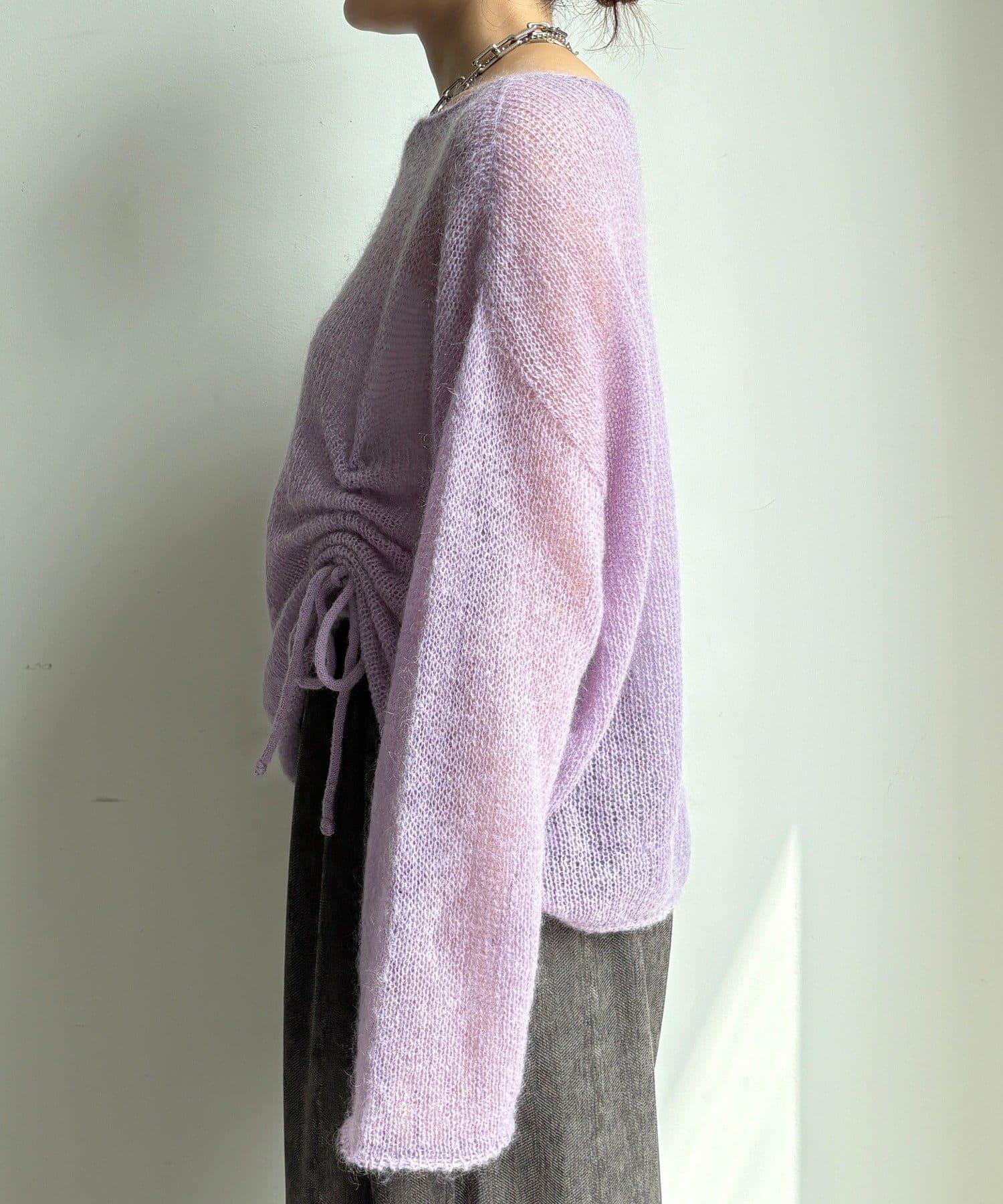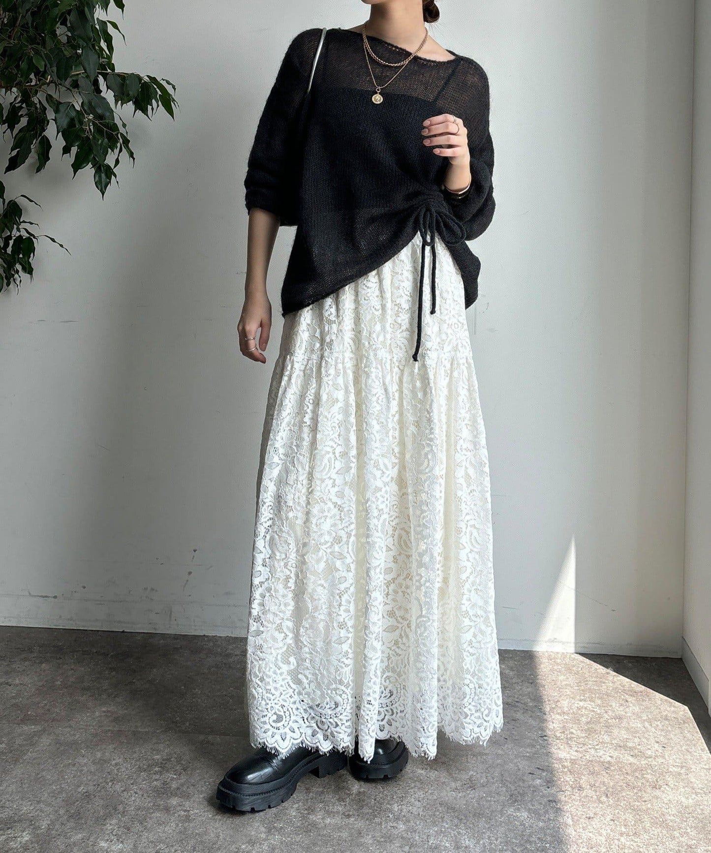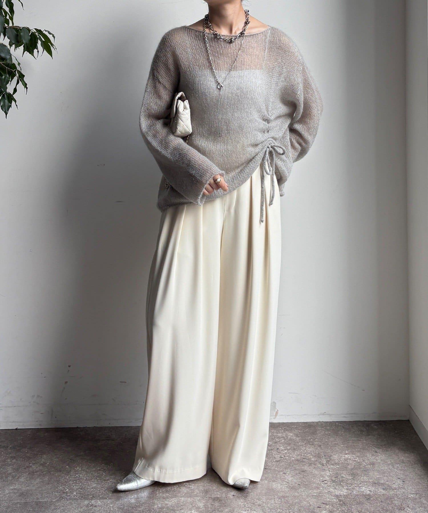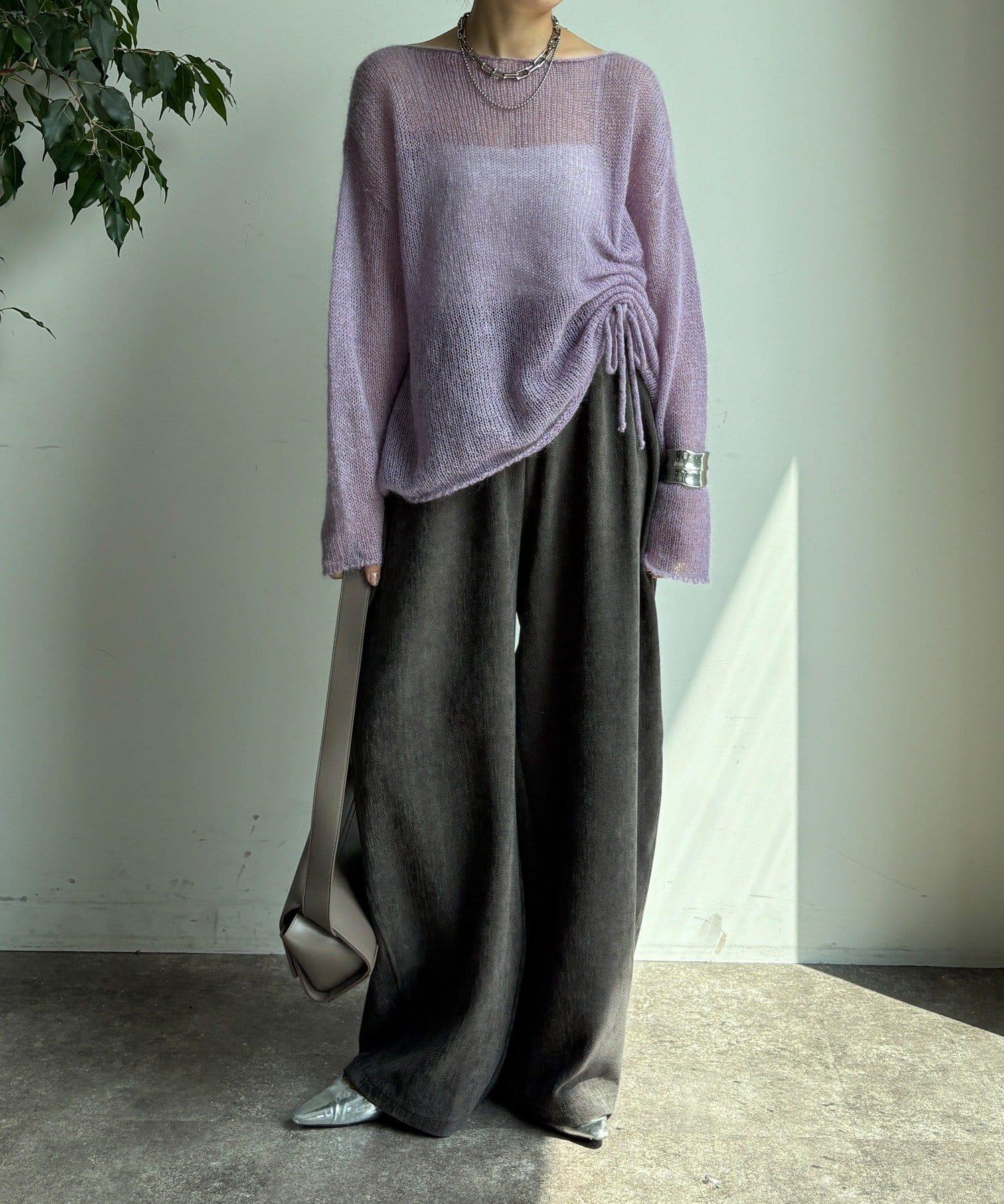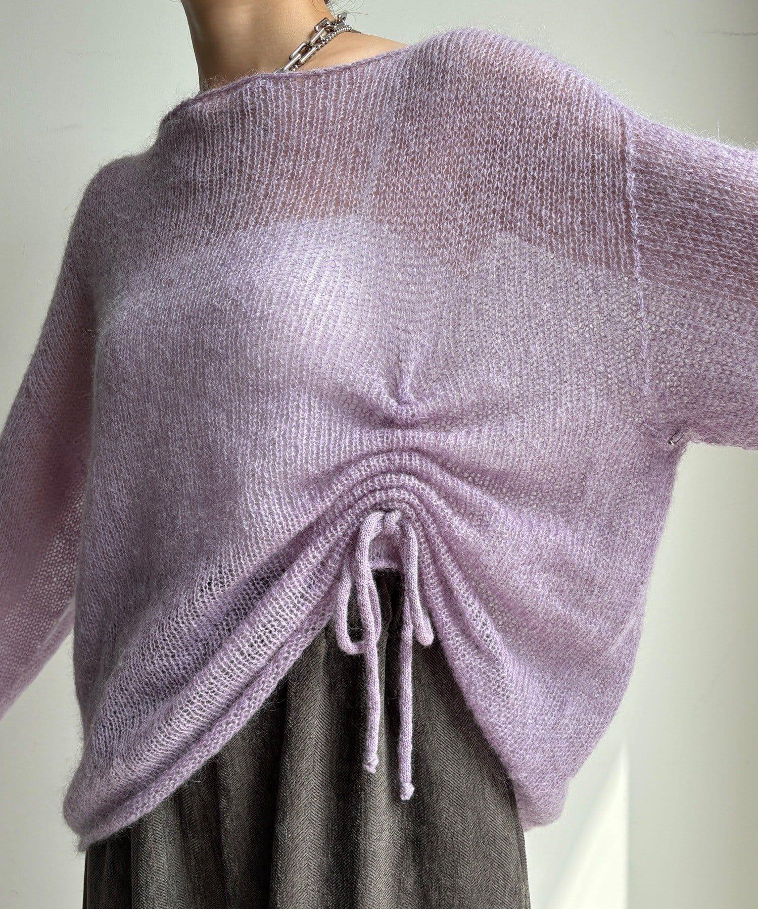 這款針織上衣採用透視面料,兩側飾有碎花!