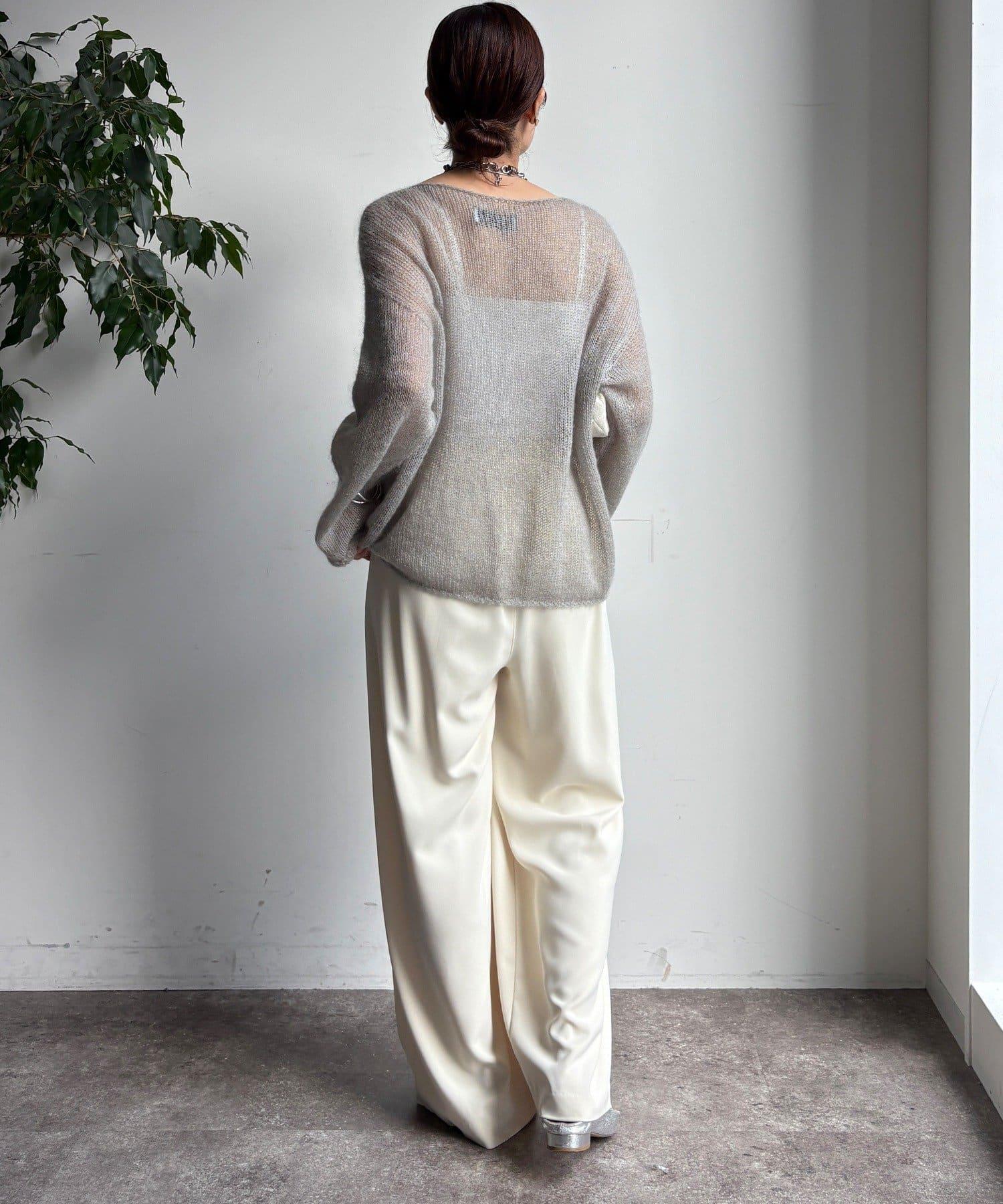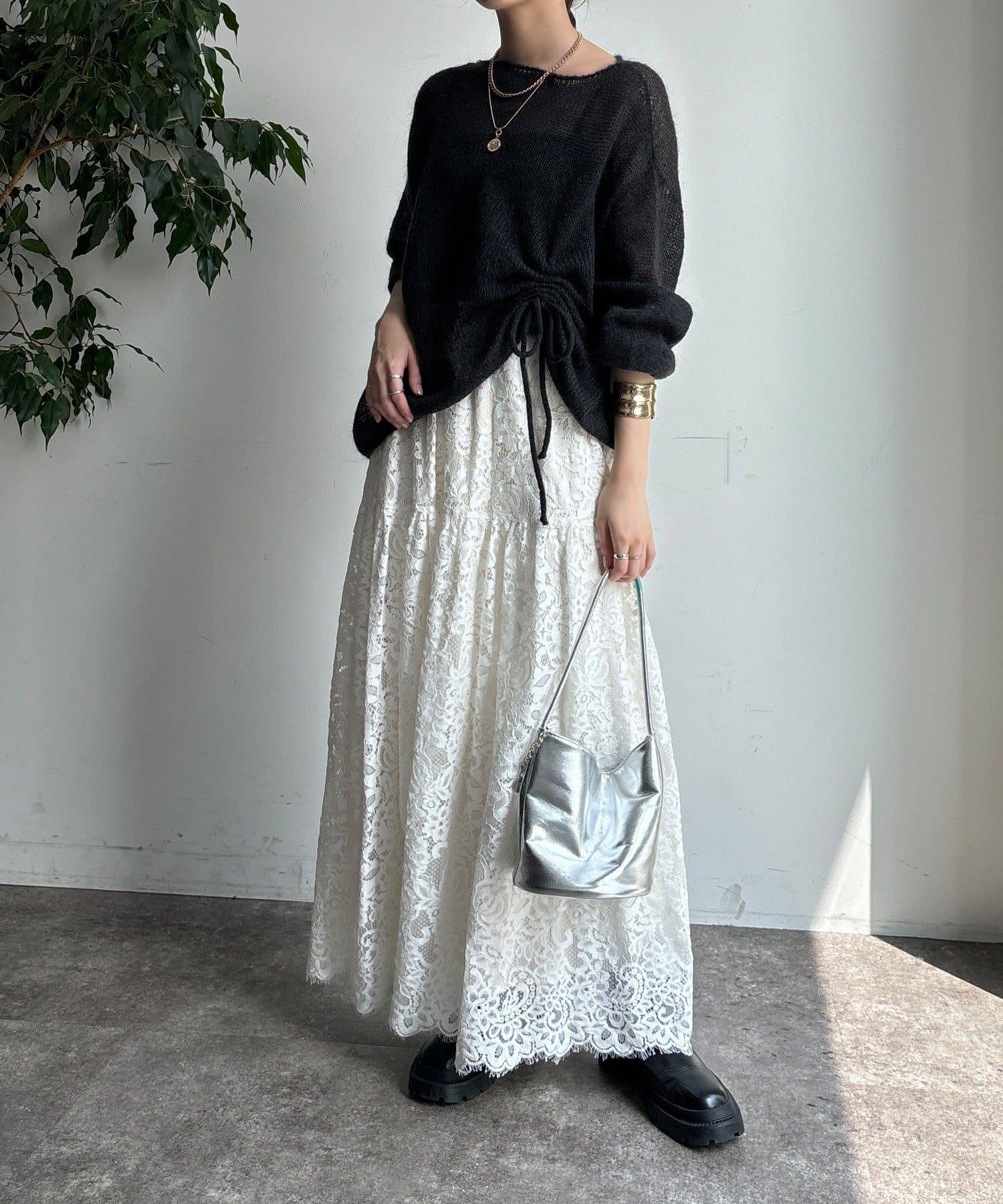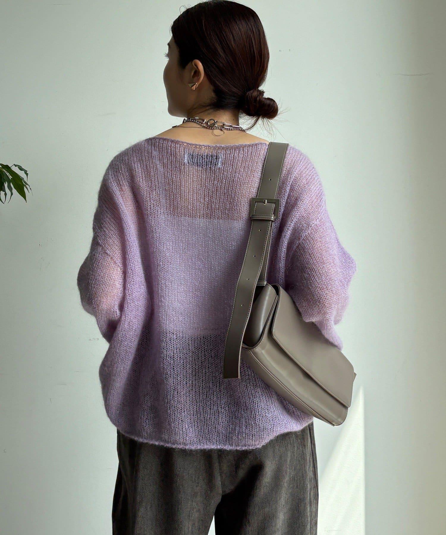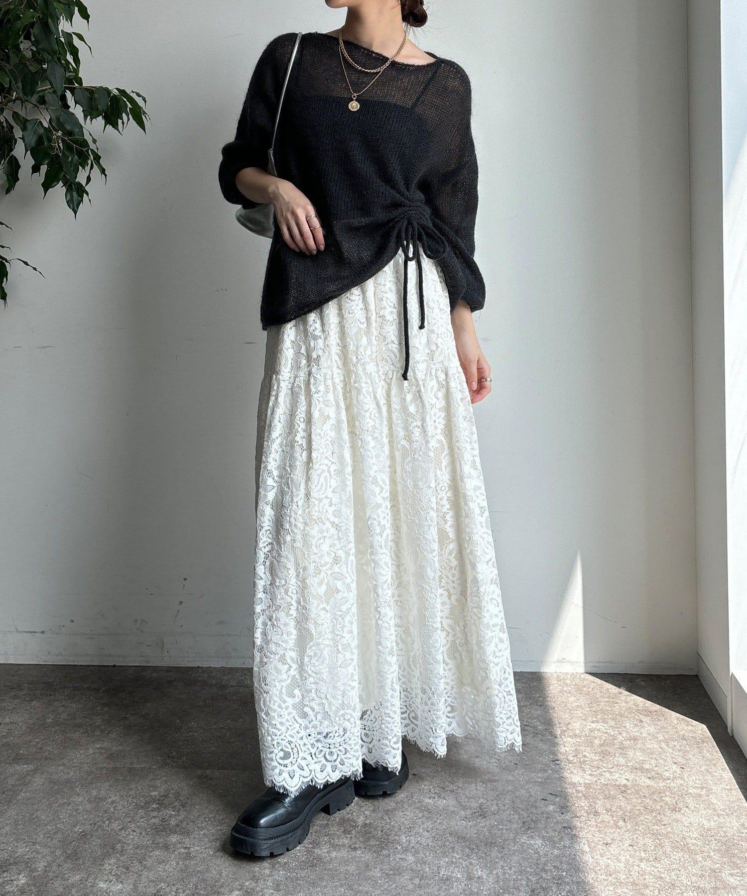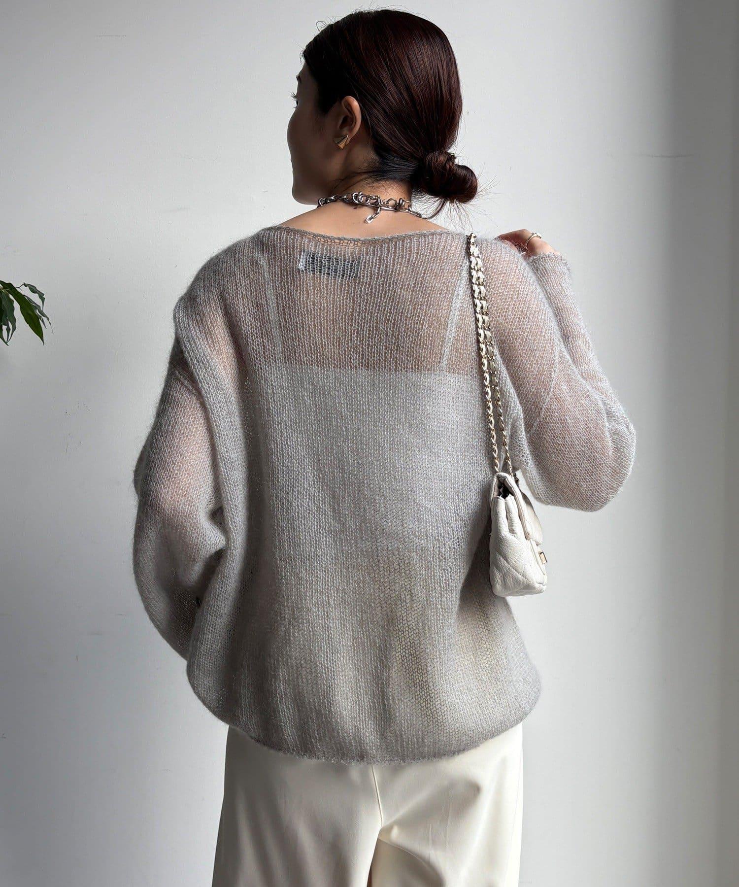 這款針織上衣採用透視面料,兩側飾有碎花!