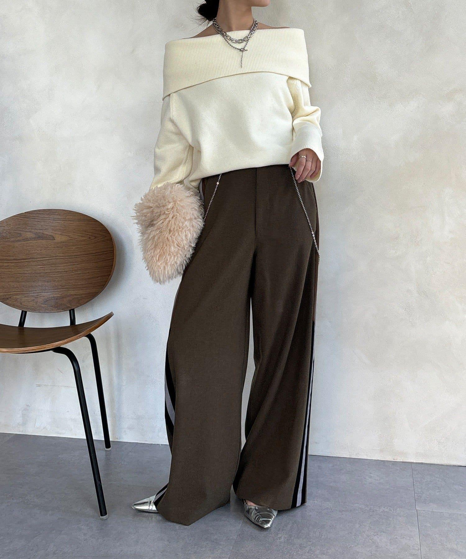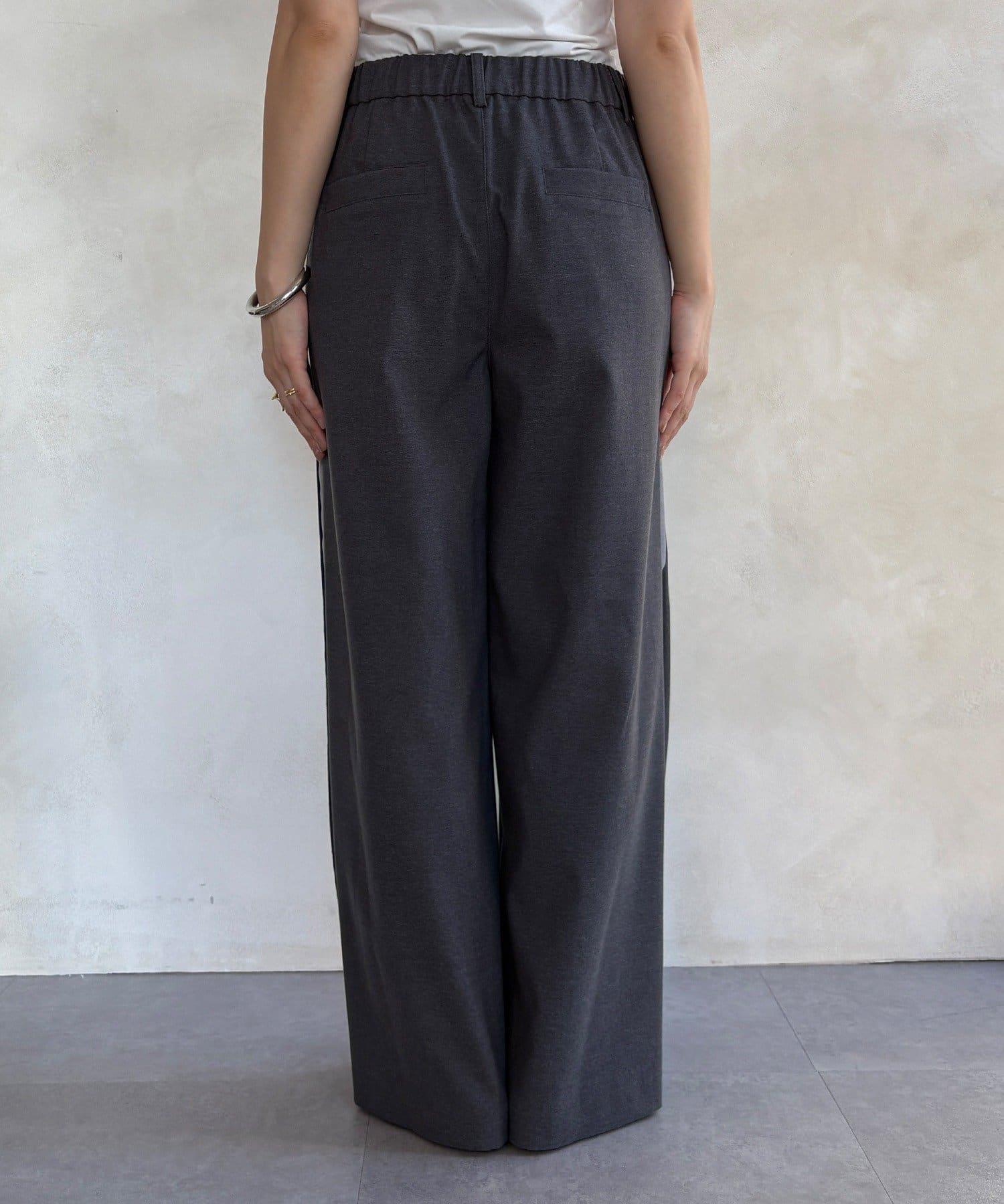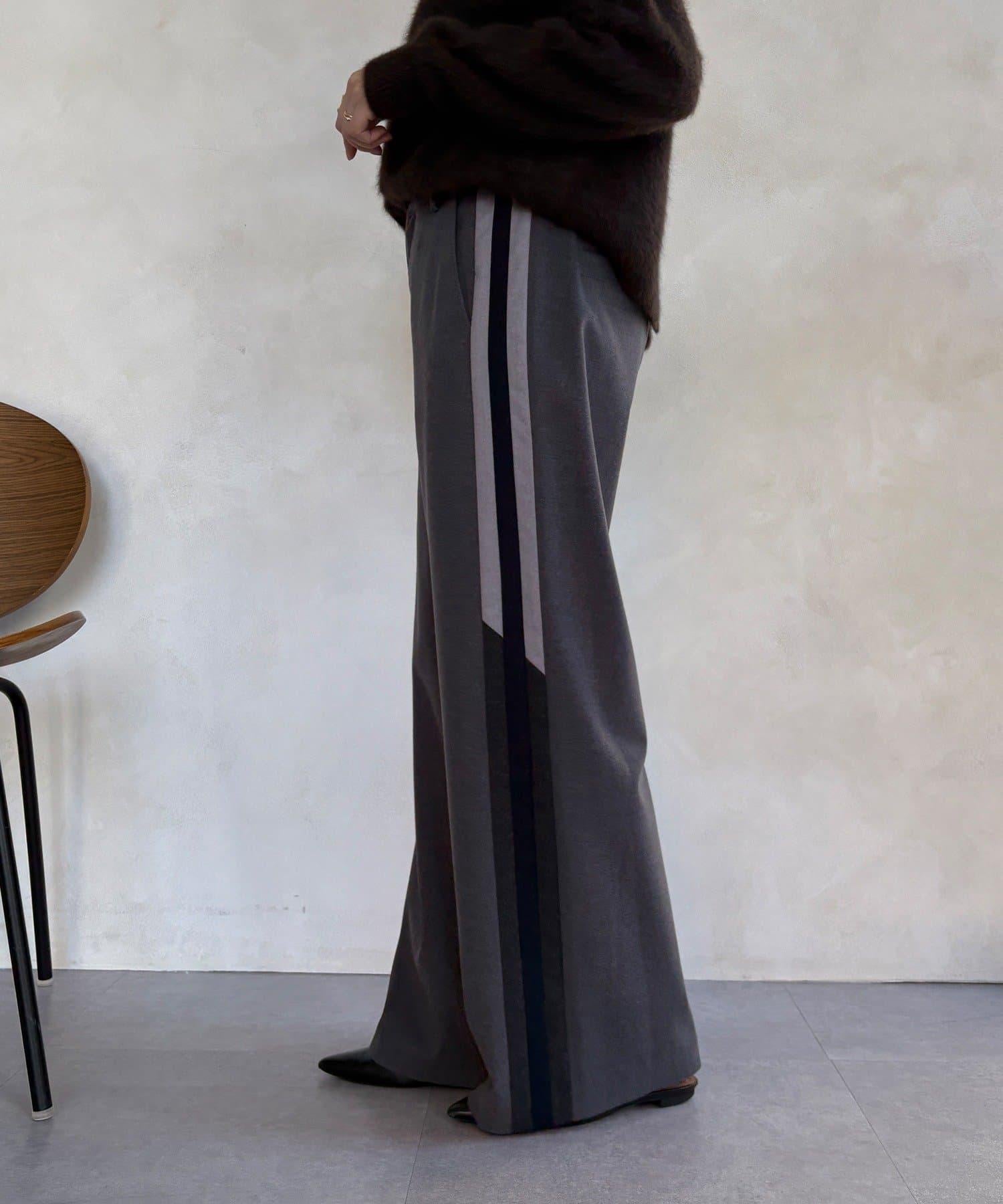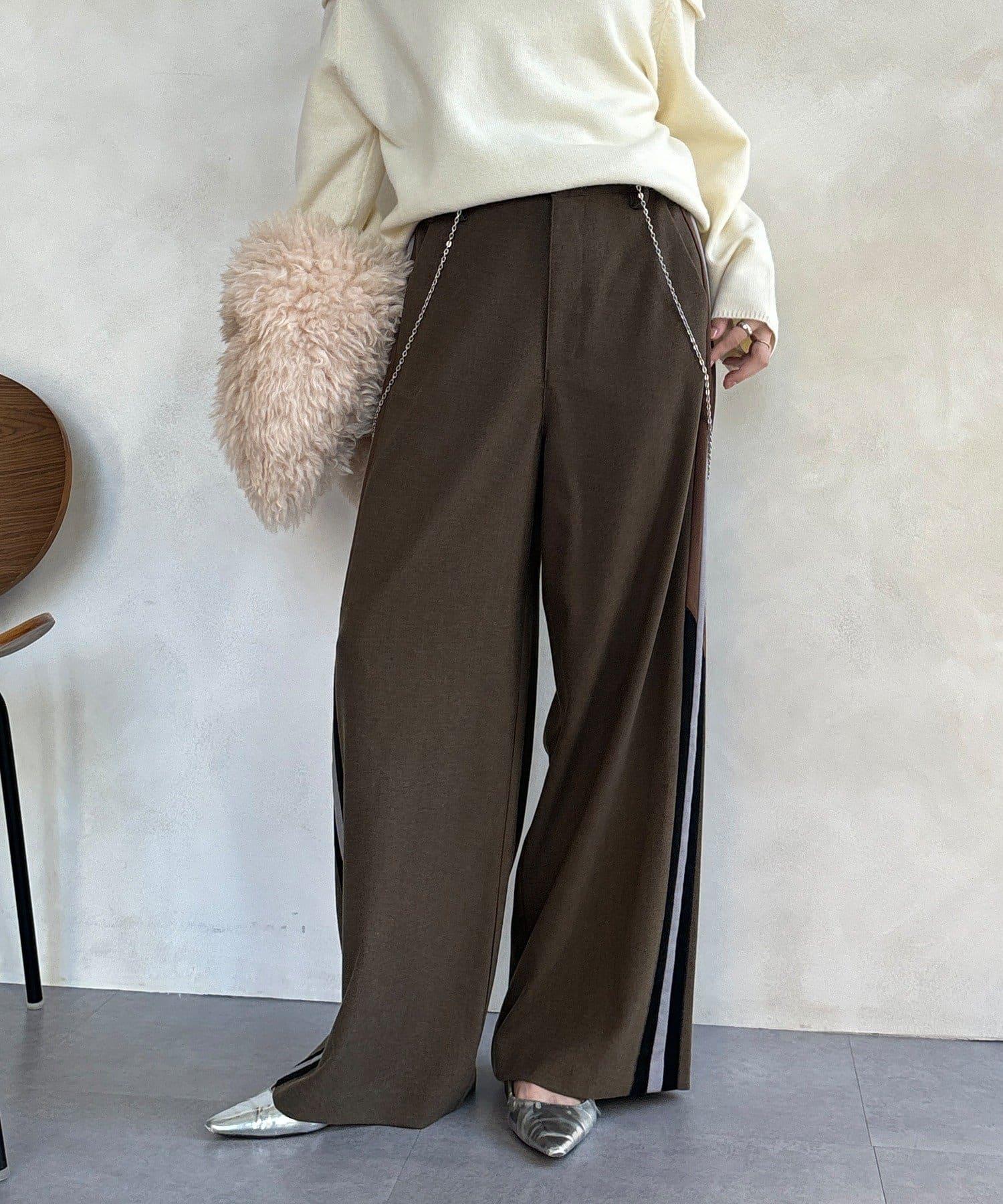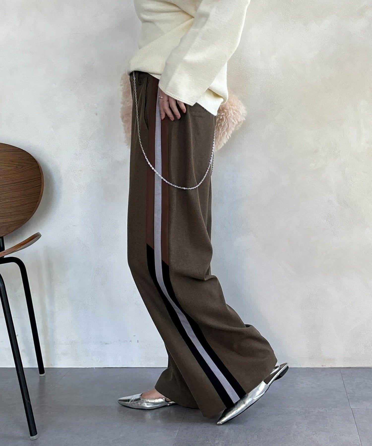 側邊條紋寬腿褲